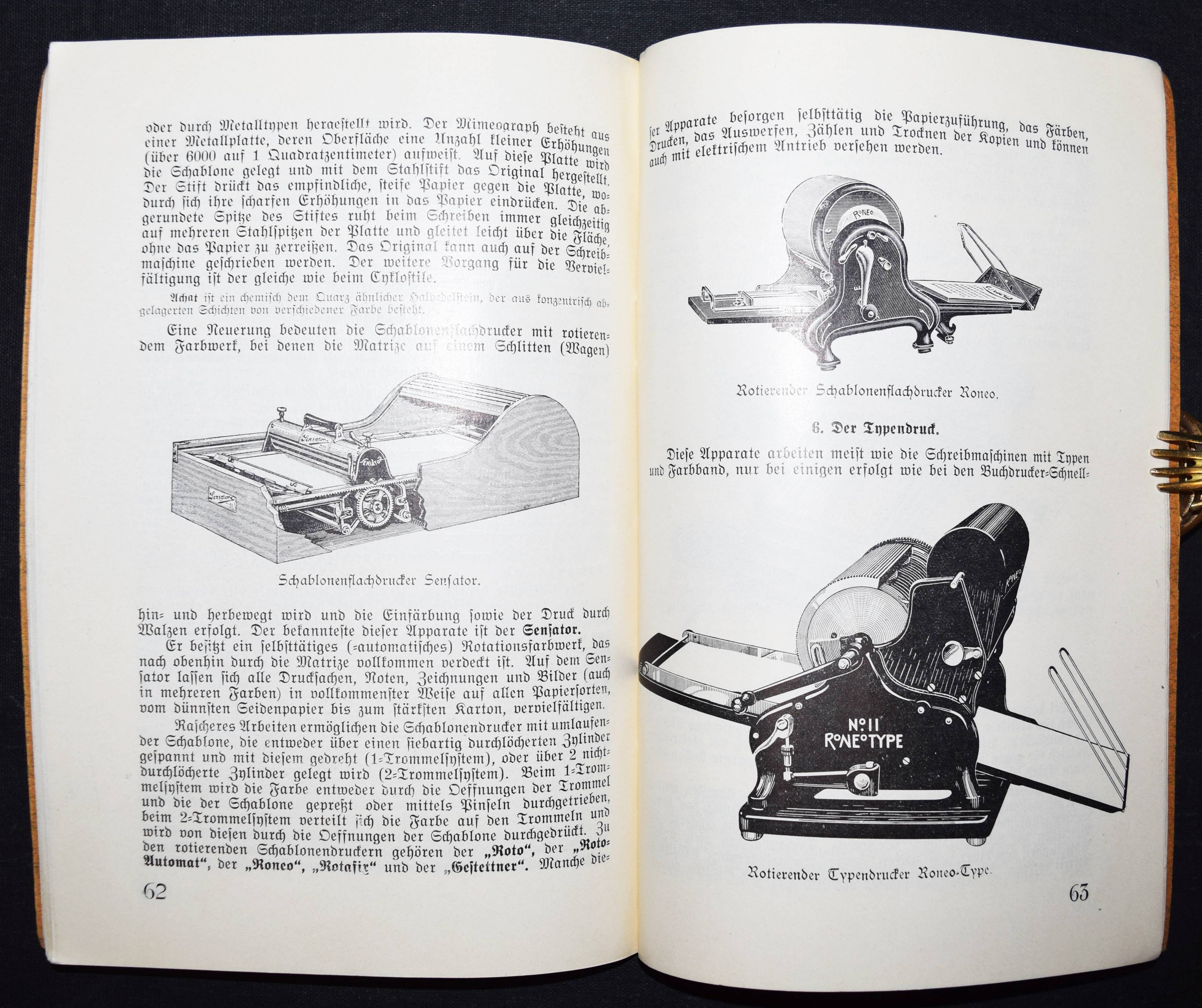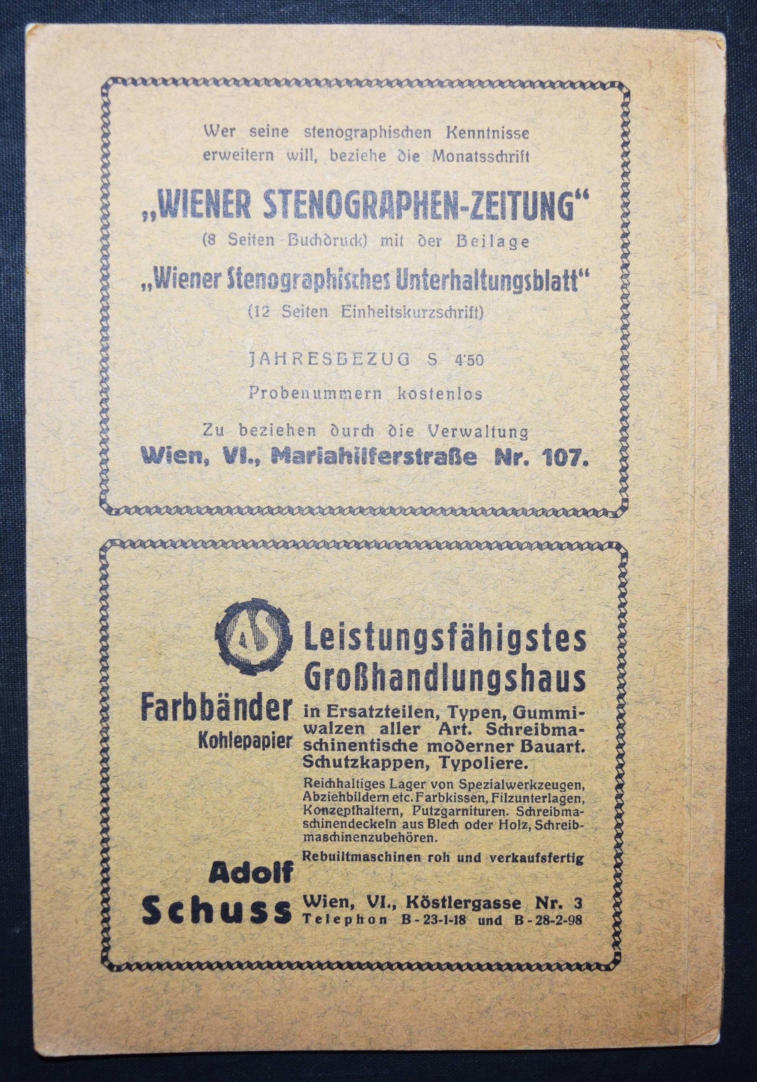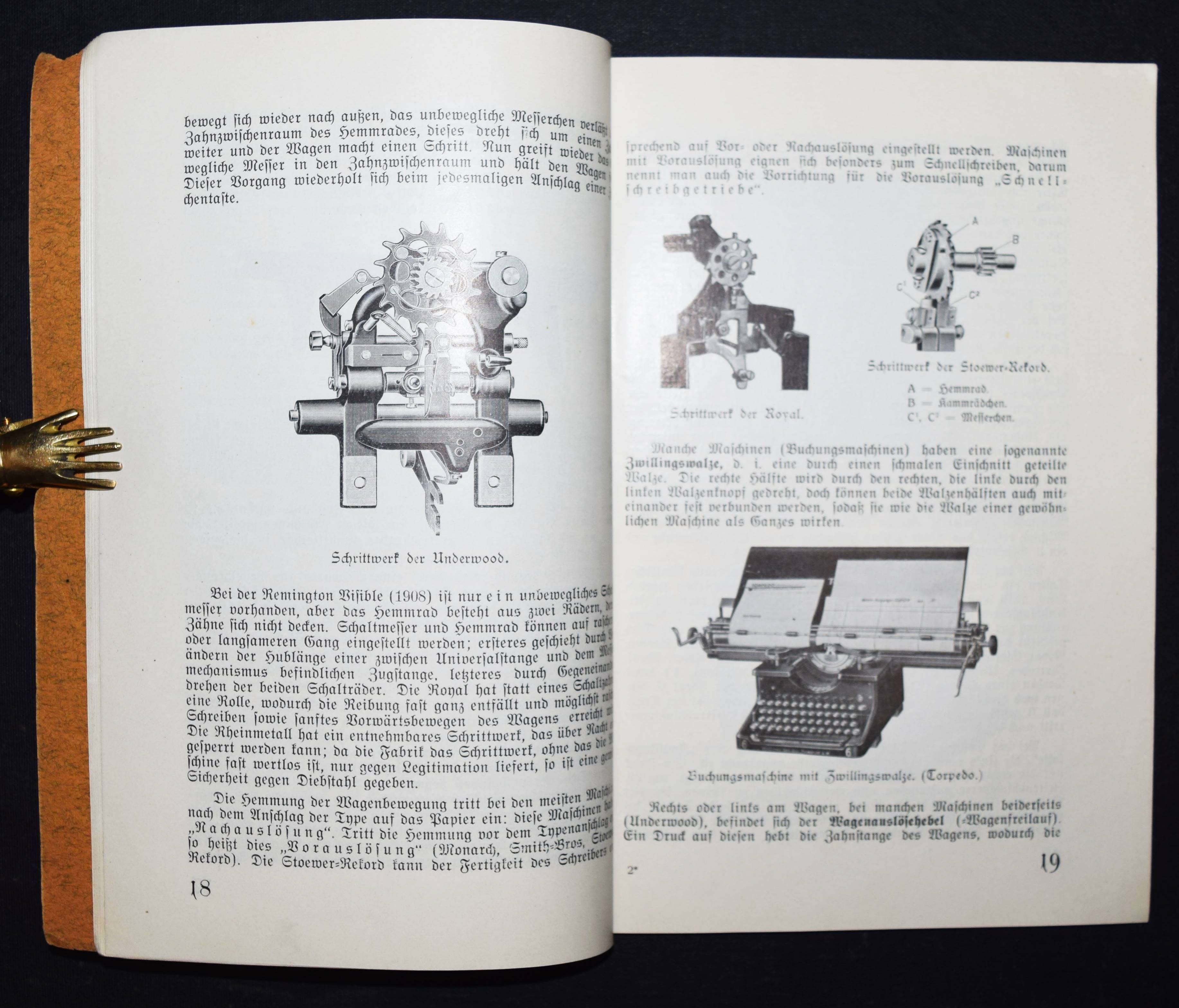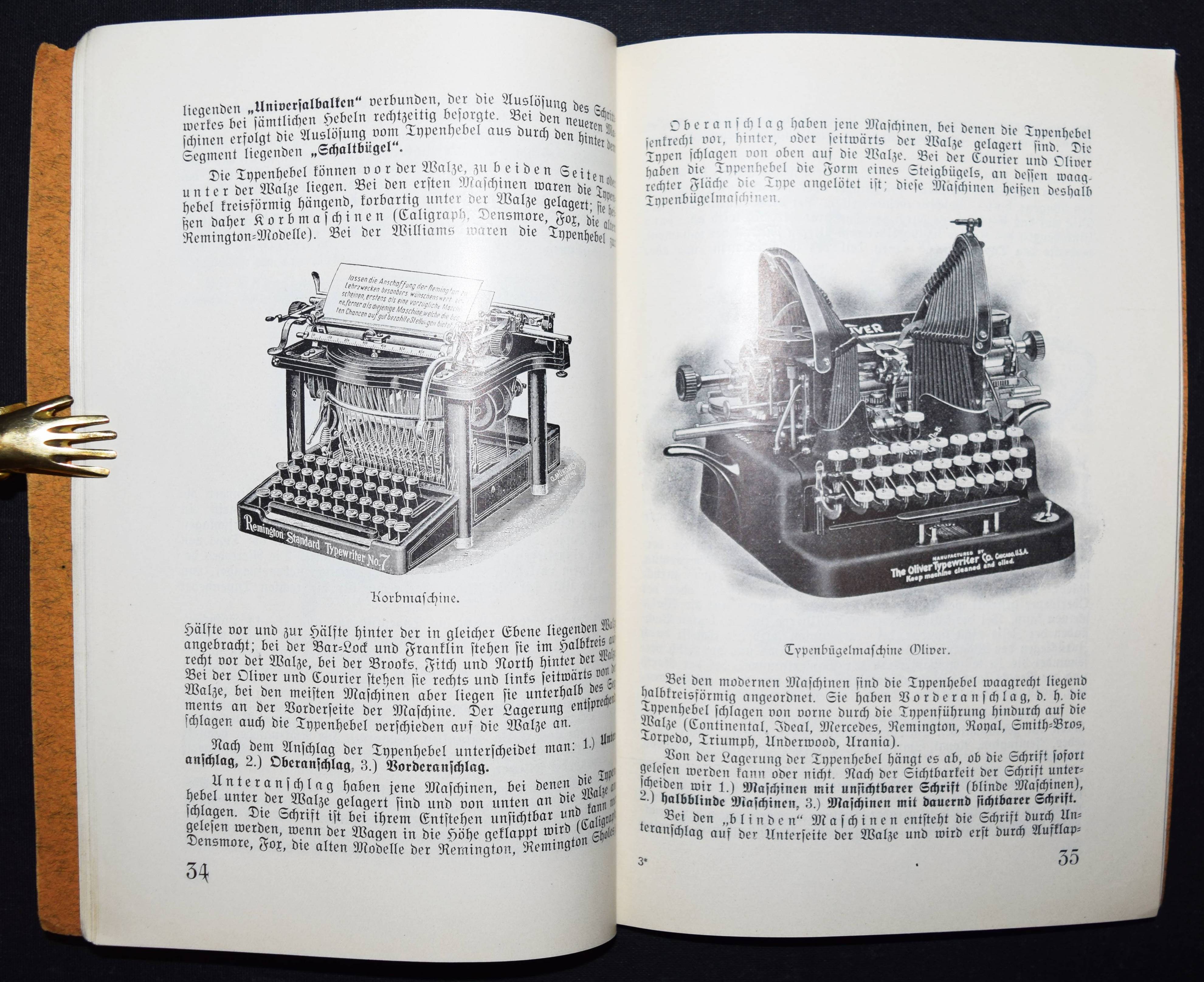 Czerny, Karl. Mechanik und kurze Geschichte der Schreibmaschine. Zur Vorbereitung auf die staatliche Stenotypieprüfung. 3., erw. Aufl. Wien, Selbstverlag 1932. Gr.-8°. 72 S. mit zahlr. Abb. OKart. Selten. – Umschlag mit geringf. Randläsuren, gutes Exemplar.