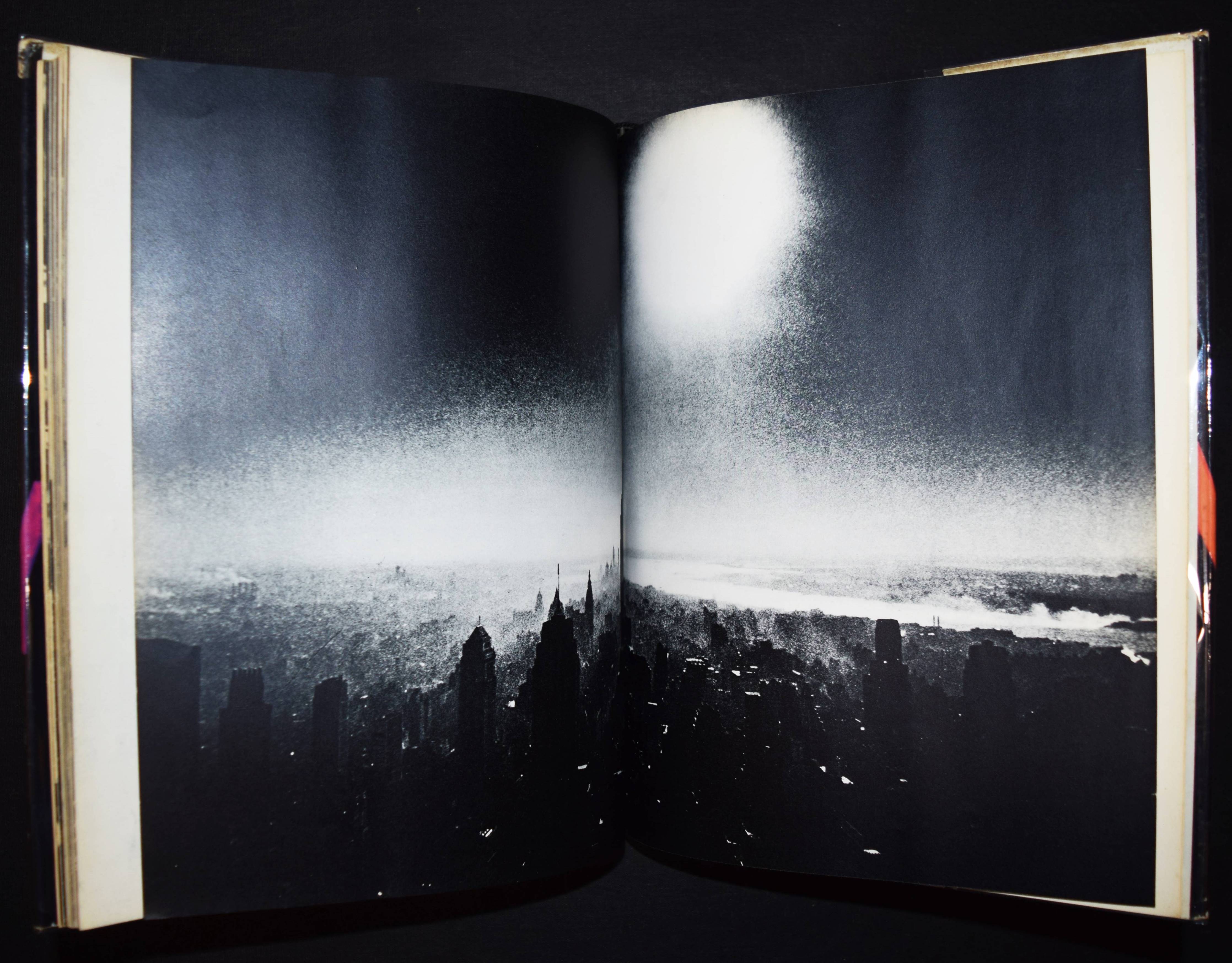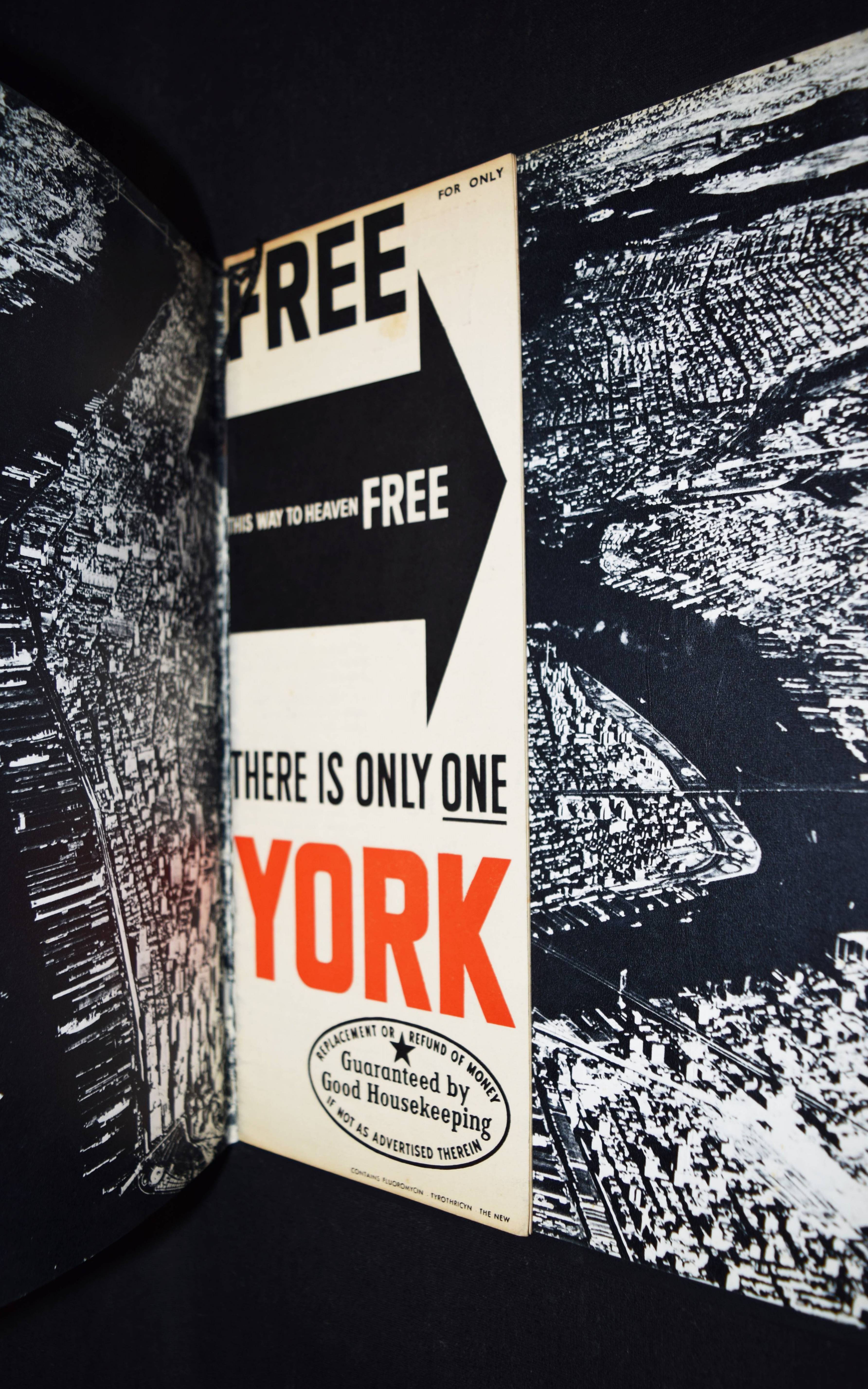 Klein, William New York. Life is good for you and good in New York Trance witness Reveals: Trance Witness Revels. London, Photography Magazine (1956). 4°. 192 p. with 188 Pictures on plates and Booklet (16 p., „Delay may be serious now free…“). Original cloth binding with color illustrated dust jacket. (Album Petite Planète, Vol. 1). Auer 365. The Open Book 165 f. Parr/Badger I, 243. Roth, The Book of 801 Books 140 ff. – First edition in England (“Imprimé en Suisse”). The first printing of the first edition was published by Editions du Seul in Paris. – With autograph dedication by W. Klein “To Paul & his sister Bailly / Happy New York, William Klein”. – „By virtue of its preface, written by Jack Kerouac, Robert Frank’s The Americans is usually regarded as the epitome of the Beat photobook. But William Klein’s magnum opus, Life is good for you and good in New York Trance witness Reveals: Trance Witness Revels, a book with Beat mantra for a title, surely has the edge in this regard. This is partly because it was the earlier model, partly because it is less political and more exuberant, and impotantly, because its conception is so complete – photographs, layout, design, topography, ‚found‘ ephemera coalescing into what is in effect one of the first great ‚Pop‘ books. … Klein’s masterpiece reminds us that much great, serious art is often about play, archieved simply by experimenting with the possibilities of the material. Forget trance and witness – the revels are the thing“ (Parr/Badger). – „With no interest from American publishers, Klein went back to Paris and set to work on a graphic design that was as aggressive and idiosyncratic as its photos. „I saw the book as a tabloid gone berserk, gross, over-inked, brutal layout, bull-horn headlines,“ he wrote in its radically revised 1995 edition. „This is what New York deserved and would get.“ Published in France, Italy, and England, but not in America, Life is good for you and good in New York was a sensation“ (A. Roth). – Dust jacket with inconspicuous restored loss at the spine, very good copy.
