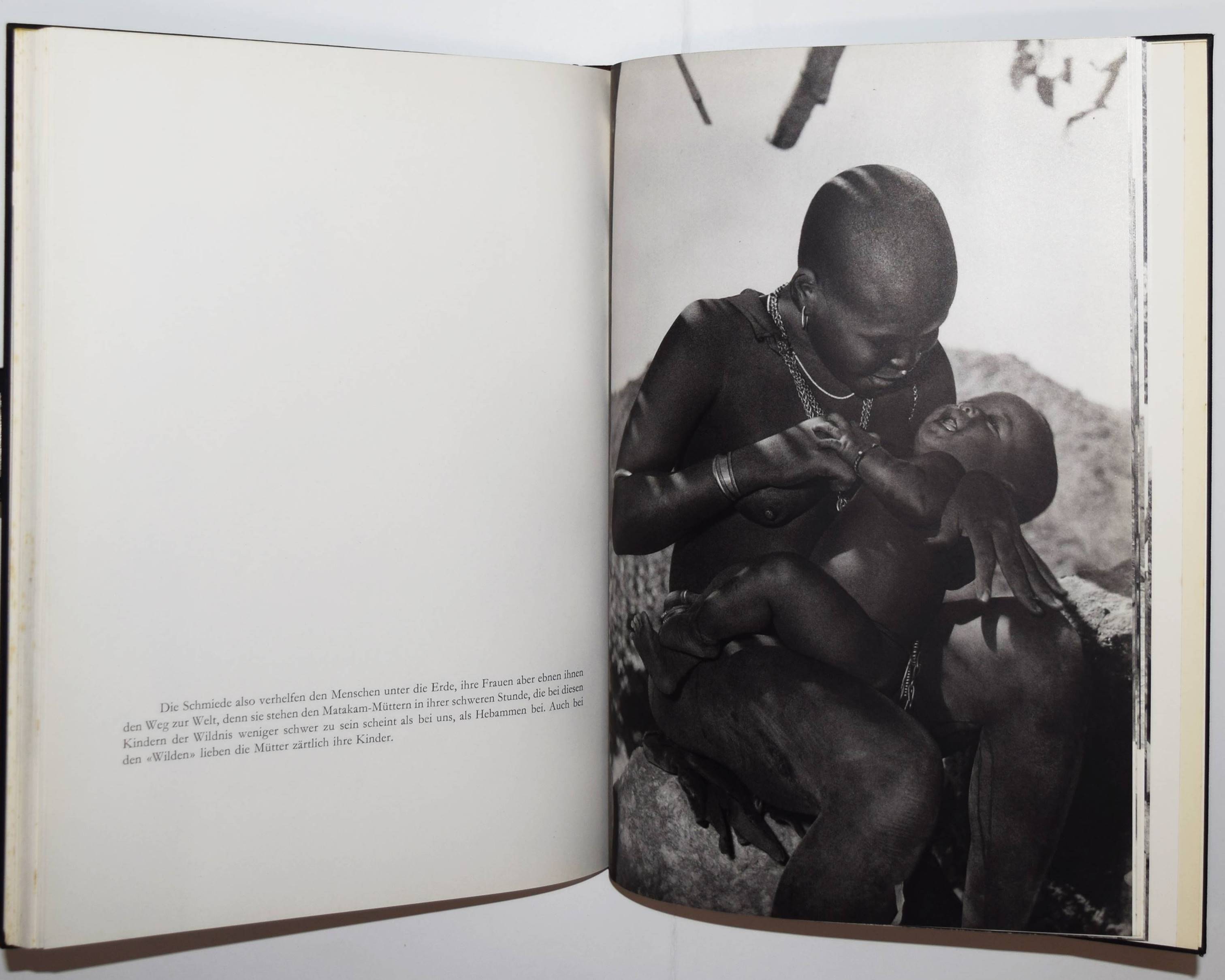 Gardi, René. Der schwarze Hephastus. (Ein Bilderbuch über die Schmiede der Makatam in den Mandara-Bergen Nordkameruns in ihre urtümliche Kunst, Eisen zu gewinnen). Bern, Selbstverlag (1954). 4°. 22 S., [167] Bl. mit 136 Tafeln. OLn. mit goldgepr. Rücken- u. Deckeltitel u. Karsicht-Schutzumschlag. Auer 352. Heidtmann 16980. Schweizer Photobücher 200. – Erste Ausgabe. – Von R. Gardi auf dem Vorsatz signiert. – „Die Bilder dieses Buches hat der Verfasser auf einer Reise aufgenommen, die er in Begleitung des Basler Ethnographen Dr. Paul Hinderling im Jahre 1953 unternommen hat. Die vier technischen Aufnahmen der Schneidewerkzeuge, Eisenbarren, Ackergeräte und Wurfeisen stammen von Jakaob Lauri. Das Manuskript wurde vom Metallurgen Dr. Walter Gerber auf seine wissenschaftliche Genauigkeit geprüft.“ – Rücken wie immer etwas aufgehellt, sehr gutes Exemplar. – Dazu: Ders. Kirdi. Unter den heidnischen Stämmen in den Bergen und Sümpfen Nordkameruns. Zürich, Büchergilde Gutenberg 1957. 4°. [14] Bl., 128 Tafeln, 1 gefalt. Bl. mit 1 Karte. OKart. mit illustr. OU. – Heidtmann 16989. Schweizer Photobücher 196 u. 200. – Erste deutsche Ausgabe. – Erschien zuerst 1957 in Französisch in Lausanne. – Kanten etwas berieben, sehr gutes Exemplar. – Zusammen 2 Bände.
