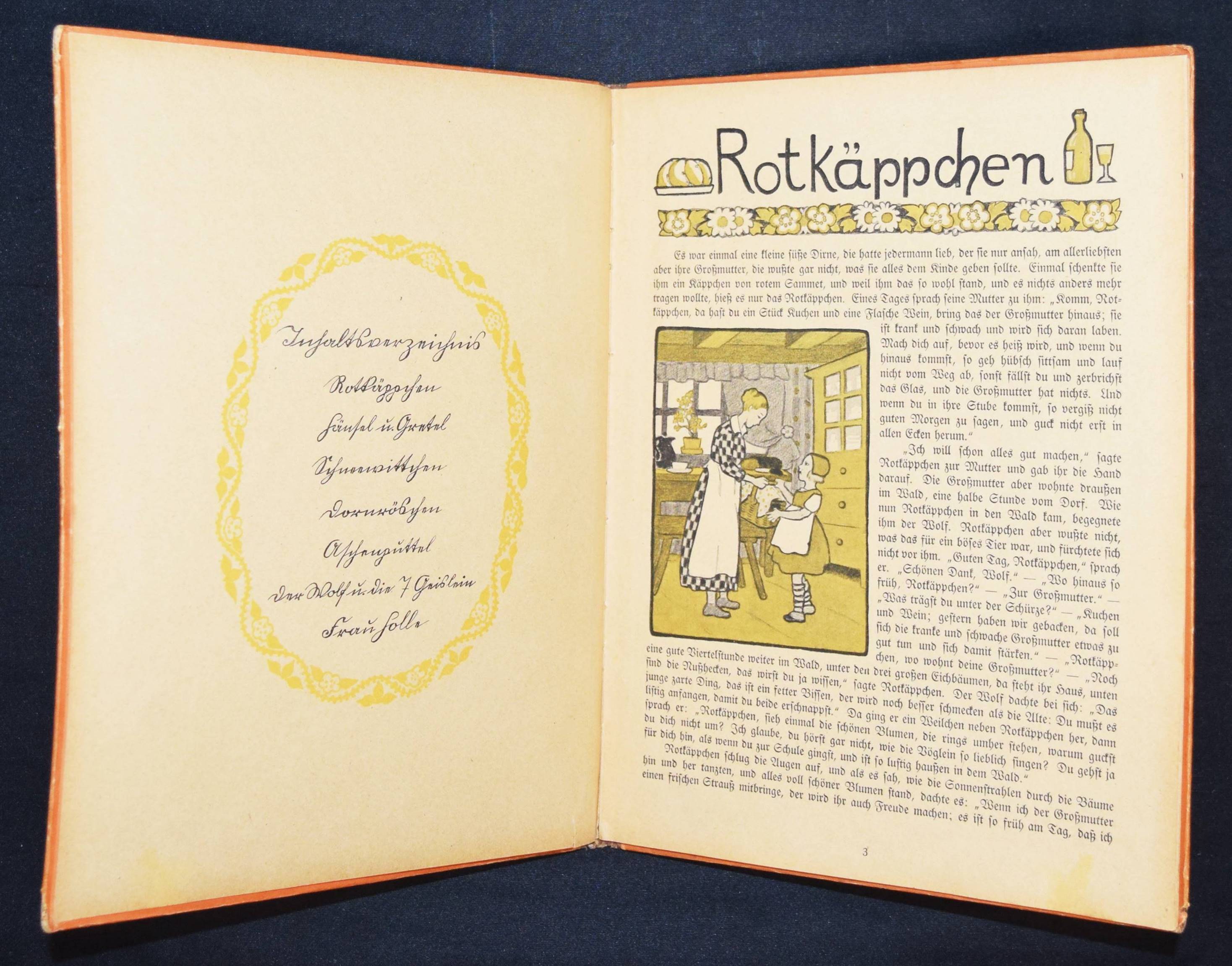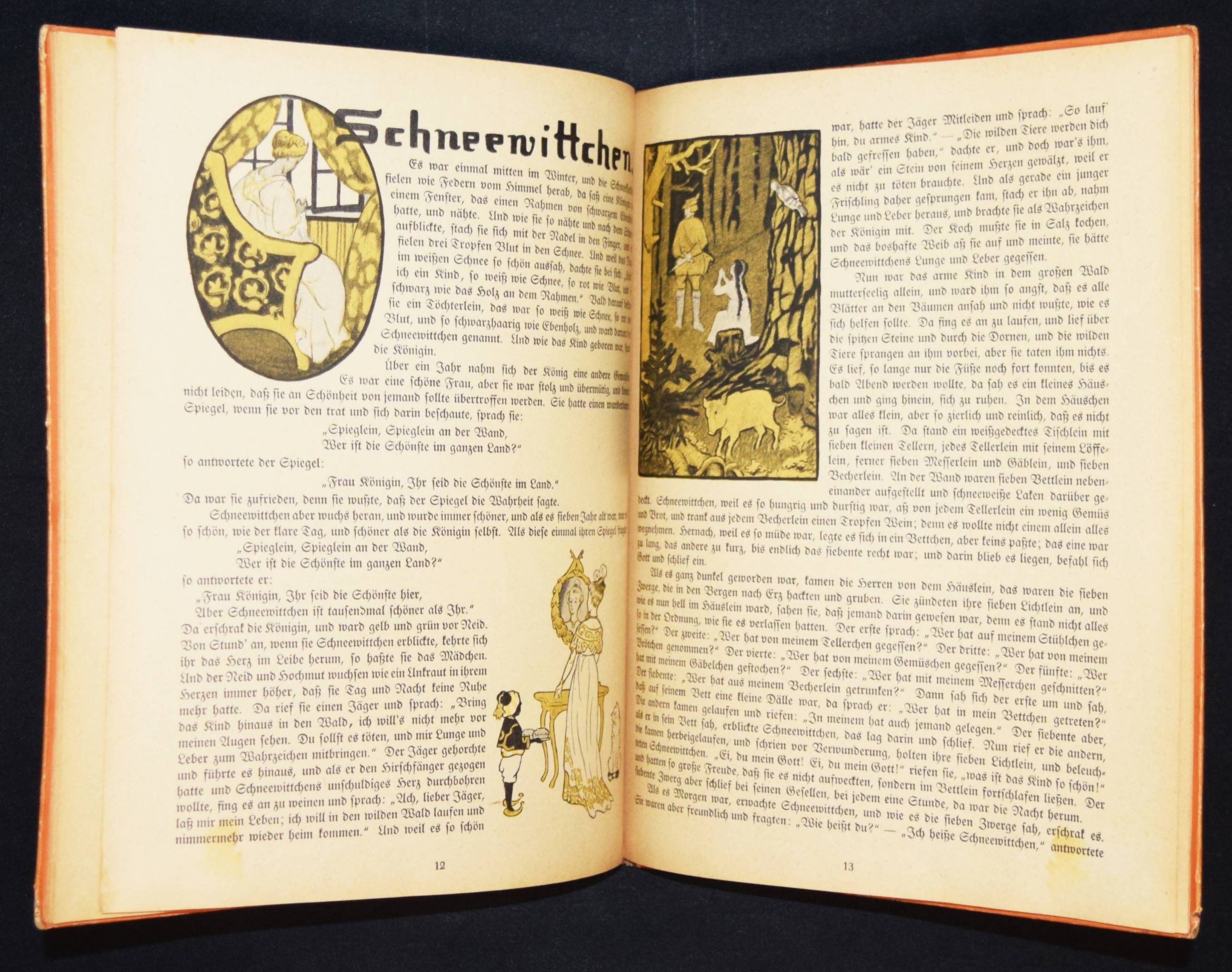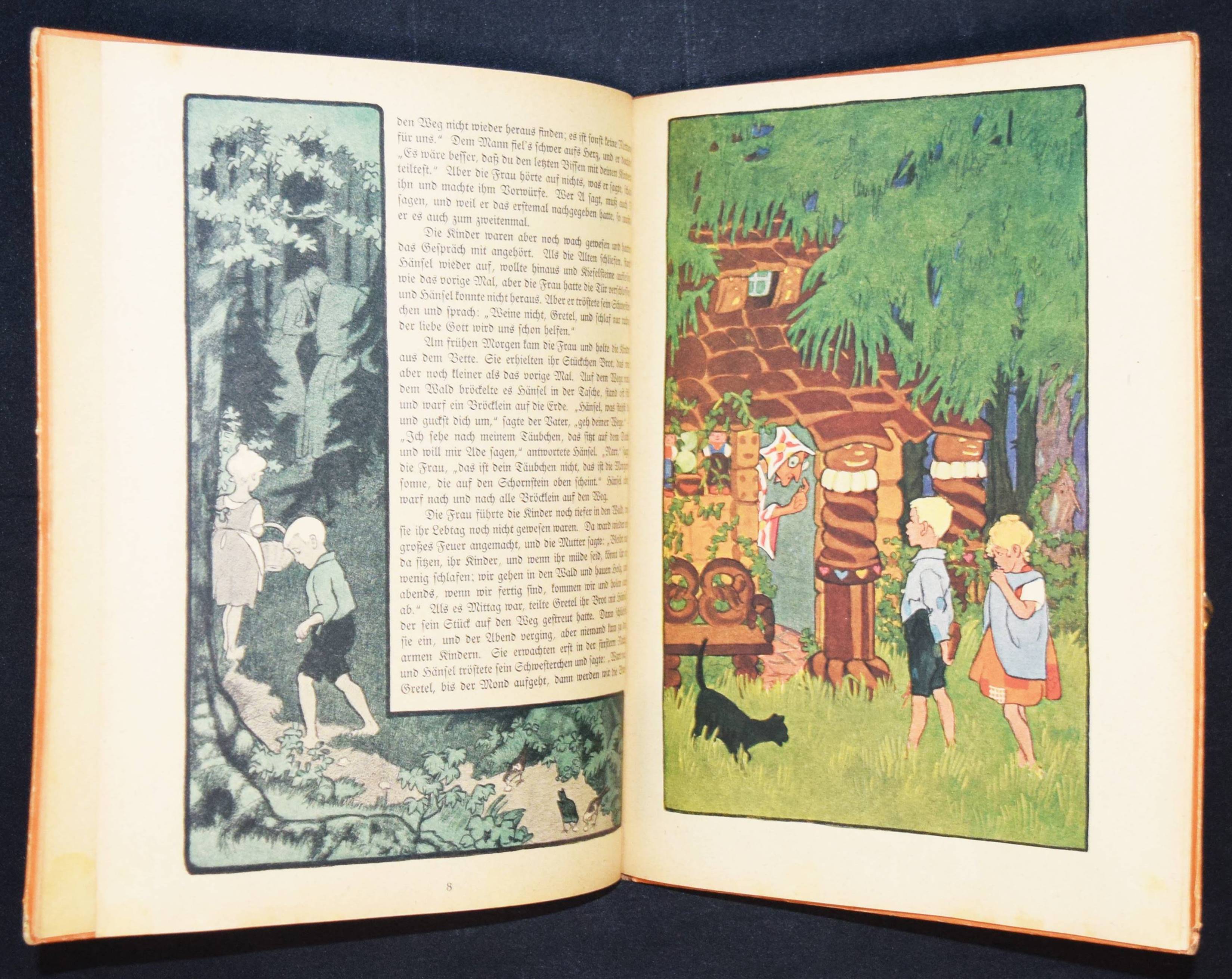 Caspari, Gertrud. Mein Märchenbilderbuch. 4. Aufl. Leipzig, Hahn o. J. (um 1925). 4°. 32 S. mit farbig illustr. Titel, 4 Farbtafeln u. 39 zwei- bzw. dreifarb. Illustrationen. Farbig illustr. OHln. LKJ I, 248. Neubert 29.4. – Zuerst 1921 erschienenes Märchen-Bilderbuch der bekannten Bilderbuchkünstlerin. – Mit den Märchen: Rotkäppchen, Hänsel und Gretel, Schneewittchen, Dornröschen, Aschenputtel, Der Wolf und die 7 Geislein und Frau Holle. – Rücken und Kanten etwas berieben, zeitgenöss. Besitzvermerk a. D., papierbedingt etwas gebräunt, gutes Exemplar.