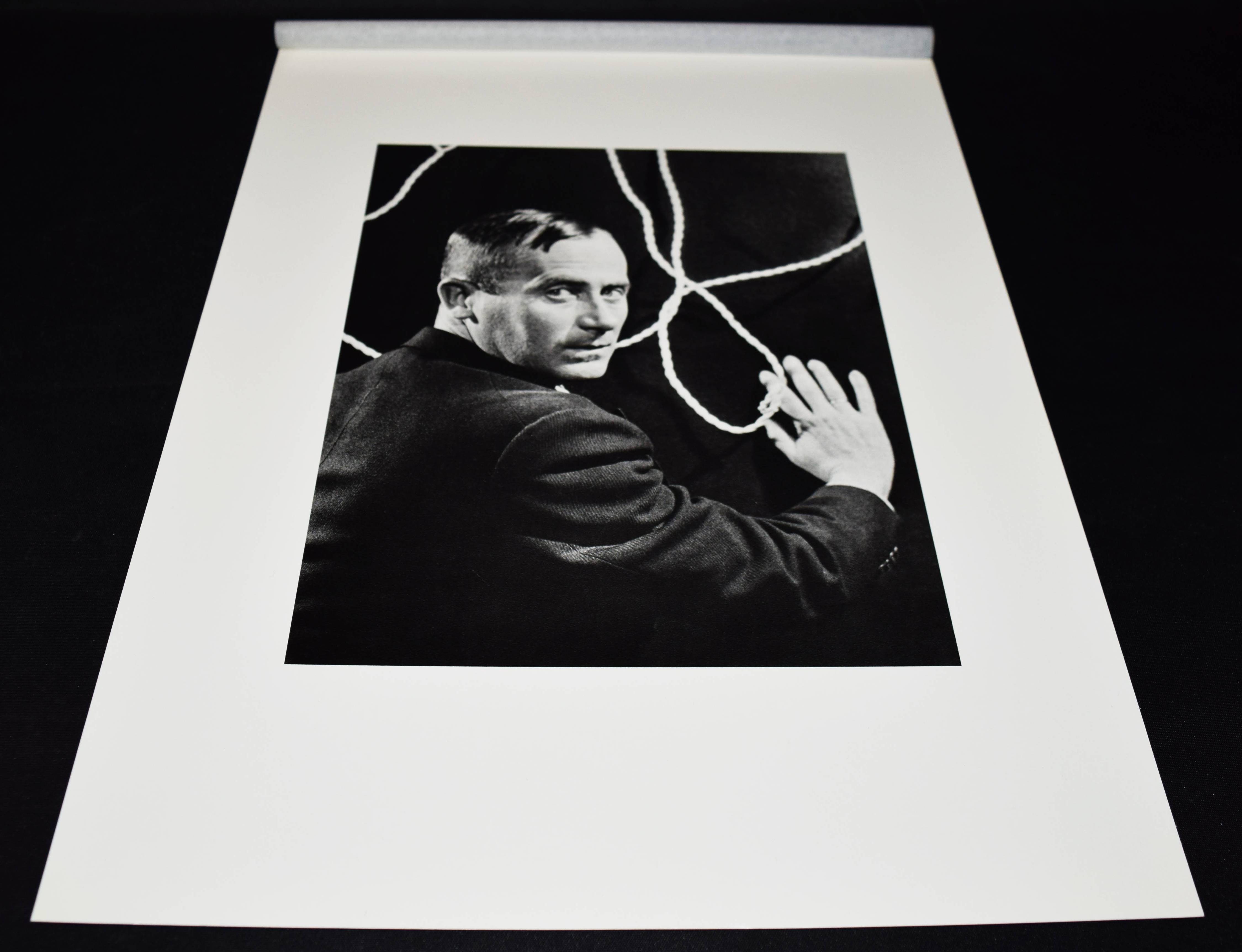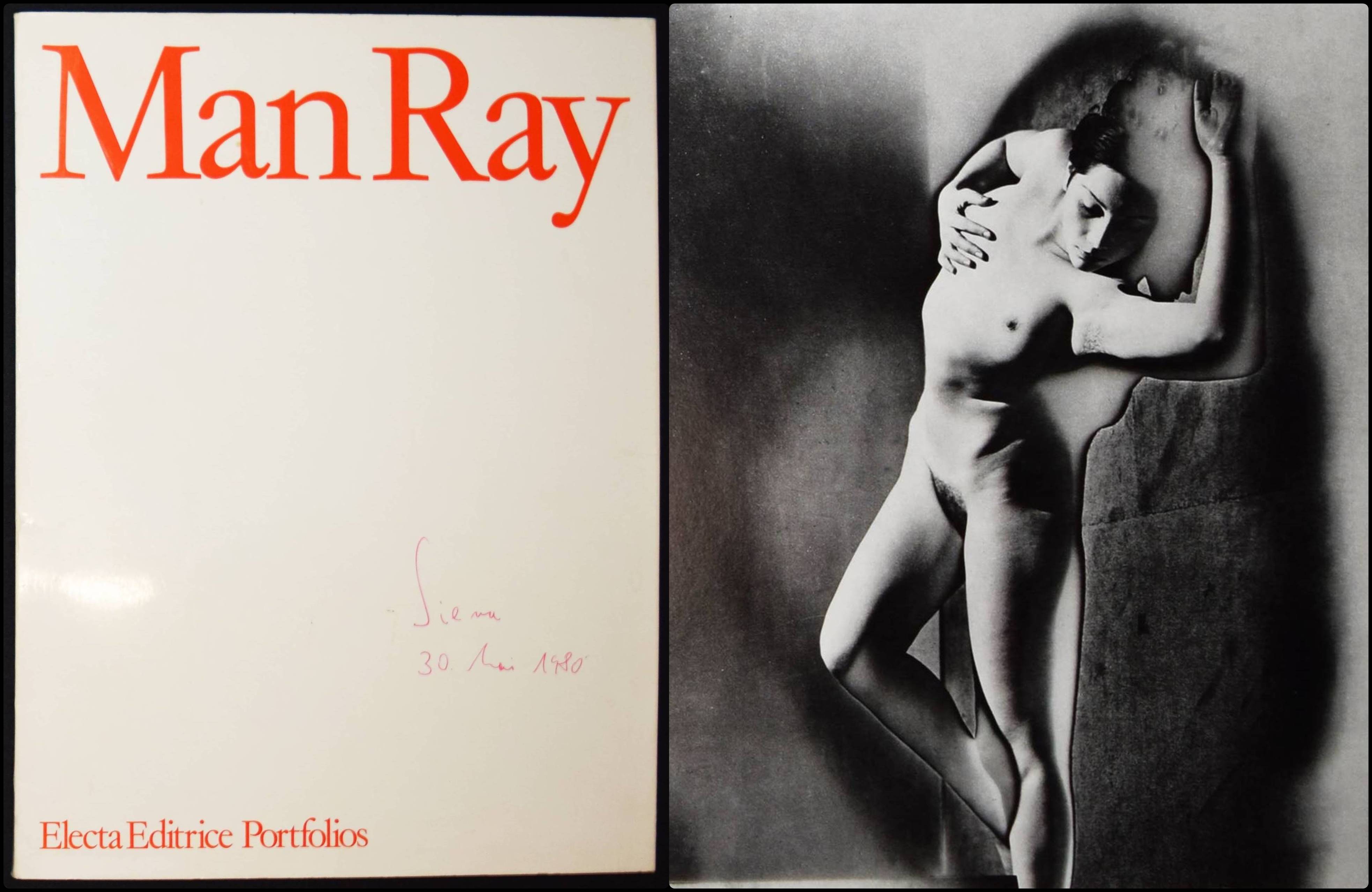 Man Ray – Palazzoli, D(aniela, Ed.). Man Ray. Milano, Electa editrice (1980). Folio (40,5 x 30,5 cm.). Portfolio, [2] Bl. (Text) u. 12 Tafeln. Orig.-Flügelmappe mit mont. Deckelbild i. Orig.-Pappschuber. (Electa editrice Portfolios). Eines von 1000 Exemplaren. – Mit den Aufnahmen „Lo studio nella 8th Street New York 1918-1919 (?)“, „Senza titolo 1926-1927 (?)“, „Rayogramma, 1927“, „Preminenza della materia sul pensiero, 1929“, „Ritratto solarizzato di Georges Braque, 1930“, „Joan Mirò, 1930 (?)“, „Progetto di corpertina per l’album ‚Photographs 1920-1934‘, 1933“, „Rayogramma, 1933“, „Fotografia di moda, solarizzazione parziale, 1935-1936 (?)“, „Rayogramma alla matassa di lana, 1937“, „Illustrazioni per il romanzo ‚Aurèlien‘ di Louis Arago, 1956“ (2). – Jede Tafel mit Seidenhemdchen. – Schuber mit handschr. Vermerk „Sienna 30. Mai 1980“, sehr gut erhalten.
