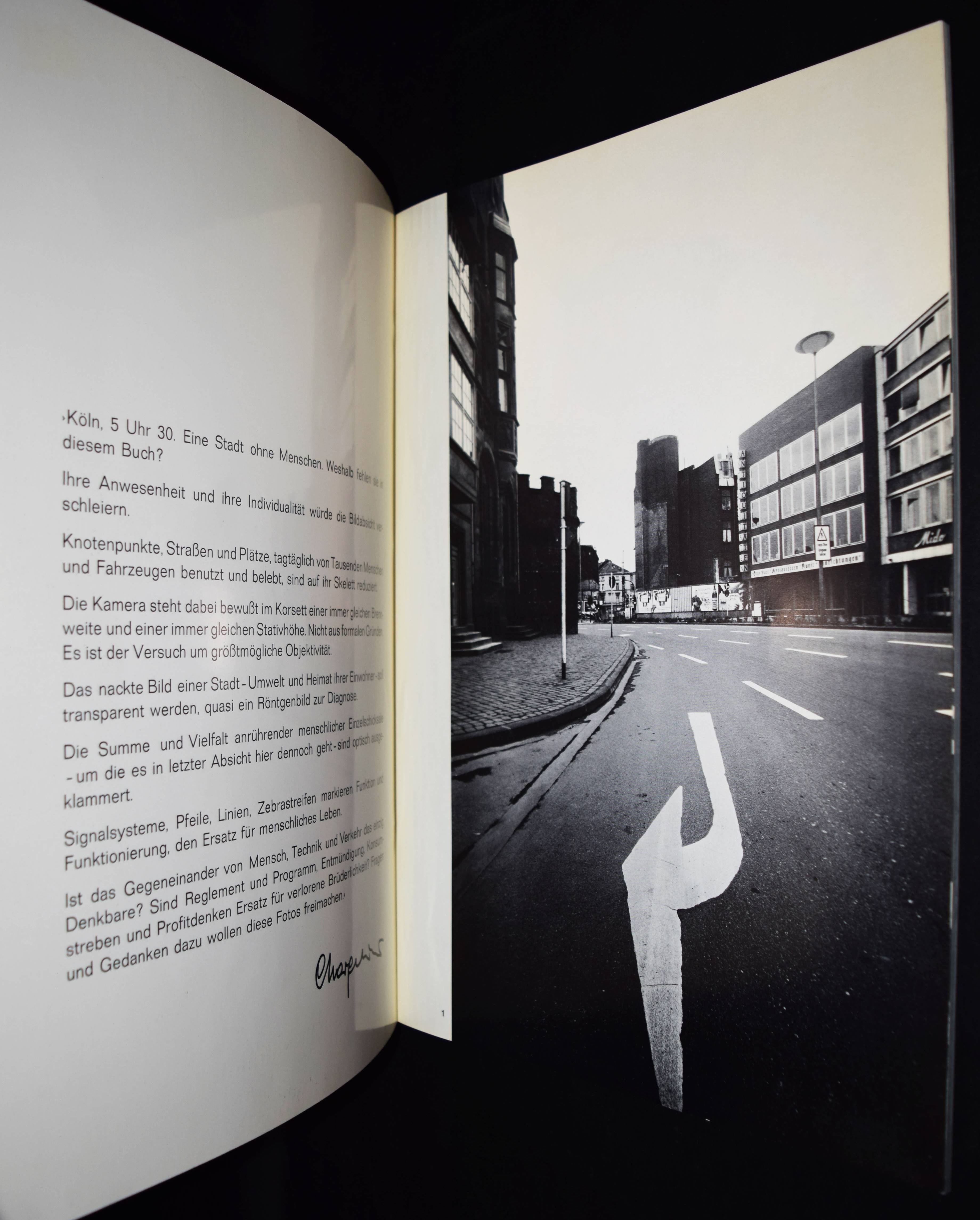 Chargesheimer (d.i. Karl Heinz Hargesheimer) Köln 5 Uhr 30. Köln, DuMont Schauberg (1970). Folio (38 x 28 cm.). [32] Bl. mit 64 Tafeln. Illustr. Orig.-Kartonumschlag mit Pappschuber. Heidtmann 17836. Koetzle 86 (mit Abb.). Parr/Badger I, 223. – Einzige Ausgabe, selten. – „Chargesheimer was one of the most profilic German photographers of the 1950s and 60s, a portraitist and member of the Fotoform group, who also worked for the resurgent German illustrated press before the rise of television changed magazine photography irrevocably. ‚Köln 5 Uhr 30‘ (Cologne 5. 30), however, is not so much a journalistic document as a photographer’s personal project, probably generated by Chargesheimer’s fascination with the deserted early morning city, possibly also as a try-out for one of the wide-angle lenses – 21 mm or 24 mm – that had been newly introduced and were popular with photographers of the day. … The new Cologne might have been a symbol of the postwar German economic miracle, but it represented a homogenized, dehumanized technological society, a product of global corporate capitalism“ (Parr/Badger). – „Wenig schmeichelhaft erscheinen die Städte in Chargesheimers letzten beiden Büchern. Während er für ‚Köln 5 Uhr 30‘ ausschließlich extreme Weitwinkelperspektiven zeigte, die er in den frühen Morgenstunden in den menschenleeren Kölner Innenstadtstraßen aufgenommen hatte, ist das Motivspektrum in ‚Hannover‘ vielfältiger“ (T. Wiegand zu ‚Hannover‘ in Heiting/Wiegand). – „Er war eine schillernde, widersprüchliche Künstlerpersönlichkeit, temperamentvoll im Gespräch, voller Einfälle und Unruhe in seiner schöpferischen Arbeit; im Laufe seines kurzen Lebens war er nacheinander und manchmal nebeneinander Maler, Bildhauer, Lichtgrafiker, Fotogrammer, Erfinder kinetischer Maschinen, Bühnenbildner, Regisseur und Fotograf. Das fotografische Werk in seiner Breite und in seiner Vollendung bleibt seine höchste künstlerische Tat. Und dies nicht nur innerhalb seines eigenen OEuvres: Chargesheimer schrieb als Fotograf eines der wichtigsten Kapitel der Fotografie in Deutschland nach 1945“ (E. Weiss in Koetzle). – Schuber mit Alters- und Gebrauchsspuren und etwas gebräunt, sehr gutes Exemplar.