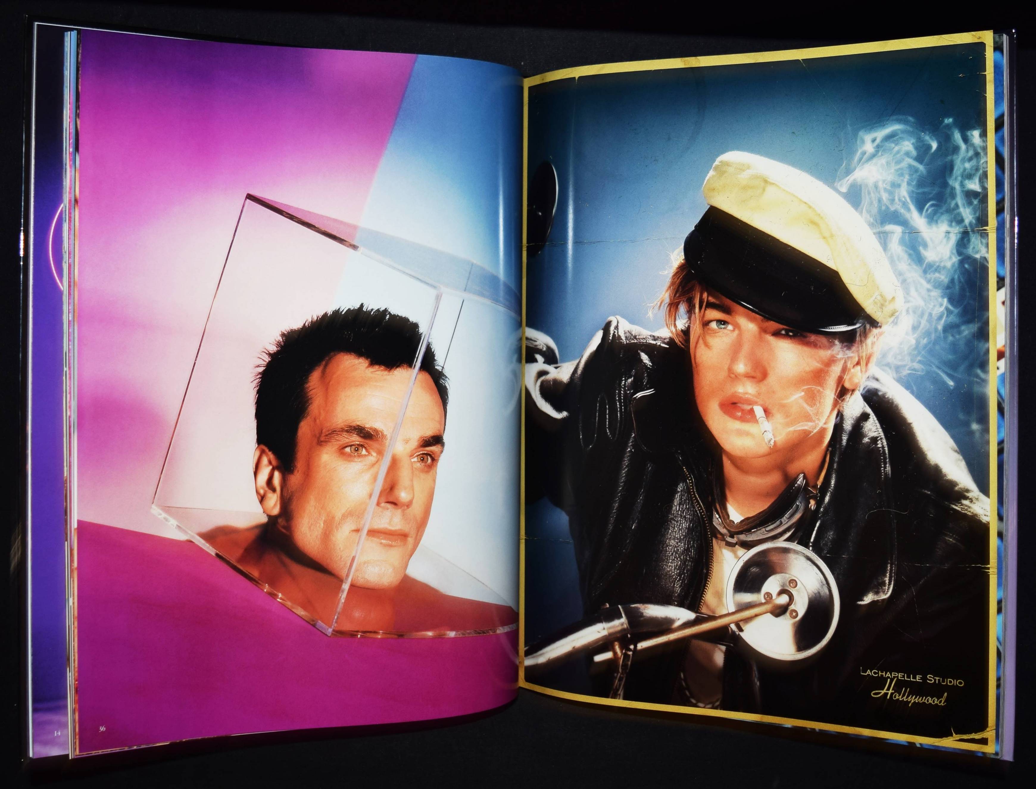 LaChapelle, David. Hotel LaChapelle. Photographs. (Designed by David LaChapelle and Toshiya Masuda). 1st ed. New York, Callawy Editions (1999). Folio (38 x 30 cm.). 167, (1) S. mit 128 teils doppelblattgr. Farbtafeln. Farbig illustr. OPbd. in farbig illustr. Orig.-Pappkassette. Erste Ausgabe. – „A wild new selection of images for the bad boy of comtemporary photography. Guests include Madonna, Leonardo DiCaprio, Ewan McGregor, Pamela Anderson, Drew Barrymore, Marilyn Manson, Mike Myers, Lil’Kim, Uma Thurman, Cher, Naomi Capbell, Cameron Diaz, and more.“ – „David LaChapelle is the Fellini of photography“ (New York Magazine). – Tadellos.