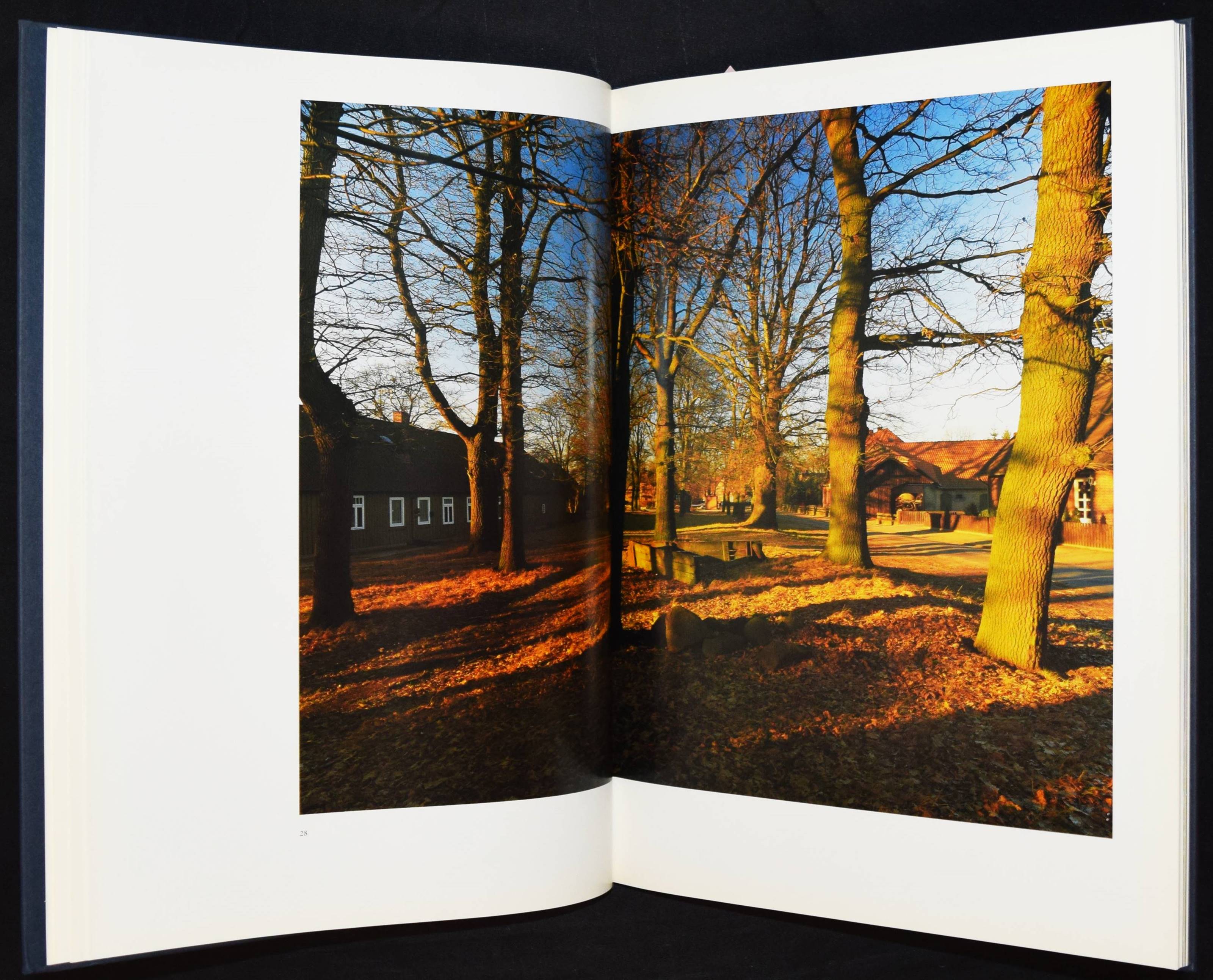 Ruetz, Michael. Arno Schmidt. Bargfeld. Mit Texten von Arno Schmidt, Jan Philipp Reemtsma, Michael Ruetz u. a. Frankfurt am Main, Zweitausendeins (1993). Folio (38 x 28 cm.). 142, (5) S. mit (3 gefalt.) 78 Farbtafeln. OHln. Koetzle 383 f. – Erste Ausgabe. – Von M. Ruetz auf dem Titelblatt signiert. – „Michael Ruetz’ Bilder sind zugleich Denk- und Anschauungsbilder, sinnfällige Demonstrationen dessen, was Rudolf Arnheim als ‚anscchauliches Denken‘ begreift. – Der große van Eyck steht am Anfang der Sehschule, die sich in der Fotografie vollendet hat. Michael Ruetz indessen schlägt die Brücke zu Seherfahrungen, die sich noch niemand so recht vorstellen vermag. – Vergleichbar ist sein Projekt TIMESCASE in Anspruch und Ausmaß nur dem künstlerischen Werk von Hanne Darboven“ (K. Honnef in Koetzle). – Sehr gutes Exemplar.