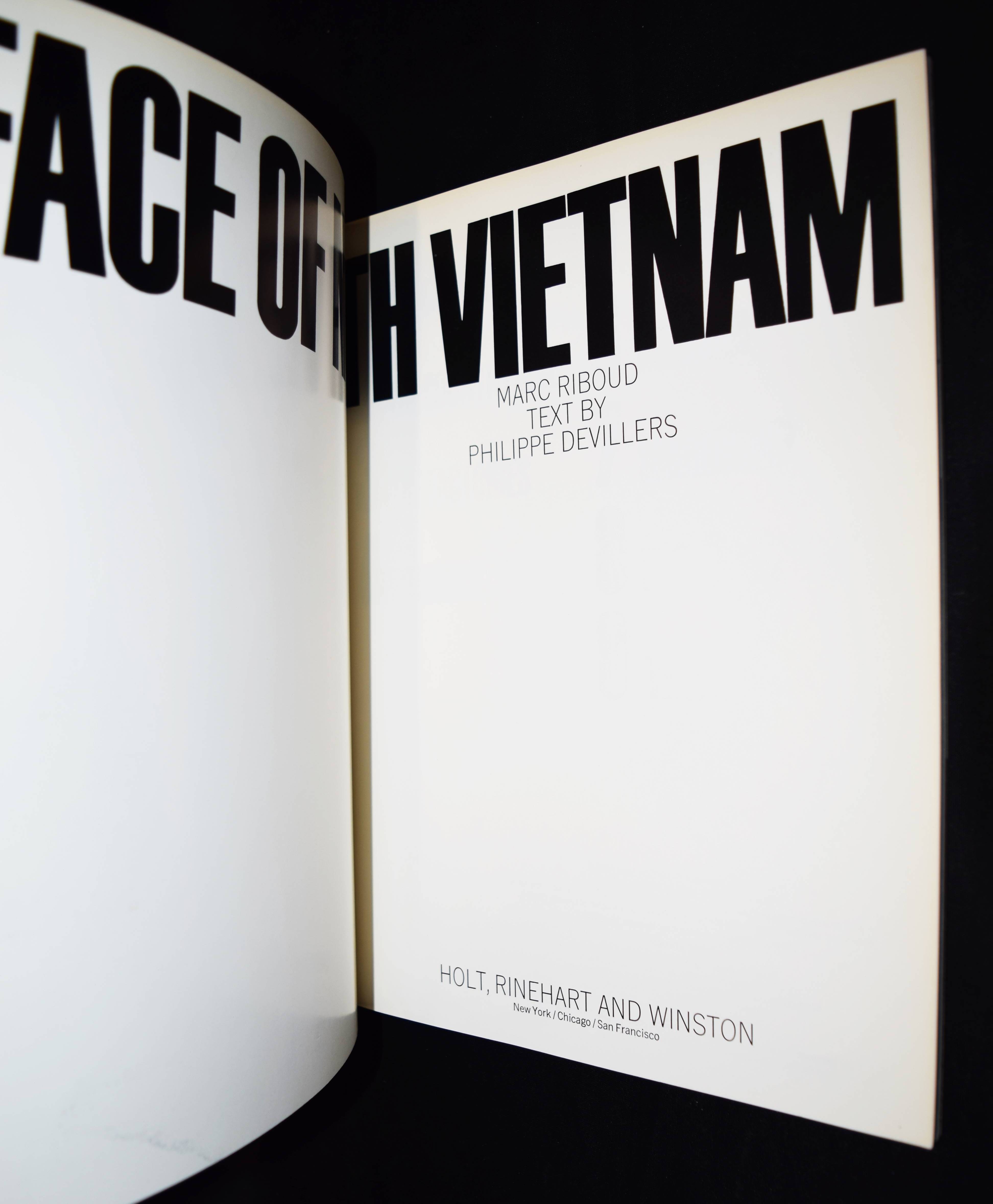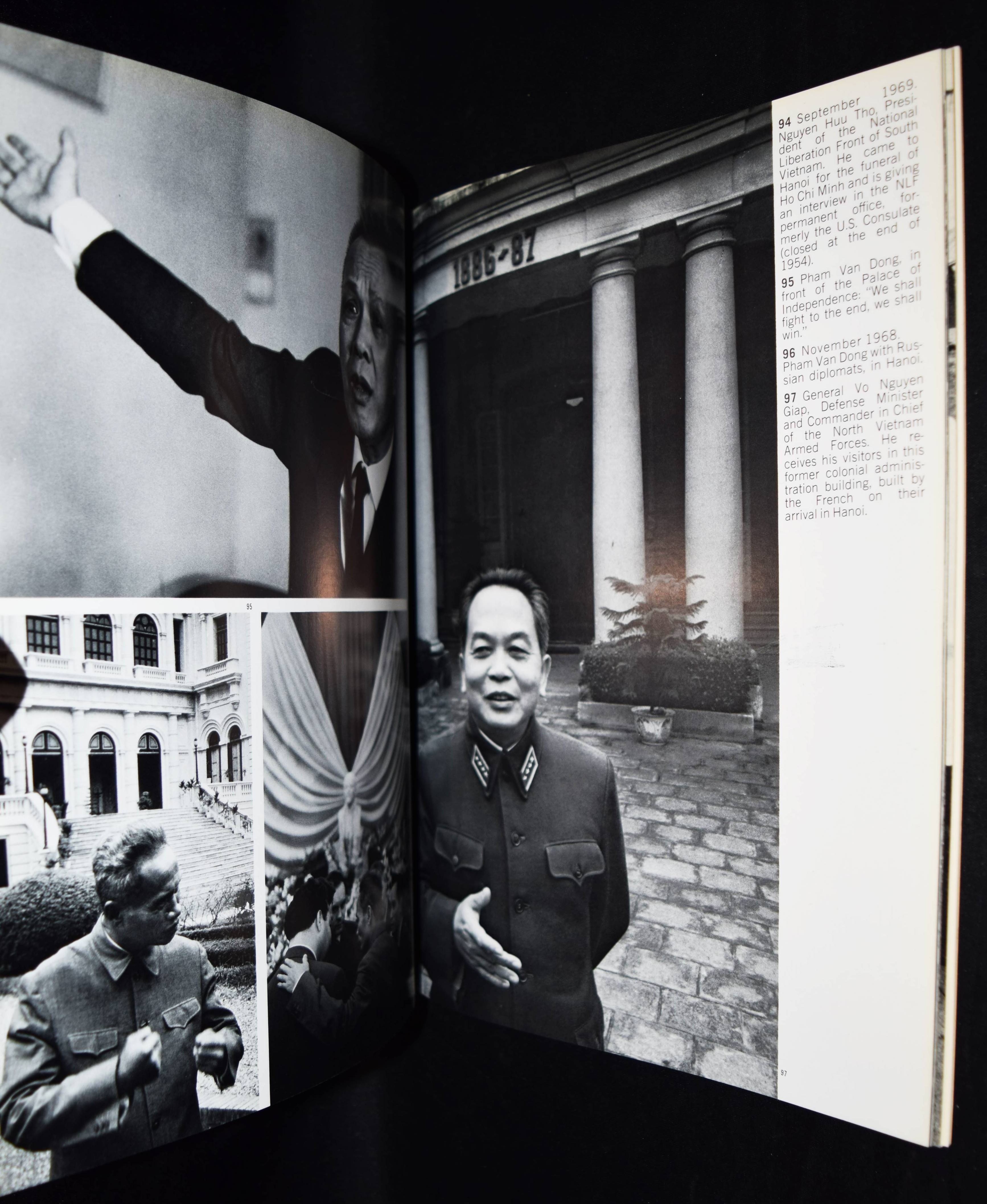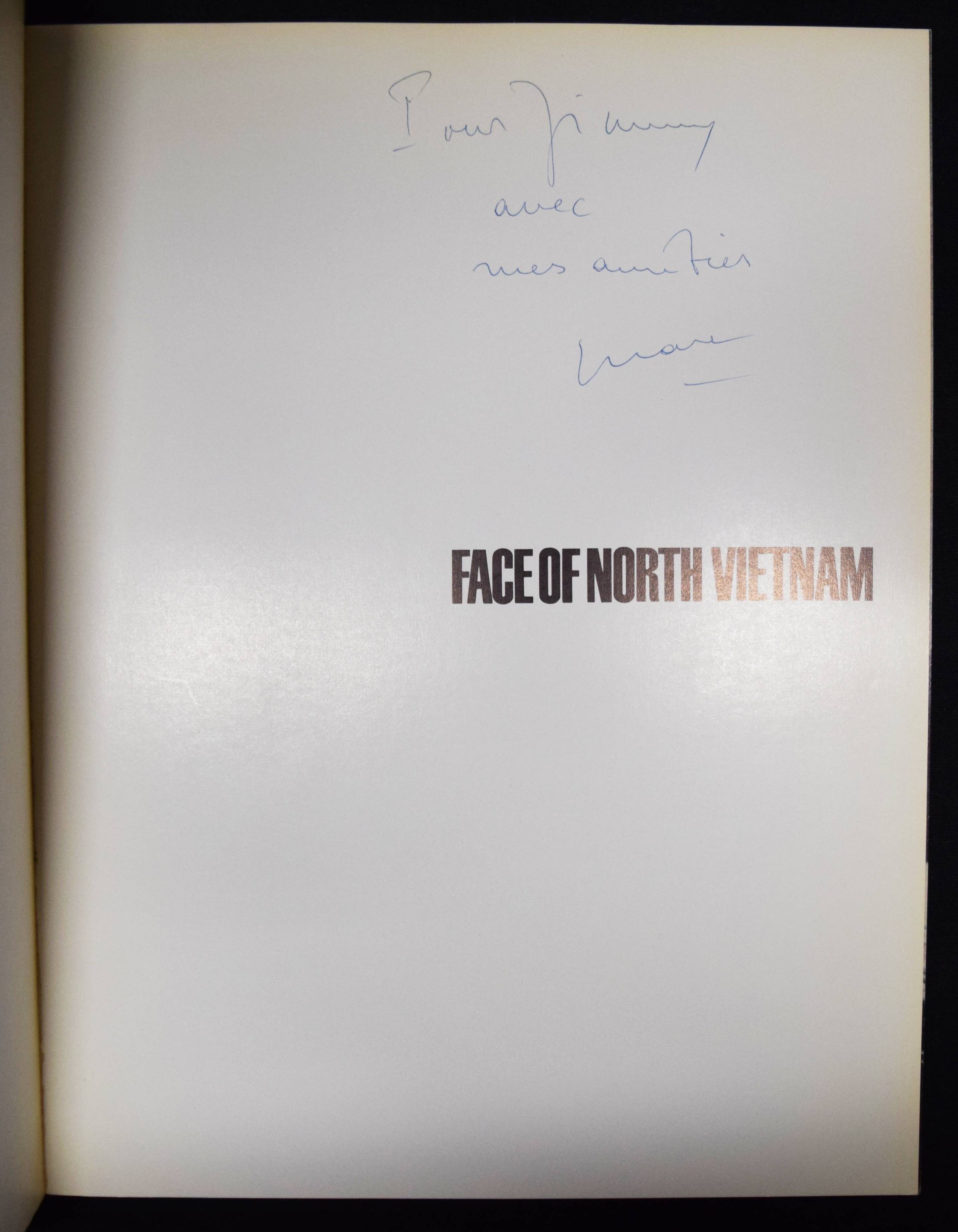 Riboud, Marc. Face of North Vietnam. Text by Philippe Devillers. New York, Chicago, San Francisco, Holt, Rinehart and Winston (1970). [96] Bl. mit teils doppelblattgr. Abb. u. 1 Karte. Illustr. OKart. (Holt Paperback). Koetzle 364 f. – Erste Ausgabe. – Mit eigenhändiger Widmung von M. Riboud „pour Jimmy (d. i. James A. Fox) avec mes amitiés Marc“. – „Fantastic Vietnam War photographs from North Vietnam, of the bombings, the countryside, Hanoi, factories and school life by the renowned French Magnum photojournalist, Marc Riboud“ (Holt). – Der franz. Fotograf M. Riboud (1923-2016), 1975-1976 Präsident von Magnum, war besonders für seine hervorragenden Reportagen aus Fernost (China, Vietnam, Kambodscha) bekannt. – „Ich war schon immer eher für die Schönheit der Welt empfänglich als für Gewalt und Monstrosität. In meinem Sucher Reim und Rythmus zu entdecken, ist mir nach wie vor ein ungeheures Vergnügen. … Für mich ist die Fotografie kein intellektueller, sondern ein visueller Prozess. Das Auge ist geschaffen, um zu sehen, nicht um zu denken. Mir gefällt Walker Evans’ Charakterisierung des Fotografen: Er ist ‚ein fröhlicher Sinnenmensch, denn das Auge wirkt auf die Sinne und nicht auf die Ideen‘.“ (M. Riboud in Koetzle). – Der belgische Fotojournalist James A. Fox (gen. Jimmy, 1935-2022) war seit 1976 Chefredakteur des Magnum-Büros in Paris. „Jimmy was the editorial director of the Paris office, but more than that, he was the conscience of the Magnum Paris office. He was a kind of Father Superior who knew how to hold his very gifted monks, but sometimes a little childish, like photographers can be. He was often the first to whom photographers submitted their work and he was not stingy with criticism. He loved photography, he loved photographers“ (T. Haley im Nachruf von M. Puech). – Sehr gutes Exemplar. – Inscribed by M. Riboud for Magnum Photographer James A. Fox.