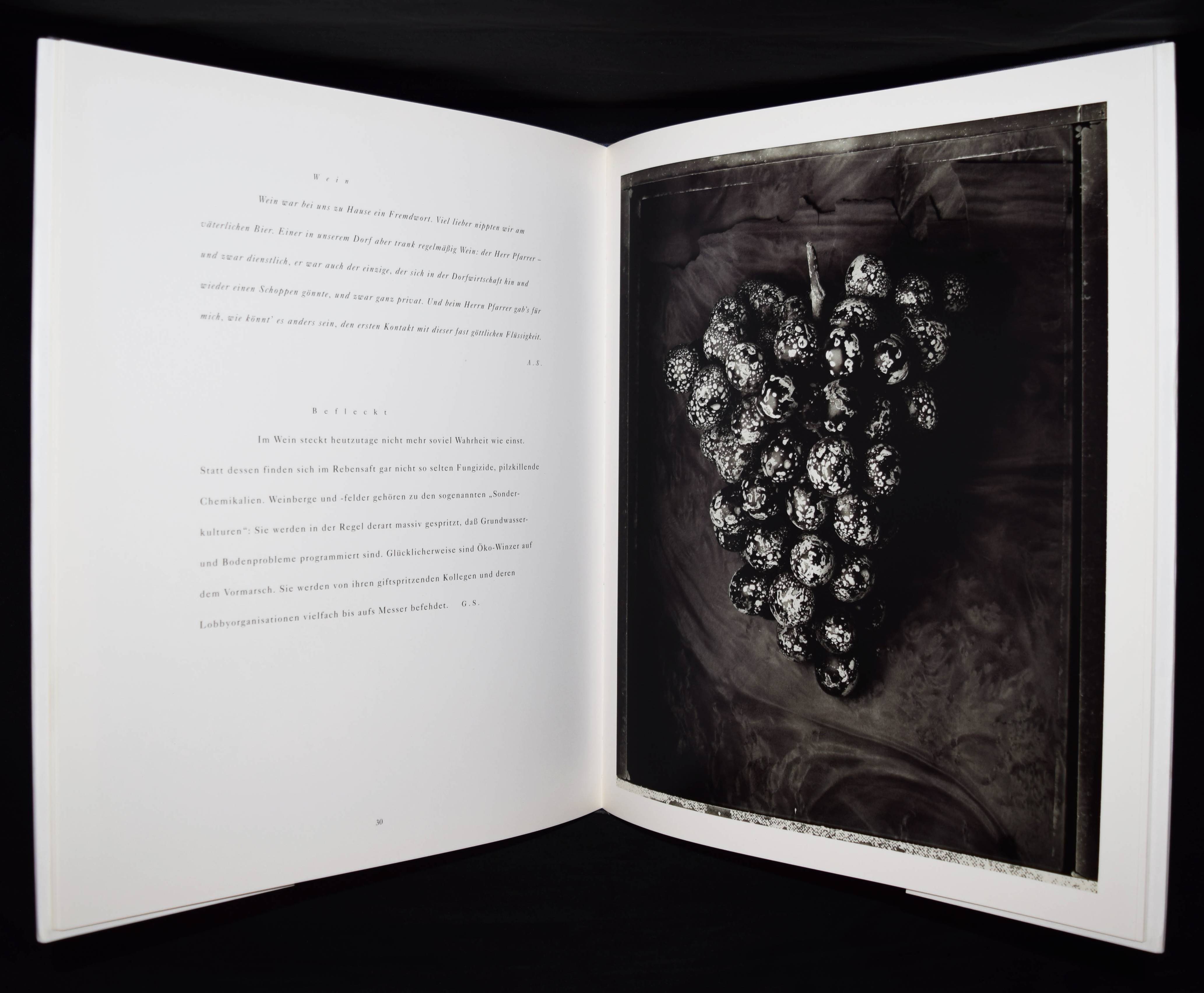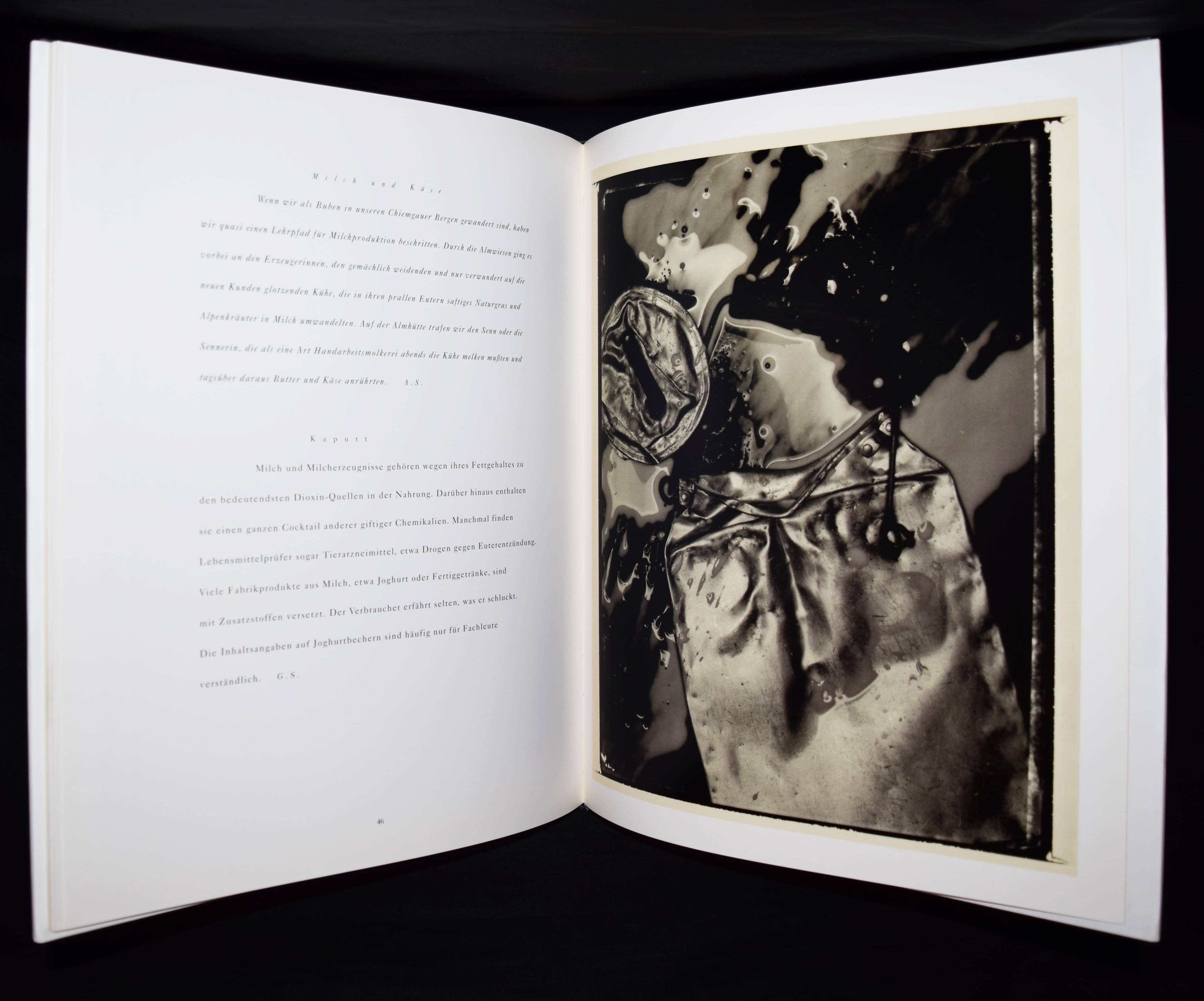 Alvensleben, Chistian v. Das apokalyptische Menu. Texte: Alfons Schuhbeck, Gerd Schuster. Gestaltung: Peter Schmidt und Thomas Nechleba. Wien, Brandstätter (1992). Folio (42 x 35 cm.). 51, (1) S. mit 13 Duotone Tafeln. OLn. mit illustr. OU. Eines von 1000 num. Exemplaren. – „Christian von Alvensleben, geb. 1941 in München, versteht sich als sein eigener Kunde, der unabhängig von Erwartungen seiner Auftraggeber für jedes seiner Projekte einen neuen Look entwickelt. Berühmtheit erlangte er durch seine weltweiten Produktionen für Editorial und Werbung, vor allem in den Bereichen Architektur, Interior, Mode, Beauty, Food, People, Stills und Transportation. Seine Arbeiten erschienen u.a. in A&W Architektur & Wohnen, Dance Magazin, Der Feinschmecker, Frankfurter Allgemeine Zeitung, Geo, Max, Merian, Der Spiegel, Stern, Vanity Fair / USA, Vogue (Deutschland, Italien, Frankreich) oder Die Zeit. … Neben Produktionen für Editorial und Werbung entstehen zahlreichen Foto-Illustrationen für Bücher von Köchen und Genussmenschen wie Alfons Schuhbeck, Alfred Biolek, Christiane Herzog, Bruno Bruni oder „Food in Vogue“. Unter den zahlreichen Ausstellungs- und Buchprojekten sind das vielfach ausgezeichnete Werk Das Apokalyptische Menü, die zwischen 2000 und 2006 auf Rhodos fotografierten Götterbäume, die 2003 begonnene Inszenierung von Zivilisationsmüll als Meeresfrüchte und die 2008/2009 entstandene Serie ‚all inclusive‘, die die Auswirkungen des Massentourismus auf Mensch und Natur kritisch reflektiert, hervorzuheben. Von Alvensleben wurde für sein Werk mit zahlreichen Preisen geehrt, allein vom deutschen Art Directors Club (ADC) erhielt er über 80 Auszeichnungen für Einzelarbeiten, darunter viele Goldmedaillen und sogar, für einen Photographen ungewöhnlich, 1993 den Grand Prix. 2009 verlieh ihm der ADC die Auszeichnung für sein Lebenswerk“ (Deutsche Fotothek). – Sehr gutes Exemplar.