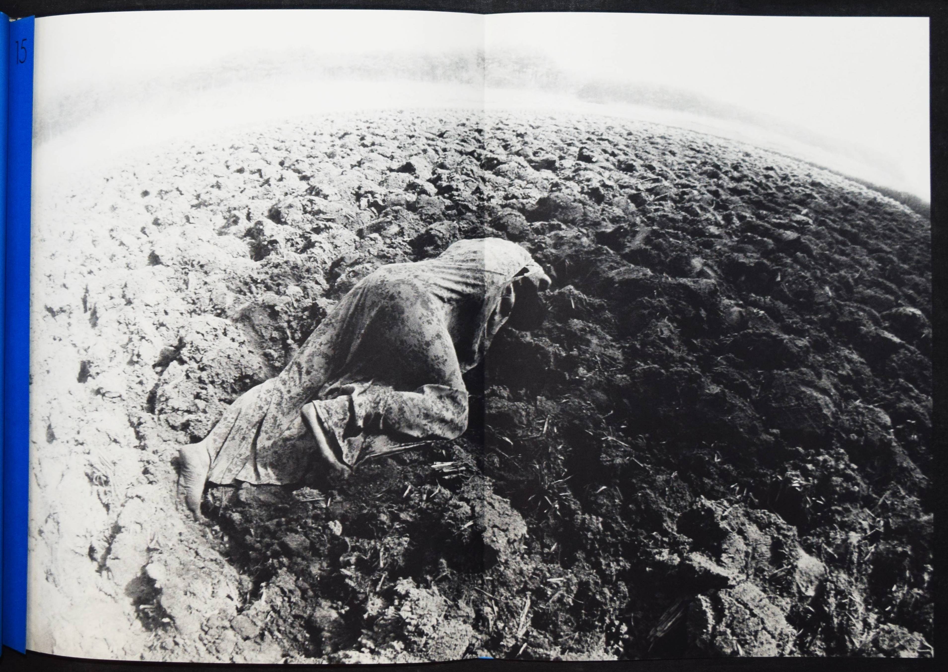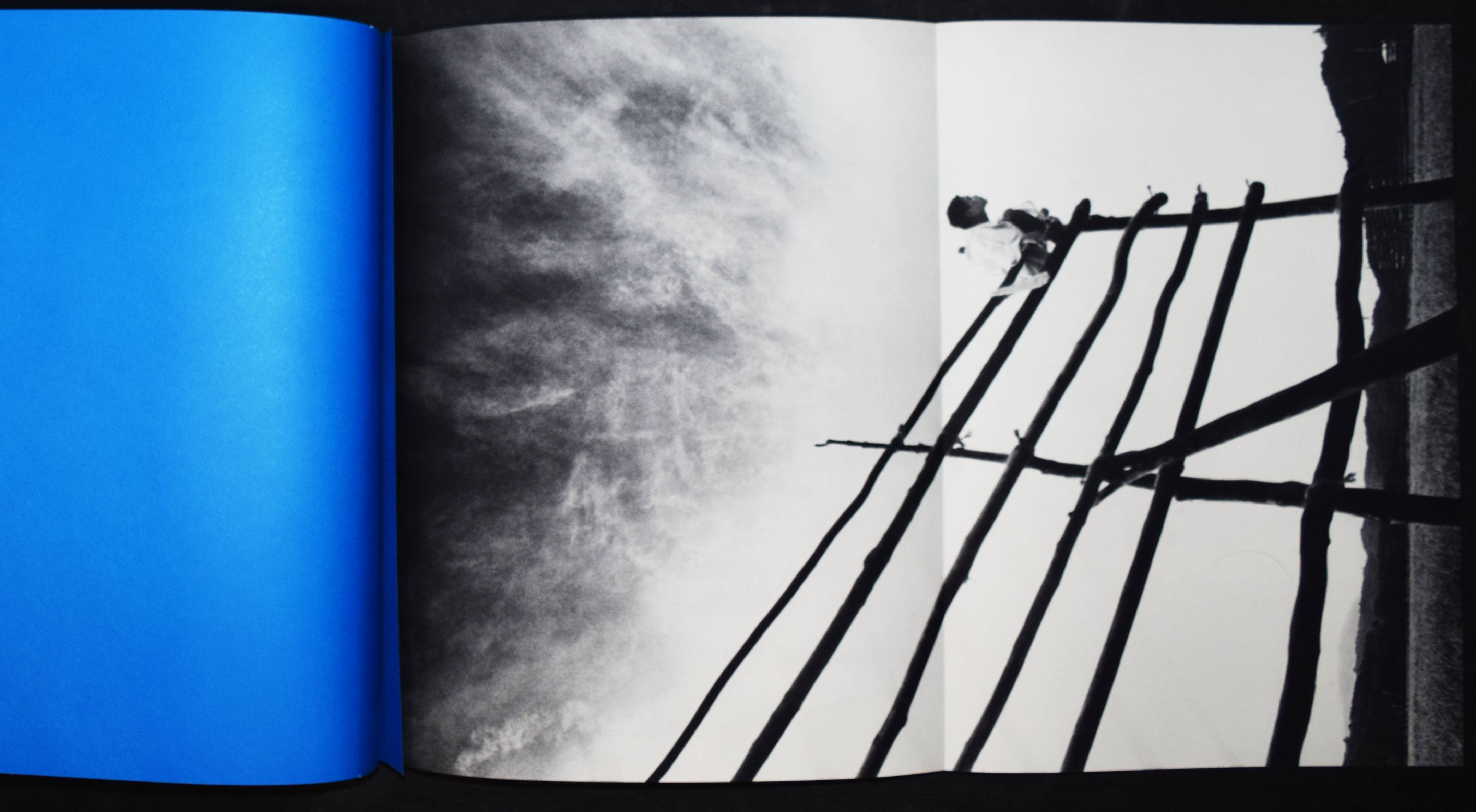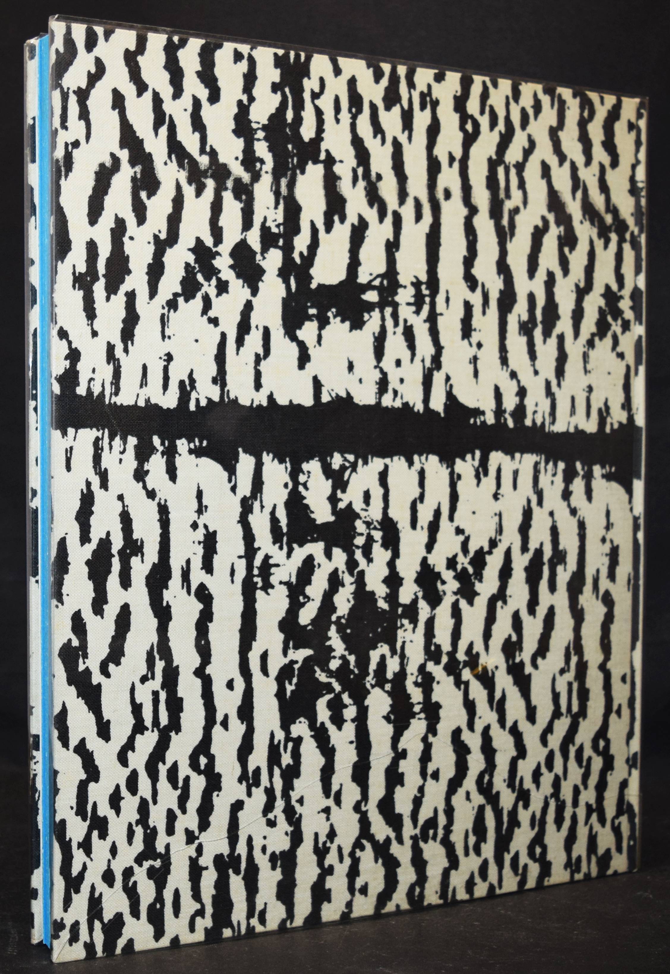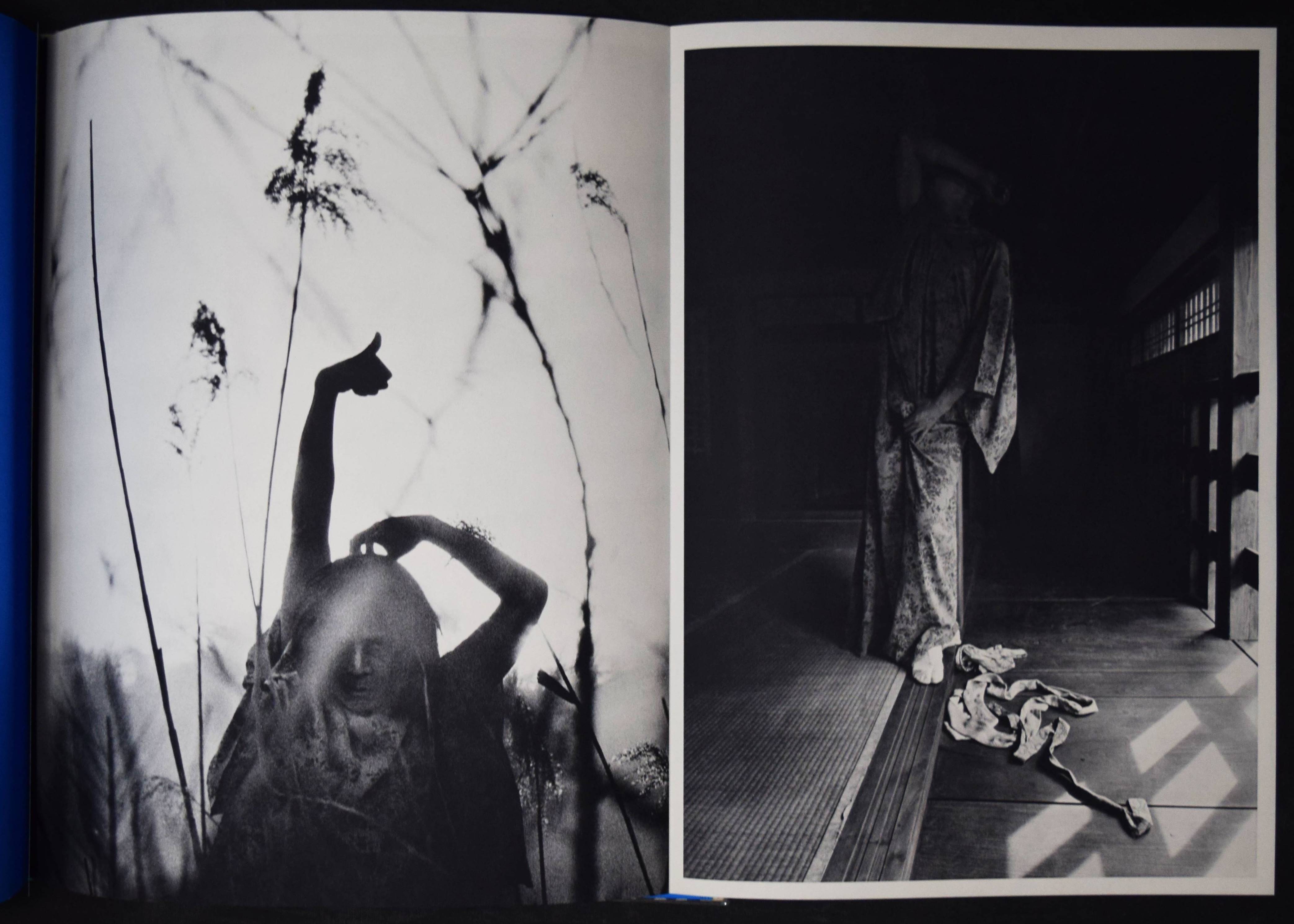 Hosoe, Eikoh. Kamaitachi. (Dance Tatsumi Hijikata. Preface Shuzo Takigushi. Poem Toyoichiro Miyoshi. Design Ikko Tanaka). Tokyo, Gendai Shicho Sha (1969). Folio (38 x 31 cm.). [3] Bl., 34 Tafeln, [2] Bl., alle ausfaltbar und 1 Orig.-Photographie (Silbergelatine, 24,5 x 16 cm.) auf dem Trägerkarton und verso signiert und mit Stempel des Fotografen, dat. 1971. Illustr. Orig.-Leinenband mit Blau bedrucktem Klarsichtschutzumschlag in Pappschuber und Versandkarton mit Deckelschild. Auer 497. Heiting/Kaneko 394 f., 306. Parr/Badger I, 284. The Open Book 248. – Erste Ausgabe. – Eines von 1000 num. Exemplaren. – Von E. Hosoe signiert und mit rotem Signaturstempel T. Miyoshi und mit beil. Orig.-signiertem Silbergelatine Abzug. Plate # 32 (1965, „drei Generationen“). – „Many Japanese photobooks are designed around the ritual of removing them from their slipcases or covers and opening their pages. The second book collaboration between Hosoe and the dancer Tatsumi Hijikata makes a complex ceremony even of viewing each photograph. Every picture page is a blue gatefold that must be carefully unfolded before the image can be viewed. Looking at this book cannot be done in a hurry. Kameitachi derives from a journey that Hosoe made to the far north of Japan’s main island after returning home from a European trip in 1964. He travelled with Hijikata to the Tohoku region. Both had been born there“ (Parr/Badger). – “Hijikata was dissatisfied with the Japanese modern dance scene, feeling that it was merely a copy of the work being done in the West. He wanted to find a form of expression that was purely Japanese, and one that allowed the body to ‘speak’ for itself, thru [sic!] unconscious improvised movement. His first experiments were called Ankoku Butoh, or the Dance of Darkness. This darkness referred to the area of what was unknown to man, either within himself or in his surroundings. His butoh sought to tap the long-dormant genetic forces that lay hidden in the shrinking consciousness of modern man” (Eikoh Hosoe). – Versandkarton mit geringf. Gebrauchsspuren, 2 Tafeln im rechten Rand mit leichten Knickspuren, sonst tadellos.