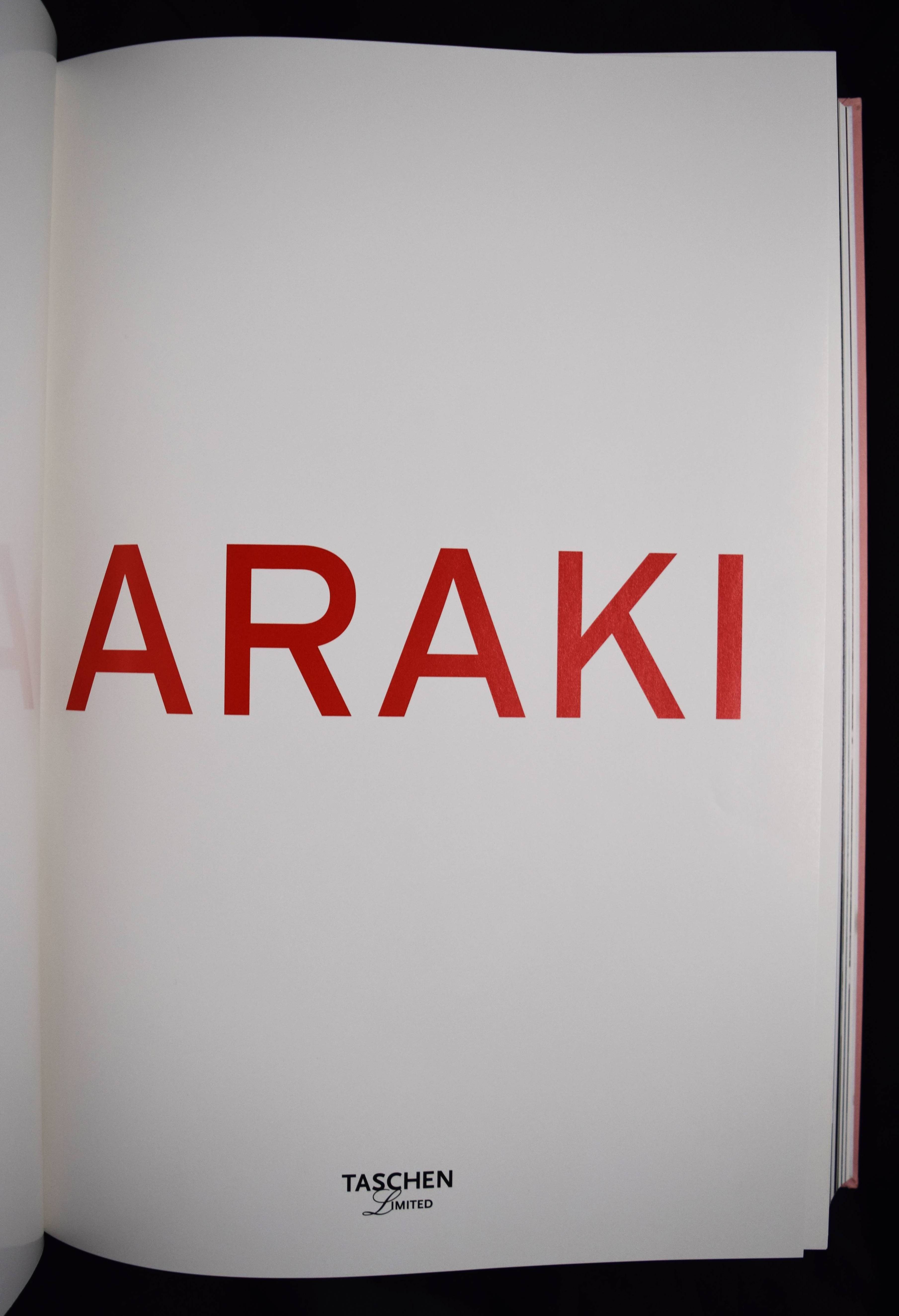 Araki, Nobuyoshi. Araki. Köln, Taschen (2002). Folio (51 x 35,5 cm.). 631 S. mit zahlr. Farbtafeln. Rosafarbiger Orig.-Leinenband in Leinen-Buchkassette. Eines von 2500 num. Exemplaren, im Druckvermerk von N. Araki signiert. – Text in Deutsch, Englisch und Französisch. – „Dieses Buch enthält alles über mich. Es ist ein 60-Jahres-Vertrag gewesen. Fotografie ist Liebe und Tod – das wird auf meinem Grabstein stehen“ (N. Araki). – „Nobuyoshi Araki selbst nennt diesen signierten Rekordband „ein Epitaph für meine ersten sechzig Jahre“. Von in der Bondage-Kunst des kinbaku-ki gefesselten Frauen bis hin zu sinnlichen Blumenaufnahmen reduziert Araki Jahrzehnte fotografischen Schaffens auf rund 1.000 exemplarische Bilder – die ultimativ persönliche Rückschau auf sein umfangreiches und umstrittenes bisheriges Lebenswerk. – Nobuyoshi Araki wurde 1940 in Tokio geboren. Im Alter von zwölf Jahren bekam er von seinem Vater eine Kamera geschenkt und ist seither der Fotografie verfallen. Er studierte Fotografie und Film an der Chiba-Universität und machte bald darauf seine ersten kommerziellen Bilder. 1970 stellte er seine berühmten Xeroxed Photo Albums her, die er in limitierter Auflage produzierte und an Freunde, Kunstkritiker und Fremde verschickte, die er willkürlich aus dem Telefonbuch aussuchte. Mit seinen kühnen, gewagten Fotos sorgte Araki immer wieder für öffentliche Empörung und Zensur, besonders in seiner japanischen Heimat. Doch weder ließ er sich davon beirren noch konnte dies seinen Einfluss schmälern. Sein imposantes Werk umfasst bereits weit über 400 Fotobände“ (Taschen-Verlag). – Buchkassette geringf. fleckig, sehr gutes Exemplar.