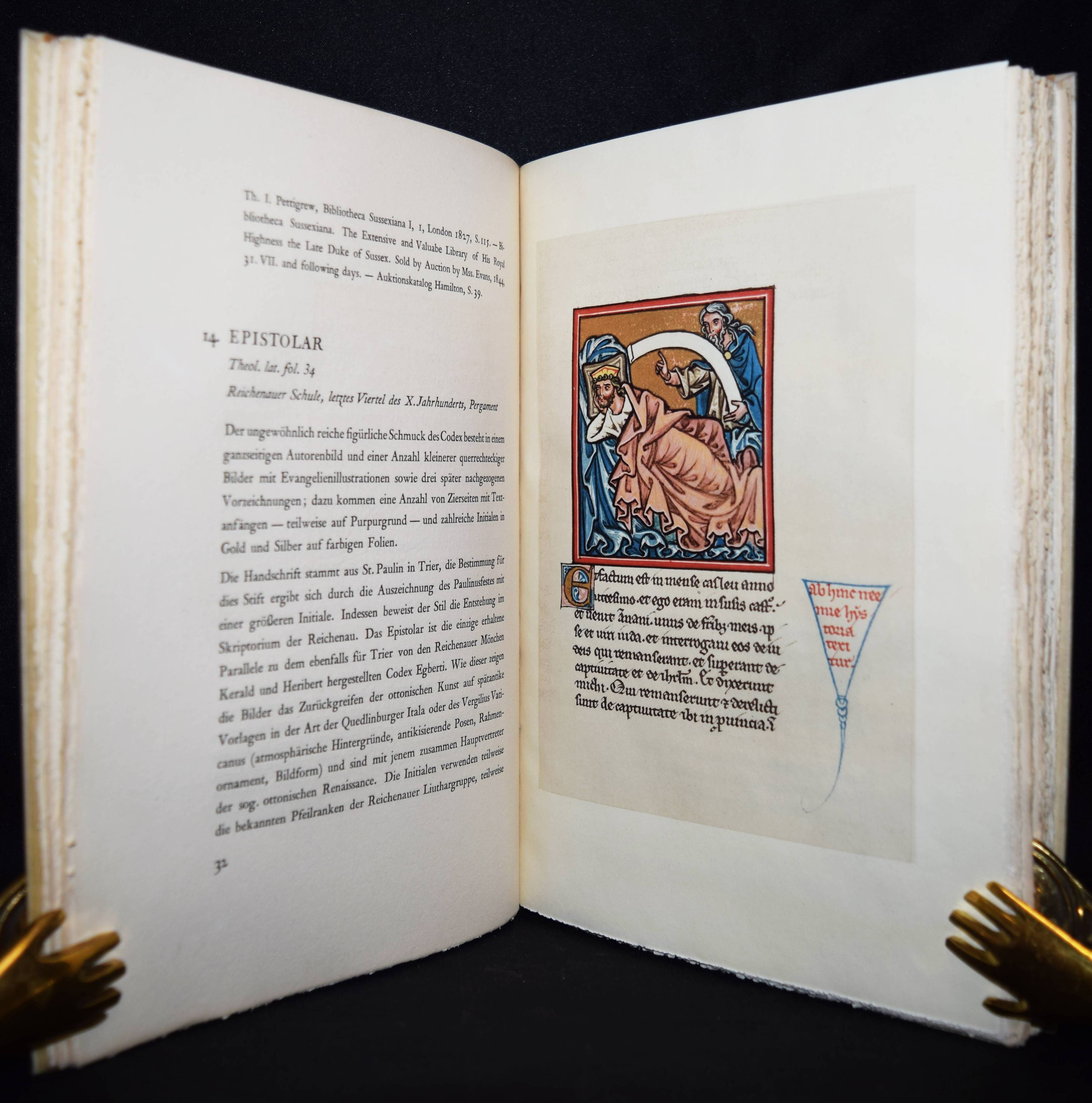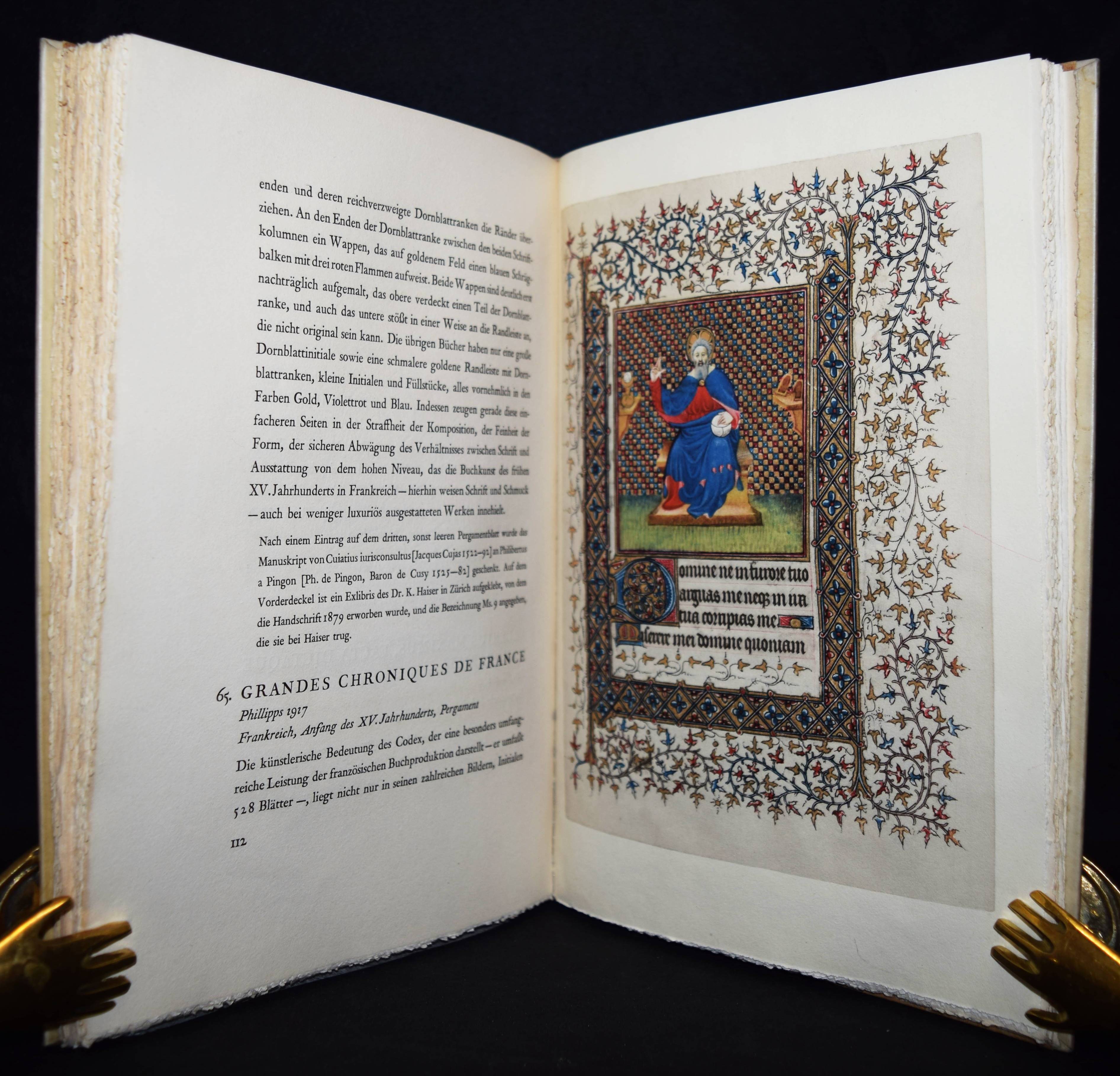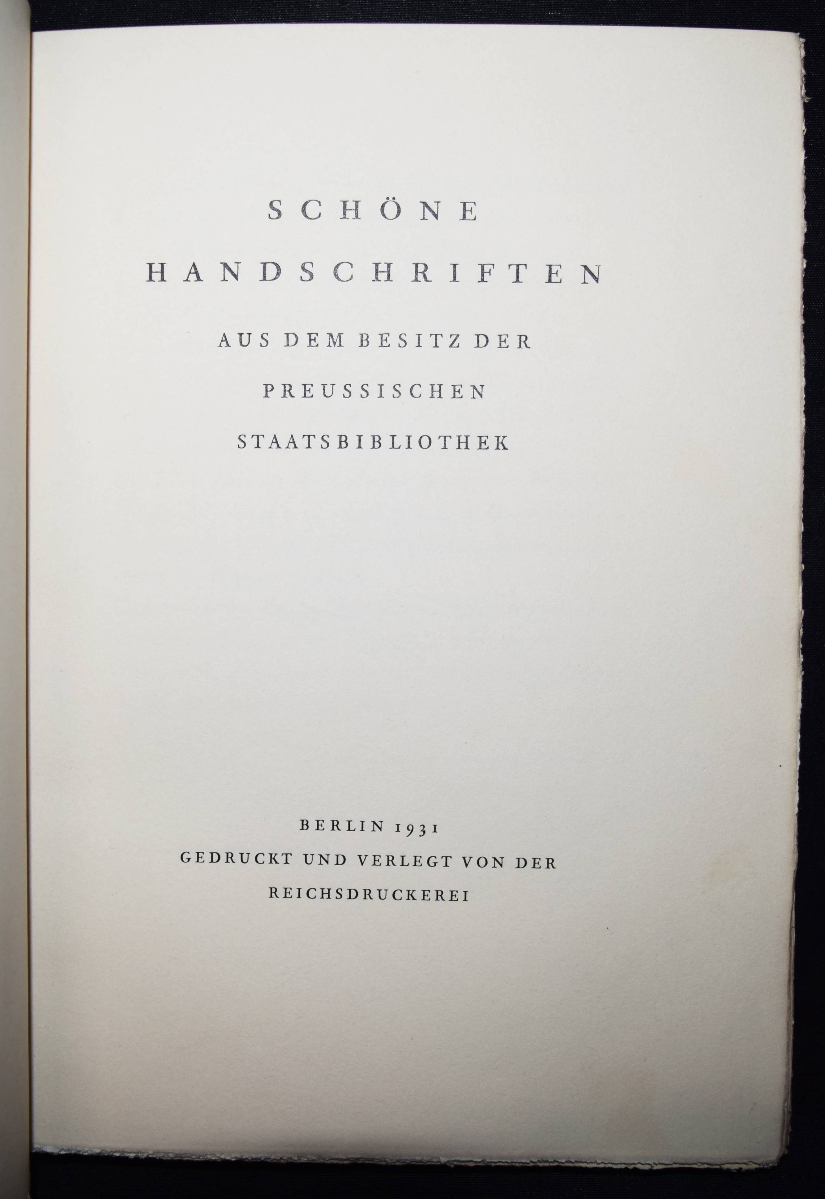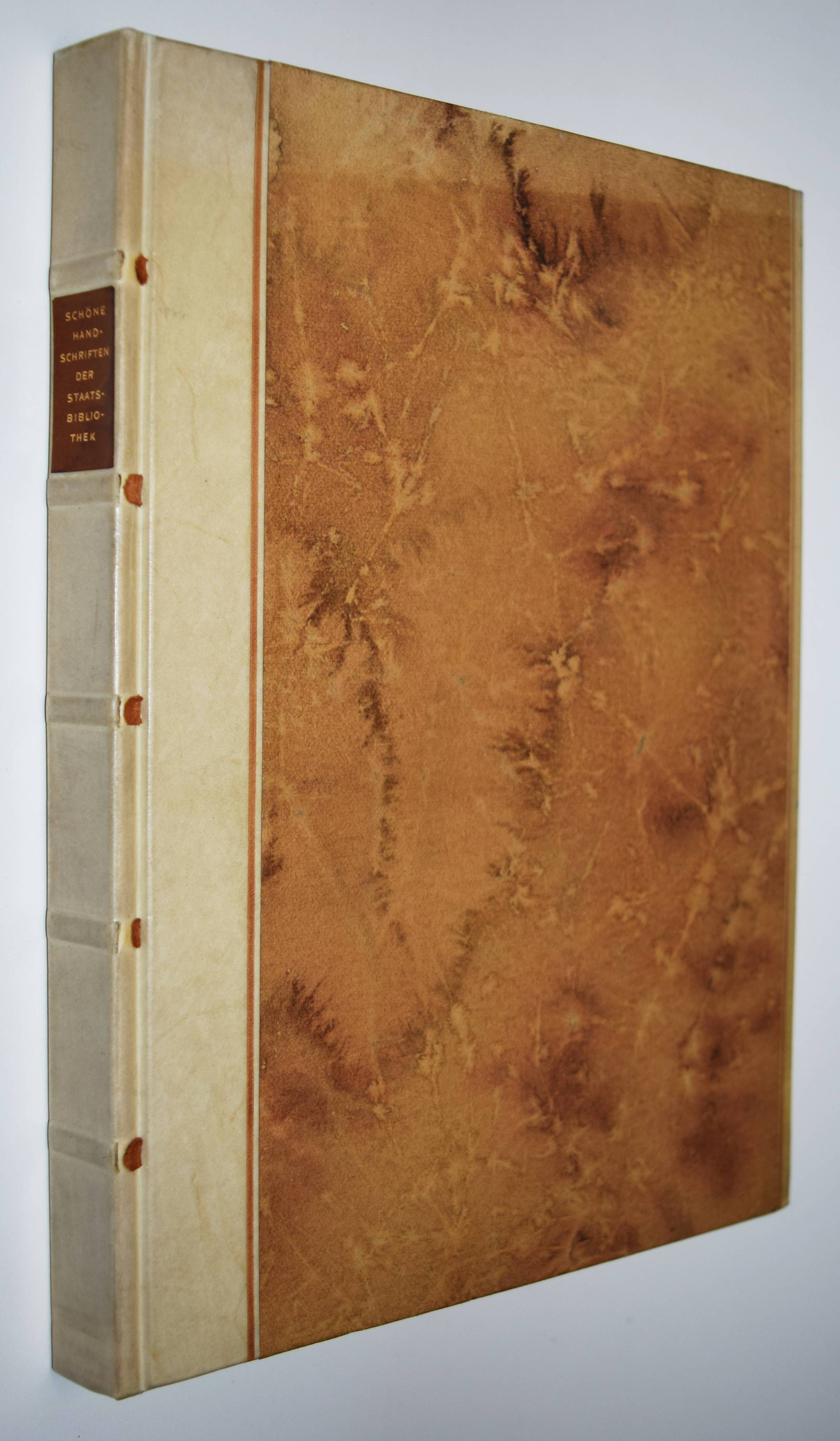 (Boeckler, Albert). Schöne Handschriften aus dem Besitz der Preussischen Staatsbibliothek. (Für die Teilnehmer der Jahresversammlung der Gesellschaft der Bibliophilen am 14. – 16. November 1931 zu Berlin). Berlin, Reichsdruckerei 1931. Gr.-8°. 135 S. mit 6 Farbtafeln. OHprgt. mit goldgepr. Rückenschild. In kleiner Auflage, bibliophil gestalteter Buchkatalog. – Sehr gutes Exemplar.