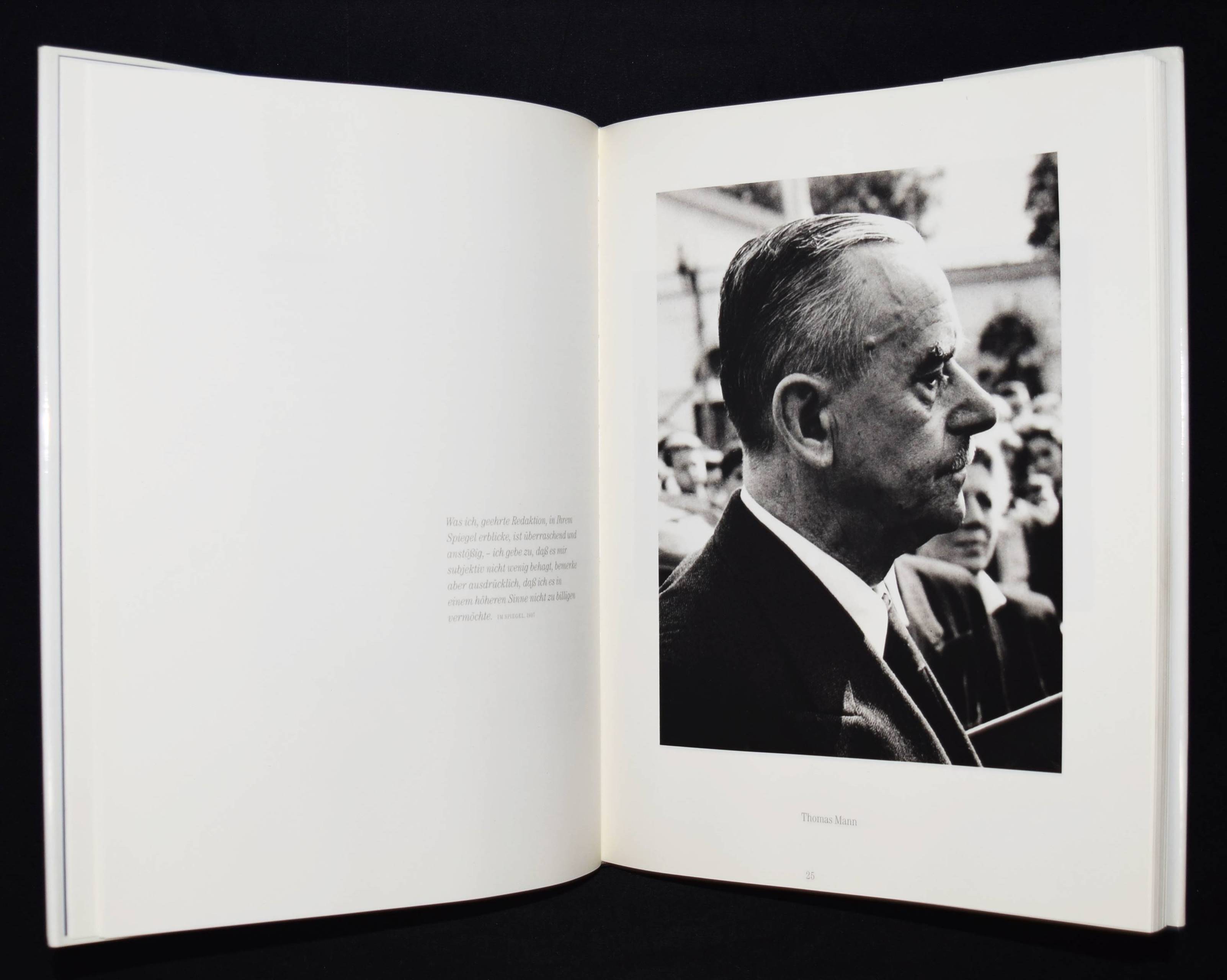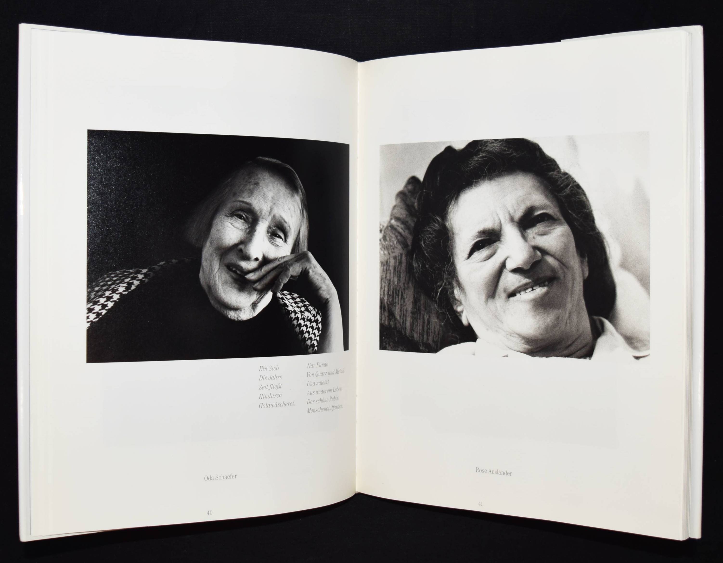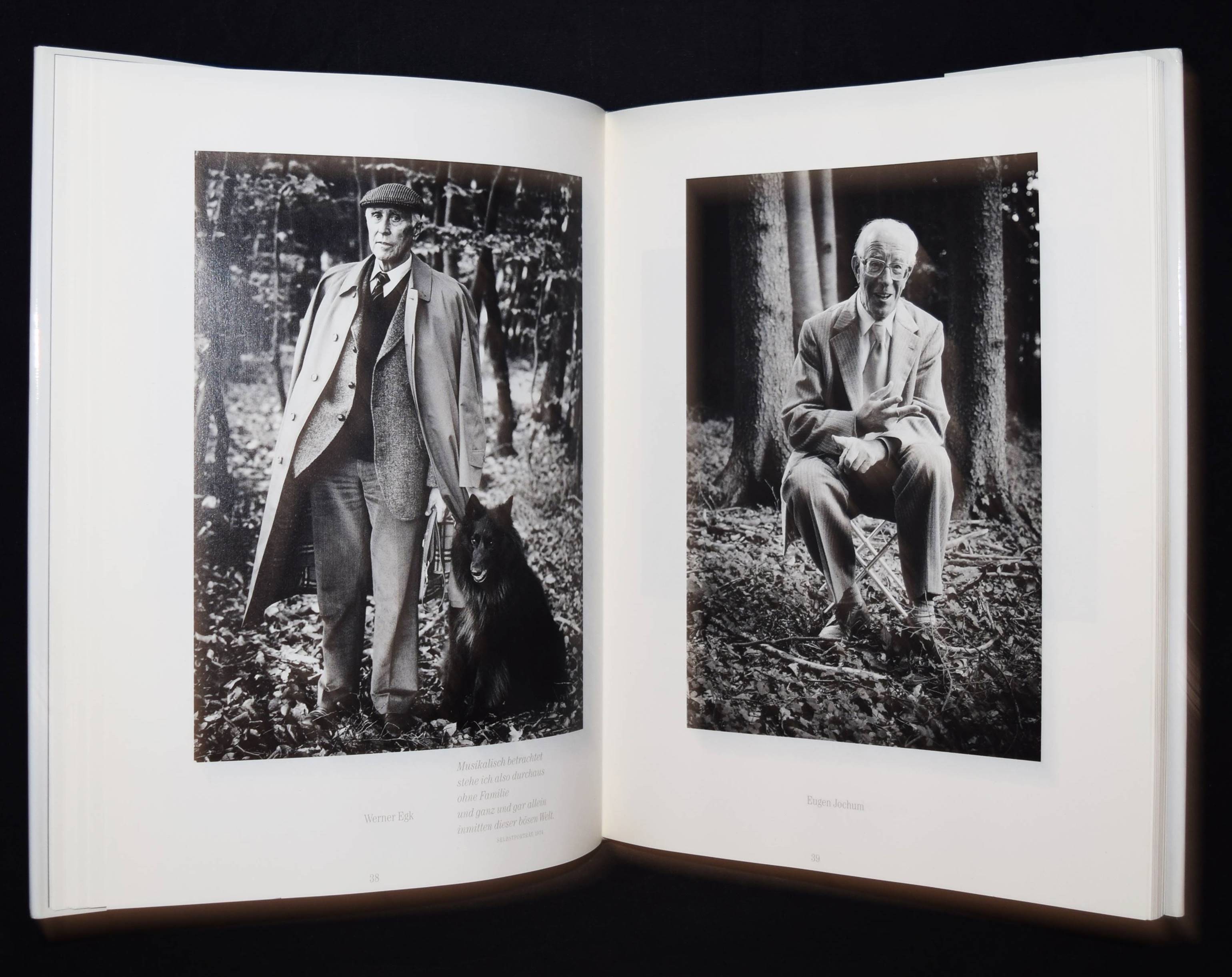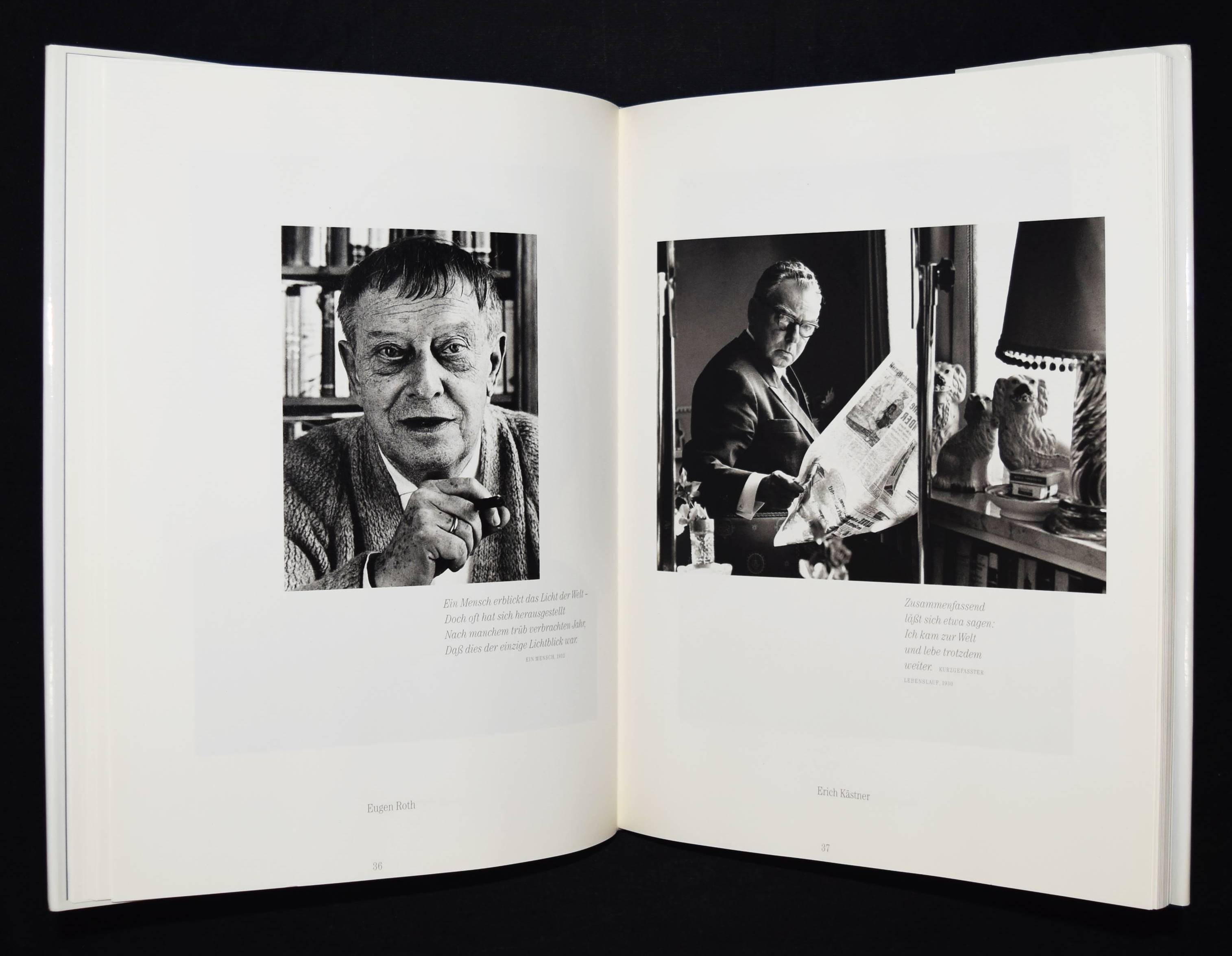 Moses, Stefan. Jeder Mensch ist eine kleine Gesellschaft. (Katalogbuch zur Ausstellung in der Bayerischen Akademie der Schönen Künste, München, vom 17. November 1998 bis 17. Januar 1999). München, Prestel (1998). 4°. 205 S. mit 59 Portraits und 1 sign. Orig.-Photographie (Silbergelatine, 28 x 22 cm. Kammerfisch WU, Flic-Flac, Wien, 1981. Orig.-Pappband mit Schutzumschlag. Koetzle 313. – Mit Texten von Wieland Schmied und J. A. Schmoll gen. Eisenwerth und Portraits der Schriftsteller, Wissenschaftler und Künstler H. Achternbusch, T. W. Adorno, I. Aichinger, H. Berggruen, H. Böll, E. Bloch, M. Croissant, H. Domin, H. M. Enzensberger, P. Flora, M. Frisch, G. Grass, W. Heisenberg, E. Jandl, K. Jaspers, E. Kästner, H. Lenz, G. u. T. Mann, A. Mitscherlich, E. W. Nay, M. Schmeling, M. Walser, P. Zadek u. a. – „Stefan Moses ist es gelungen, zahlreiche Persönlichkeiten aus Deutschland dazu zu bewegen, sich mit einem Spiegel oder im Spiegel oder gespiegelt fotografieren zu lassen. Die Porträtierten leisten sich in dieser originellen und überlegt konzipierten Porträtserie somit selbst Gesellschaft. Der Betrachter betrachtet die Personen, während sich diese selbst im Spiegel betrachten – Stefan Moses Porträts geben dank dieses Konzepts oftmals sehr erhellende Einsichten in die Persönlichkeit der Porträtierten“ (Prestel Verlag). – Sehr gutes Exemplar.
