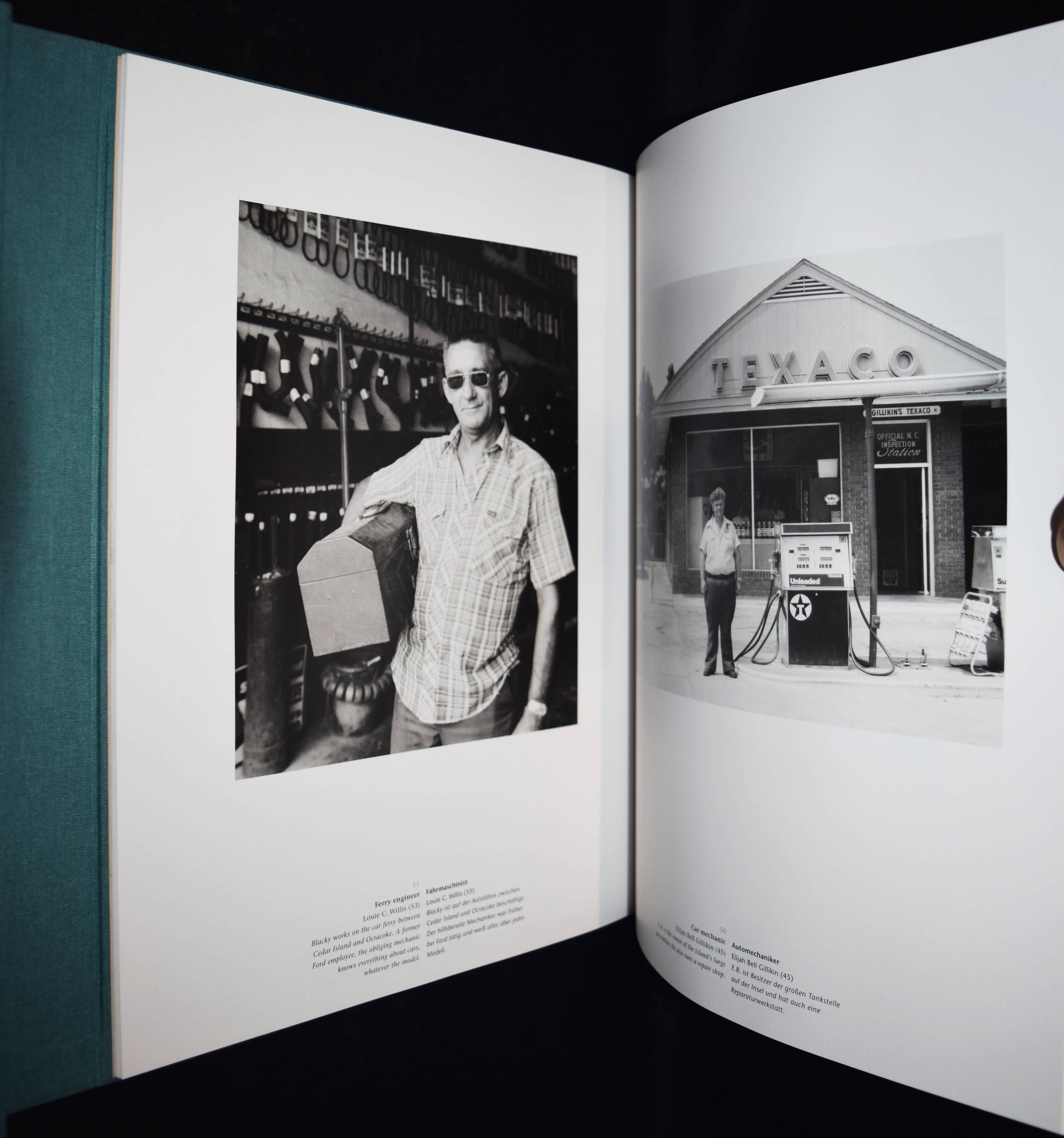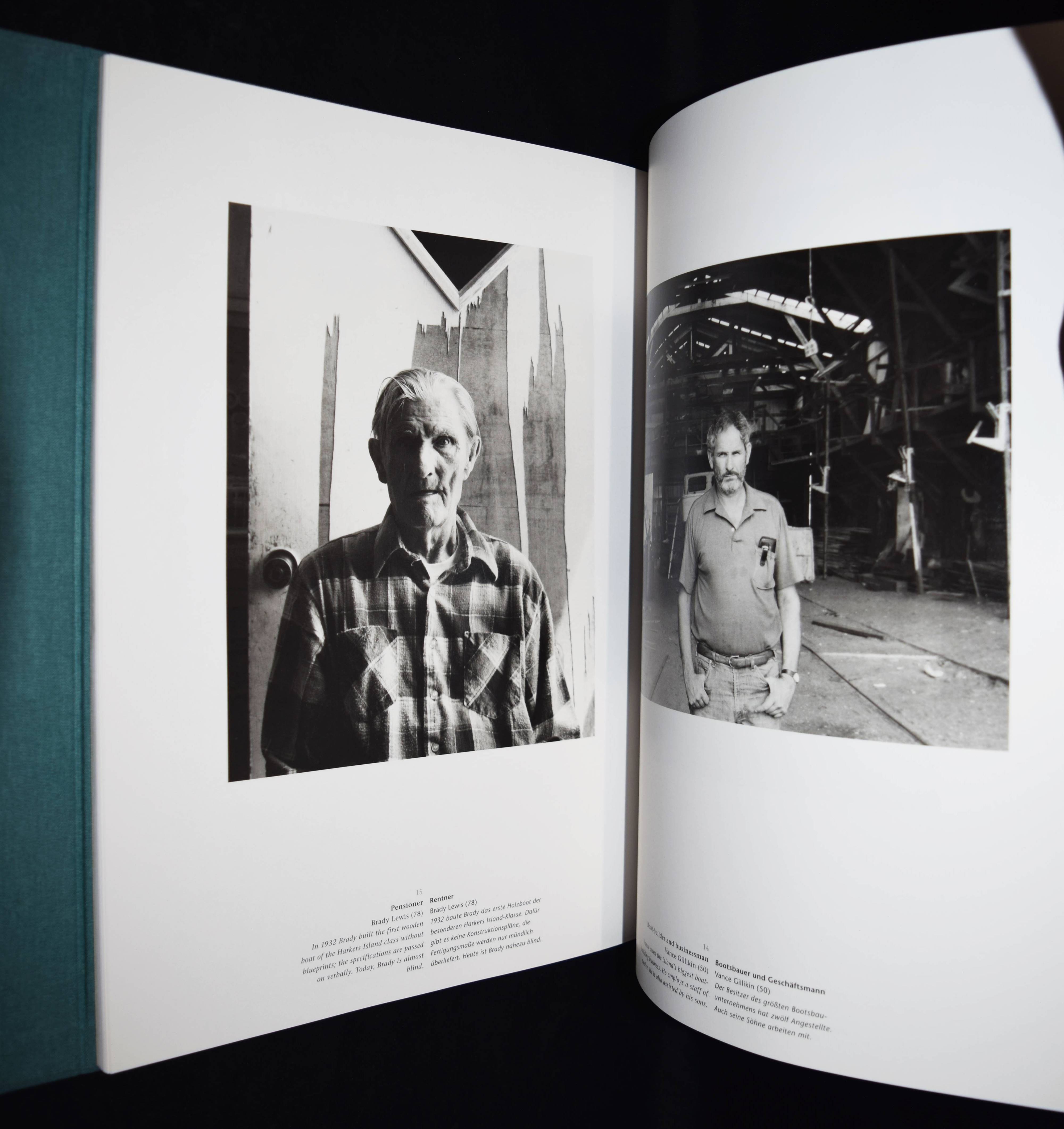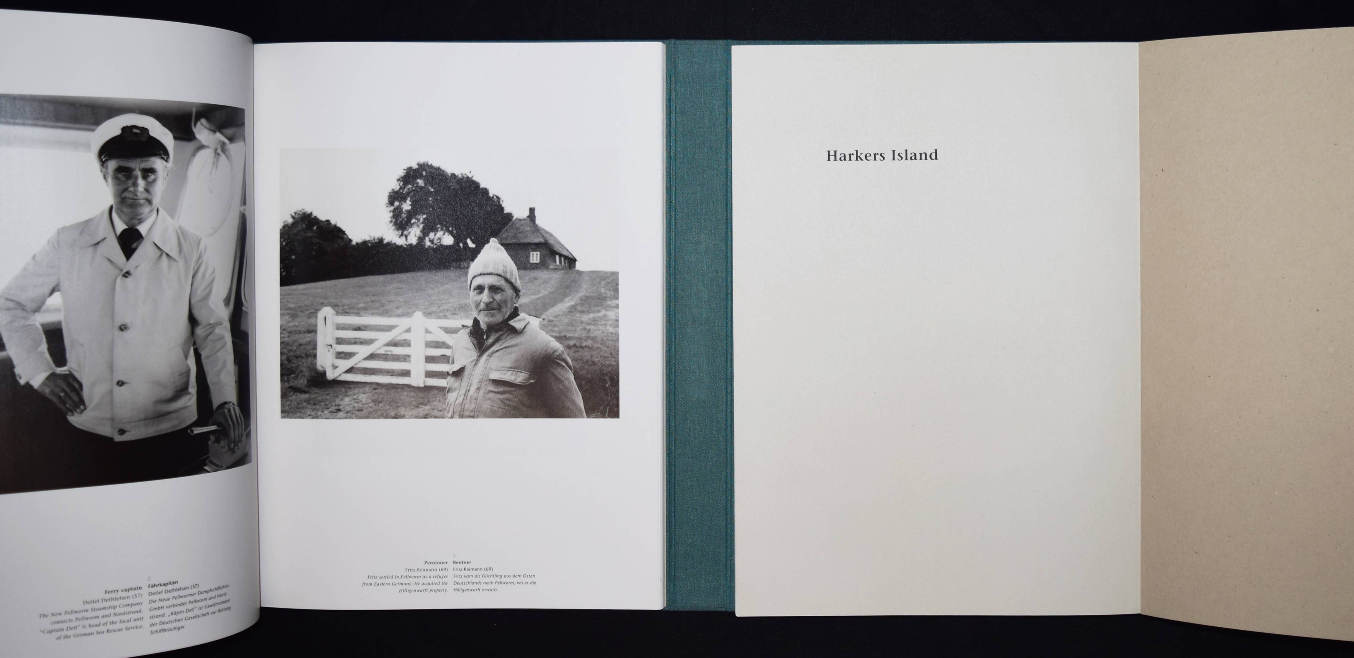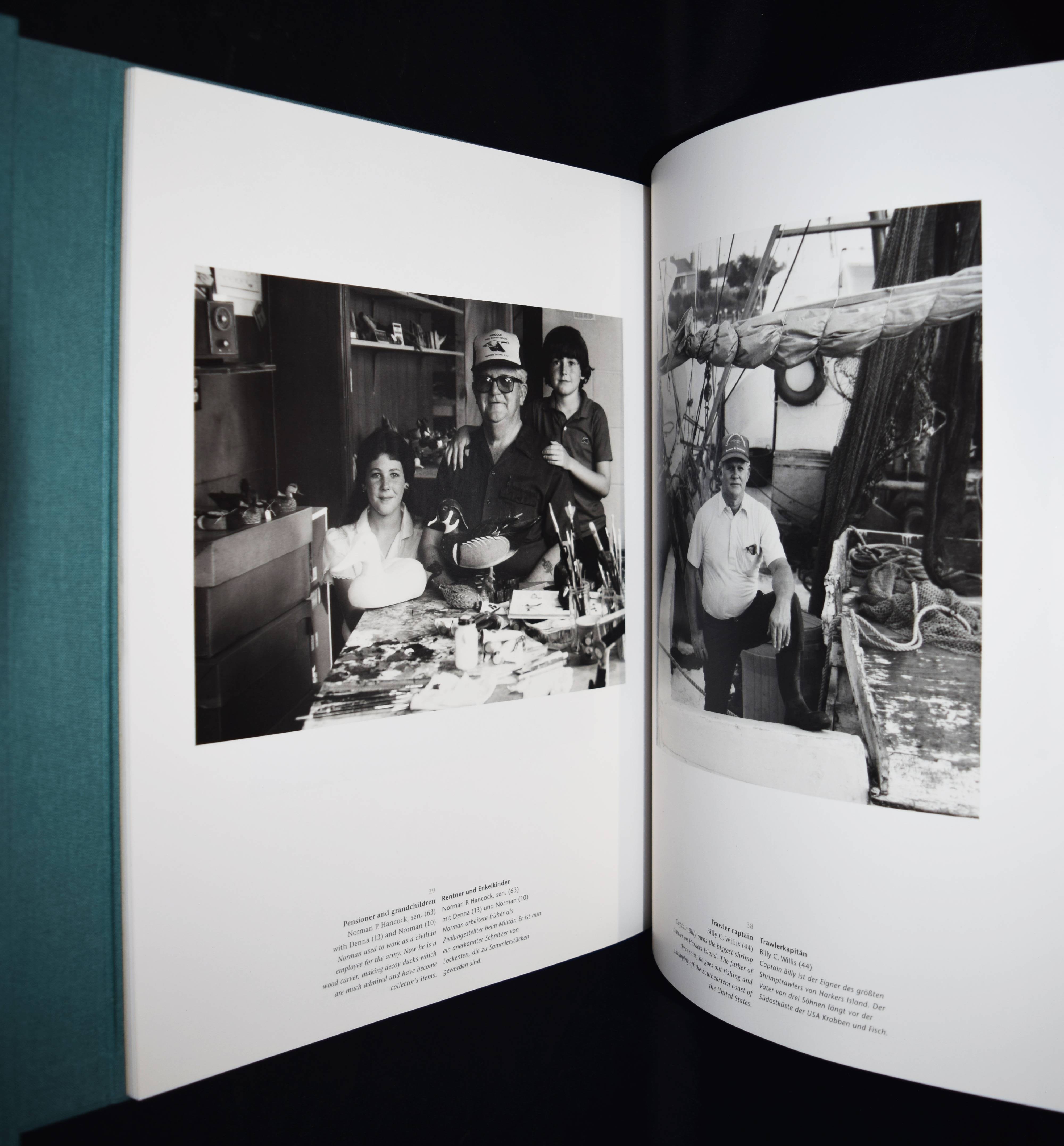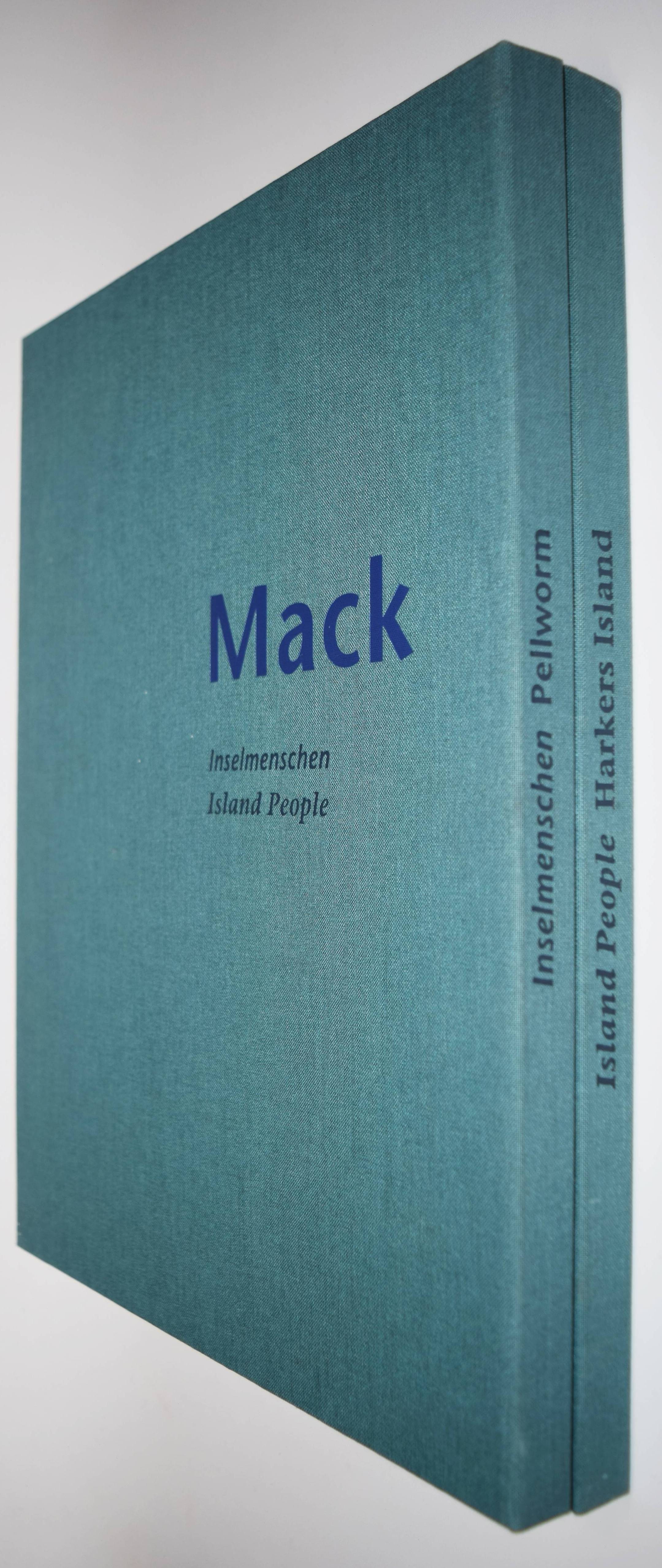 Mack, Ulrich (Bernhard Gerhard Antonius). Inselmenschen. Island People. Harkers Island, Pellworm. Photographien. Texte Rüdiger Joppien, Heinz Spielmann, Eelco Wolf, Uwe Prieser, Siegfried Lenz. 2 Teile in 1 Band. Kiel, Nieswand-Verlag (1995). Gr.-4° (33 x 25,5 cm.). [59]; [59] Bl. mit 144 Duotone Tafeln. OLn. in illustr. Orig.-Pappschuber. Koetzle 276 f. – Erste Ausgabe. – U. Mack (geb. 1934) „international renommierter Bildjournalist, der in den 1960er und 70er Jahren für die Zeitschriften Quick, twen und Stern tätig war. Werke von Ulrich Mack wurden in zahlreichen Museen ausgestellt und sind in nationalen und internationalen Sammlungen vertreten. Grundlegende Motive seines fotografischen Oeuvres sind Menschen und Landschaften. Bekannt geworden ist Mack unter anderem mit verschiedenen Fotozyklen der Industrielandschaften des Ruhrgebiets, norddeutschen Landschaften, zahlreichen Künstlerporträts sowie mit einer einzigartigen vergleichenden Bildserie von Inselmenschen auf der deutschen Nordseeinsel Pellworm und auf Harkers Island an der amerikanischen Ostküste. Angelehnt an das bedeutende fotografische Mappenwerk Menschen des 20. Jahrhunderts von August Sander, hat Ulrich Mack von 1978 bis 1981 die Menschen von Pellworm als Individuen in ihrem Lebensumfeld in sachlichen Schwarz-Weiß-Fotografien festgehalten. In den Jahren 1984/85 arbeitete er an einer weiteren Fotoserie über Inselmenschen auf Harkers Island in den Vereinigten Staaten. Beide Inselserien fügte er 1995 als komparatistische Studie unter dem Titel Inselmenschen/Island People in einem Doppelbildband zusammen. Die vergleichende ethnografische Betrachtung offenbart beeindruckende Parallelen in den Lebensweisen und -erfahrungen von Inselgesellschaften diesseits und jenseits des Atlantiks“ (Zur Ausstellung im Museum Kunst der Westküste, Alkersum/Föhr). – Schuber an den Kanten eingerissen, sonst gut erhalten.
