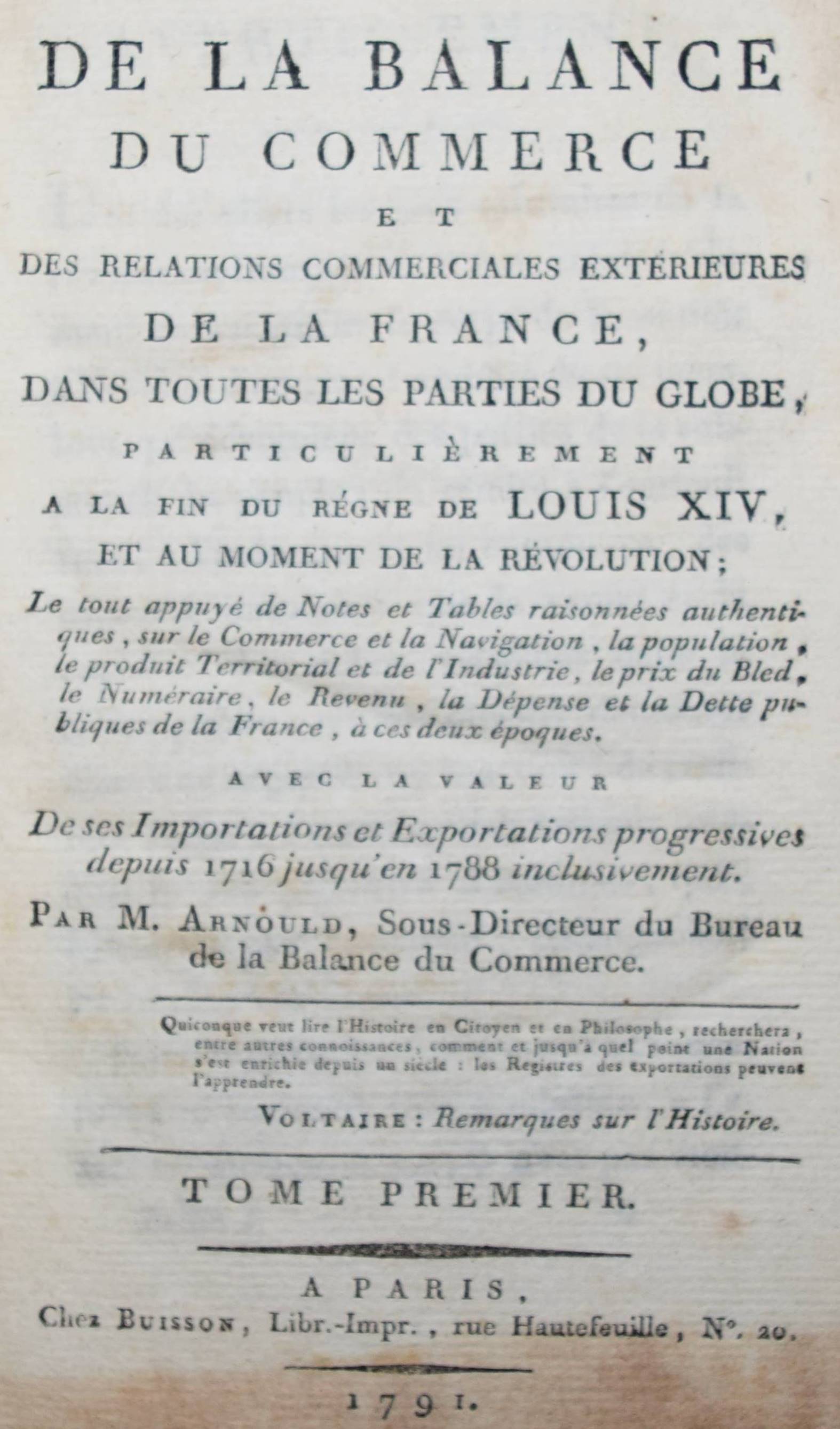 Arnould, De la balance du commerce et des relations commerciales extérieures...