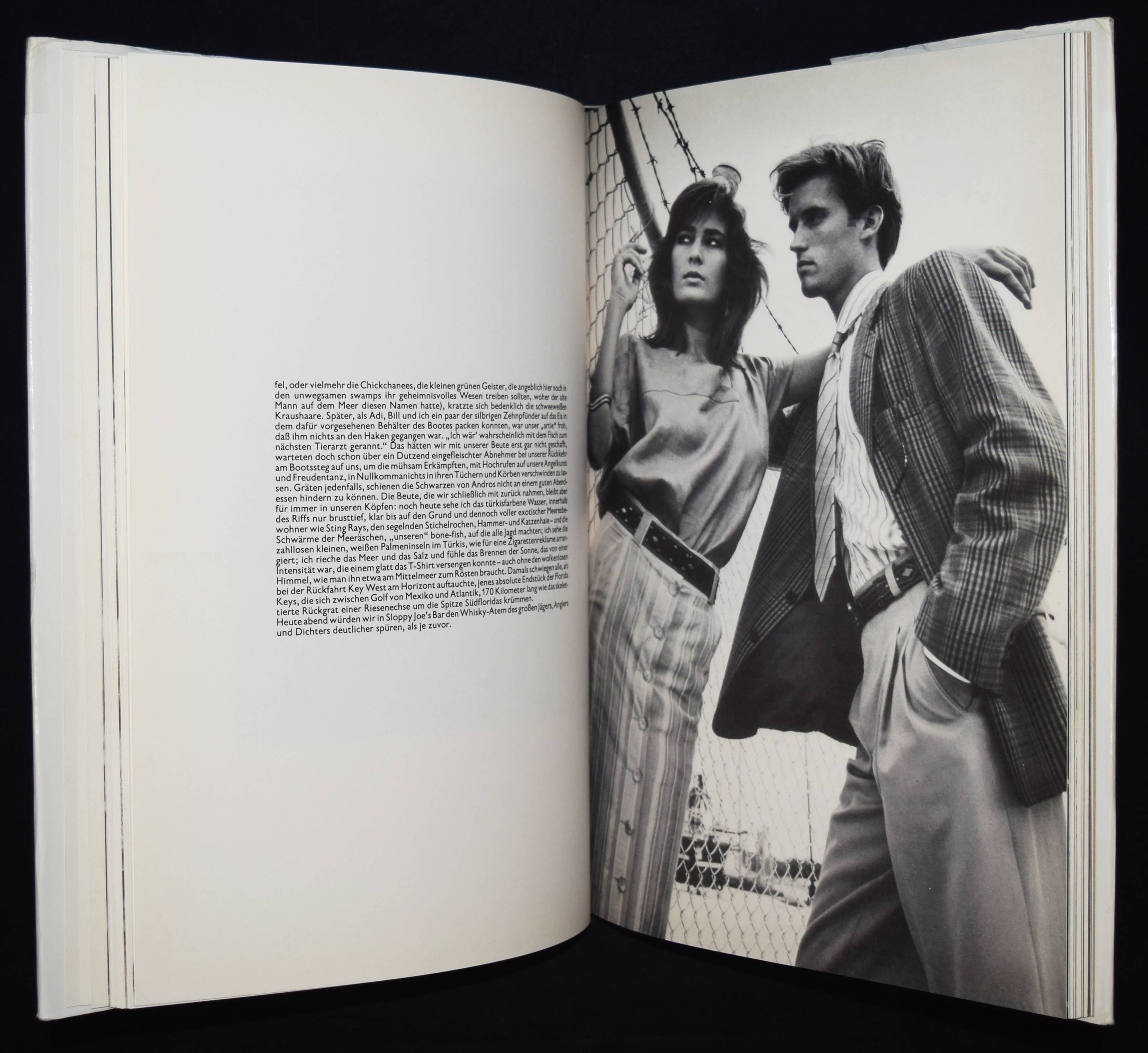 | (Rakete, Jim, eig. Günther). The complete Key West session. Subject: Fashion. Date: Aug. 1986. Client: René Lezard. (Schwarzach, René Lezard Mode GmbH 1986). 4°. [60] Bl. mit meist ganzs. Abb. OLn. mit illustr. OU. Nr. 822 einer limit. Auflage. Von J. Rakete auf dem Titelblatt signiert. – Sehr seltene erste Buchveröffentlichung des 1951 in Berlin geborenen Fotografen. – „Bei Jim Raketes Bildern entsteht ein ähnlicher Effekt wie bei einer Zeitlupe im Film: Der Moment in der Schwebe erlaubt dem Betrachter genauer zu schauen, mehr zu erkennen. Manchmal meint man sogar seine Portraits würden atmen oder sich bewegen. Raketes Bilder sind wie komprimierte Filme – sie bleiben nie zweidimensional, sie haben immer Tiefe und Dauer. Jim Rakete bekommt im Alter von vier Jahren seine erste Kamera geschenkt und hätte ihn nicht von Anbeginn die Erotik des Auslösens fasziniert, hätte er alles andere werden können. Der Berliner wurde der bekannteste Fotograf Deutschlands und ist dabei ein engagierter Denker, ein Scharfzeichner, Geschichtenerzähler, Talentfrüherkenner. Mit 17 beginnt er professionell als Fotoreporter für Tageszeitungen, Magazine und Agenturen zu arbeiten. Von 1977 bis 1986 gründet und betreibt er die „Fabrik Rakete“ in Berlin Kreuzberg und wird hauptsächlich als Musikmanager von Nina Hagen, Nena und Spliff wahrgenommen. Die Neue Deutsche Welle hat er maßgeblich ins Rollen gebracht. … Entscheidend ist Raketes Haltung, ob bei Werbung, Editorials oder privaten Aufträgen. Die Idee muss ihn interessieren. Vermutlich macht ihn seine Begeisterungsfähigkeit und sein ungeduldig hohes Arbeitstempo für Stars so attraktiv. Fototermine bei Rakete dauern nie lang. Davon wissen Sean Connery, Natalie Portman, Wim Wenders, Götz George, Katharina und Anna Thalbach zu erzählen. Otto Sander beschreibt es so: „Bei Jim hat man das Gefühl, man schenkt ihm was – und er nimmt es dankbar an.“ Jim Rakete hat sich bis heute seinen „Schwarz/Weiß-Blick“ bewahrt, auch wenn er farbig fotografiert. Die Genauigkeit in der Komposition und eine frappierende Direktheit durchziehen sein Werk. Raketes Bilder sind längt Kunst geworden und finden sich in bedeutenden Sammlungen, wie dem Haus der Geschichte, dem Deutschen Filmmuseum Frankfurt oder dem Museum Folkwang in Essen“ (Barbara Münzing Agentur für Fotografie). – Schutzumschlag mit überklebten Randläsuren und etwas angestaubt, sonst sehr gut erhalten.