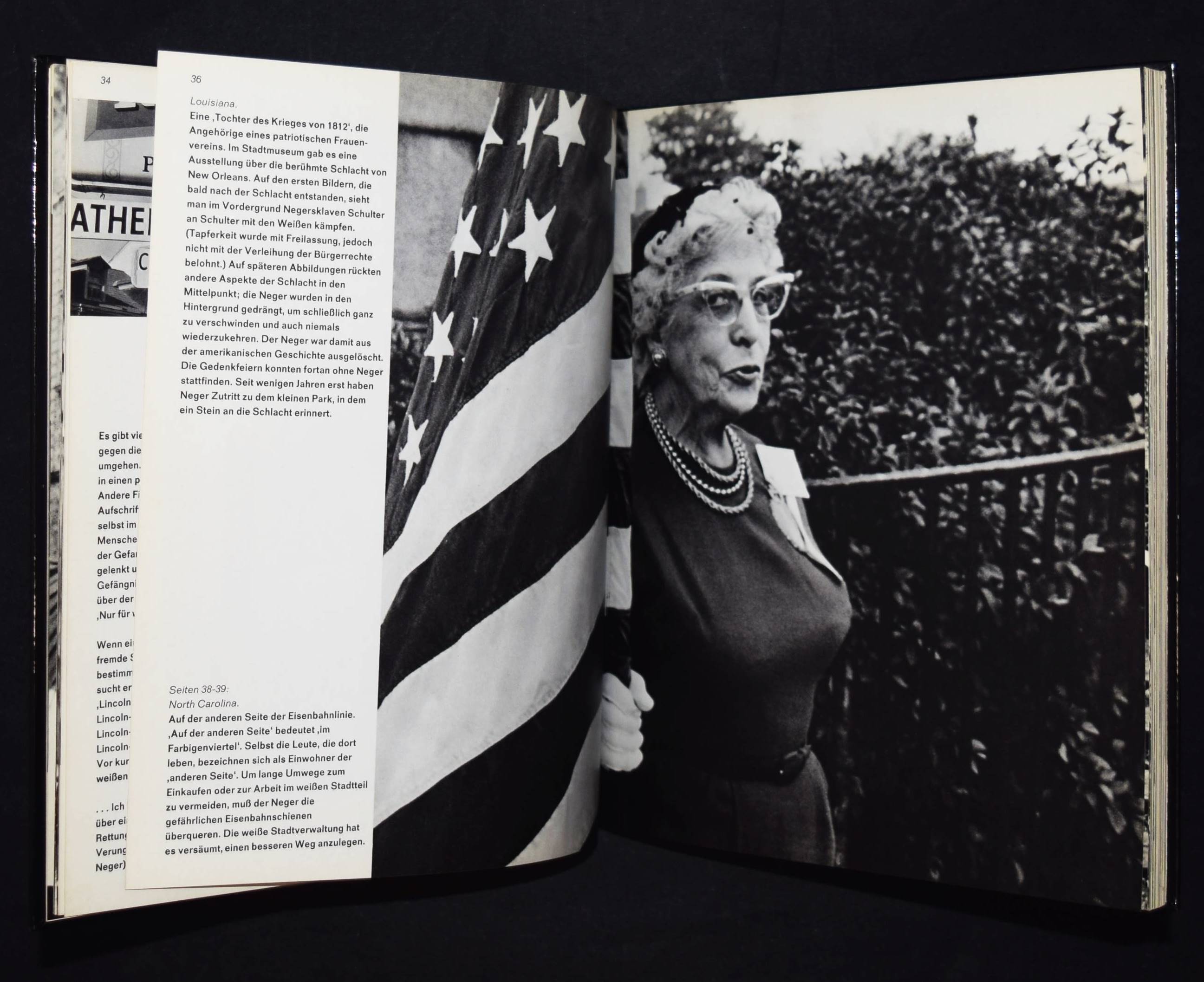 Freed, Leonard. Black in white america. New York, Grosman Pubishers (1968). 4°. 208 S. mit zahlr. Abb. OKart. Koetzle 151 f. Koetzle, Fotografen A-Z 130. – Erste Ausgabe. – Der Magnum-Fotograf L. Freed (1929-2006) „besitzt die unermüdliche Neugier des Reporters, eine Vorliebe und einen Sinn für das Geschehen, die Passion des ‚Anderswo‘, dem gegenüber man nicht gleichgültig bleiben darf. Seine künstlerischen Entscheidungen sind die eines Mannes, der sich seit seiner Kindheit ‚betroffen‘ fühlt“ (J. Dieuzaide in Koetzle). – Gutes Exemplar.