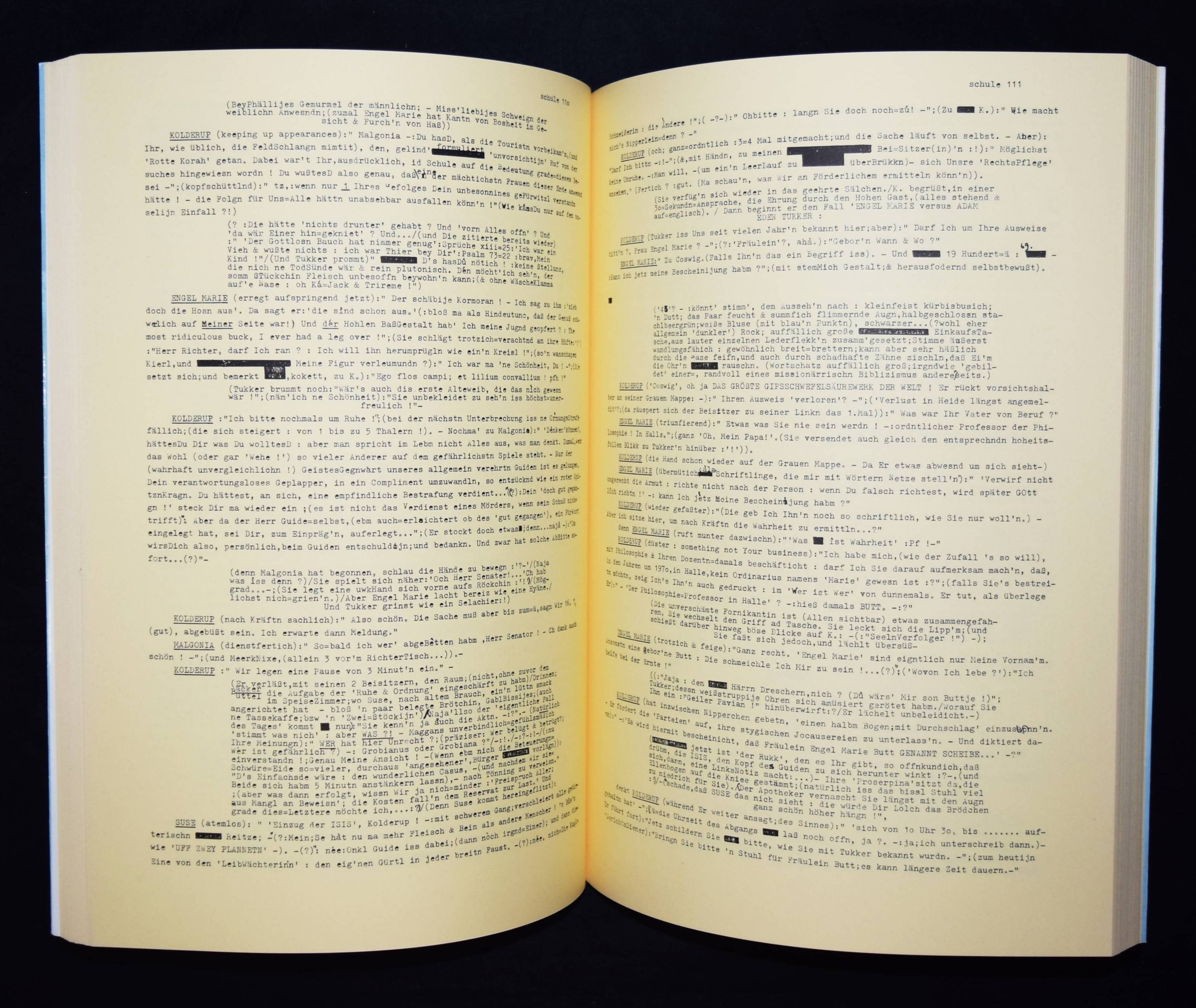 Schmidt, Arno. Die Schule der Atheisten. Novellen-Comödie in 6 Aufzügen 19(69)70 – 1971. Frankfurt (am Main), S. Fischer 1972. 4°. 271 S. OKart. mit illustr. OU. in Orig.-Pappschuber. Bock 1.1.21. – Im Jahr der Erstausgabe erschienene kart. Ausgabe. – Gutes Exemplar.