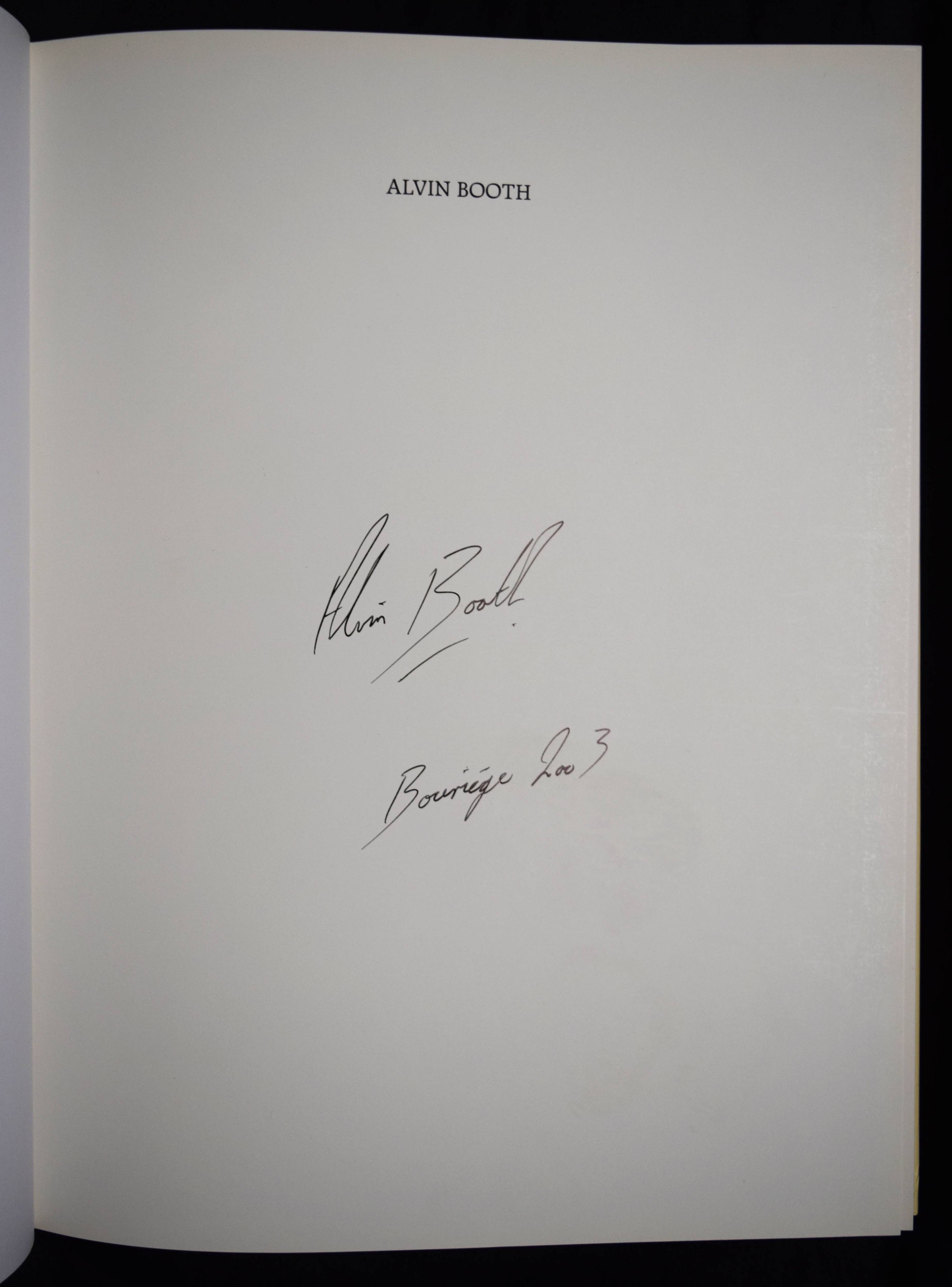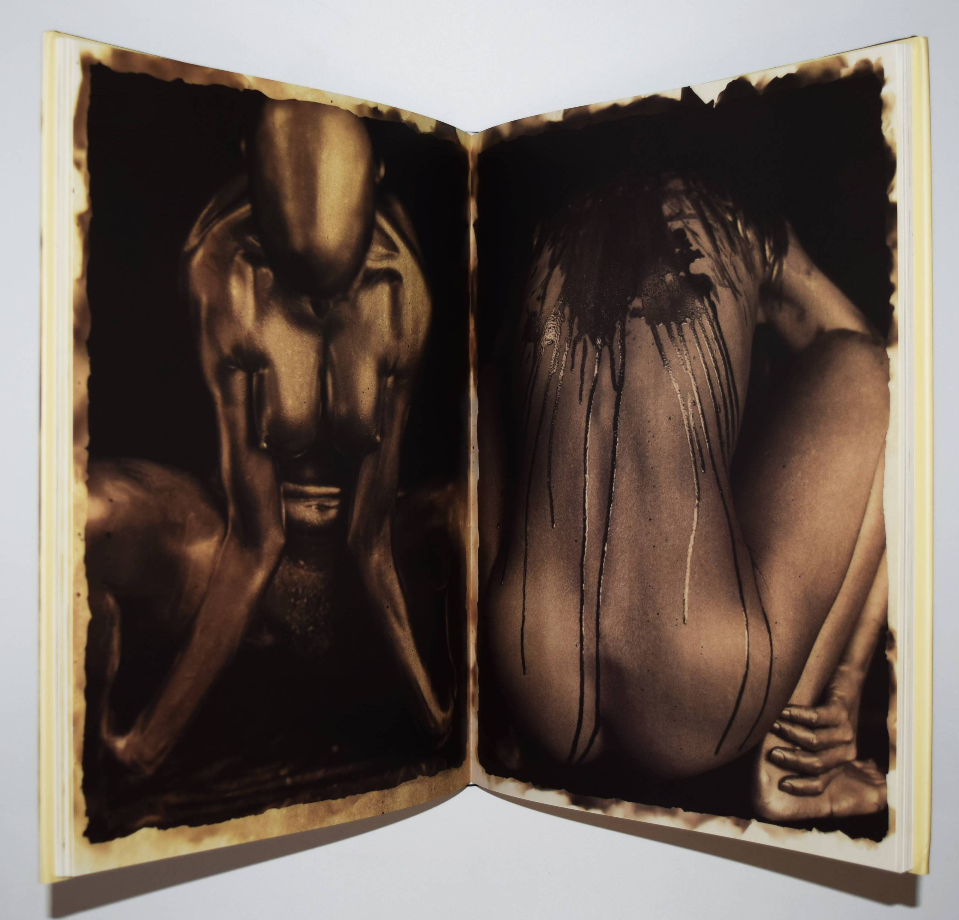 Booth, Alvin. Corpus. Beyond the body. Introduction by Charlotte Cotton. Zürich, New York, Edition Stemmle (1999). 4°. [59] Bl. mit 85 Tafeln in Sepia. OPbd. mit illustr. OU. Erste Ausgabe. – Mit eigenhändiger Widmung von A. Booth auf dem Vortitel. – „The warmth and diversity of the tonal range of Booth’s images hint at their relationship with photography of the nineteenth century. The soft, textural beauty of photography – the very quality that defined much early photographic practice – is central to this contemporary work. Photography’s role in intimate social life, which developed through the nineteenth century, is similarly called to mind. The ecstatic slaves of Booth’s images, bound and kneeling, have the sensibility of a Victorian melodrama. The miniature, secretive series of images entitled ‘Small Collectors’ contain the illicit ambience of pornographic daguerreotypes of the 1850s or French postcards of voluptuous femininity from later in the nineteenth century. The colours of these photographs create a nostalgic feel that heightens our sense of past events and sensibilities. These are the peek-a-boo spectacles of the fin de siecle. … These images, with their vocabulary drawn from photography’s history, are made contemporary by the vibrancy of the human forms. The dynamics of the studio performance are ever present in Booth’s photographs. The tactile qualities of skin and motion create the immediacy , the sense of the moment, that resonates through these vibrant photographs“ (C. Cotton). – Sehr gutes Exemplar.