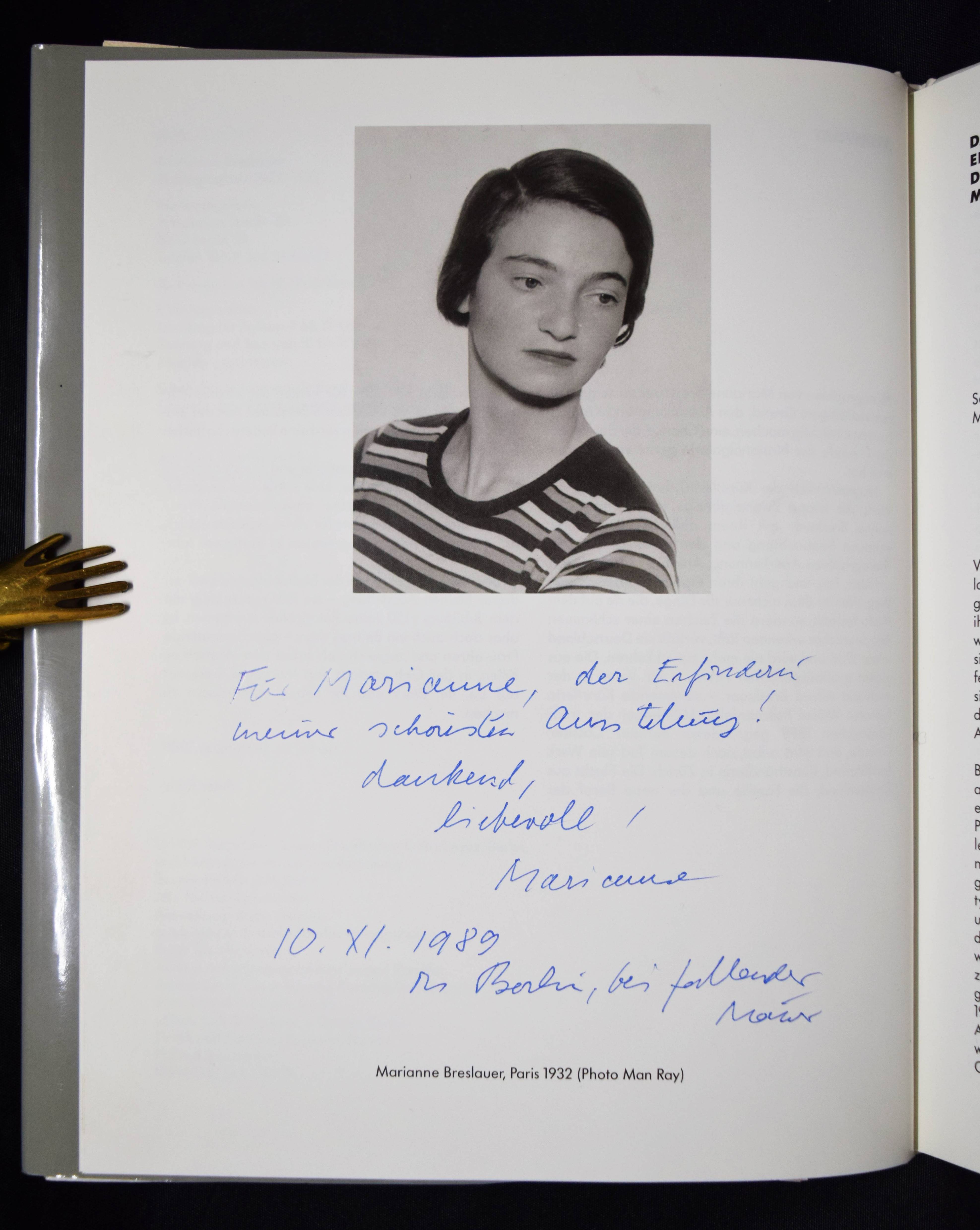 Breslauer – Raue, Peter (Vorwort). Marianne Breslauer. Photographien 1927 – 1937. (Mit einem Essay „Das Geheimnis des eingefangenen Augenblicks, die Photographin Marianne Breslauer“ von Manuela Reichert). Berlin, Nicolai (1989). 4°. 57 S. mit 43 Duotone-Tafeln. OPbd. mit illustr. OU. Koetzle 71. – Mit eigenhändiger Widmung von M. Breslauer „Für Marianne, der Erfinderin meiner schönsten Ausstellung! dankend, liebevoll, Marianne 10. XI. 1989 in Berlin, bei fallender Mauer“. – Zweite Retrospektive nach der Ausstellung in Düsseldorf 1979. – M. Breslauer (seit 1936 M. Feilchenfeldt, 1909-2001) war 1929 für kurze Zeit Assistentin von Man Ray. Sie wurde 1999 mit dem Hannah-Höch-Preis des Landes Berlin ausgezeichnet. – „In Marianne Breslauers Fotografien drückt sich ein gleich bleibend wohlmeinendes, bisweilen leicht distanziertes Verhältnis zu Land und Leuten aus. Ihre bevorzugte, dem Zeitstil entsprechende Kameraposition ist das – im wörtlichen Sinne – Von-oben-Herab“ (D. Bartmann in Koetzle). – Sehr gutes Exemplar.