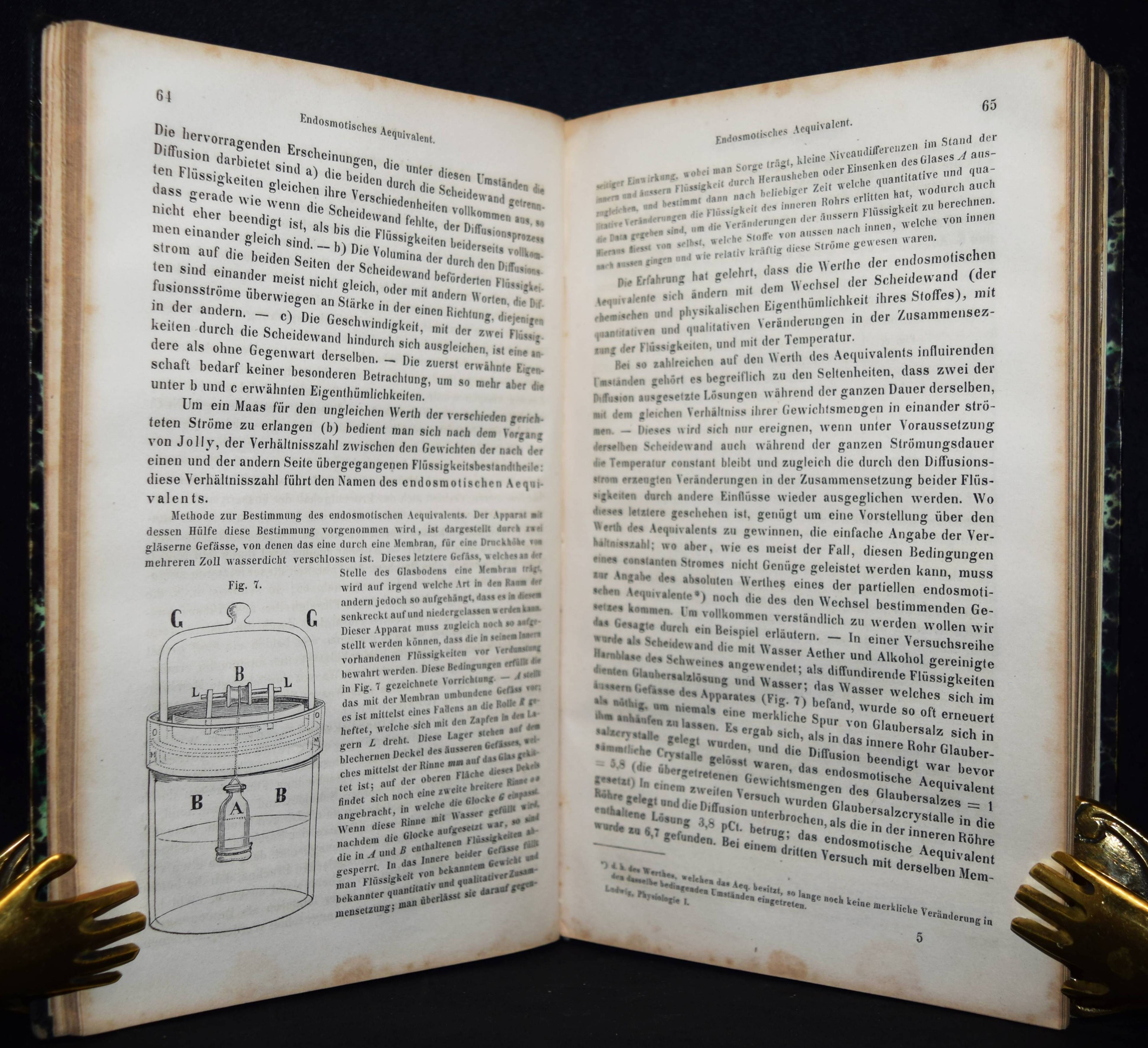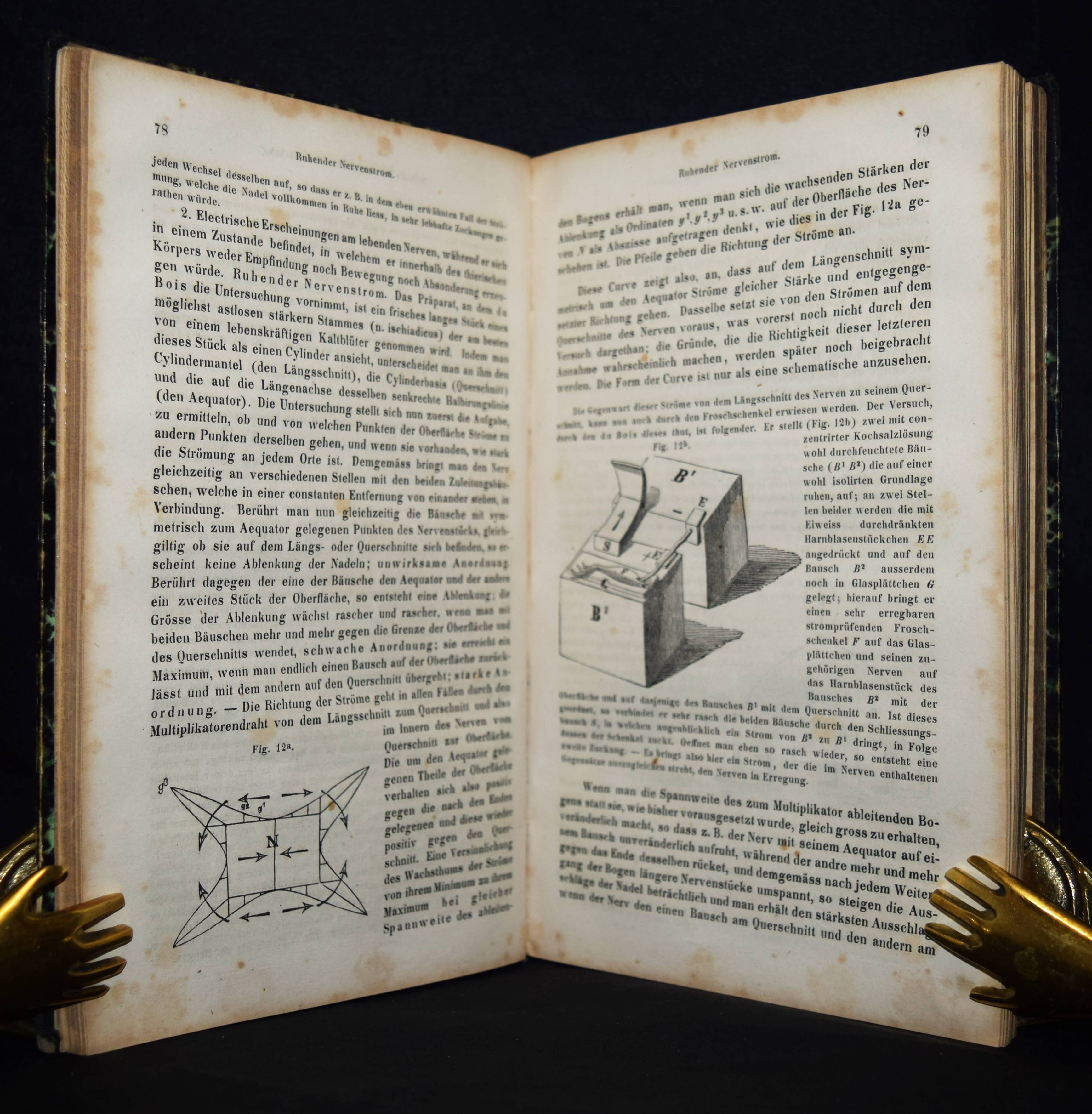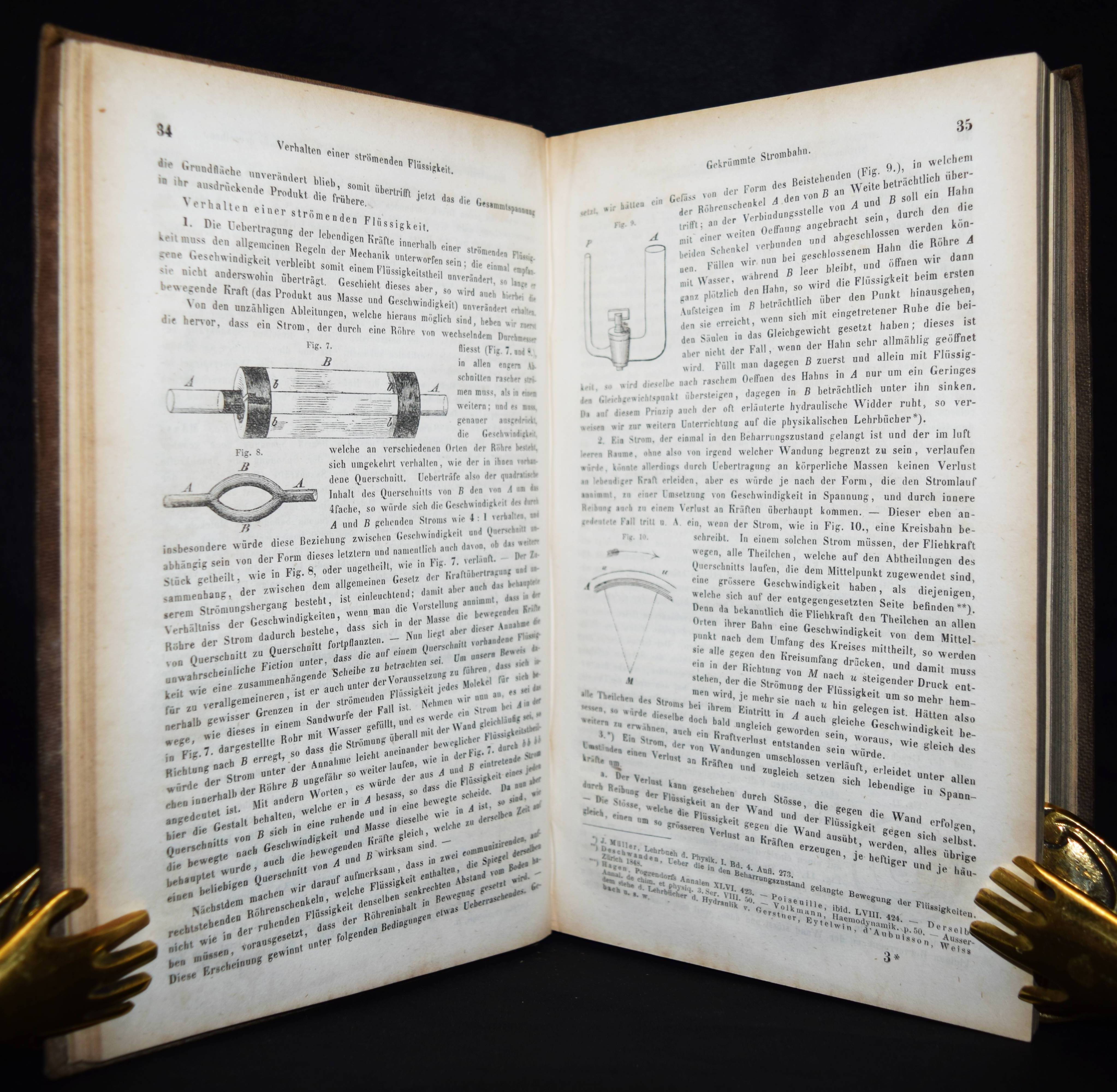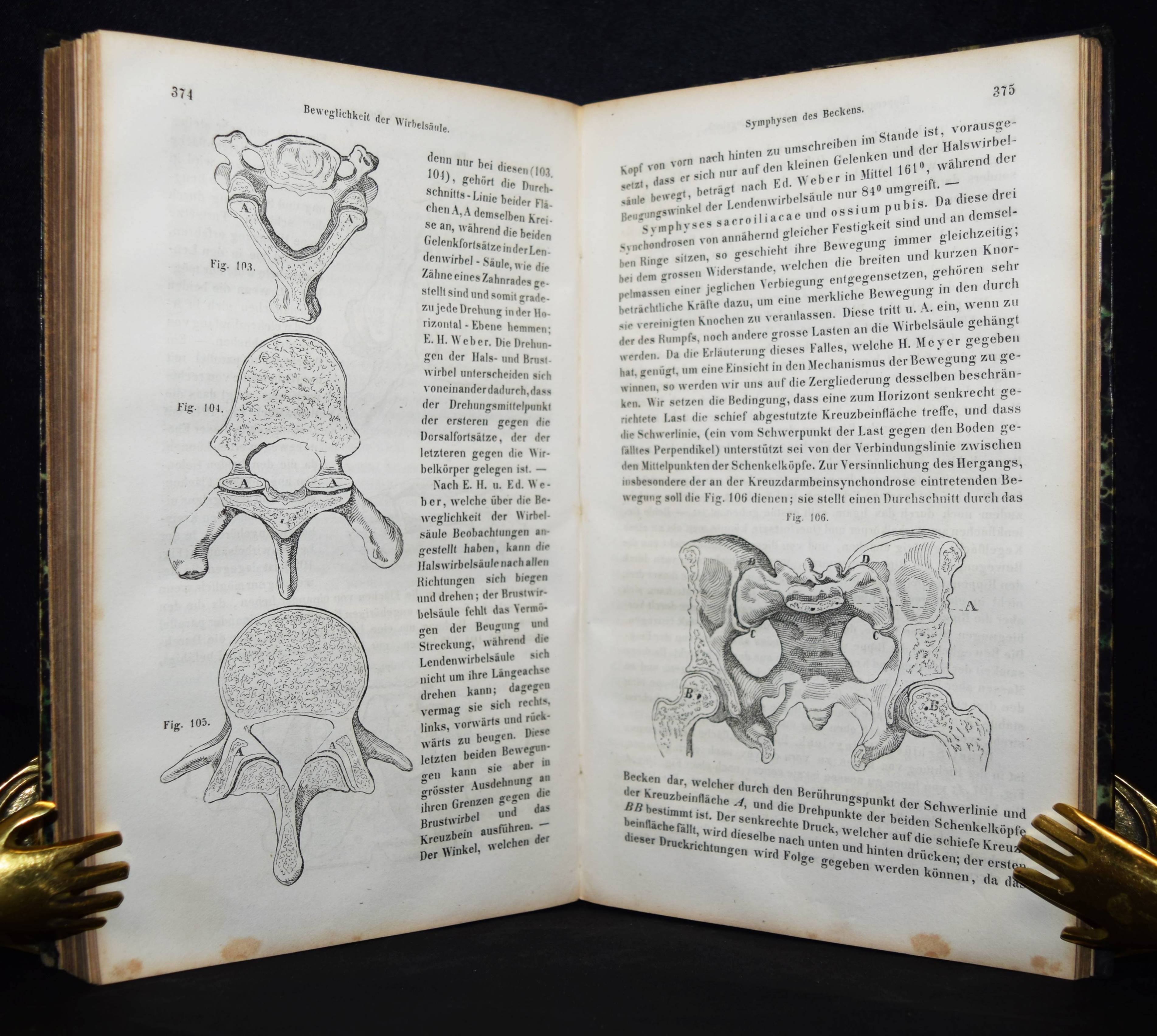 Ludwig, C(arl Friedrich). Lehrbuch der Physiologie des Menschen. 2 Bände. Heidelberg, C. F. Winter 1852-1856. 8°. [2] Bl., 458 S., [1] Bl.; X, 501 S. mit einigen Holzschnitten im Text. Hln. u. Ln. d. Zt. mit goldgepr. Rückentitel. Engelmann Suppl. 157. – Erste Ausgabe, selten. – Bis weit ins 20. Jahrhundert aufgelegtes wichtiges Lehrbuch des sächsischen Mediziners C. F. Wilhelm (1816-1895). – Abweichend gebunden, stellenweise braunfleckig und etwas gebräunt, gutes Exemplar aus der Bibliothek des Wissenschaftshistorikers Hannes Büttner mit dessen Exlibris.
