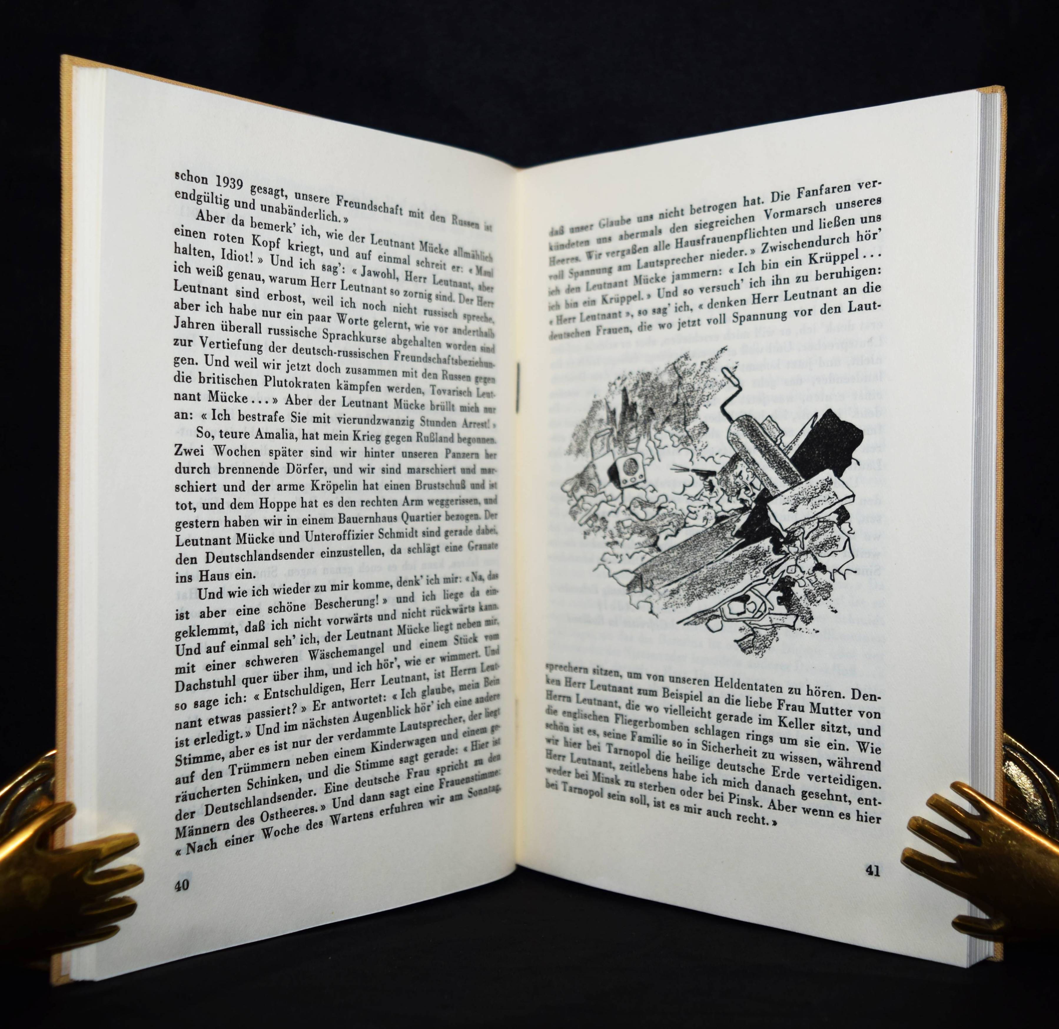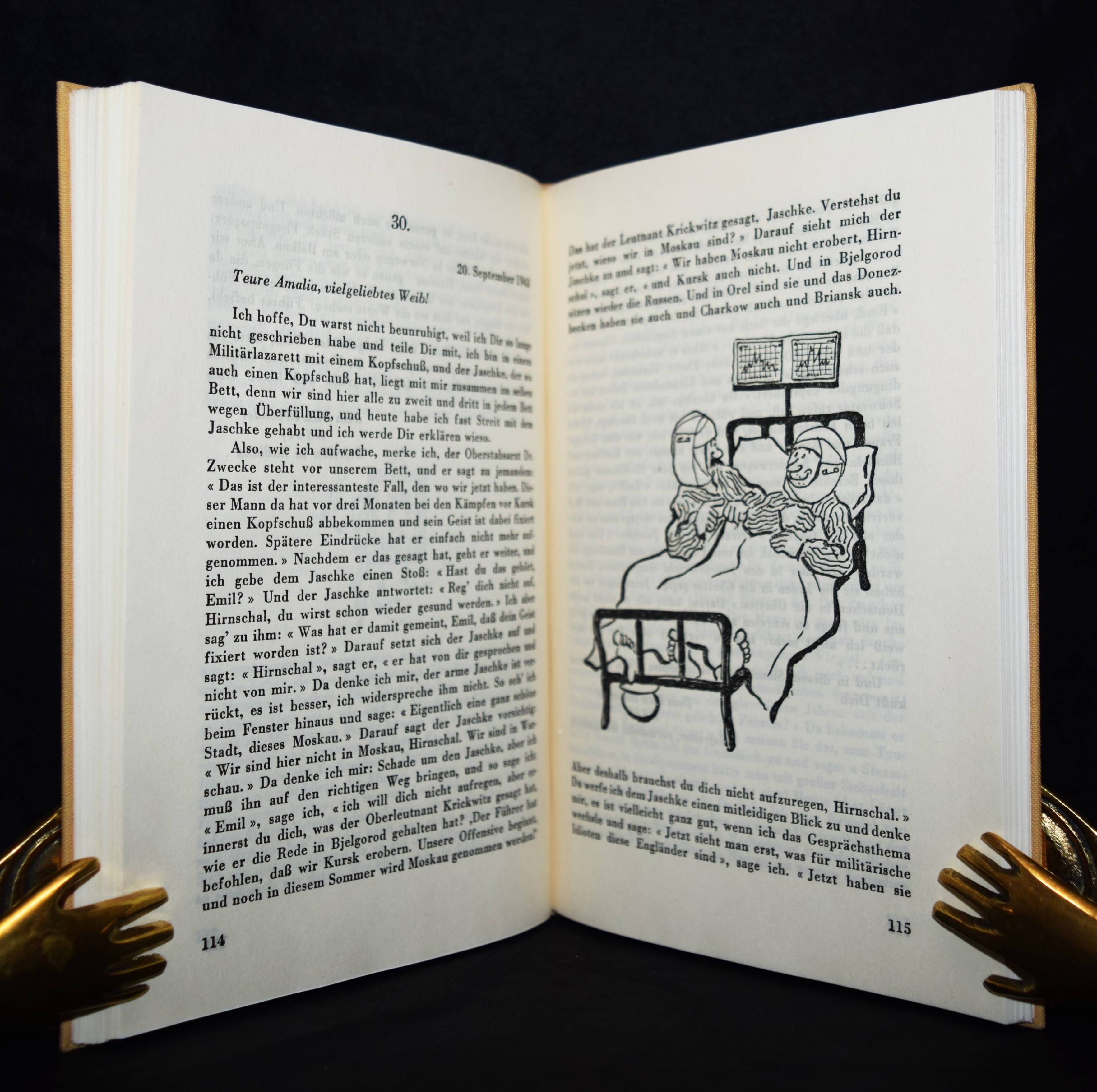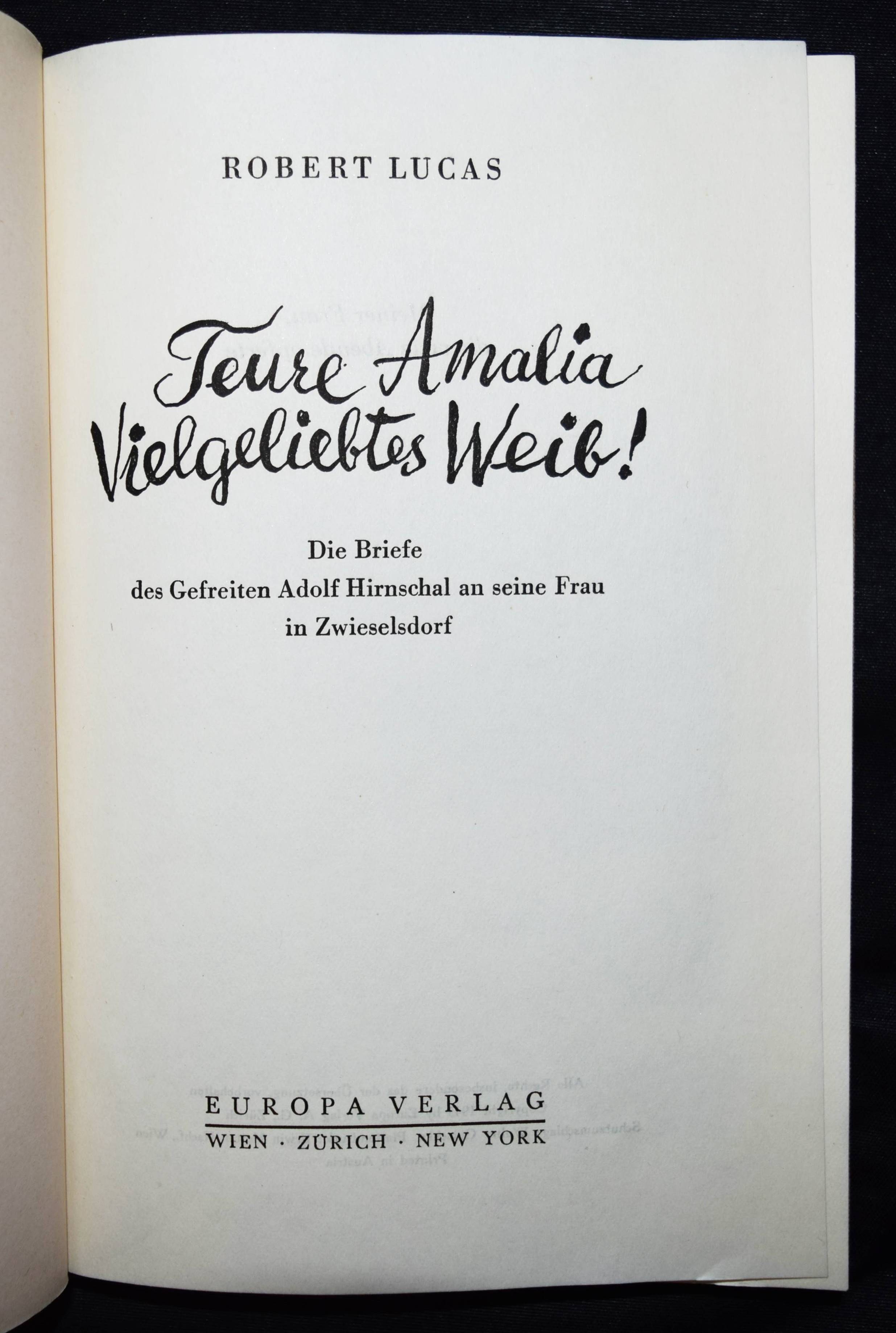 Lucas, Robert. Teure Amalia, vielgeliebtes Weib. Die Briefe des Gefreiten Adolf Hirnschal an seine Frau in Zwieselsdorf. Zürich, Europa Verlag (1945). 8°. 188 S. mit Illustrationen im Text. OLn. Exilarchiv 3550. Sternfeld-Tiedemann 321. – Erste Ausgabe, erschien zeitgleich auch in Wien. – Sehr gutes Exemplar.