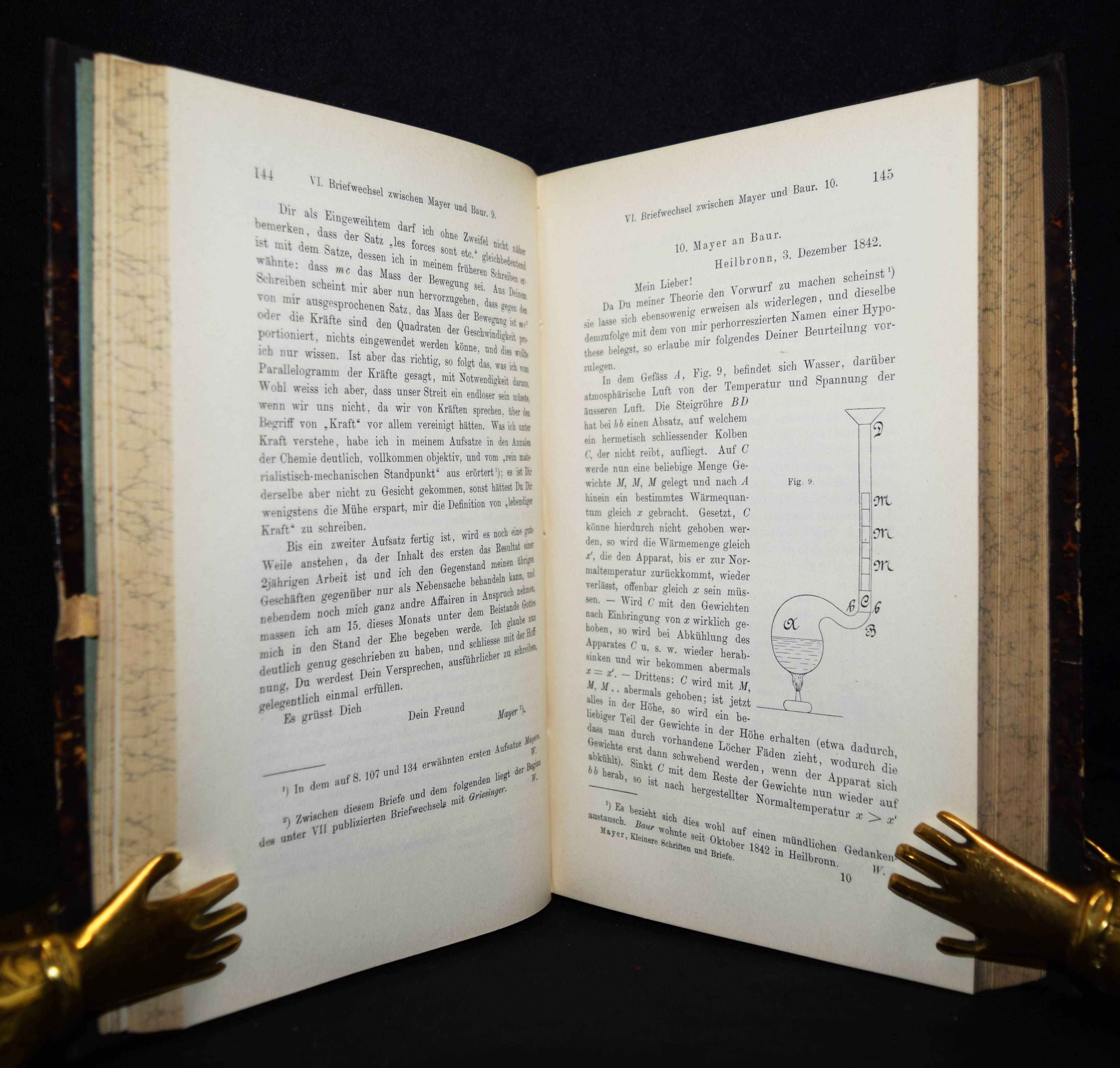 Mayer, (Julius) Robert v. Kleinere Schriften und Briefe. Nebst Mittheilungen aus seinem Leben. Herausgegeben von Jakob J. Weiyrauch. Stuttgart, J. G. Cotta 1893. 8°. XVI, 503, (1) S. mit 1 Porträt u. 1 Tafel. Hln. d. Zt. mit goldgepr. Rückentitel u. Linienvergoldung. Hirsch-Hüb. IV, 133. NDB XVI, 546. Poggendorff III, 890. – Erste Ausgabe. – Rücken berieben, St.a.T., gutes Exemplar.