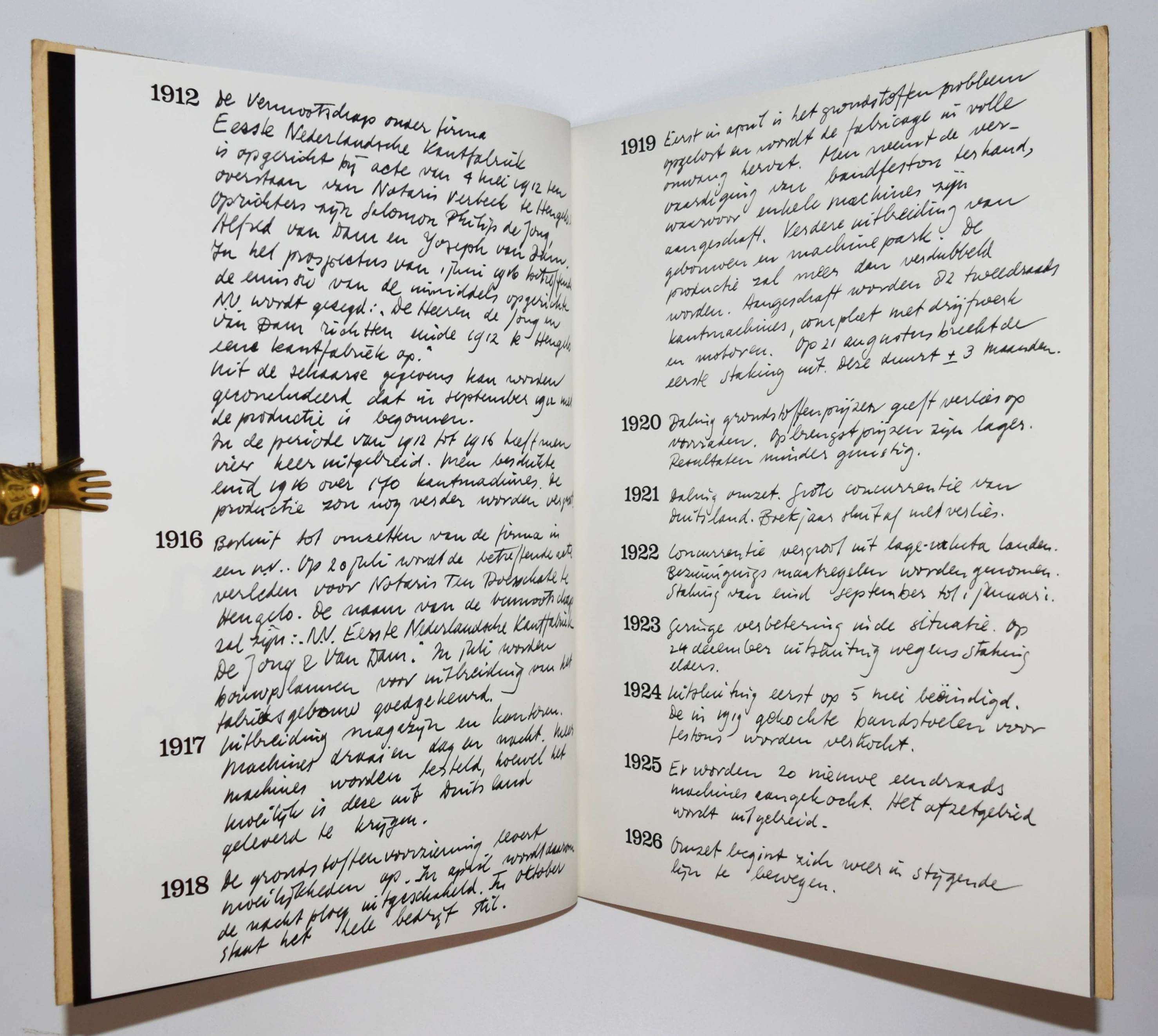 Elsken, Ed(ward) van der. De Jong & Van Dam NV 1912-1962. (Tekst: Jan Bons). Hilversum, De Jong en Van Dam 1962. Folio (35 x 27 xm.). [15] Bl. mit 26 (7 doppelblattgr.) Abb. Illustr. OKart. in Orig.-Papp-Chemise u. Orig.-Flügelmappe. Heiting, Dutch Photo Publications 423 ff. Koetzle 128 f. Nicht bei Gierstberg/Suermondt. – Sehr seltene Festschrift der niederländischen Textil-Fabrik. Mit einer Firmen-Chronik in Schreibschrift von J. Bons. – „His work has been published in many magazines and books since the 1950s. Some of those books – Een Liefdesgeschiedenis in Saint Germain des Prés, Jazz and Sweet Life – are now considered ‚seminal photographic books‘, and several of the Dutch company books including his photos, such as Vuur aan zee, 1958 and De Jong & Van Dam, 1962, are valued highly by collectors all over the world. More than thirty years oafter his death, Ed van der Elsken is still one of the few Dutch photographers who is famous in many parts of the world and valued as the creator of images that have since become iconic“ (Dirk Bakker in Heiting, Dutch Photo Publications). – „Plötzlich ist sein Werk wieder aktuell, erinnert man sich an ihn. An diese Fotos, die rauh und direkt waren, manchmal grell, vulgär, ja obszön und hin und wieder sogar heillos romantisch. Fotos voller Emotionalität und Dramatik, voller Lust am Leben und Genuss des Augenblicks. Was die 50er, 60er und 70er Jahre betrifft, so gilt van der Elsken als einer der großen Straßen- und Reportagefotografen. Man könnte ihn einen Chronisten der Jugendkultur dieser Zeit nennen, einen Zeitgeist-Fotografen vor und nach Woodstock: den Bohémien der Fotografie“ (T. Honickel in Koetzle). – Flügelmappe etwas angestaubt und leicht fingerfleckig, Chemise am hinteren Gelenk im oberen Drittel eingerissen, sonst tadellos. – ‘Suddenly his work is topical again, people remember him. These photos were raw and direct, sometimes garish, vulgar, even obscene and occasionally even hopelessly romantic. Photos full of emotion and drama, full of lust for life and enjoyment of the moment. As far as the 50s, 60s and 70s are concerned, van der Elsken is regarded as one of the great street and reportage photographers. One could call him a chronicler of the youth culture of the time, a zeitgeist photographer before and after Woodstock: the bohemian of photography’ (T. Honickel in Koetzle). – Folder somewhat dusty and slightly finger-stained, chemise torn at the rear hinge in the upper third, otherwise in perfect condition.