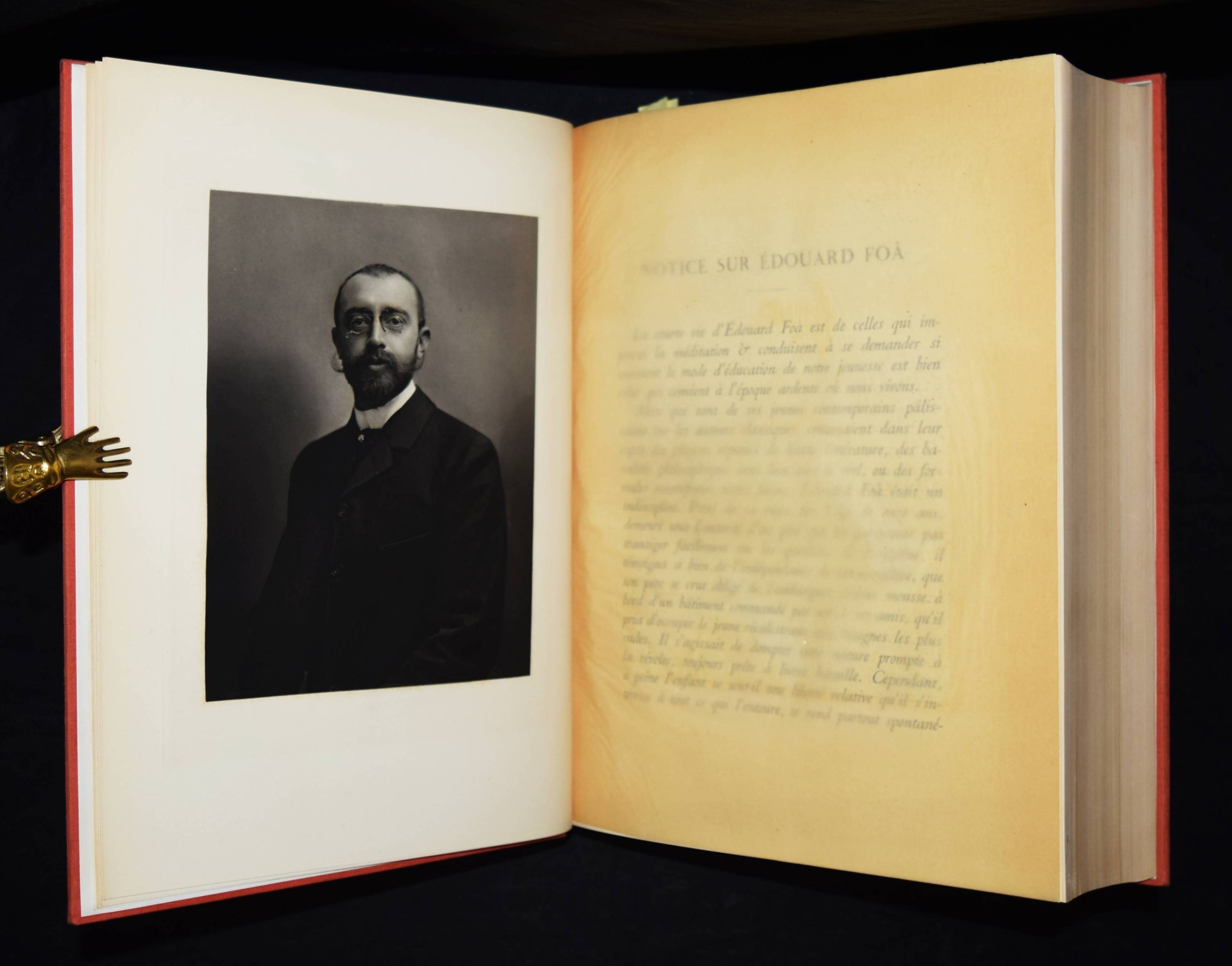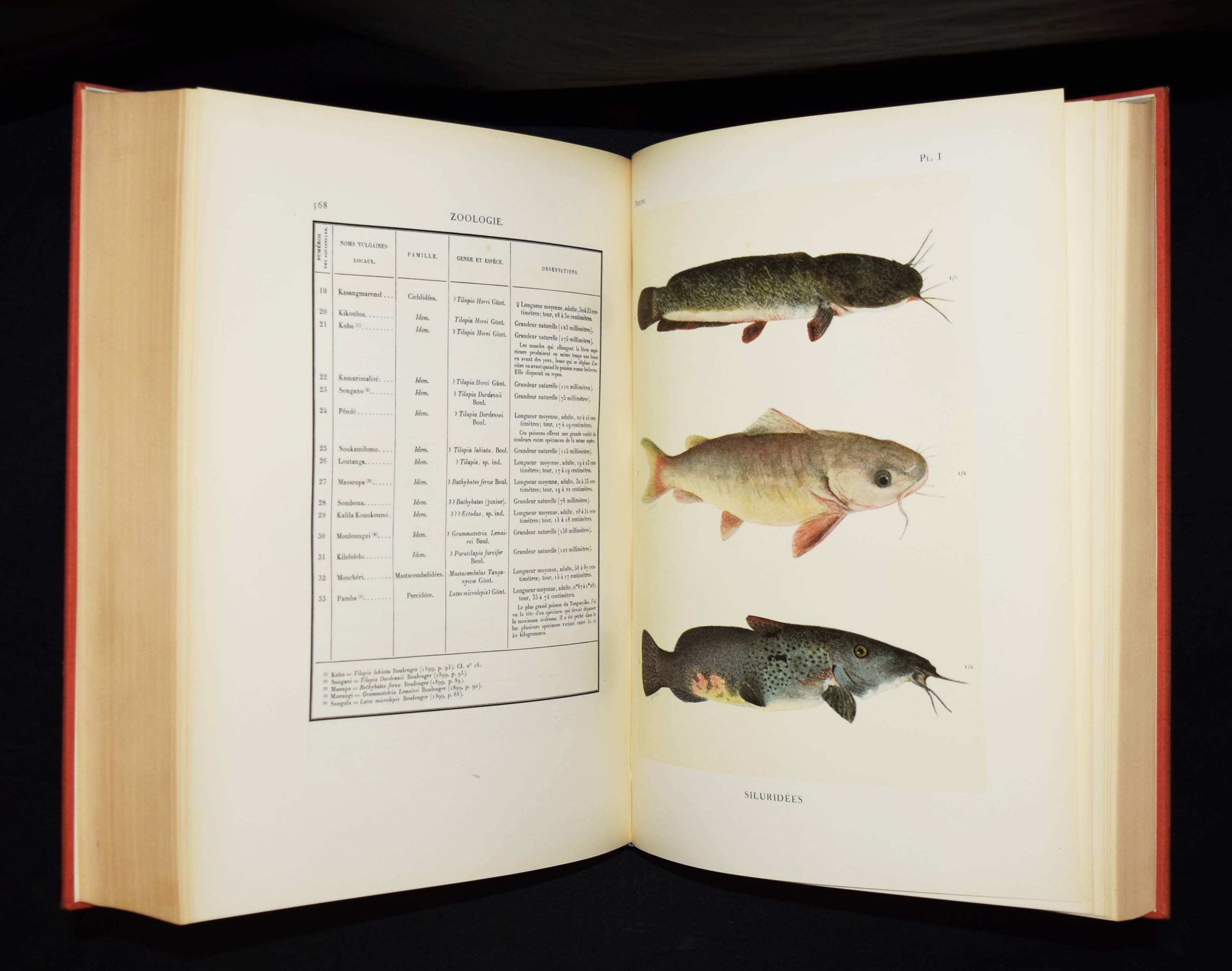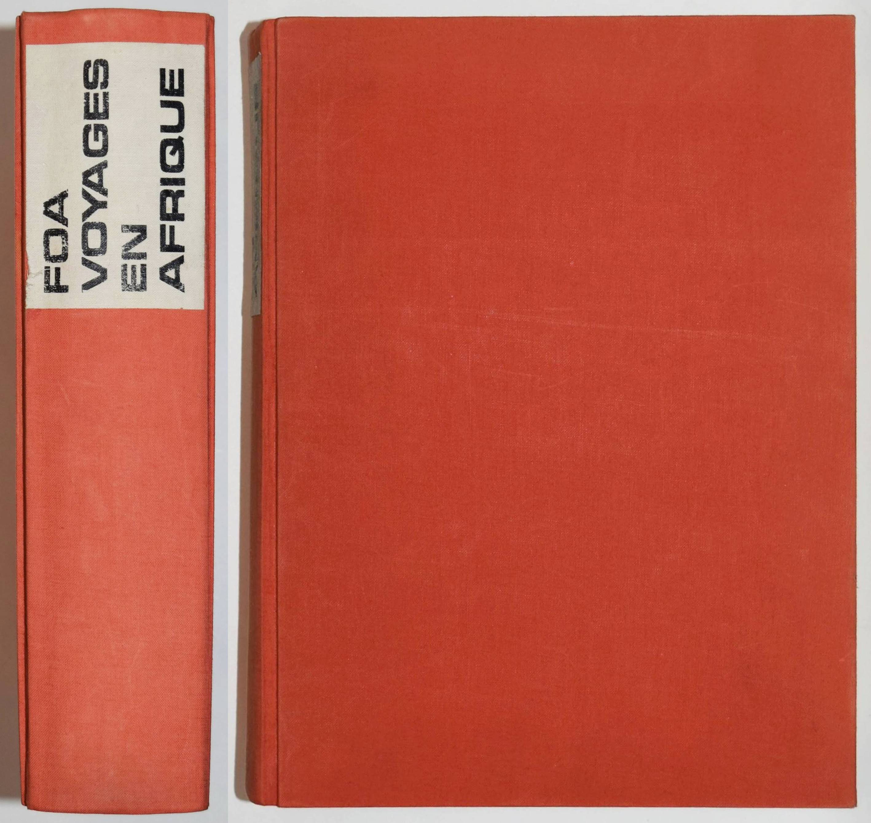 Foà, Edouard. Résultats scientifiques des voyages en Afrique. Publies sous les auspices du Museum national d’histoire naturelle (par Mme. E. Foa). Préface de Edmond Perrier. Paris, Imprimerie Nationale 1908. Gr.-4° (31 x 24 cm.). XLI, 742 S. mit 1 Portrait, 12 Farbtafeln, 155 Abb. u. Karten im Text sowie 6 gefalt. farblithogr. Karten. Moderner Ln. mit Rückenschild. Henze II, 252. Mendelssohn II, 258. – Erste Ausgabe. – Posthum erschienenes wissenschaftliches Hauptwerk des französischen Afrikaforschers. Foa erforschte überwiegend den Sambesi, Kongo und Tanganjika-See. – „Er brachte umfangreiche naturwissenschaftliche und ethnographische Sammlungen mit zuruck sowie eingehende Beobachtungen uber 52 wenig bekannte Volksstämme aus dem Bereich der oberen Seen und des oberen Kongo, nebst Vokabularium von 32 Stämmen. Hinzu kamen uber 500 Photoaufnahmen und eine Reihe von Zeichnungen und Aquarellen“ (Henze). – Mit zahlr. Abbildungen zur Ethnographie, Fauna (u. a. 12 Farbtafeln mit Fischen), Mineralogie und ethnologischen Kulturgegenständen. – Sehr gutes sauberes Exemplar.