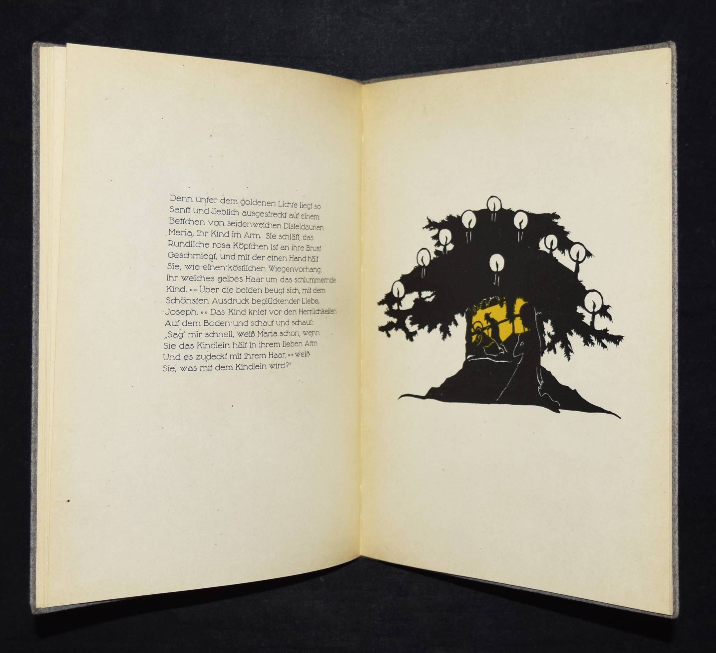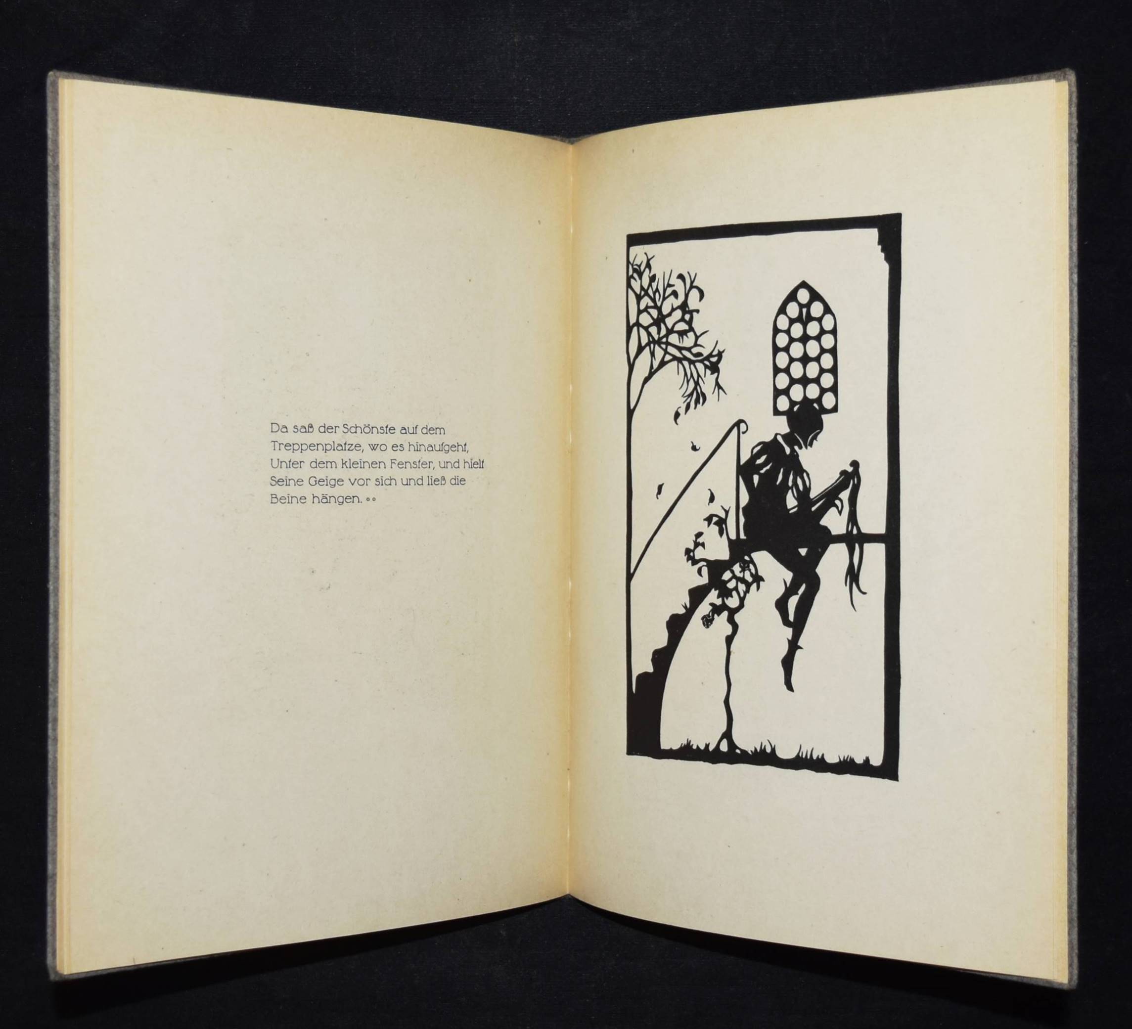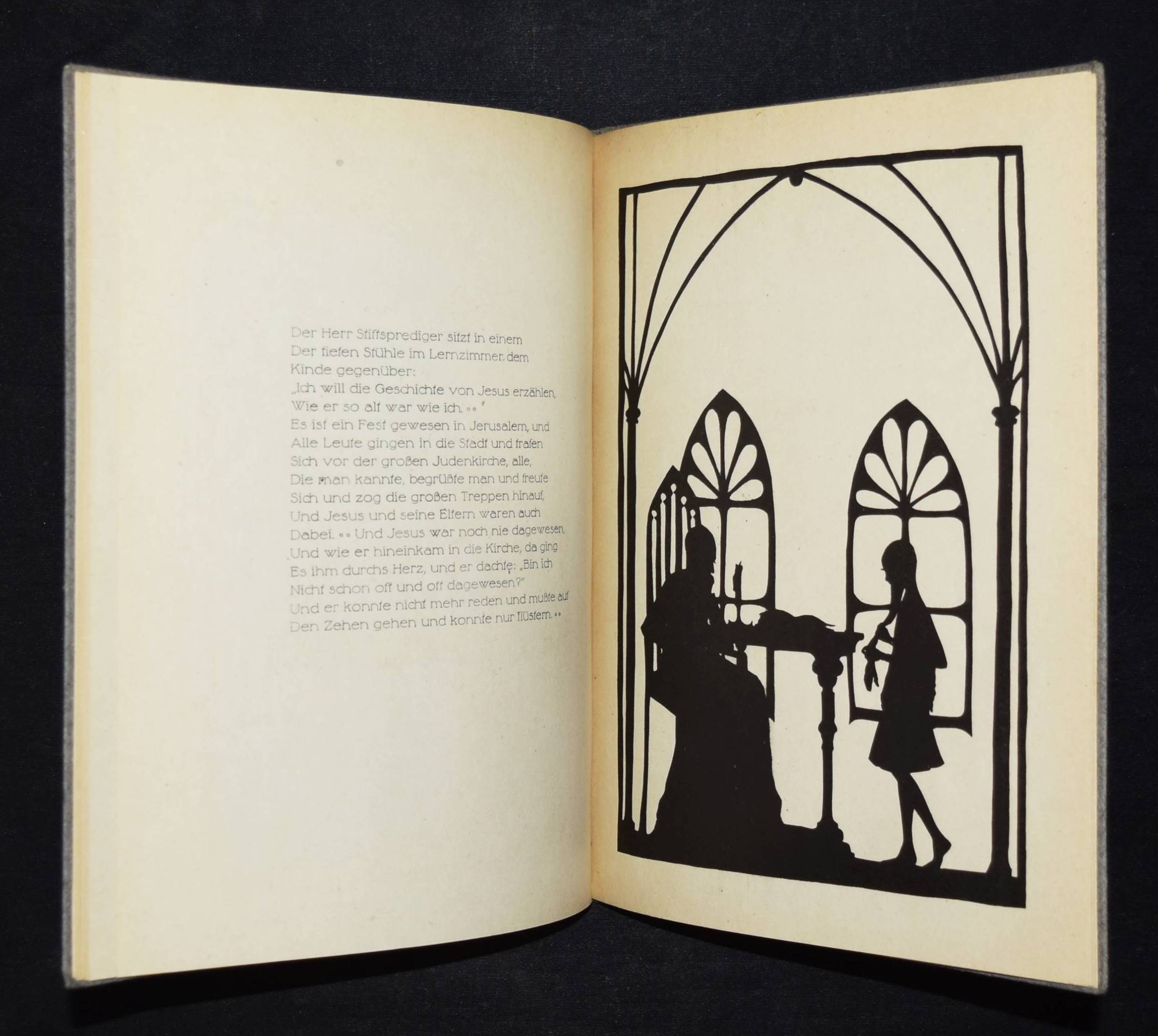 Günther, Agnes. Bilder aus Seelchens Kinderjahren. Aus „Die Heilige und ihr Narr“. Geschnitten von Tilla Ebhardt 1919. 4. Aufl. Hannover, Hartmann & Merten o. J. (um 1920). 4°. [26] S. mit Scherenschnitt-Illustrationen. OPbd. mit goldgepr. Deckelvignette. Weber, Schwarze Kunst im Buch S. 25. – Rücken etwas aufgehellt, sehr gutes Exemplar.