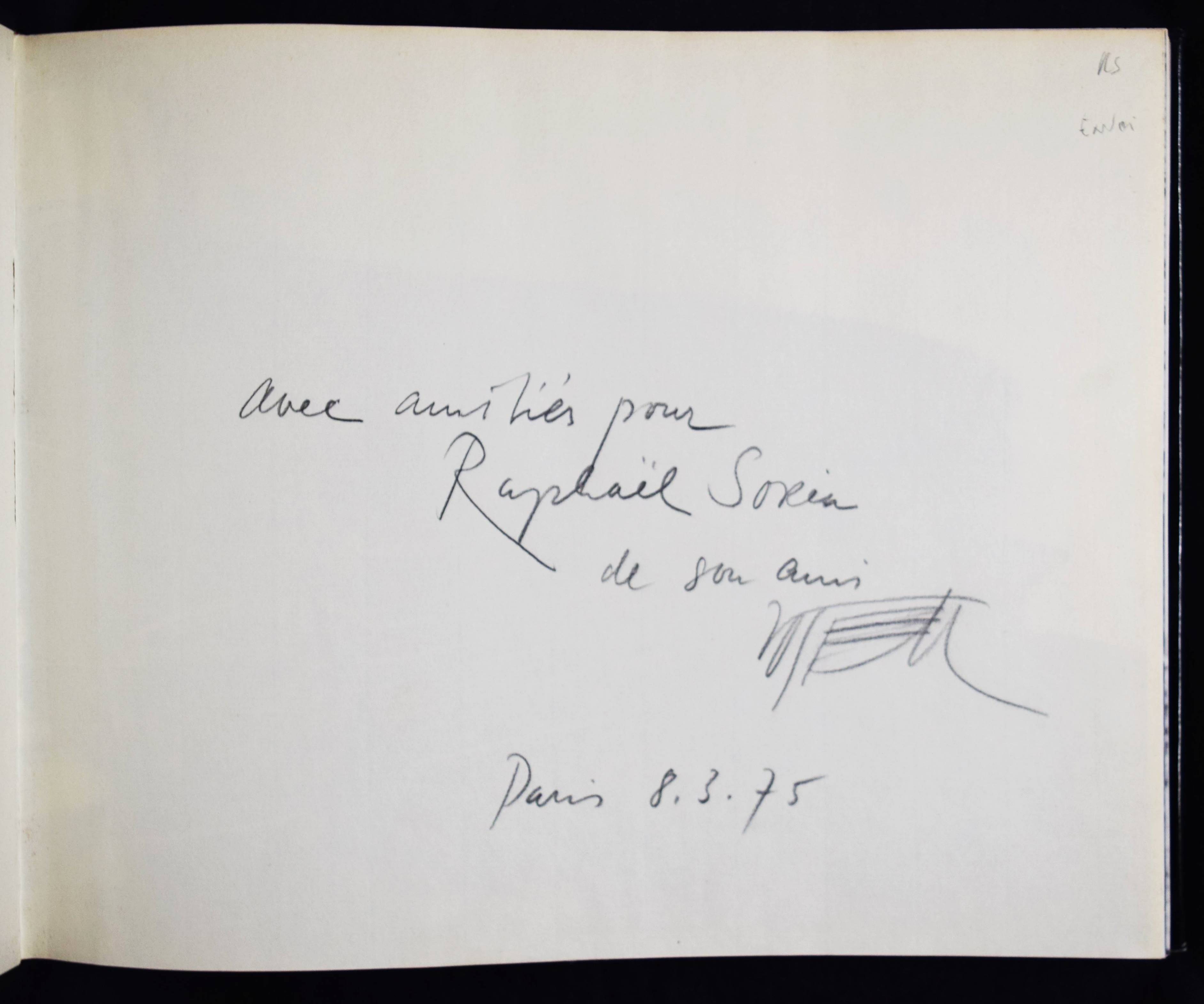 Vostell, Wolf. Environnements, Happenings 1958-1974. Exposition 17 décembre 1974 jusqu’au 27 janvier 1975, ARC 2, Musée d’Art Moderne de la Ville de Paris. Preface Suzanne Pagé. Paris, Editions du Chene (1975). Quer-4°. 276 S. mit zahlr. Abb. OLn. mit illustr. OU. Seltenes Katalogbuch. – Mit eigenhändiger Widmung von W. Vostell für den Schriftsteller und Schauspieler Raphael Sorin (1942-2021). – Farbiges Ausstellungsplakat (Nimes 2008) liegt bei, sehr gutes Exemplar.