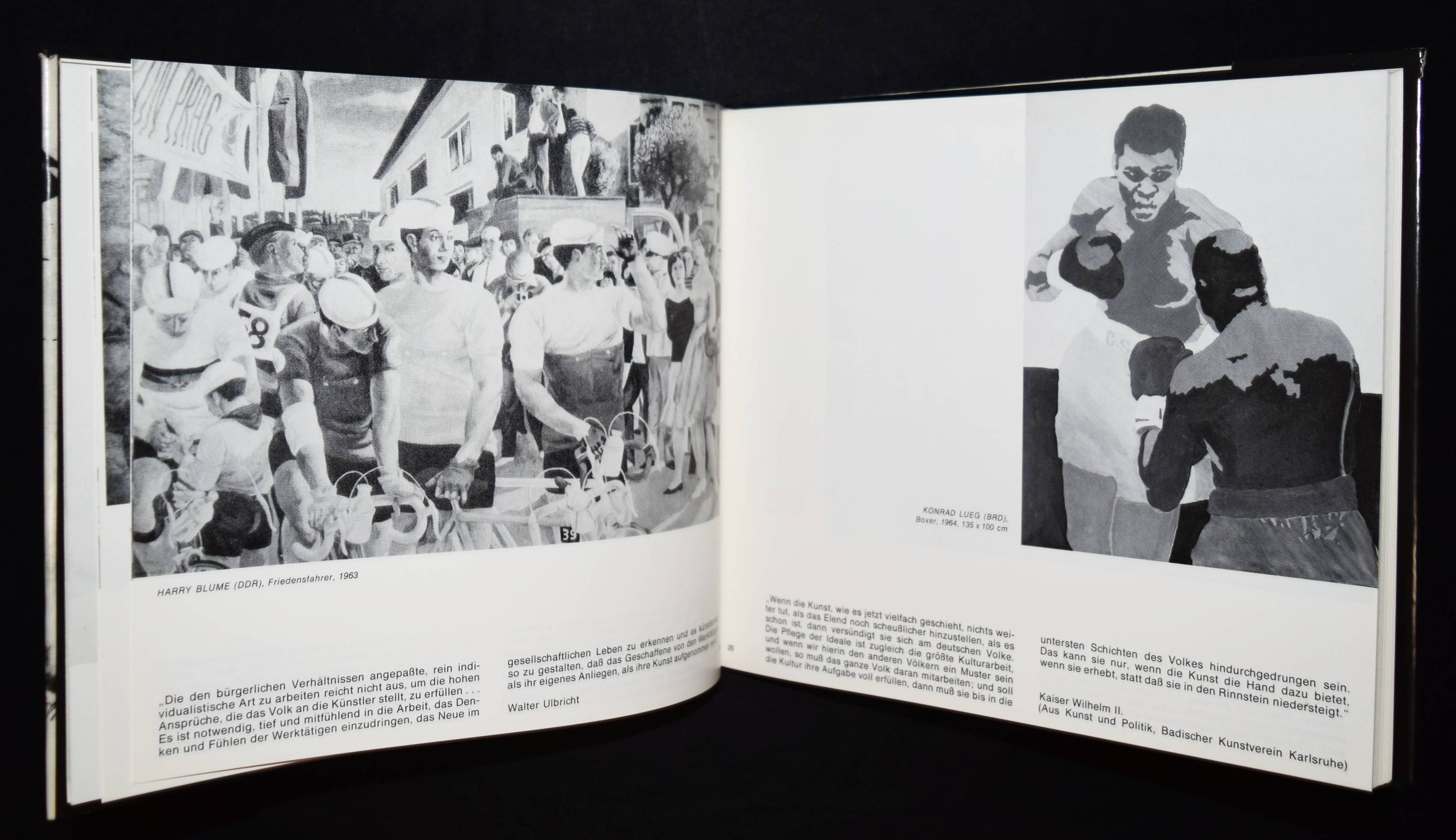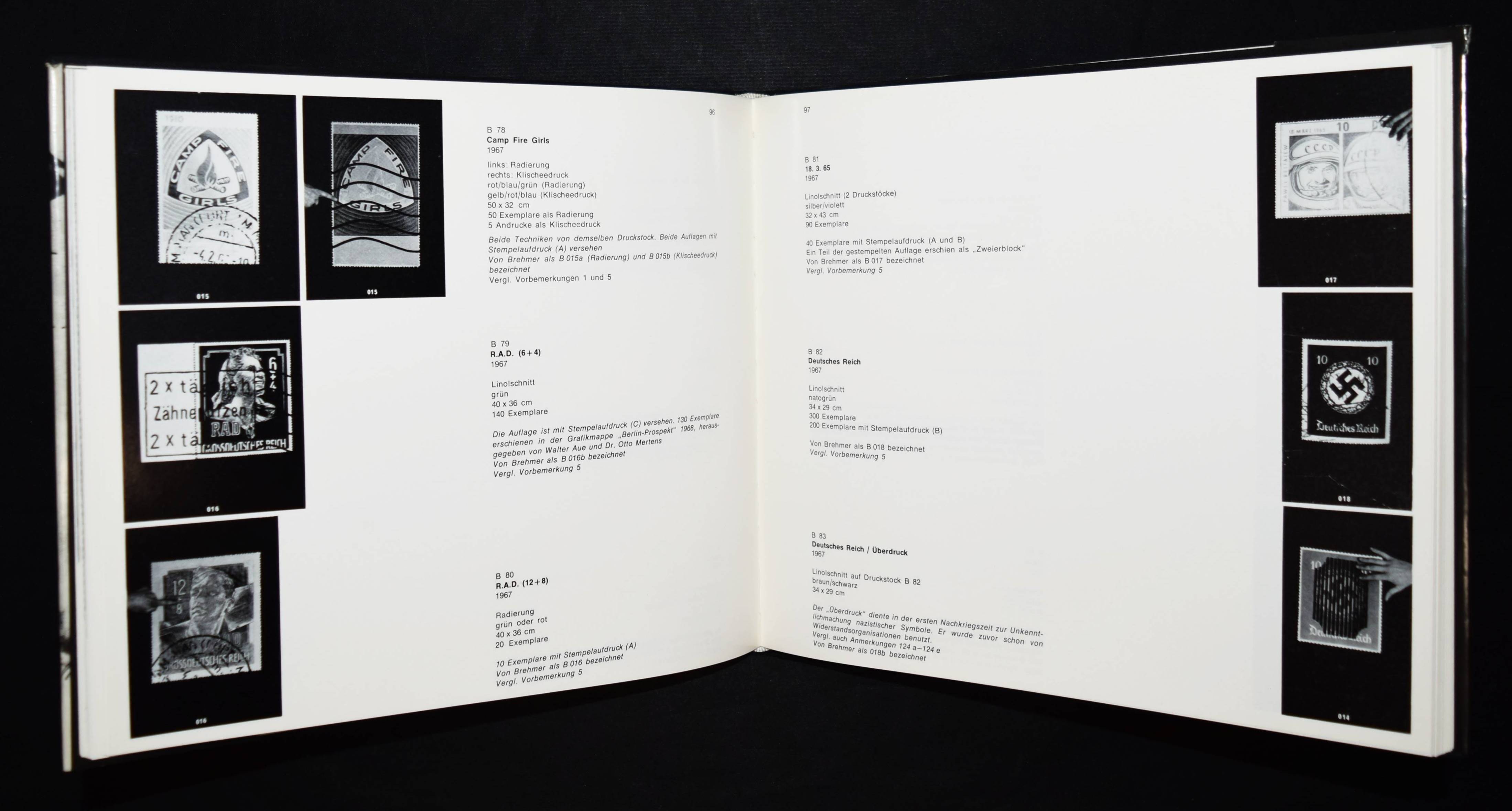Block, René. Grafik des Kapitalistischen Realismus. KP Brehmer – Hödicke – Lueg – Polke – Richter – Vostell. Band 1: Werkverzeichnisse bis 1971 unter Mitarbeit von Carl Vogel. Berlin, Edition René Block im Stolpeverlag 1971. Quer-Gr.-8°. 186 S., [4] Bl. mit zahlr. Abb. OLn. mit illustr. OU. Erste Ausgabe. – Mit Beiträgen von K. P. Brehmer, K. H. Hödicke, W. Vostell, G. Richter, S. Polke u. a. – Sehr gutes Exemplar.