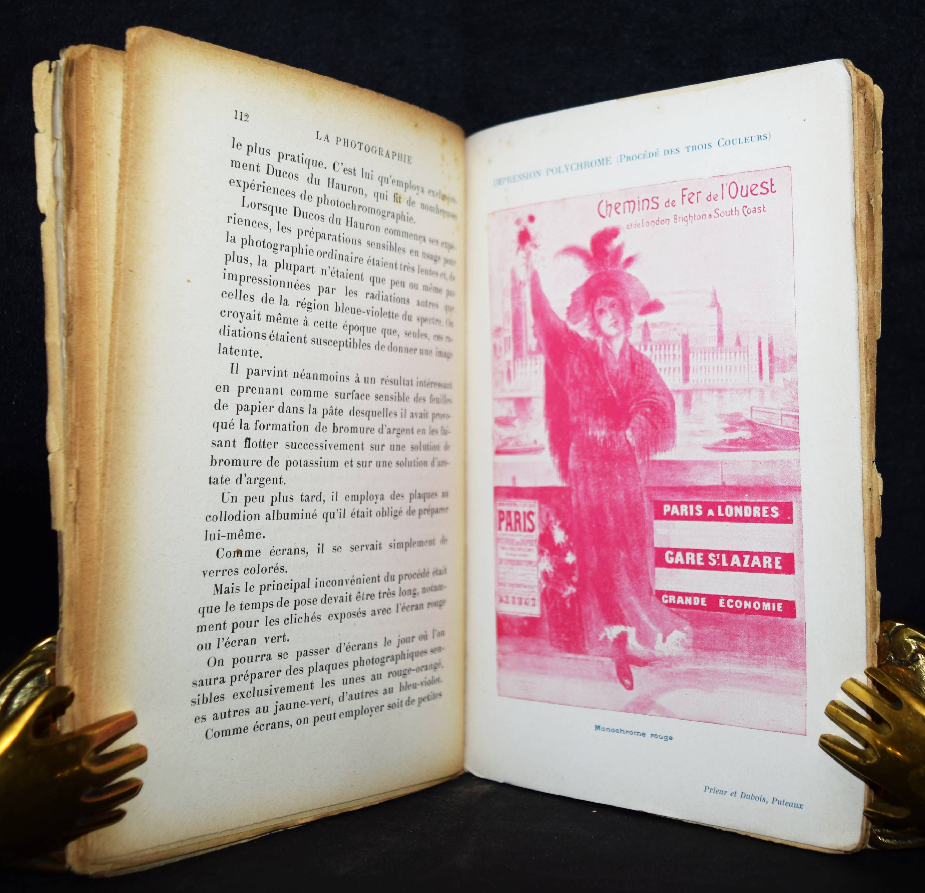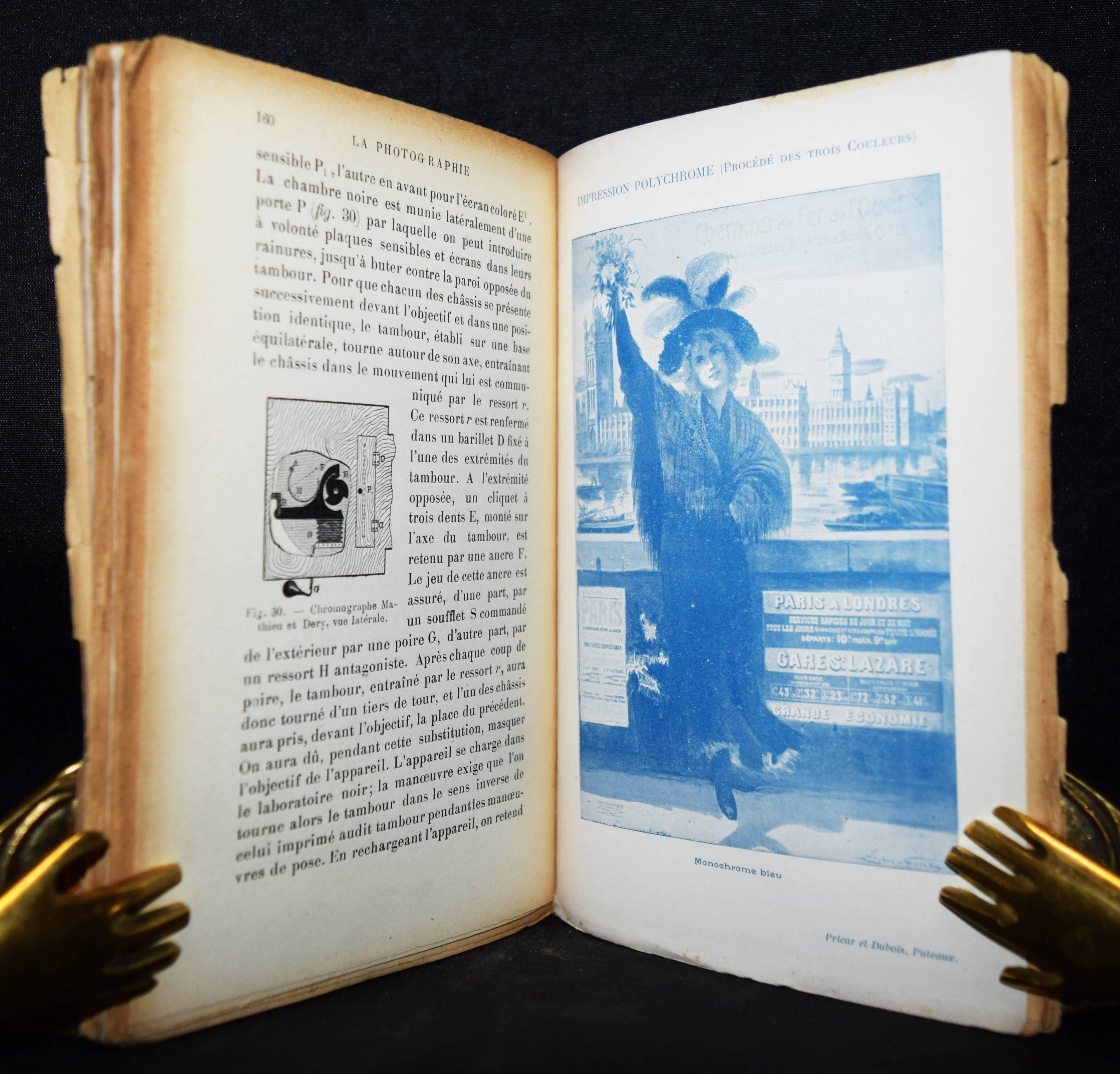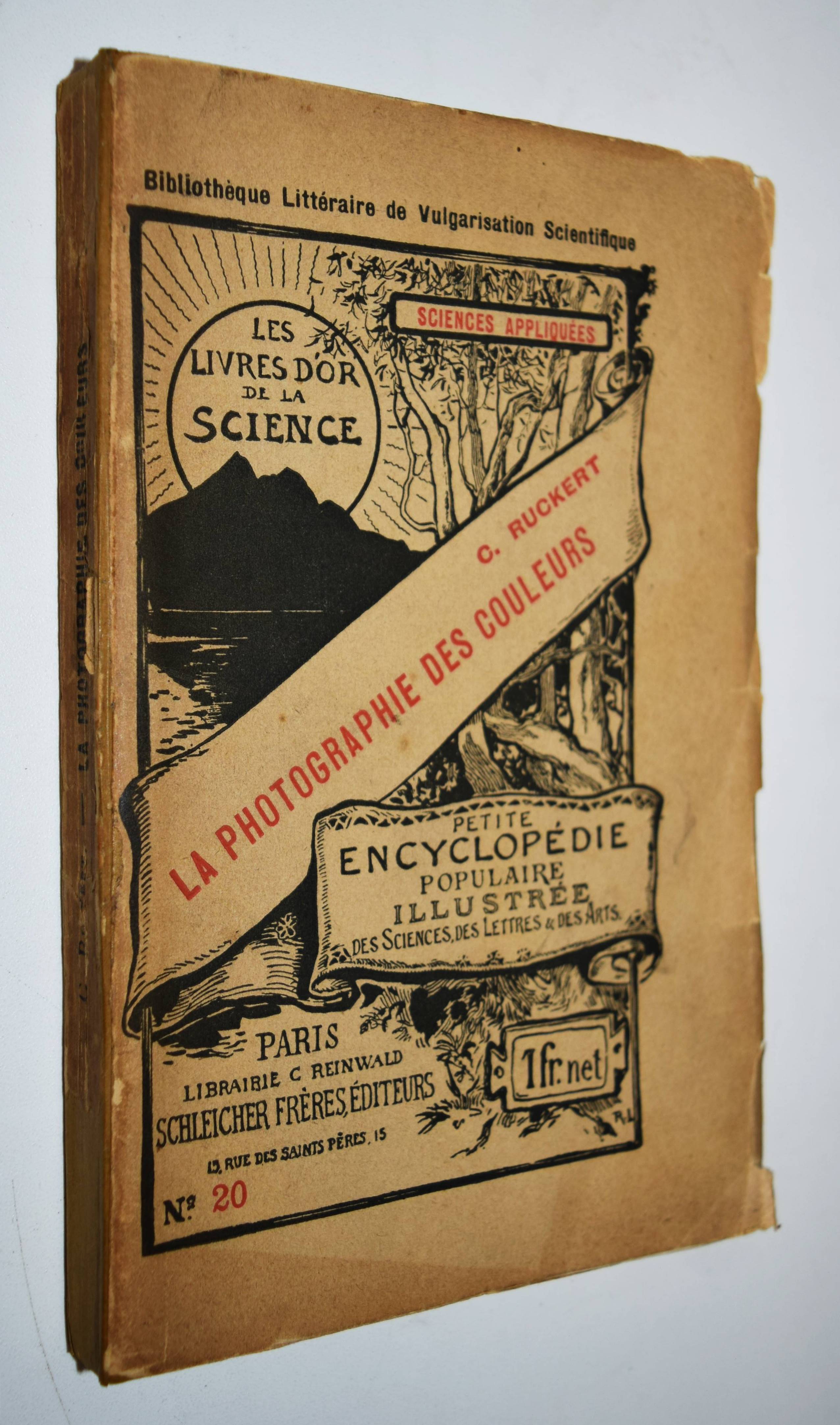 Ruckert, C(amille). La photographie des couleurs, suivi d’un glossaire. Paris, Librairie C. Reinwald, Schleicher fréres 1900. 8°. 190 S. mit 41 Abb. im Text u. 4 Farbtafeln. Illustr. OKart. (Livres d’or de la science, No. 20). Roosens/Salu 2228. – Erste Ausgabe, selten. – C. Ruckert (1866-?) war Direktor der Société de photogravure Ruckert & Godde. – Rücken im unteren Drittel unauffällig restauriert, papierbedingt etwas gebräunt, gutes Exemplar.