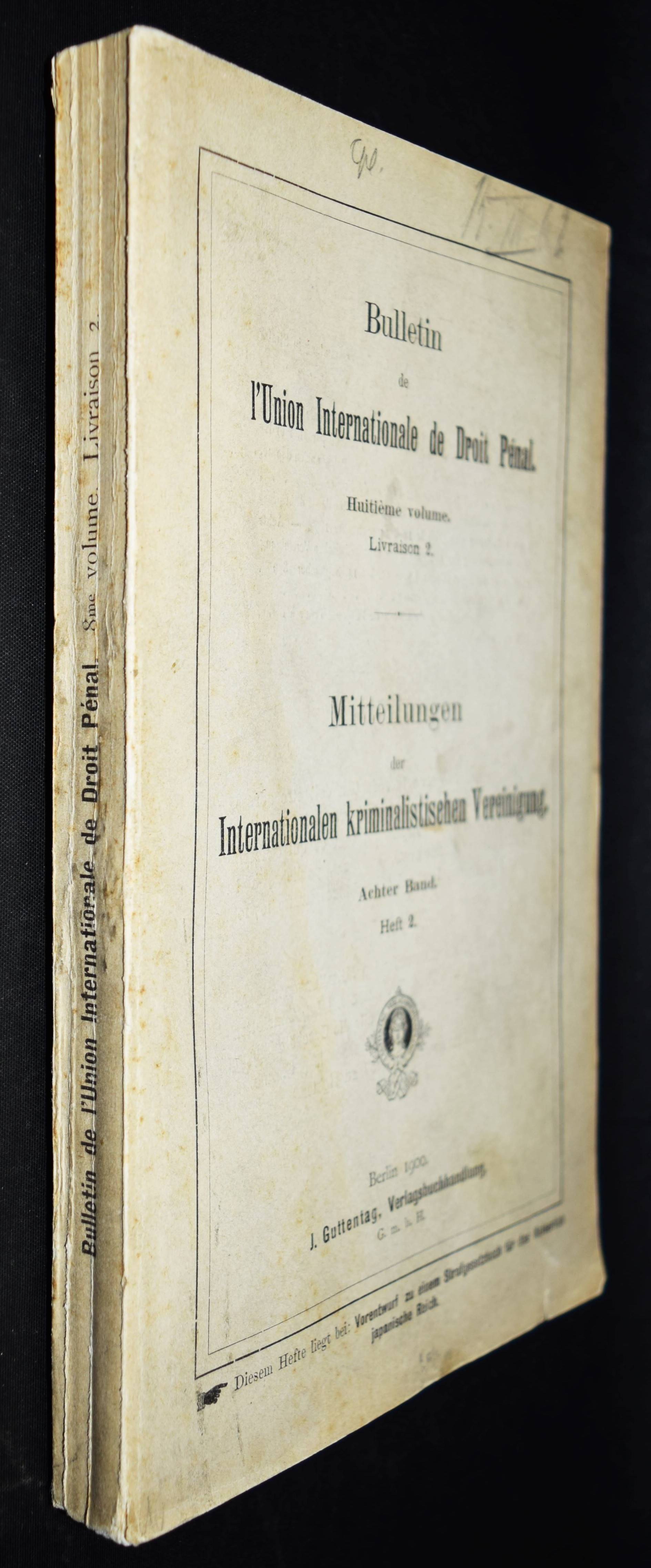 Vorentwurf zu einem Strafgesetzbuch für das kaiserlich japanische Reich. Übersetzt von Assatoro Okada. Berlin, J. Guttentag 1899. 8°. 53 S. OBr. (Sammlung außerdeutscher Strafgesetzbücher in deutscher Übersetzung, hrsg. von der Redaktion der Zeitschrift für die gesamte Strafrechtswissenschaft, Band 14). Erste Ausgabe, sehr selten. – Erschien als Anhang zu den Mitteilungen der Internationalen kriminalistischen Vereinigung. 8. Band, Heft 2. Berlin, ebda. 1900. – „Das Bedürfnis nach einer Revision des geltenden japanischen Strafgesetzbuches vom 1. Januar 1882 machte sich schon bald nach seinen Inkrafttreten geltend. Als Hauptmängel ergaben sich die Enge Strafrahmen und die Unklarheit vieler Verbrechensdefinitionen, welche zu unerfreulichen Ungleichmässigkeiten und Schwankungen in der Rechtssprechung führte“ (A. Okada). – Umschlag etwas angestaubt, sehr gutes Exemplar.