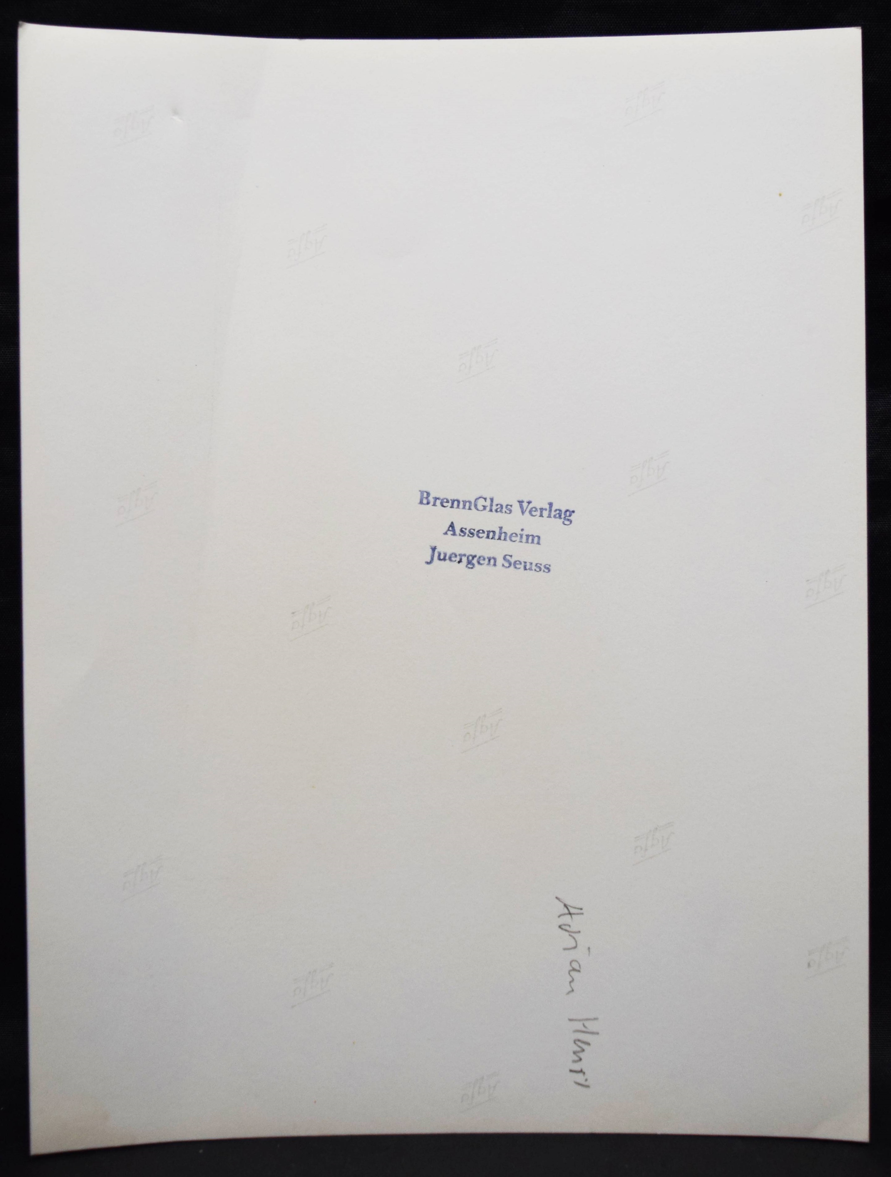 Henri – Marcangeli, Catherine (Ed.). Total Artist. (Painter poet musician). London, Occasional Papers (2014). Gr.-8°. 207, (1) S. mit zahlr. teils farb. Abb. Illustr. OKart. Erste Ausgabe der ersten Monographie über den britischen Maler, Dichter und Musiker A. Henri (1932-2000). – Aus der Bibliothek des Buchkünstlers und Fotografen Jürgen Seuss mit dessen Namenszug auf dem Titel und mit 2 Orig.-Photographien Portraits von A. Henri und Gerold Dommermuth von J. Seuss. – J. Seuss lernte A. Henri 1964 in Liverpool kennen. 1965 gab er zusammen mit G. Dommermuth und Hans Meier das Buch „Beat in Liverpool“ heraus. – A. Henri, Gründer der Poetry-Gruppe „Liverpool Scene“, verfasste zusammen mit Brian Patten und Roger McGough die Anthologie „The Mersey Sound“. Das Liverpooler Dichtertrio hat mit dem Buch den Merseybeat-Zeitgeist der 1960er und 1970er Jahre international bekannt gemacht. – Ein Foto mit leichter Knickspur, sonst gut erhalten.