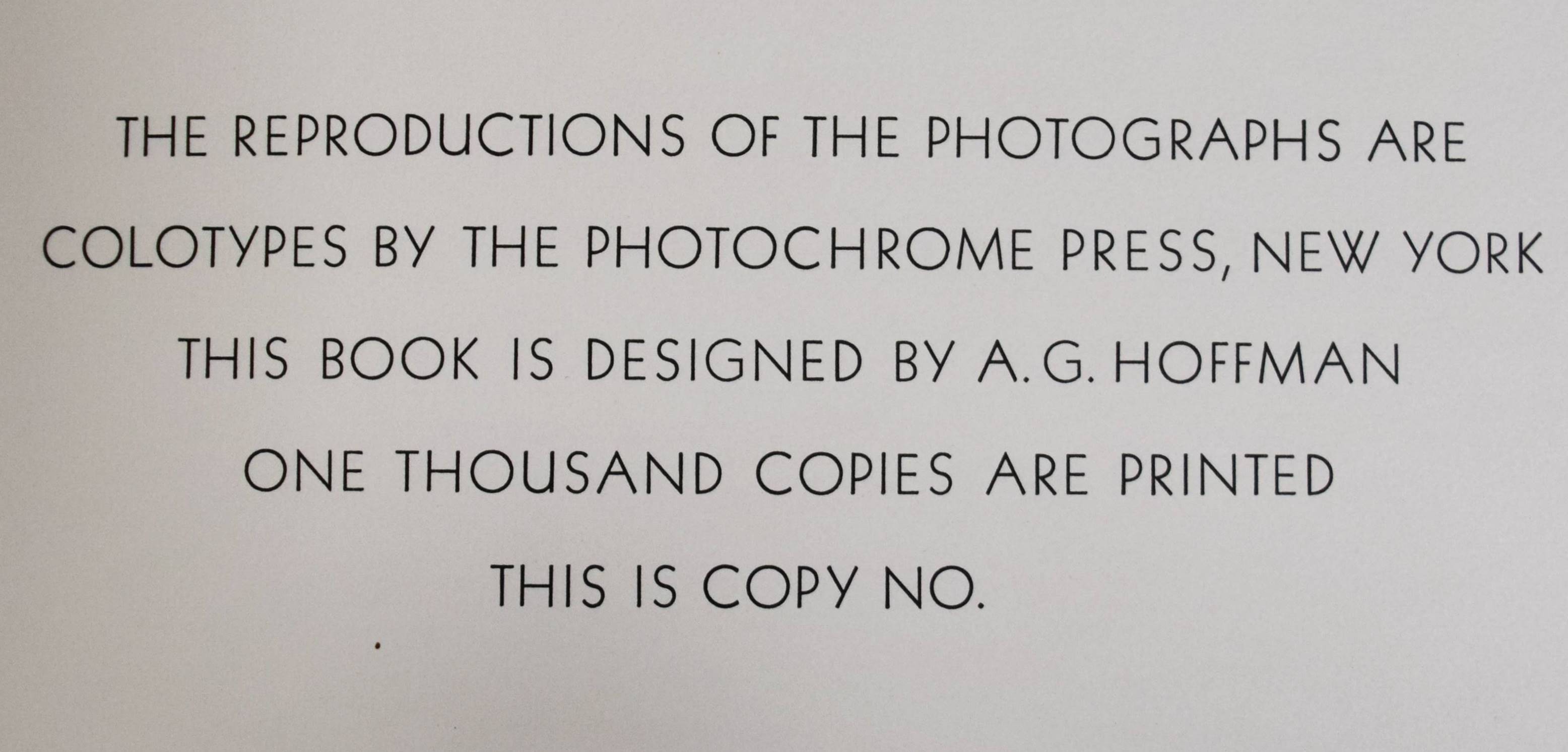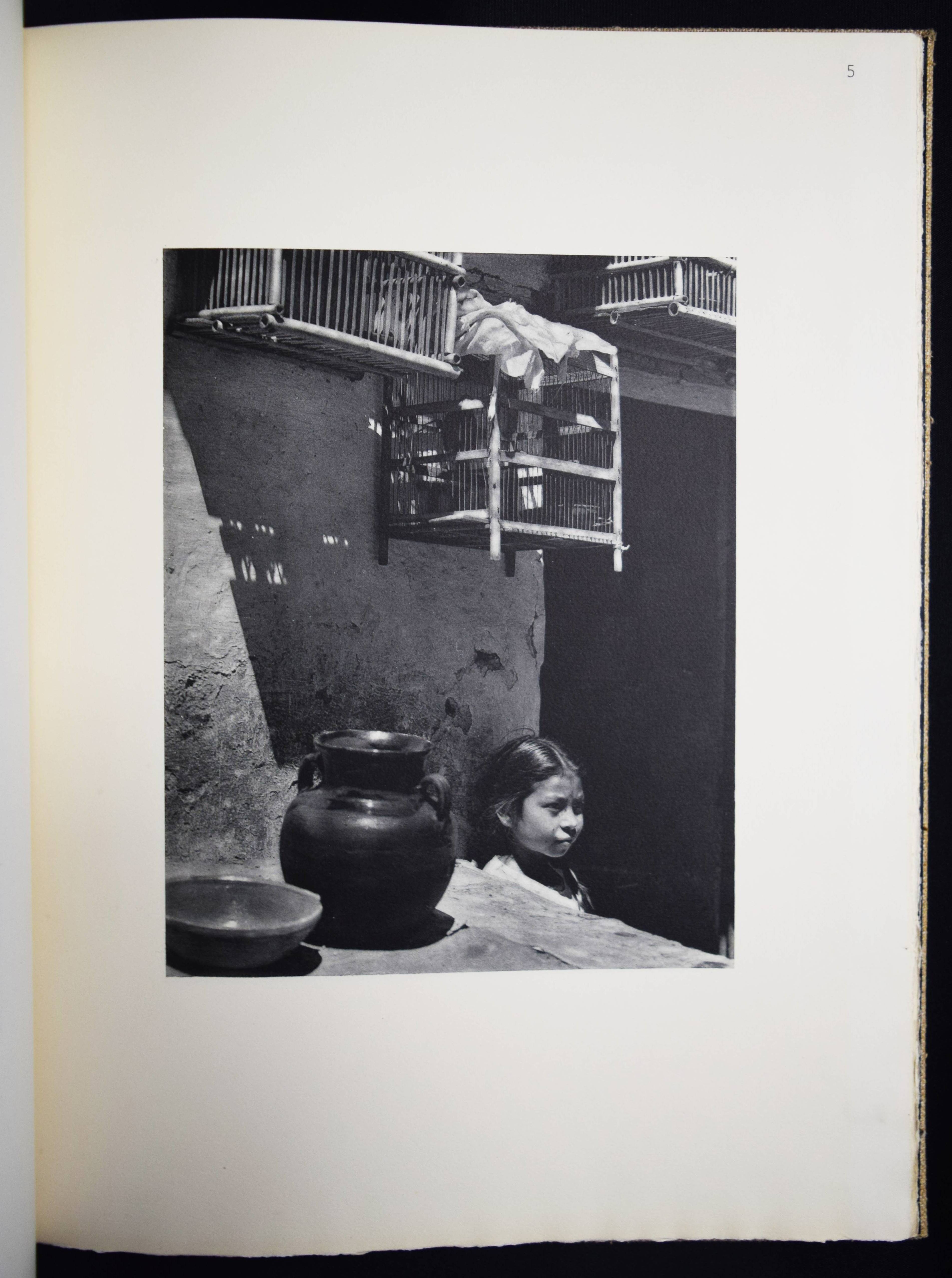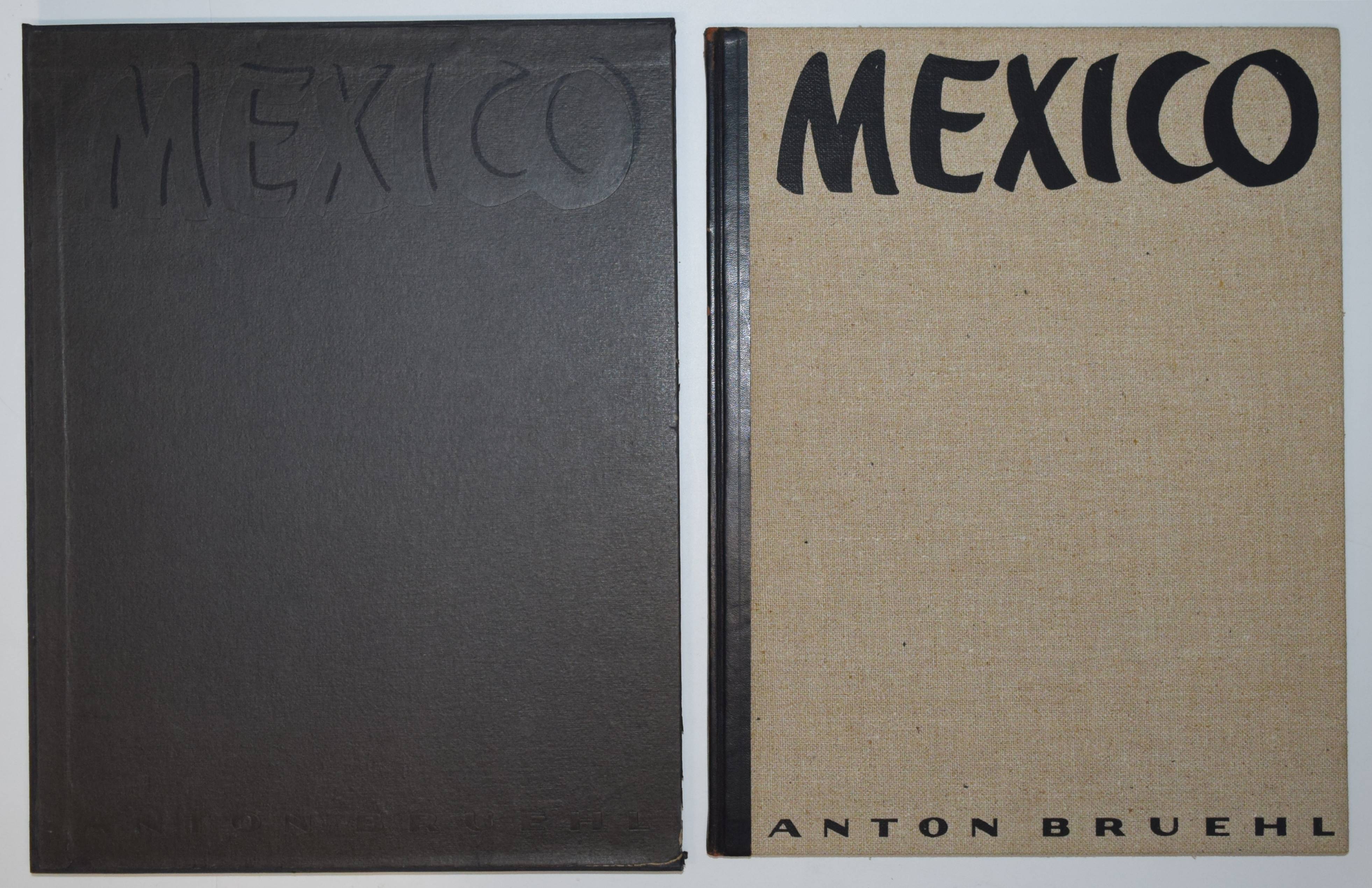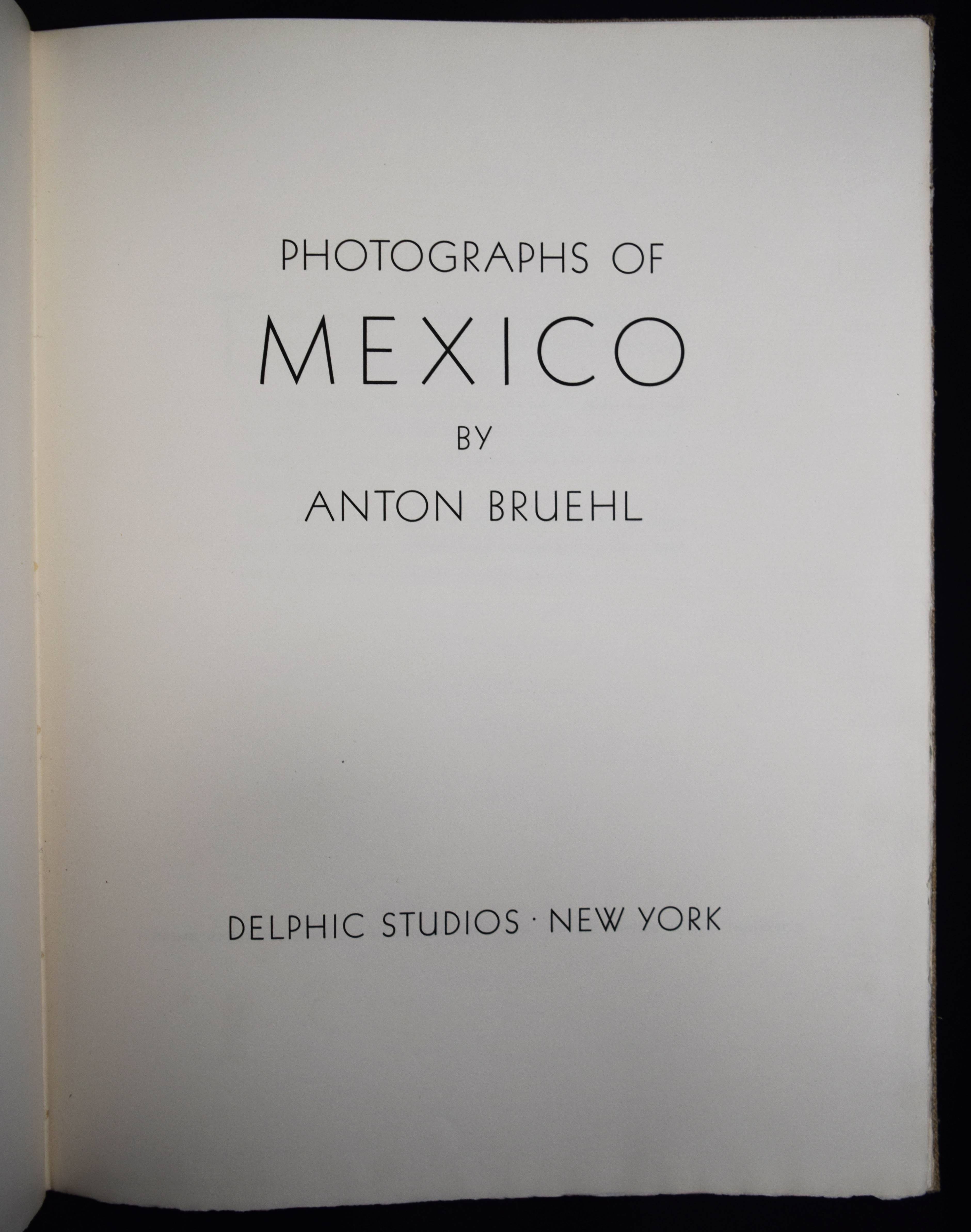 Bruehl, Anton. Photographs of Mexico. (Bookdesign by A. G. Hoffman). New York, Delphic Studios (1933). Folio (42 x 32 cm.). [5] Bl., 25 Lichtdruck-Tafeln (Collotypes, Heliogravure), [2] Bl. Orig.-Halblederband mit Deckeltitel und Pappschuber. Auer 206. Parr/Badger I, 81. Sinibaldi/Couturier 60. – Erste Ausgabe der preisgekrönten Fotodokumentation. Eines von 1000 Exemplaren (vorliegendes Exemplar ohne Nummerierung). – „The images are close in style to those made by Paul Strand in Mexico in 1932-4, although Bruehl’s pictures do not display the sense of suffering that colors much of Strand’s work. The book is an interesting demonstration of the kind of formalist modernism that does not even pretend to make any social analysis of what is being photographed“ (Parr/Badger). – A. Bruehl (1900-1982), geboren in Hawker (Australien) als Sohn deutscher Einwanderer, eröffnete 1925 ein Fotostudio in New York und arbeitete zuerst als Modefotograf für Vogue und Vanity Fair. Außerdem porträtierte er bekannte Filmschauspieler. Alma Reed hatte bereits 1931 Arbeiten Bruehls in ihrer New Yorker Galerie Delphic Studios ausgestellt. – Schuber restauriert, Rücken gering berieben, gutes Exemplar.