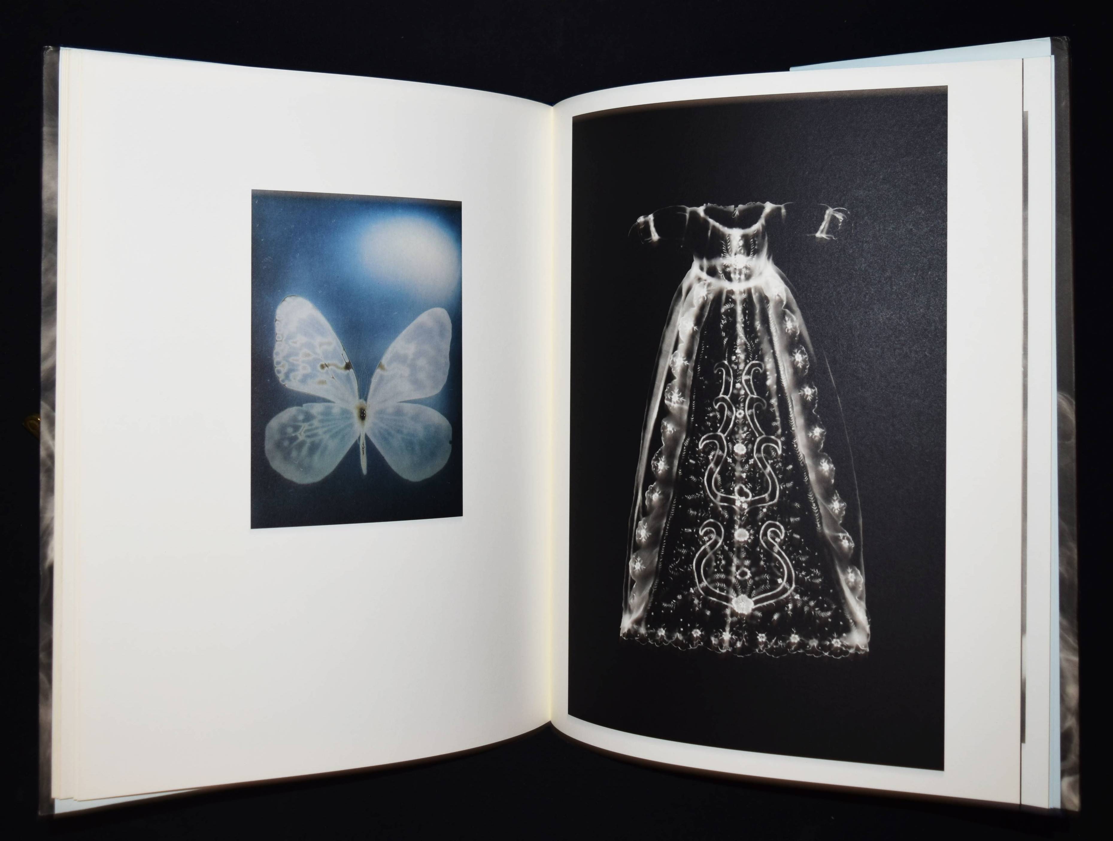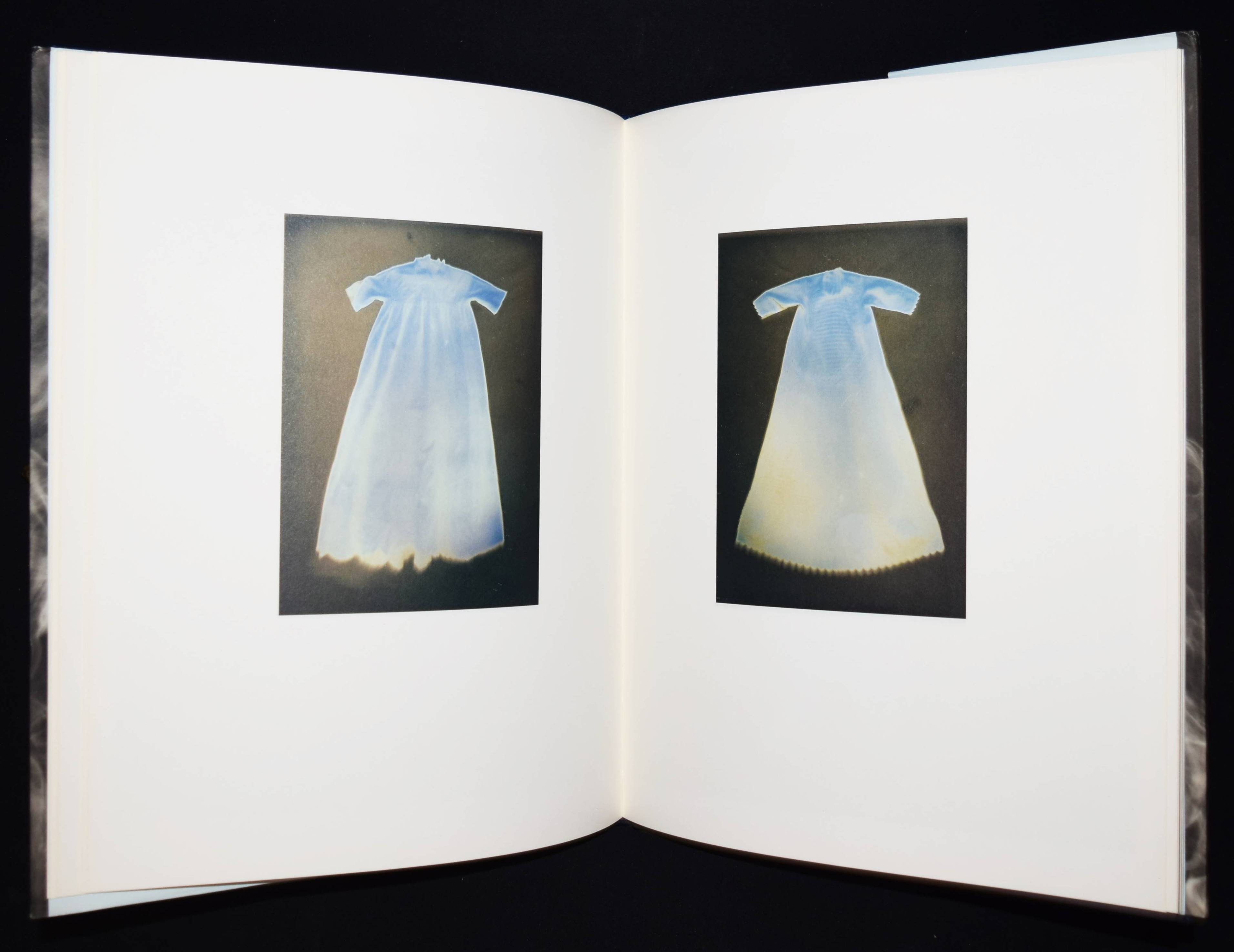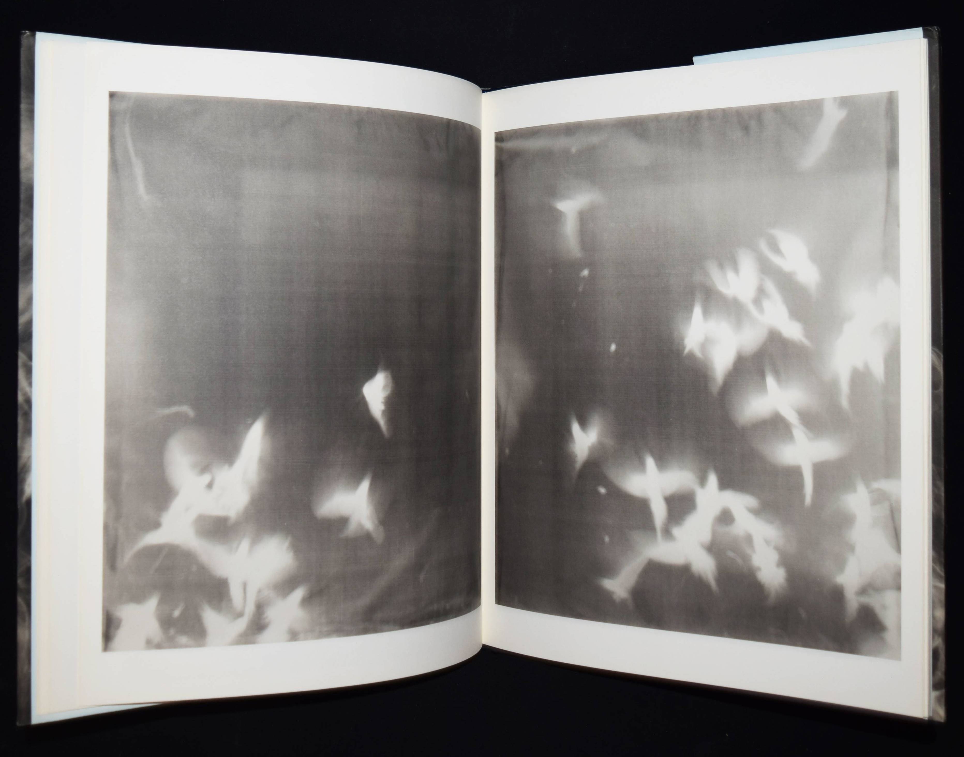 Fuss, Adam. My ghost. (Photographs by Adam Fuss in silver gelatin, platinum-palladium, and daguerreotype made between 1995 and 2001. With texts by Arseny Tarkovsky, Neville Wakefield and Leonid Aranzone). Sante Fe, N.M., Twin Palms Publishers (2002). Folio (38 x 30 cm.). [50] p. with 26 tritone and 4 color plates. OLn. mit illustr. OU. Erste Ausgabe. – „We’re so conditioned to the syntax of the camera that we don’t realize that we are running on only half the visual alphabet….It’s what we see every day in the magazines, on billboards, and even on television. All those images are being produced basically the same way, through a lens and a camera. I’m saying there are many, many other ways to produce photographic imagery, and I would imagine that a lot of them have yet to be explored.“ – Adam Fuss – A nineteenth-century child’s dress is carefully laid out for our viewing. Perhaps, because we are aware that it is a part of lost time, our thoughts go to its missing inhabitant—an ethereal presence, intricate to the weave of the fabric before us. And then there are the birds, scattering in a grey photographic dusk, soundless. Now, the mirrored surfaces of the daguerreotypes flicker before us, never completely giving up their secrets. In this body of work the artist essays loss and its attendant ghosts“ (Neville Wakefield). – Sehr gutes Exemplar.