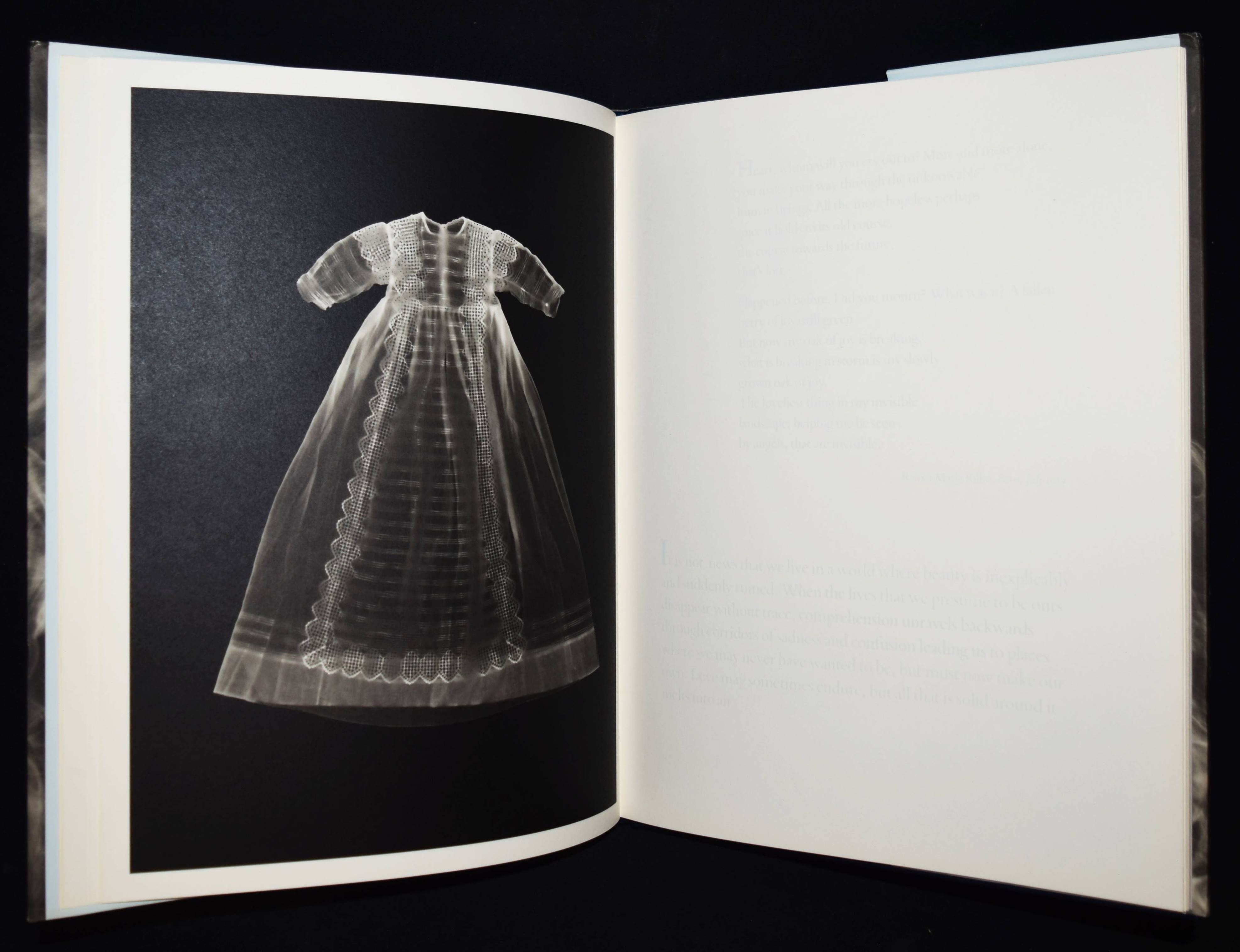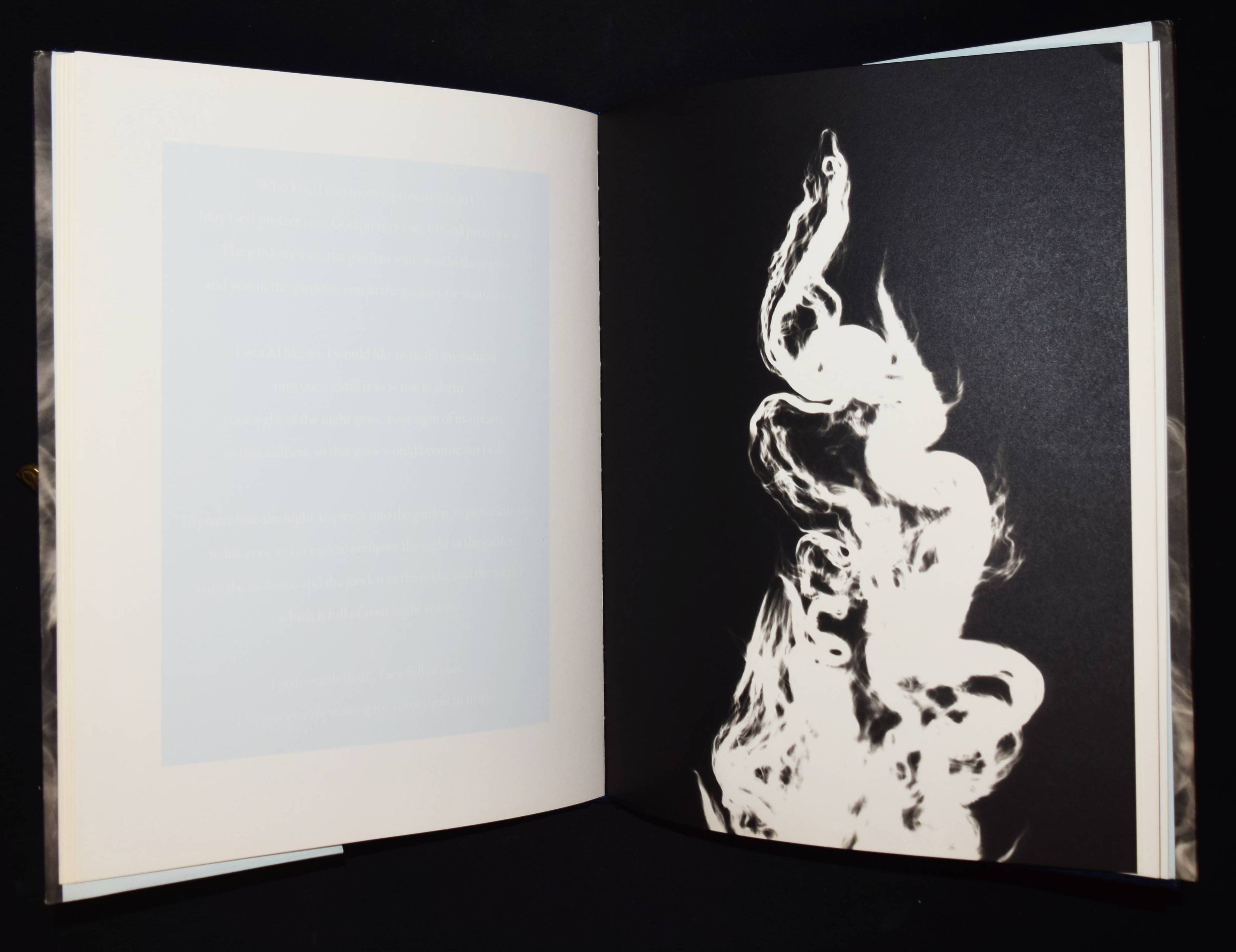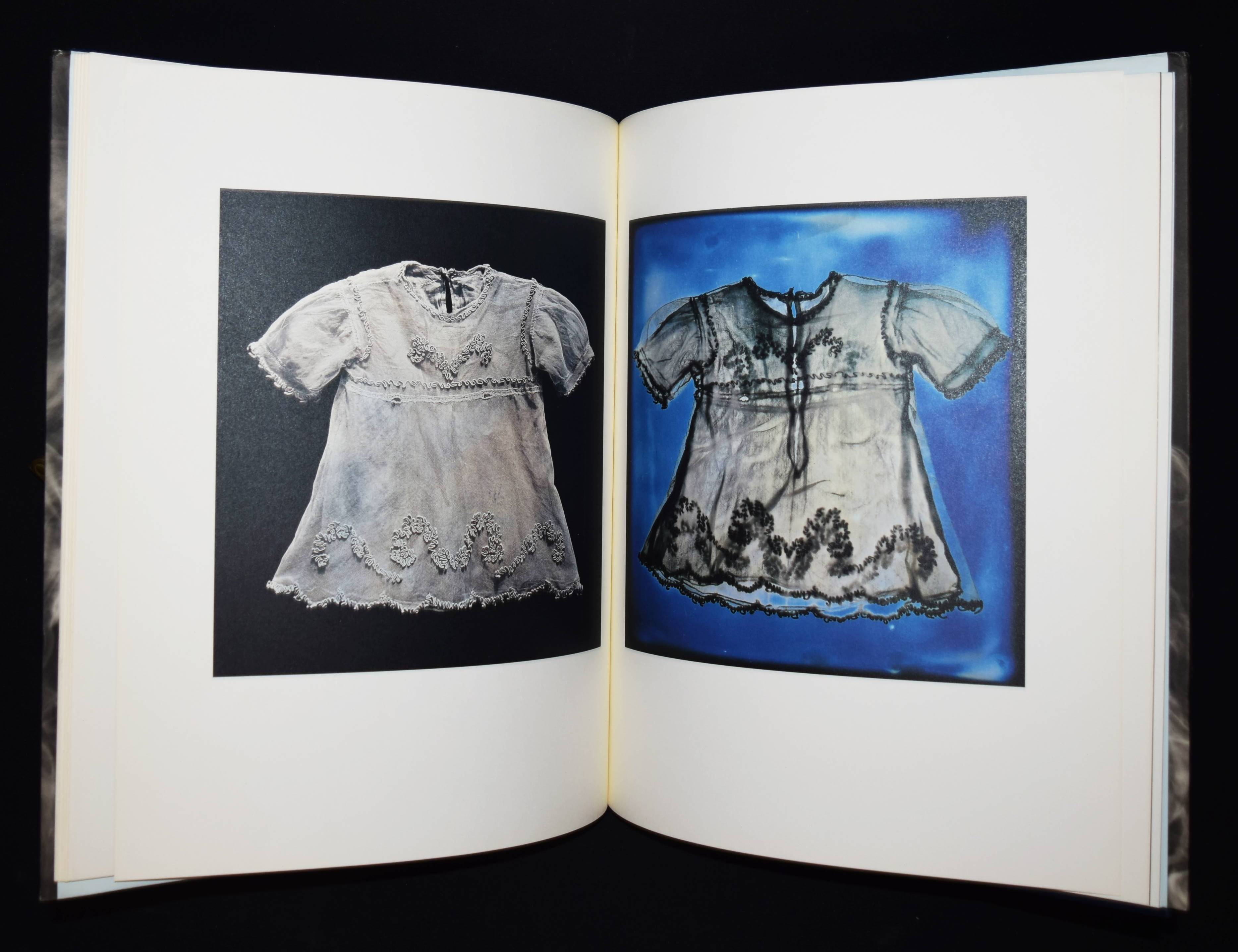 Fuss, Adam. My ghost. (Photographs by Adam Fuss in silver gelatin, platinum-palladium, and daguerreotype made between 1995 and 2001. With texts by Arseny Tarkovsky, Neville Wakefield and Leonid Aranzone). Sante Fe, N.M., Twin Palms Publishers (2002). Folio (38 x 30 cm.). [50] p. with 26 tritone and 4 color plates. OLn. mit illustr. OU. Erste Ausgabe. – „We’re so conditioned to the syntax of the camera that we don’t realize that we are running on only half the visual alphabet….It’s what we see every day in the magazines, on billboards, and even on television. All those images are being produced basically the same way, through a lens and a camera. I’m saying there are many, many other ways to produce photographic imagery, and I would imagine that a lot of them have yet to be explored.“ – Adam Fuss – A nineteenth-century child’s dress is carefully laid out for our viewing. Perhaps, because we are aware that it is a part of lost time, our thoughts go to its missing inhabitant—an ethereal presence, intricate to the weave of the fabric before us. And then there are the birds, scattering in a grey photographic dusk, soundless. Now, the mirrored surfaces of the daguerreotypes flicker before us, never completely giving up their secrets. In this body of work the artist essays loss and its attendant ghosts“ (Neville Wakefield). – Sehr gutes Exemplar.