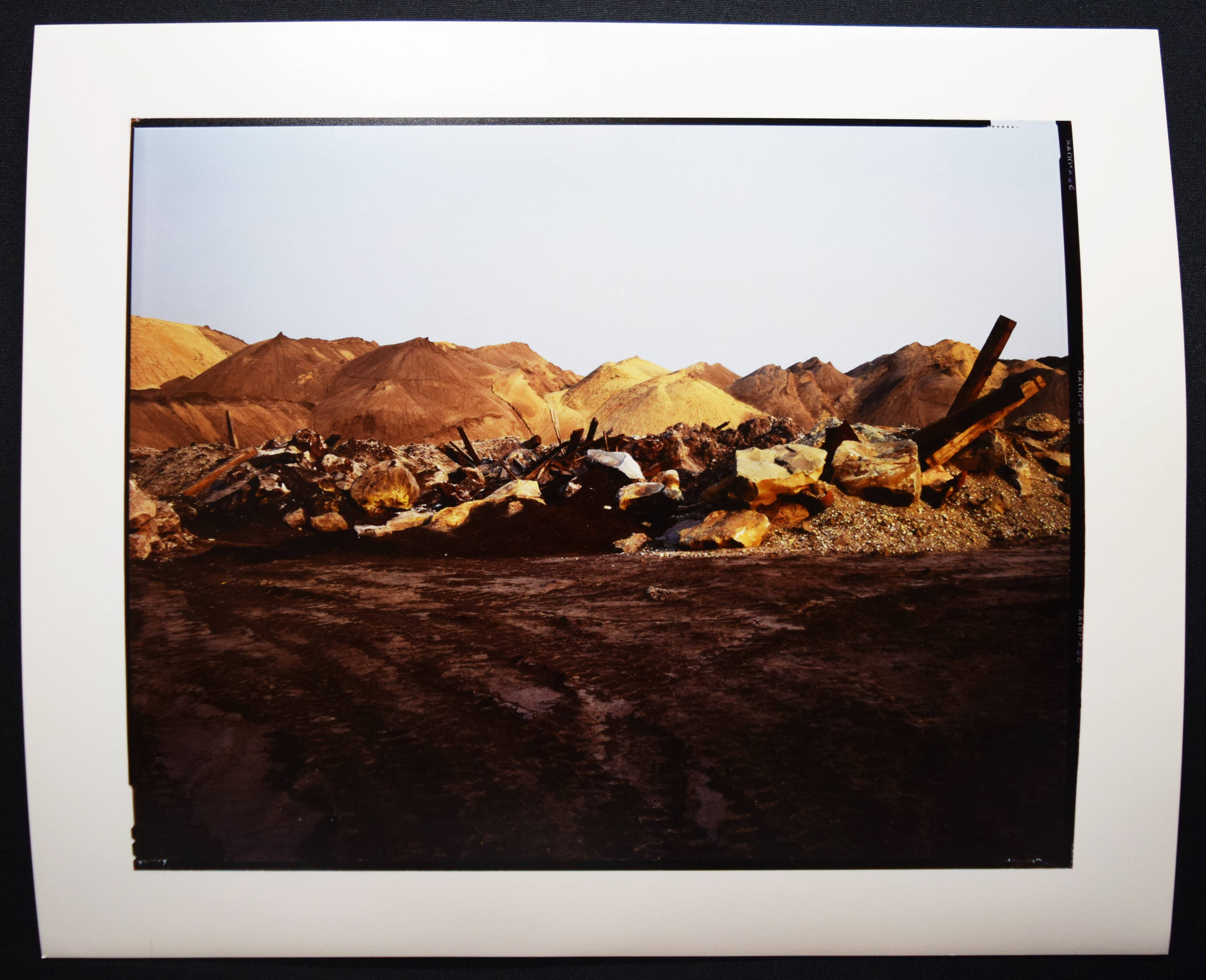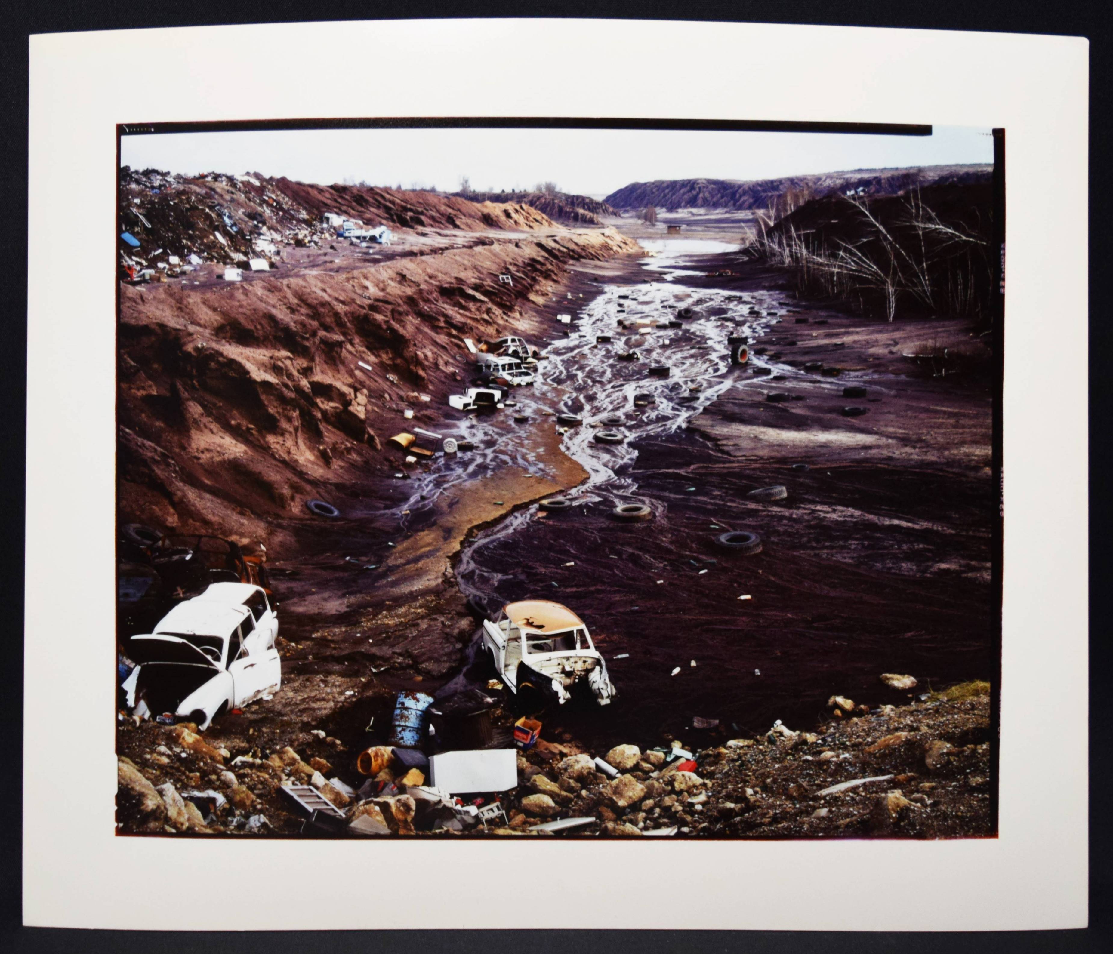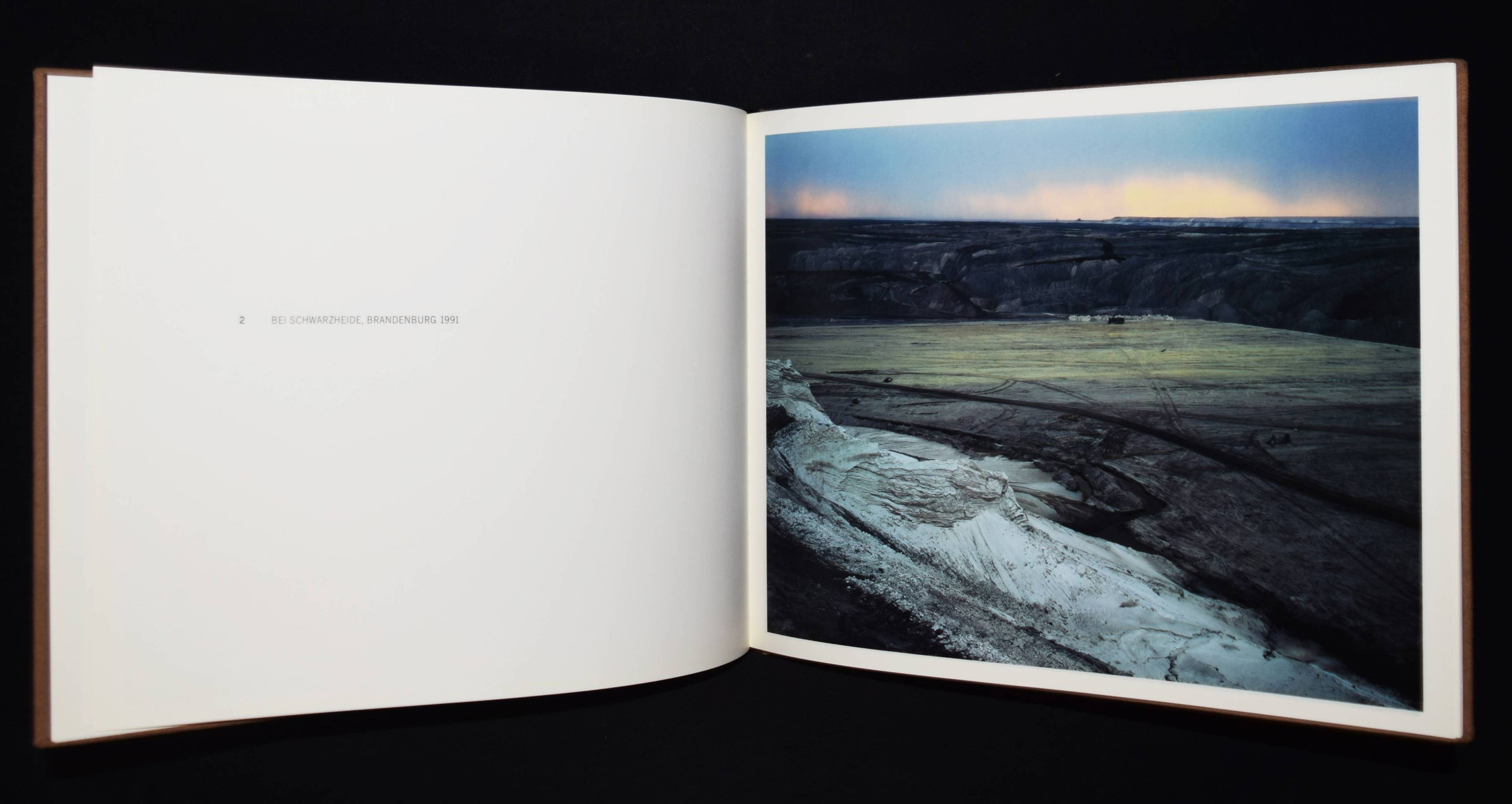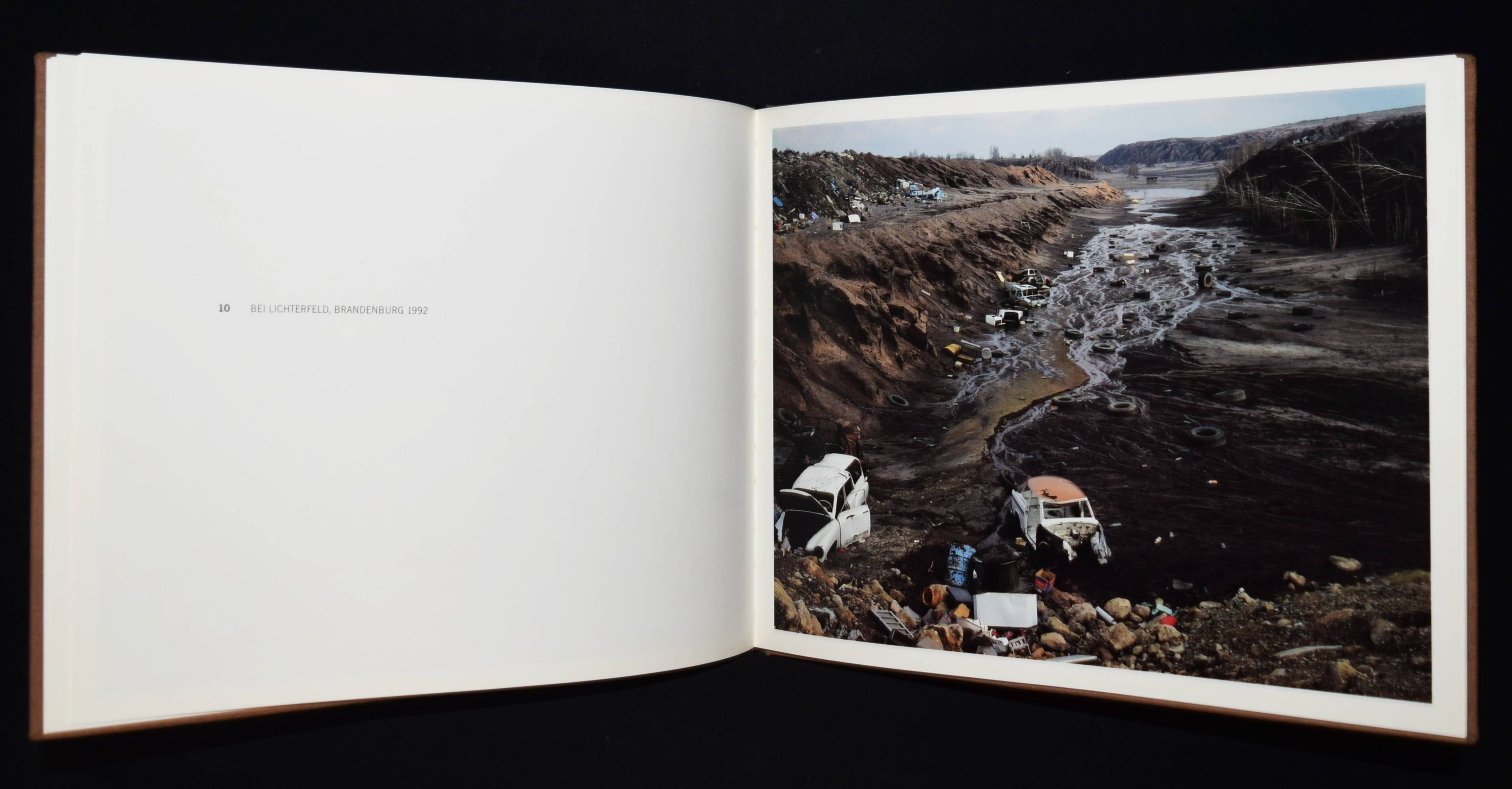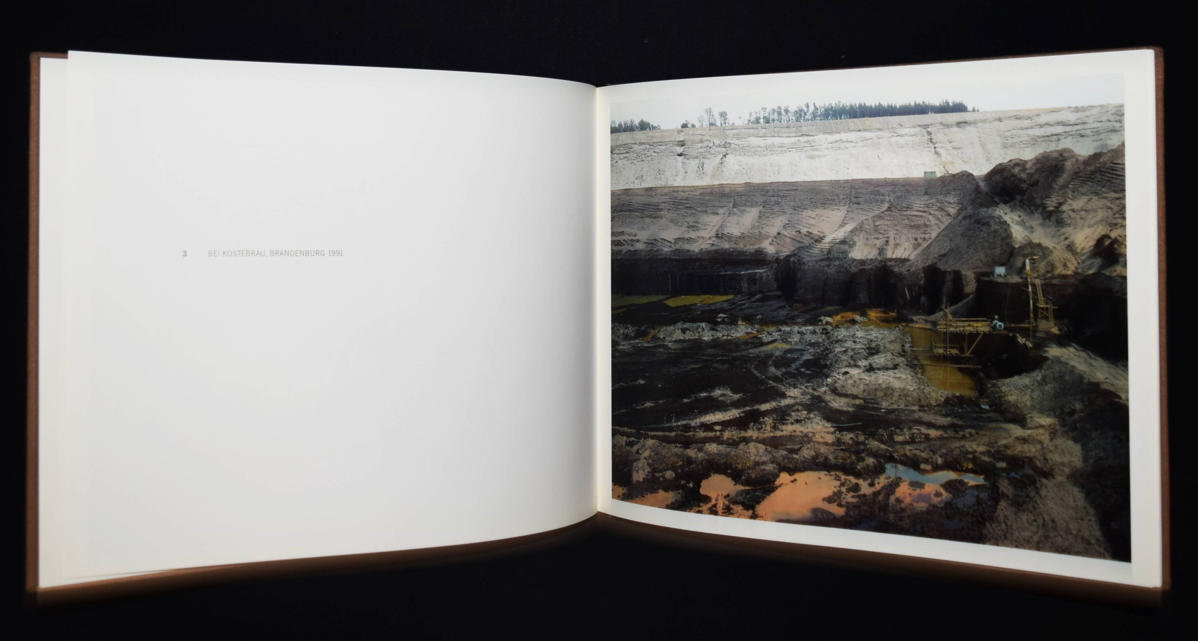 Rambow, Inge. Wüstungen. Ostdeutsche Landschaften 1991-1993. (Mit einem Text von Jean-Christophe Ammann und einem Interview zwischen Gerald Gutsch und I. Rambow).). Frankfurt am Main, Museum für Moderne Kunst (1998). Quer-4°. [72] S. mit 24 Farbtafeln (davon die erste als Deckelbild) und 5 Orig.-Farbphotographien (auf Ilfochrome Classic, 30 x 25,5 cm.). Orig.-Leinenband mit farb. Deckelbild. Deutschland im Fotobuch 70. – Einzige Ausgabe. – Vorzugsausgabe mit 5 Orig.-Farbphotographien (im Buch auf Tafel 10, 23, 11, 2 und 17 abgebildet). – „Inge Rambows zwischen 1991 und 1993 unternommene Ausflüge in die neuen Bundesländer galten den Restlöchernd es Braunkohlentagebaus im Bereich Leipzig. Man wähnt sich auf dem Mond, so irreal erscheinen die mit Schrunden übersäten Abhänge, und so giftig wirken die Tümpel an der Sohle der ausgekohlten Löcher. Heute ist das alles anders, denn die Krater wurden zu Freitzeitlandschaften geflutet. Doch die in der Tradition der amerikanischen Canyonfotografie mit der Großformatkamera aufgenommenen Wüstungen entfalten in dem perfekt gedruckten Buch nochimmer einen erhabenen Schauer, der sich aus dem Zusammenprallen des vor Rambows Kamera real vorhandenen Schreckens der „Devastierung“ und der Ästhetik und delikaten Farbigkeit der Bilder speist“ (T. Wiegand). – Sehr gutes Exemplar.