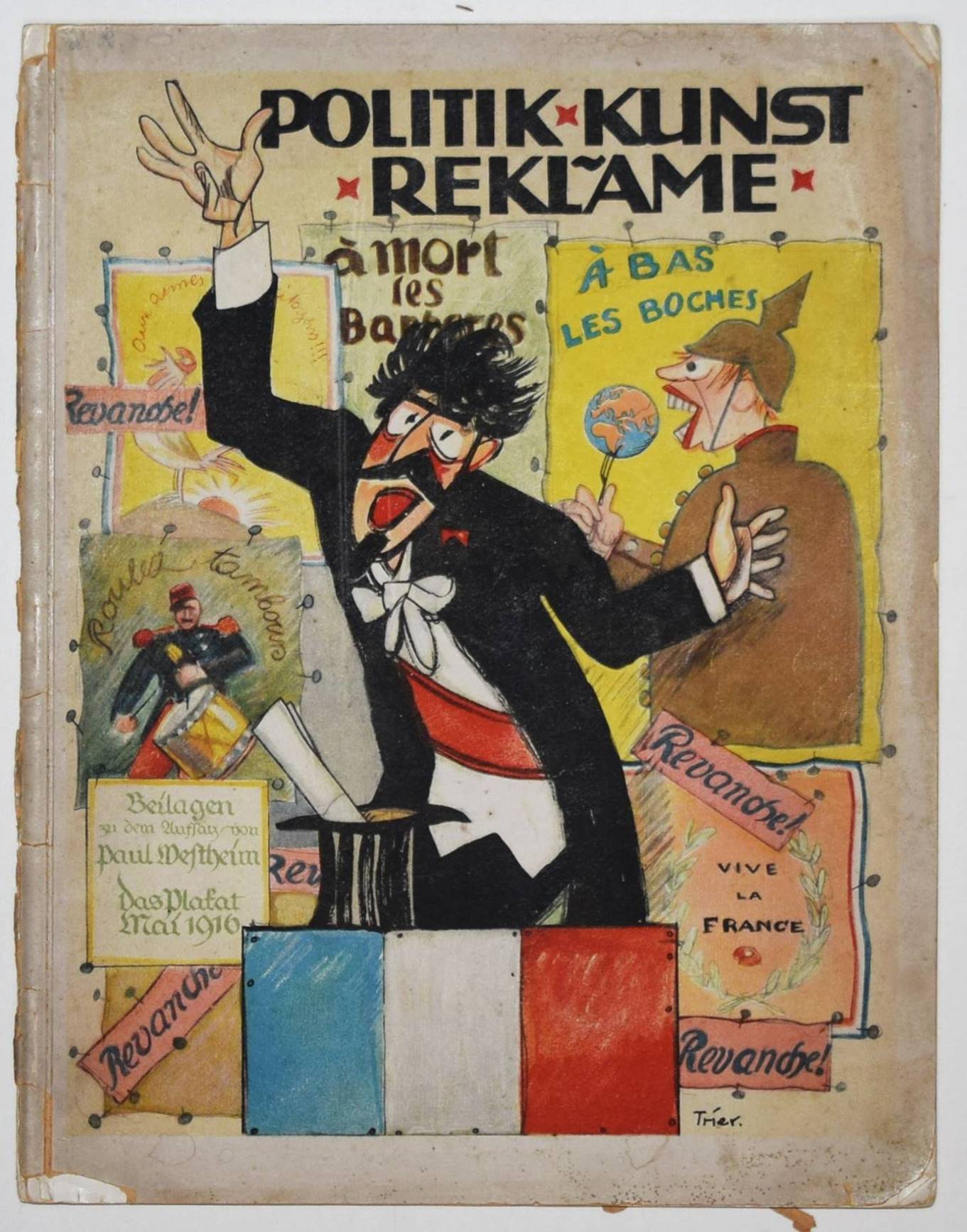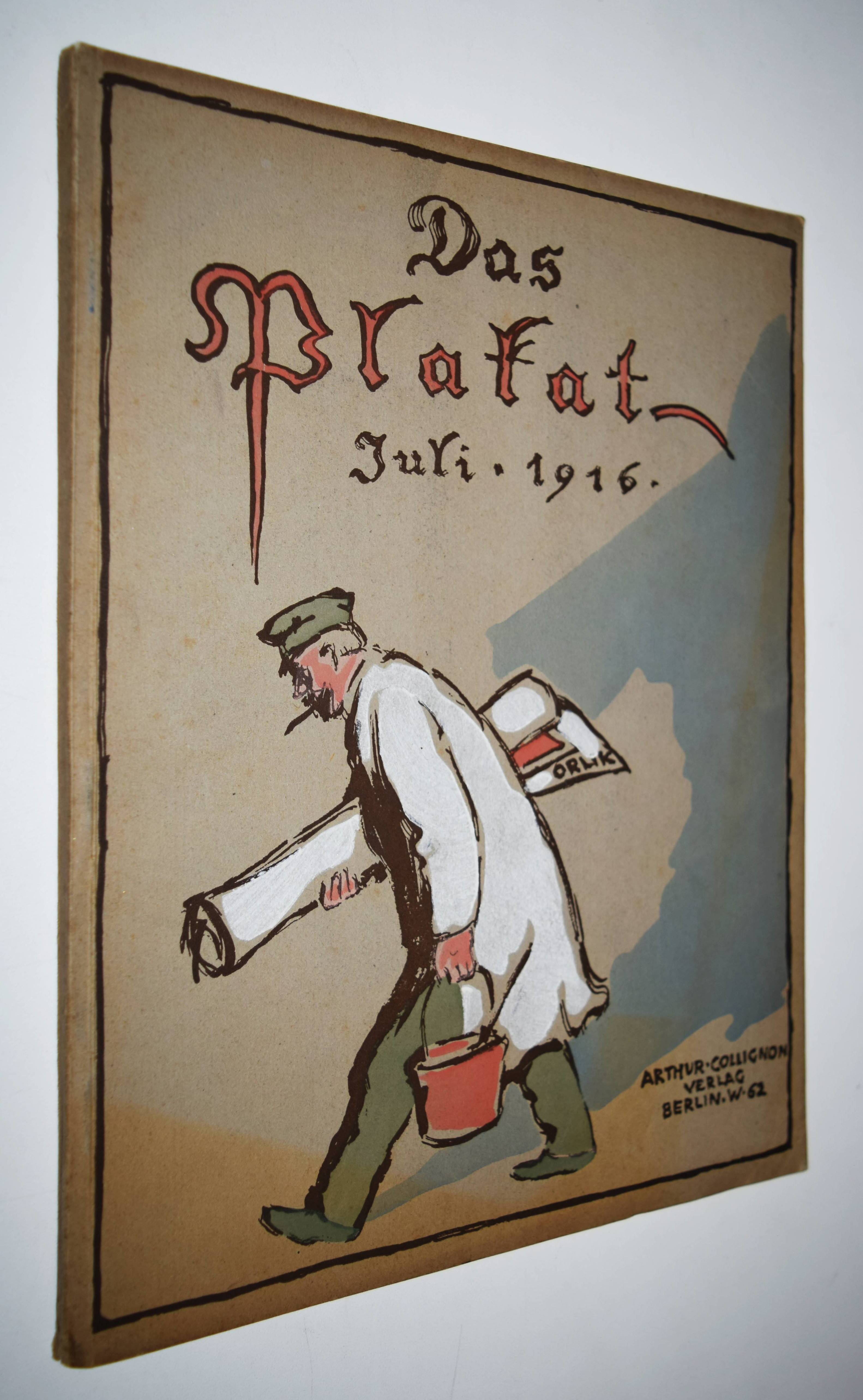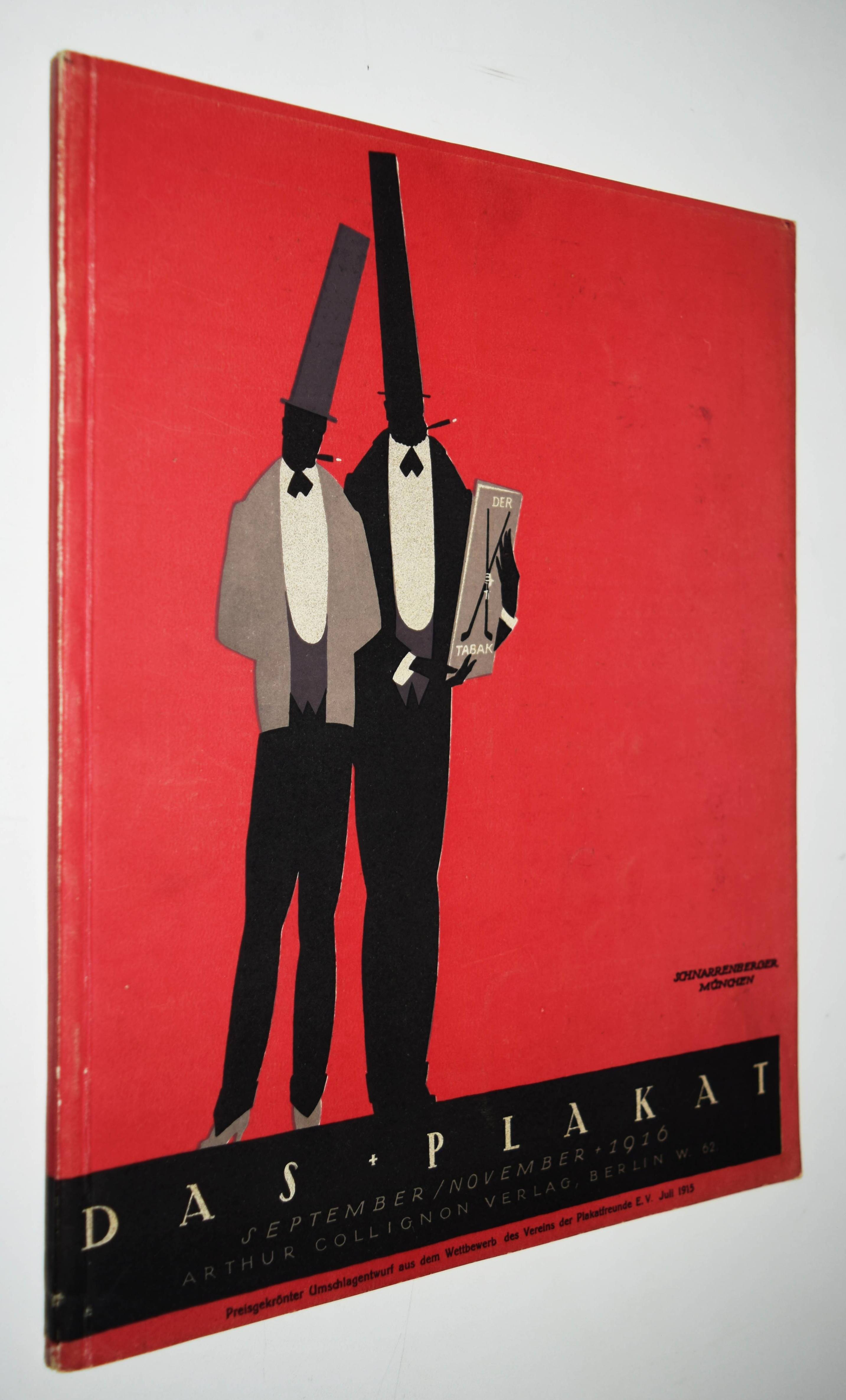 Sachs, Hans (Hrsg.). Das Plakat. Zeitschrift des Vereins der Plakatfreunde e. V. für Kunst in der Reklame. Jahrgang VII. Heft 1-5/6 (und) 2 Beilagen-Hefte. 7 Hefte. Berlin, Verein der Plakatfreunde 1916. 4°. Mit zahlr., teils ganzseitigen und meist farbigen Abbildungen sowie montierten Kunstbeilagen, Papier- und Buntpapierproben. Farbig illustr. OKart. in Orig.-Halbleinenumschlag (Entwurf: Lucian Bernhard). Vollständiger Jahrgang mit den Beilagenheften zum Maiheft (Beilagen zum Aufsatze von Paul Westheim, Politik – Kunst – Reklame) und September/Novemberheft (Werbemittel für Tabakwaren). – Mit ihrer exzellenten Ausstattung und den zahllosen farbigen und montierten Beispielen herausragender Werbegraphik die bis heute unerreichte Publikation zum Thema Plakatkunst. Eine der wohl aufwendigsten und hervorragendsten Zeitschriften des 20. Jahrhunderts. – „Die ersten Nummern erschienen im März und April 1906, als rein internes Mitteilungsblatt und nach einer handschriftlichen Vorlage vervielfältigt in nur 200 Exemplaren, bei einer Mitgliederzahl von nur 80. In dieser Form war das Blatt nicht im Handel erhältlich. Trotzdem zeigt sich schon daran die Zielrichtung: für den Verein zu Werben und neue Mitglieder zu gewinnen. In wie starkem Maße dies gelang, hätte sich keiner der Beteiligten träumen lassen. 1919 etwa hatte der Verein knapp 5000 Mitglieder und alleine im letzten Jahr seines Bestehens gewann er 2200 dazu, so daß die Mitgliederzahl auf deutlich über 7000 stieg … Es gab farbige und montierte Beilagen als Beispiele herausragender Werbegrafik, wie sie sich sonst in keiner Konkurrenzzeitschrift fanden. Verkleinerte Ausführungen von Plakaten, teils auf starken Karton gedruckt, wurden ebenso beigelegt wie Werbemarken, Postkarten u. ä. Alleine ein kurzes Durchblättern konnte den Leser oder Sammler vom Wert jedes einzelnen Heftes überzeugen. Wer einzelne Exemplare oder gar ganze Jahrgänge von Das Plakat besaß, der gab sie nicht wieder her“ (J. Müller-Daehn). – Von leichten Gebrauchsspuren abgesehen, sehr gut erhalten.