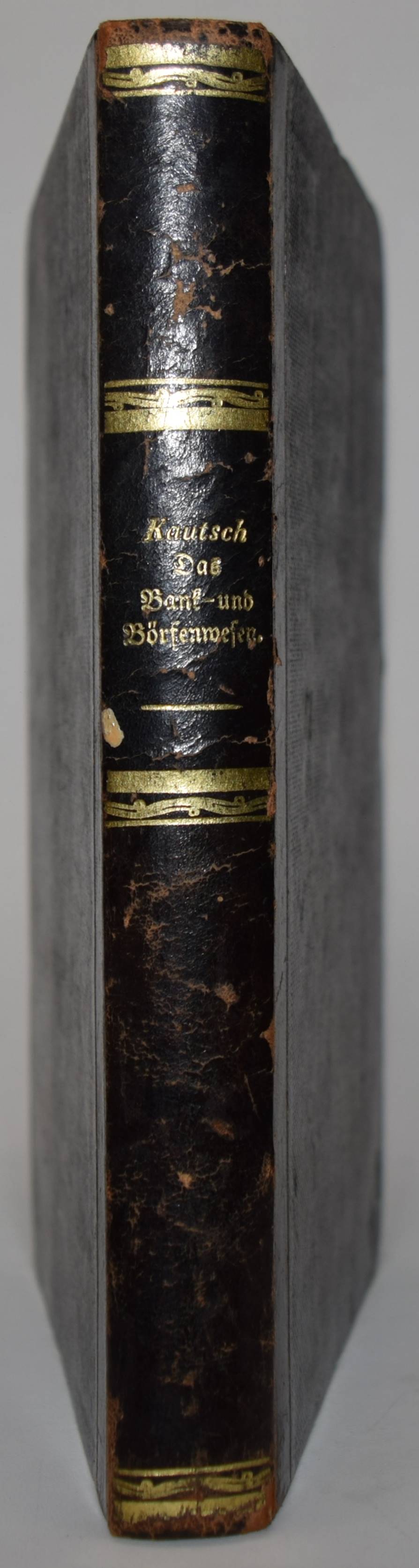 | Kautsch, Jacob. Das Bank- und Börsenwesen Mit besonderer Berücksichtigung deutscher und österreichischer Verhältnisse. Wien und Pest, A. Hartleben (1871). 8°. XII, 364 S. Hldr. der Zeit mit goldgepr. Rückentitel und dezenter Rückenvergoldung. Erste Ausgabe. – Erschien gleichzeitig auch als Band 12 der Reihe „Kaufmännische Unterrichtsstunden“ bei Maier in Stuttgart. – Über die deutschen und europäischen Banken, Großbanken, Bankgruppen, Creditanstalten und die Börsen. – Der Verfasser war „Vorstand der Wechsel-Abtheilung der Allgemeinen Depositenbank in Wien“. – Rücken etwas berieben, durchgehend teils stärker braunfleckig, sonst gut erhalten.