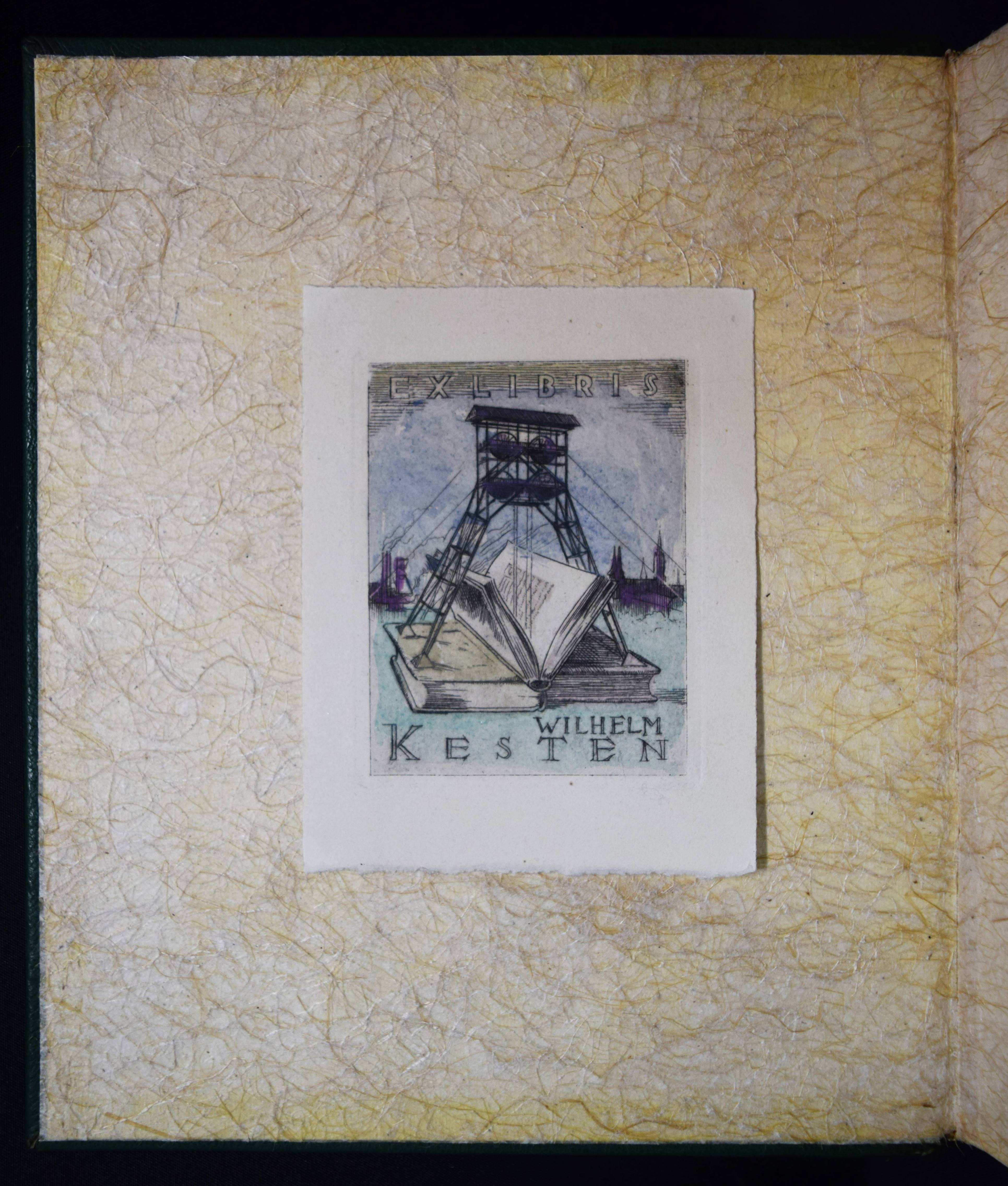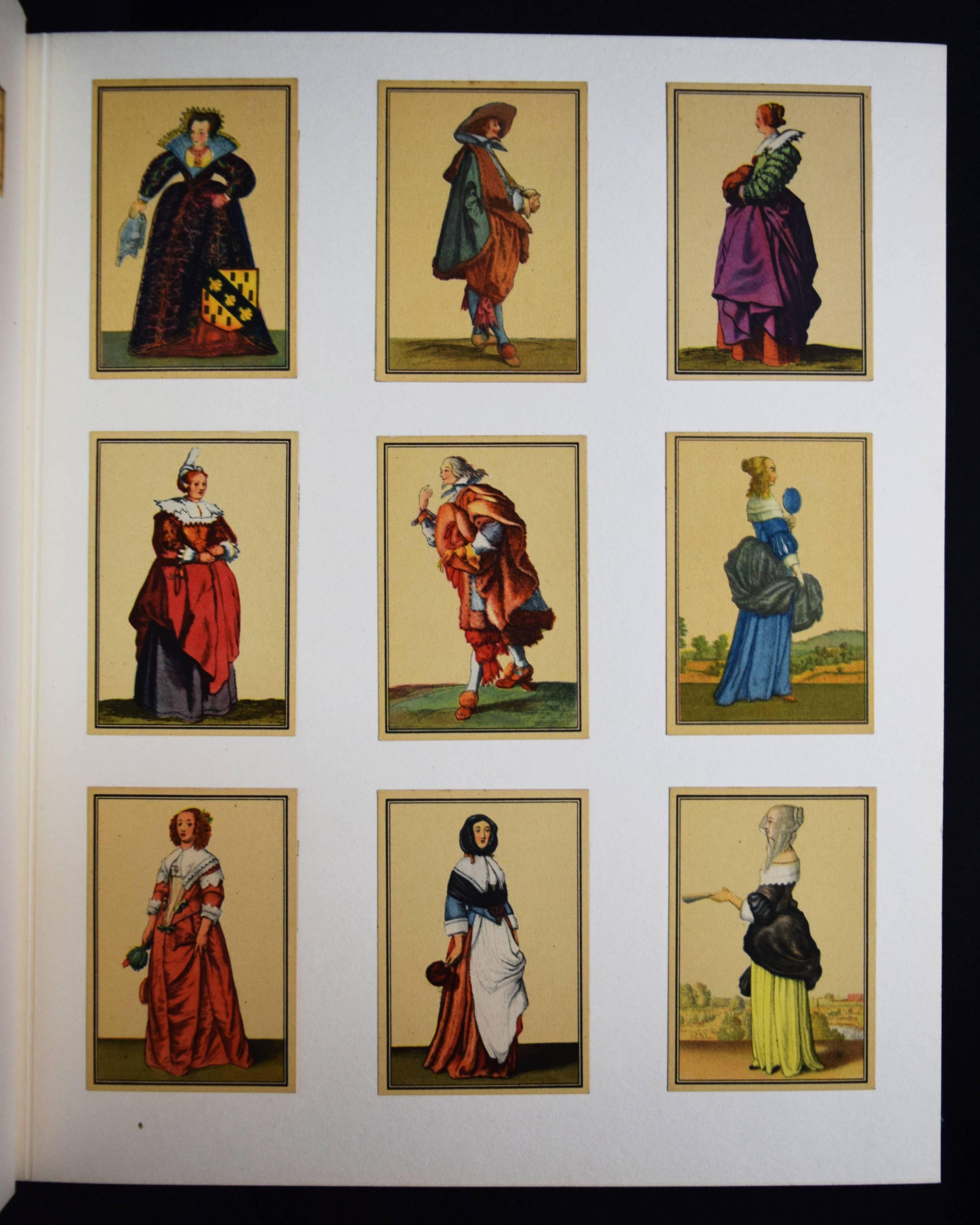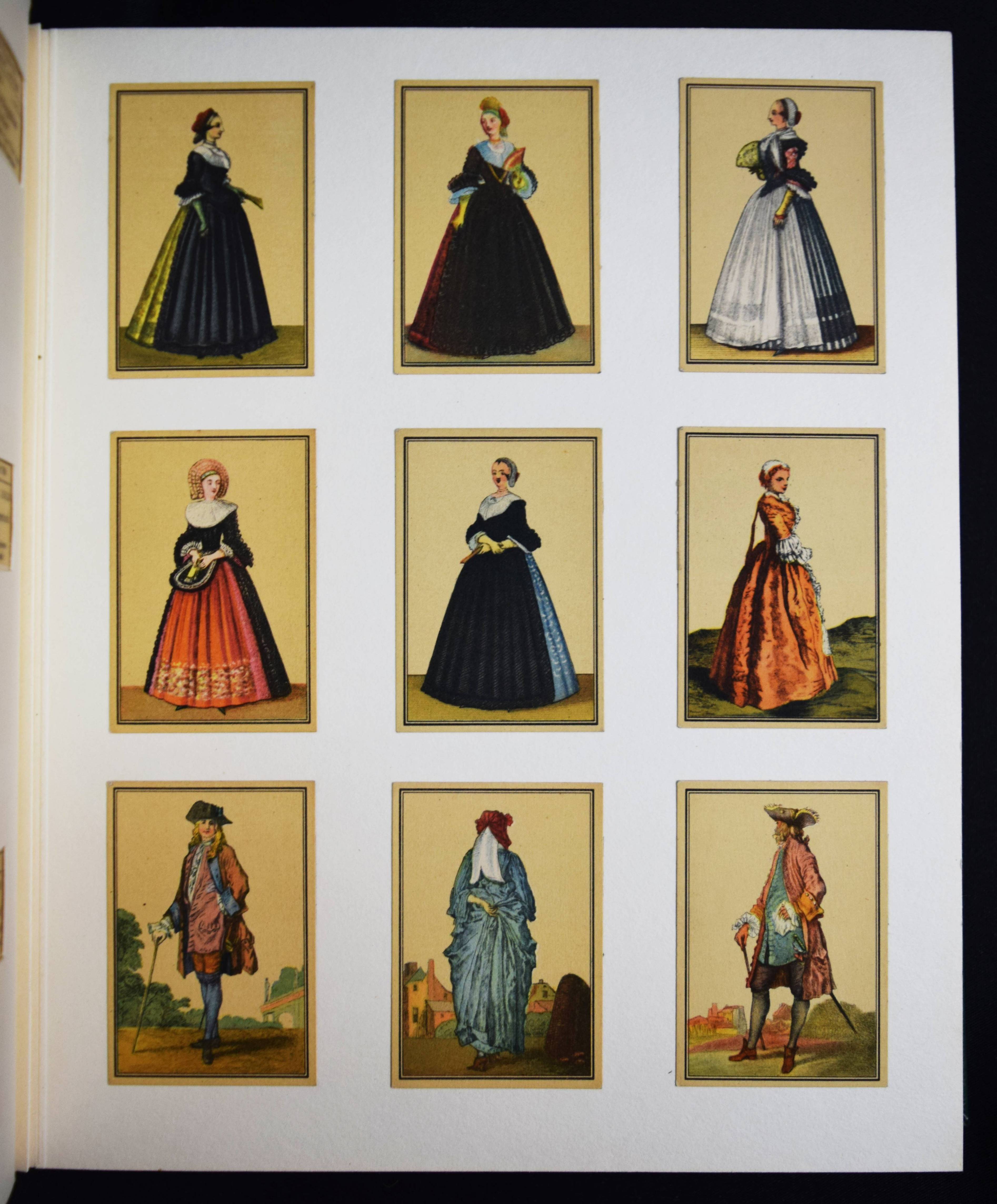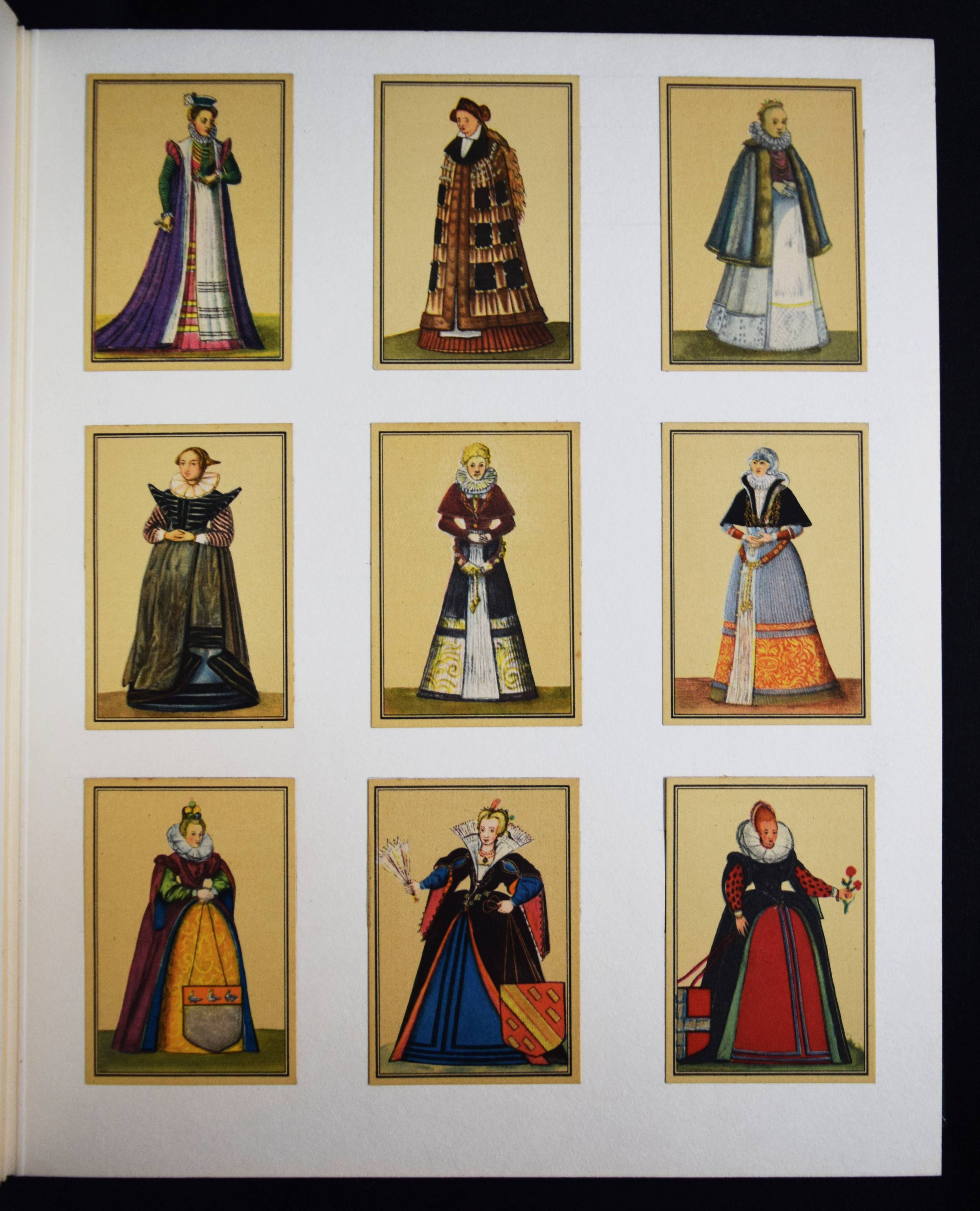 (Bruhn, Wolfgang, Hrsg.). (Moden Almanach). Mode aus vier Jahrhunderten. (Köln, Zigarettenfabrik Haus Neuerbuch 1933). 4° (25 x 21,5 cm.). [50] Bl. mit mont. goldgepr. Titelschild in grünem Leder und 288 farb. mont. Sammelbildern (jeweils 6,5 x 4,5 cm.) und 17 w. Bl. Grüner Maroquin-Lederband der Zeit mit goldgepr. Rückenschild, 7 Bünden und Linienvergoldung. Zusammenstellung der Sammelbilder aus dem Zigarettenbild-Sammelalbum in einem prachtvollen Handeinband. Aus der Bibliothek des Bergwerksdirektors Wilhelm Kesten (1875-1958) mit dessen gestoch. und handkol. Exlibris von Hermann Kätelhön (1884-1940).