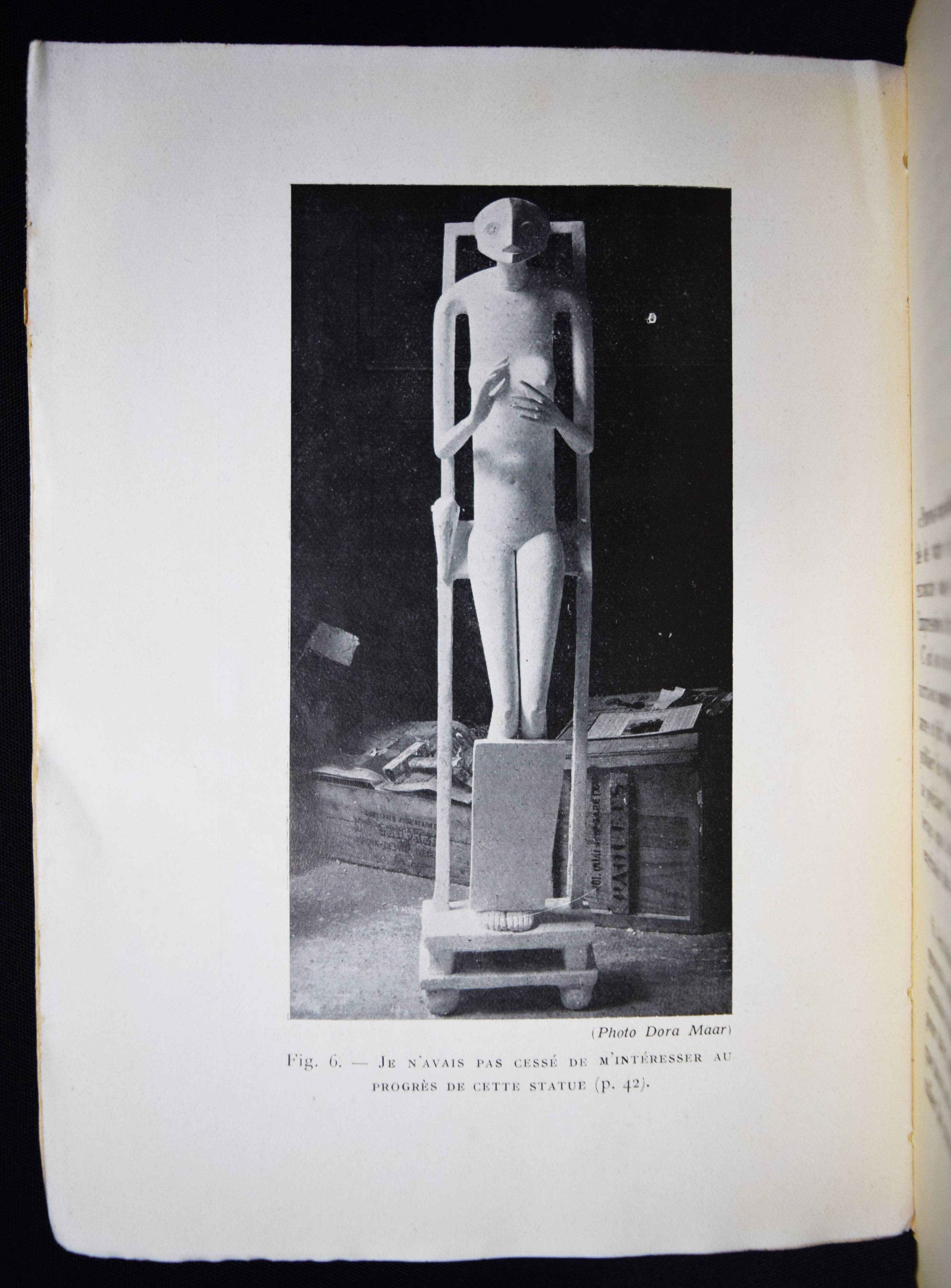 Breton, André. L’ amour fou. Paris, Gallimard (1937). 8°. 176 S., [1] Bl. mit 20 Tafeln. Orig.-Broschurumschlag. (Collection Métaphorses). Bouqueret 197. – Erste Ausgabe, erster Druck des Prosawerks mit Photographien von Brassai, Man Ray, Cartier-Bresson, Dora Maar und Rogi-André sowie mit Abbildungen von Kunstwerken (Max Ernst, Alberto Giacometti, Pablo Picasso und Paul Cézanne). – „Après avoir confié en 1924 à son assistant Jacques-André Boiffard le soin d’illustrer Nadja, Man Ray se charge lui-même du choix des images pour L’Amour fou. Certaines, déjà parues dans Le Minotaure en juin 1935 pour illustrer des extraits du texte de Breton, seront de lui, d’autres de Brassaï, de Dora Maar, de Rogi André… „Photographier, c’est rendre lisible le réel écrit auquel des accords secrets nous lient, c’est rendre visible ce lien, écrit Breton dans le prologue. La photographie ne représente pas, elle présente, non pas le réel mais la réalité de notre rapport au réel tel que nous le lisons: cette „forêt d’indices“, lieu de la „beauté convulsive“.“ (C. Bouqueret). – Umschlag geringfügig angestaubt, Rücken mit Knickspur in der Mitte, gutes oben unbeschnittenes Exemplar mit dem meist fehlenden Erata-Blatt.
