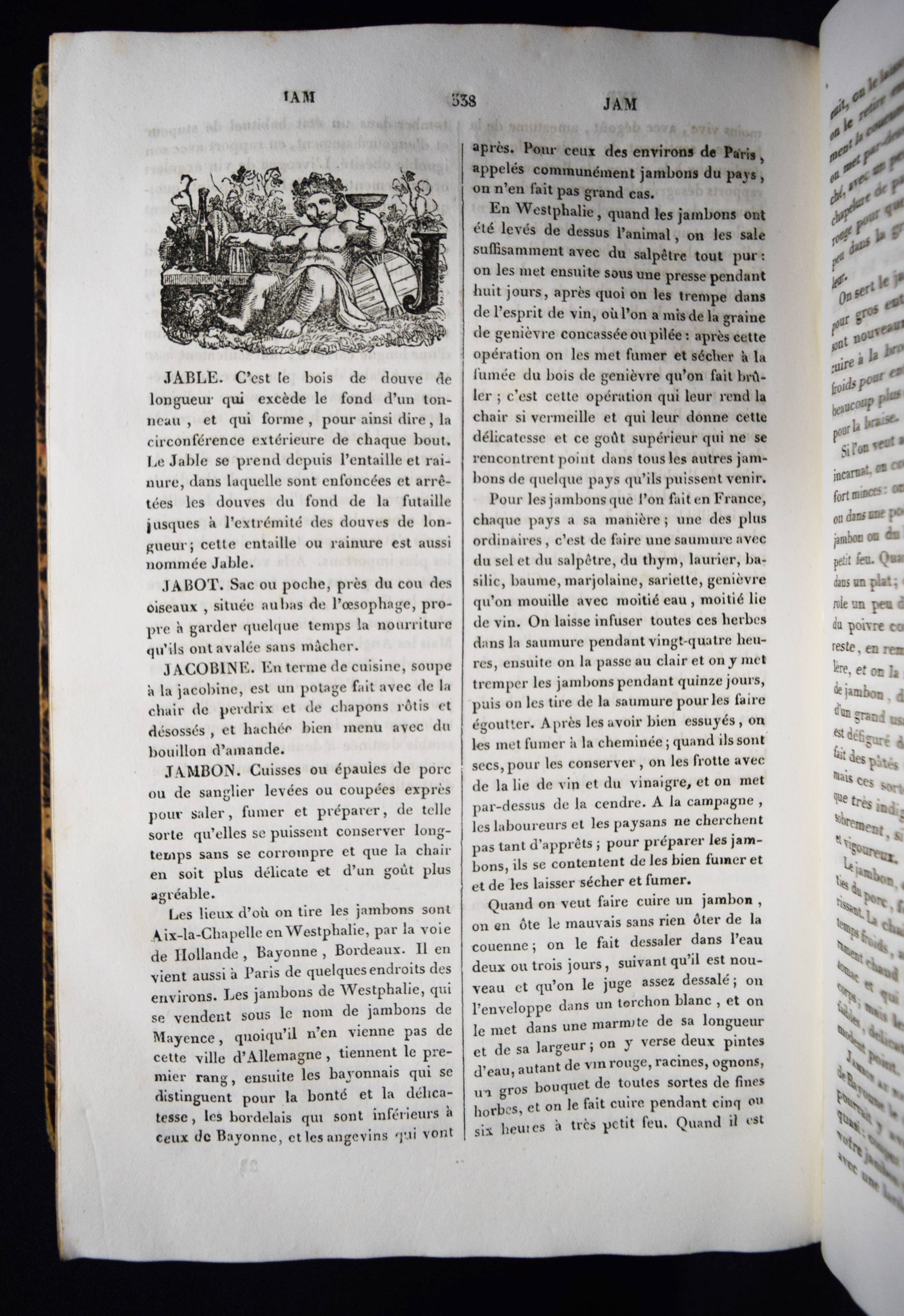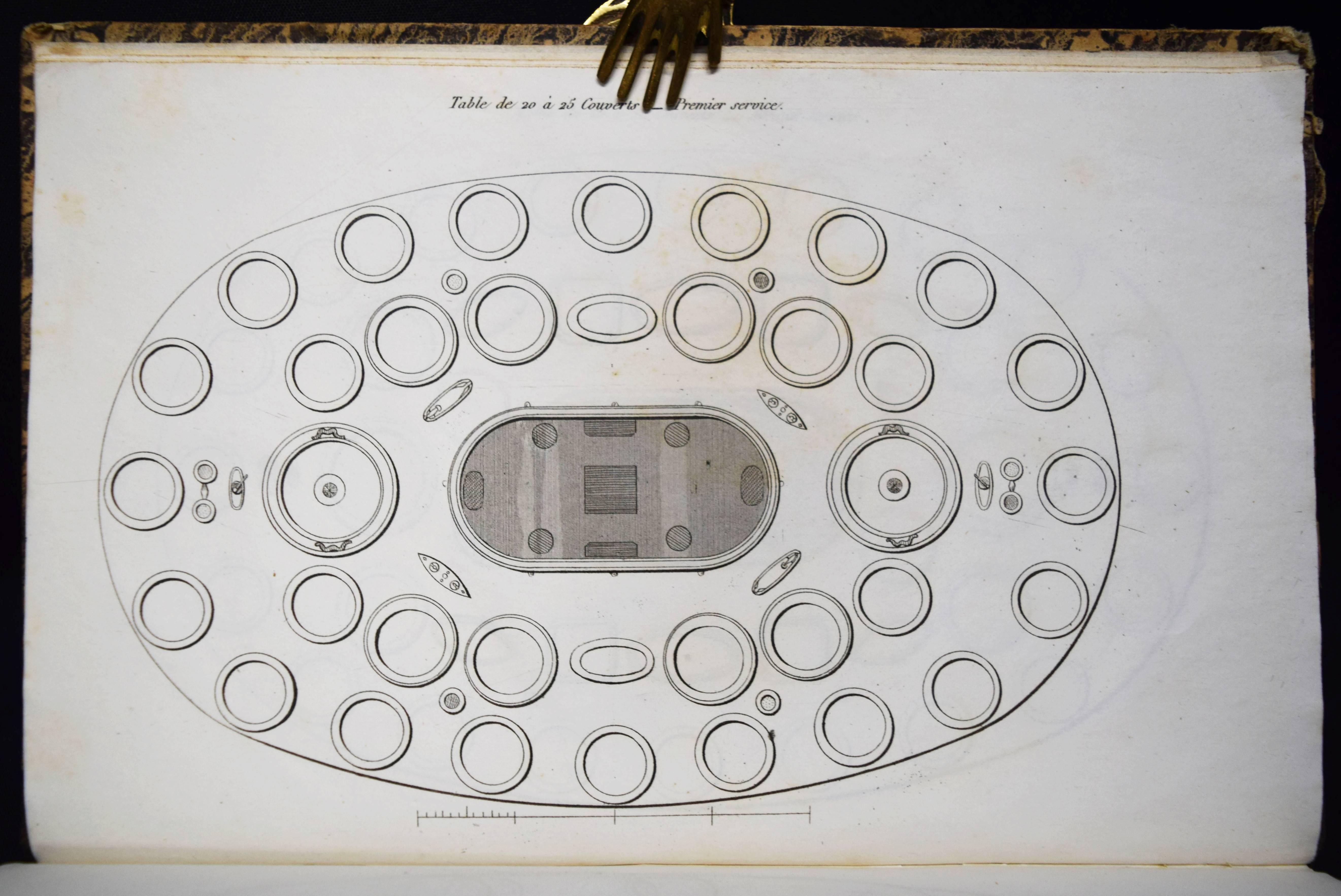 Burnet. Dictionnaire de cuisine et d’économie ménagère. À l’usage des maîtres et maîtresses de maison, fermiers, maîtres d’hôtel, chefs de cuisine, chefs d’office, restaurateurs, pâtisseurs, marchands de comestibles, confiseurs, distillateurs, etc. Paris, Librairie Usuelle 1836. Gr.-8^°. III, 788 S. mit 10 lithogr. Tafeln (inkl. Frontispiz) und einigen Holzschnitten im Text. Halblederband der Zeit mit goldgepr. Rückentitel und Linienvergoldung. Georg 456. Vicaire 133.– Einzige Ausgabe des schön ausgestatteten Fach-Wörterbuchs. – Deckel etwas berieben, Ecken stärker bestoßen, stellenweise etwas braunfleckig und gebräunt, gutes Exemplar.