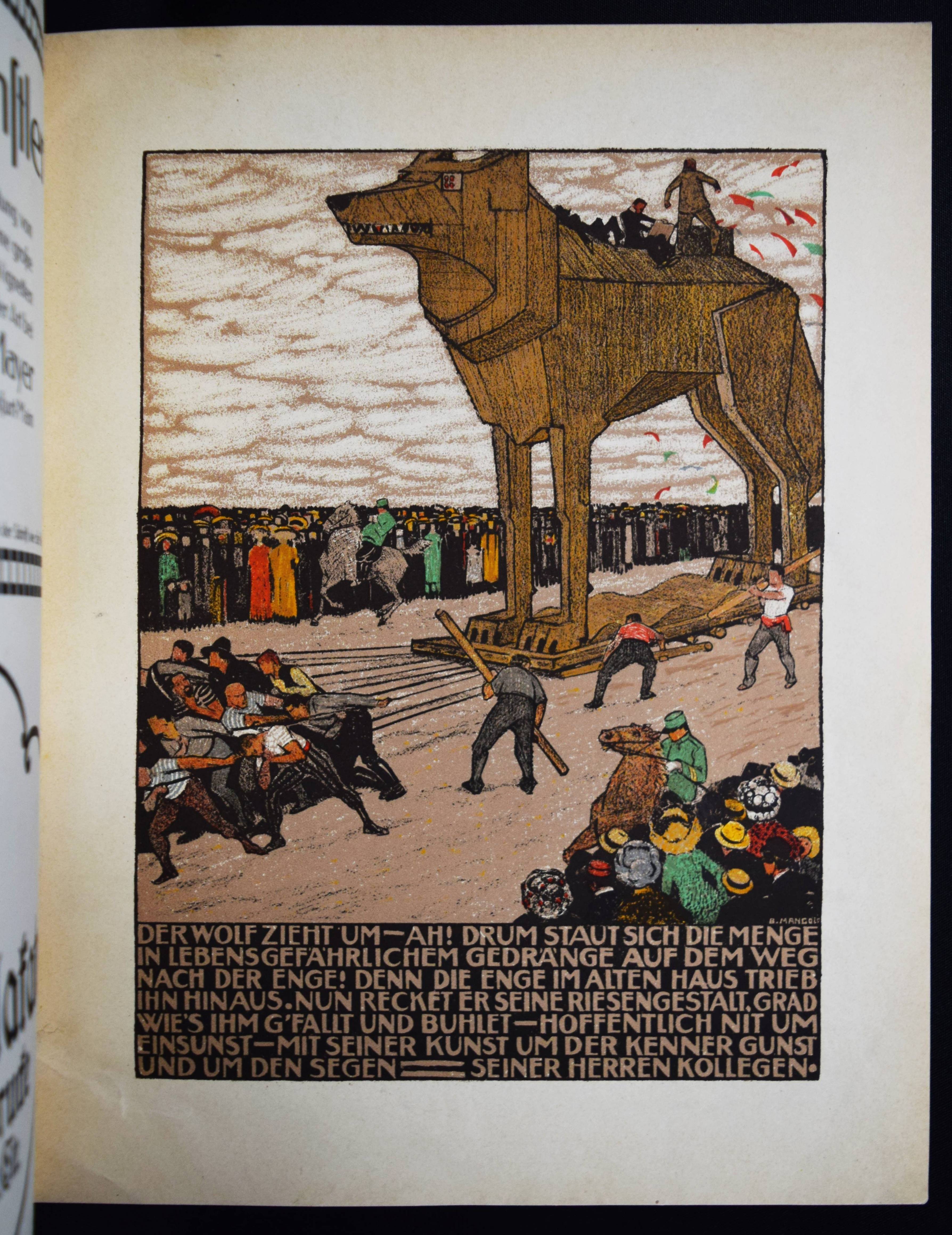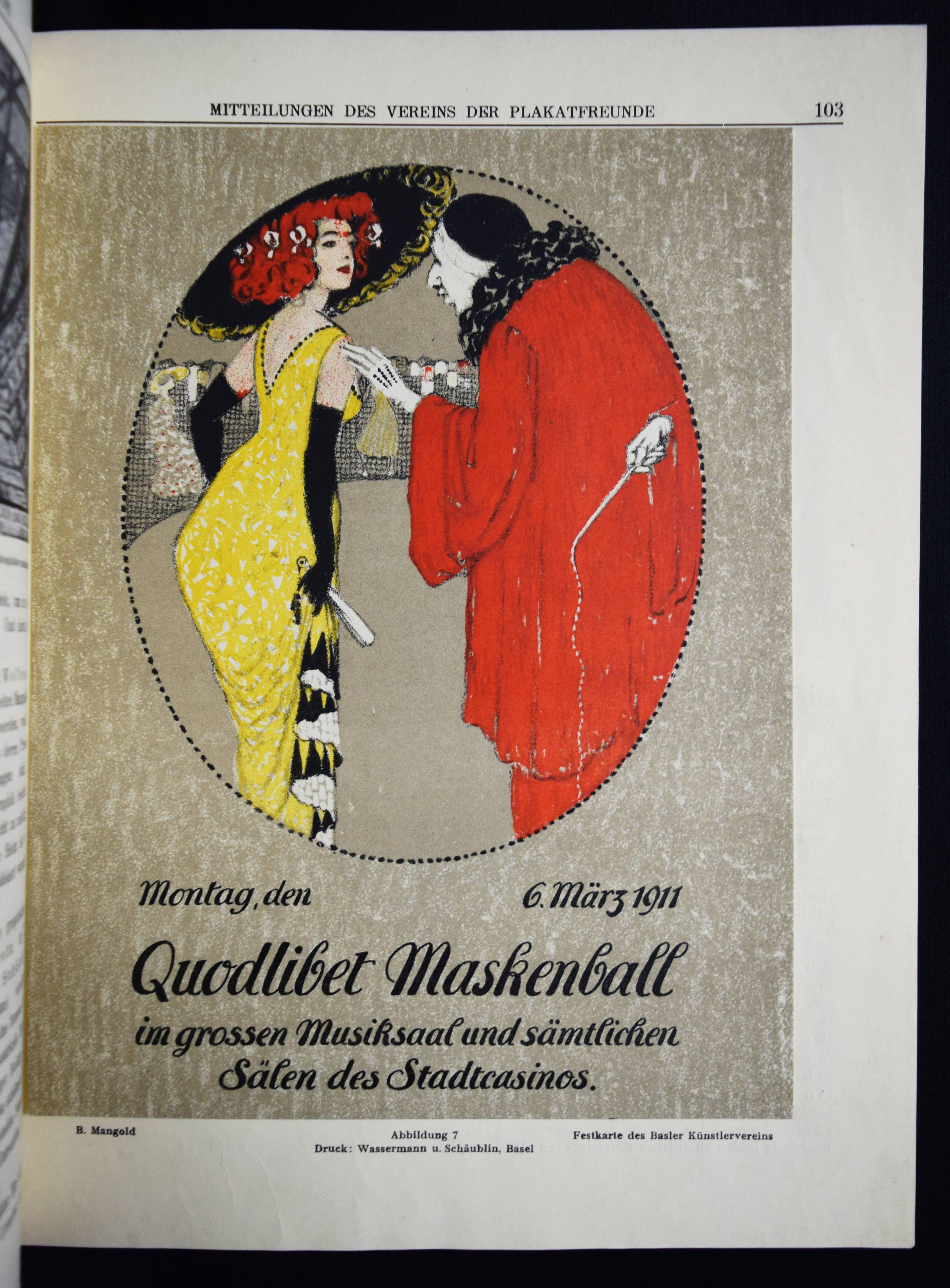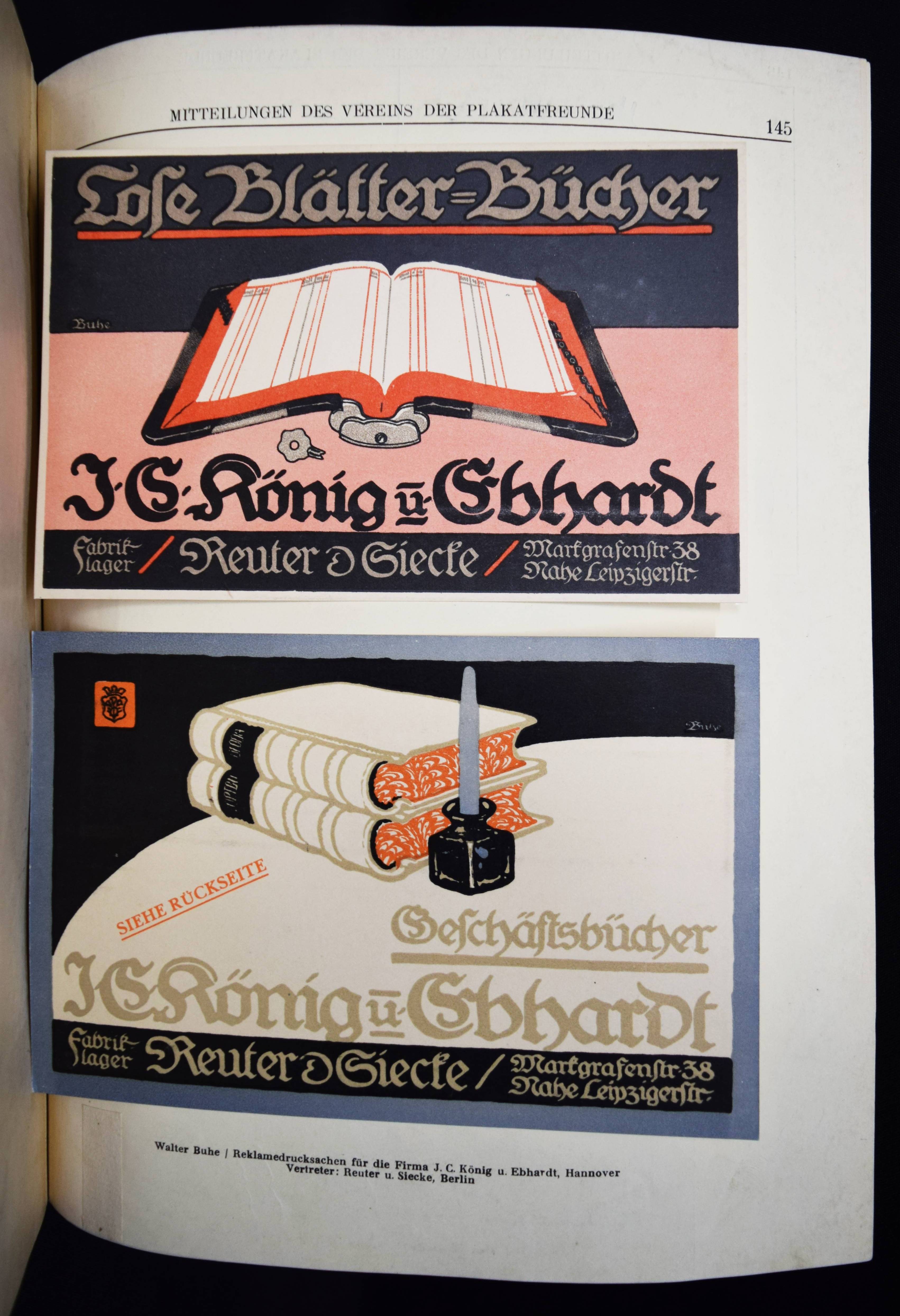 Sachs, Hans (Hrsg.). Das Plakat. Mitteilung des Vereins der Plakatfreunde e. V. für Kunst in der Reklame. Jahrgang II, Oktober 1911. Berlin, Verein der Plakatfreunde 1911. 4°. 150 S. mit zahlr., teils ganzseitigen und meist farbigen Abbildungen sowie montierten Kunstbeilagen, Papier- und Buntpapierproben. Farbig illustr. Orig.-Kartonumschlag. Mit ihrer exzellenten Ausstattung und den zahllosen farbigen und montierten Beispielen herausragender Werbegraphik die bis heute unerreichte Publikation zum Thema Plakatkunst. Eine der wohl aufwendigsten und hervorragendsten Zeitschriften des 20. Jahrhunderts. – „Die ersten Nummern erschienen im März und April 1906, als rein internes Mitteilungsblatt und nach einer handschriftlichen Vorlage vervielfältigt in nur 200 Exemplaren, bei einer Mitgliederzahl von nur 80. In dieser Form war das Blatt nicht im Handel erhältlich. Trotzdem zeigt sich schon daran die Zielrichtung: für den Verein zu Werben und neue Mitglieder zu gewinnen. In wie starkem Maße dies gelang, hätte sich keiner der Beteiligten träumen lassen. 1919 etwa hatte der Verein knapp 5000 Mitglieder und alleine im letzten Jahr seines Bestehens gewann er 2200 dazu, so daß die Mitgliederzahl auf deutlich über 7000 stieg … Es gab farbige und montierte Beilagen als Beispiele herausragender Werbegrafik, wie sie sich sonst in keiner Konkurrenzzeitschrift fanden. Verkleinerte Ausführungen von Plakaten, teils auf starken Karton gedruckt, wurden ebenso beigelegt wie Werbemarken, Postkarten u. ä. Alleine ein kurzes Durchblättern konnte den Leser oder Sammler vom Wert jedes einzelnen Heftes überzeugen. Wer einzelne Exemplare oder gar ganze Jahrgänge von Das Plakat besaß, der gab sie nicht wieder her“ (J. Müller-Daehn). – Rücken mit Papierstreifen überklebt, Umschlag etwas angestaubt und mit kl. restauriertem Randeinriss, gutes Exemplar.