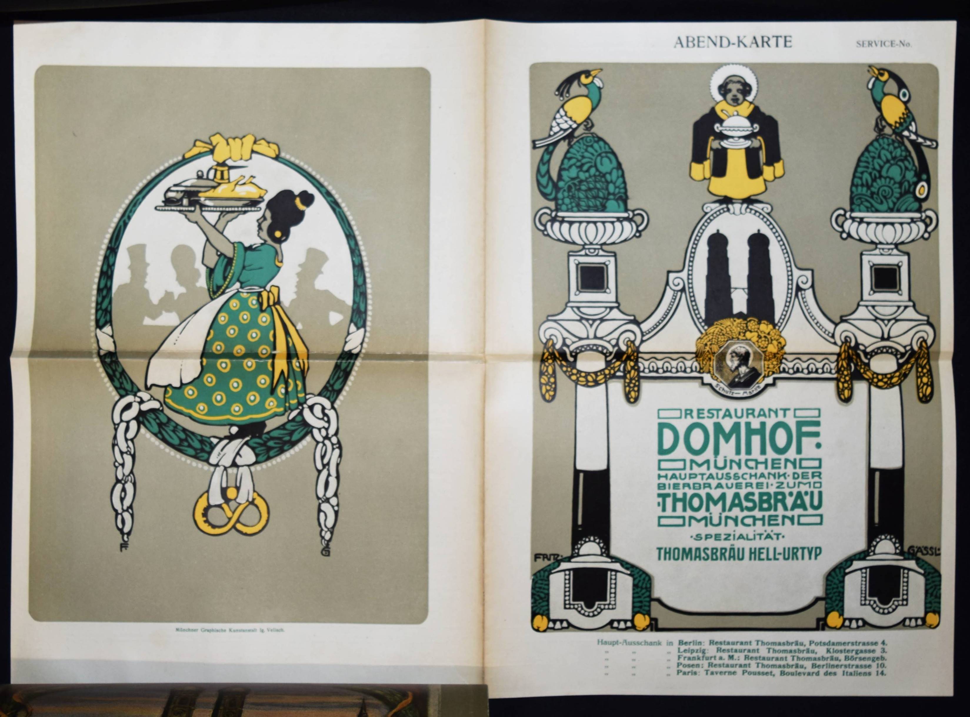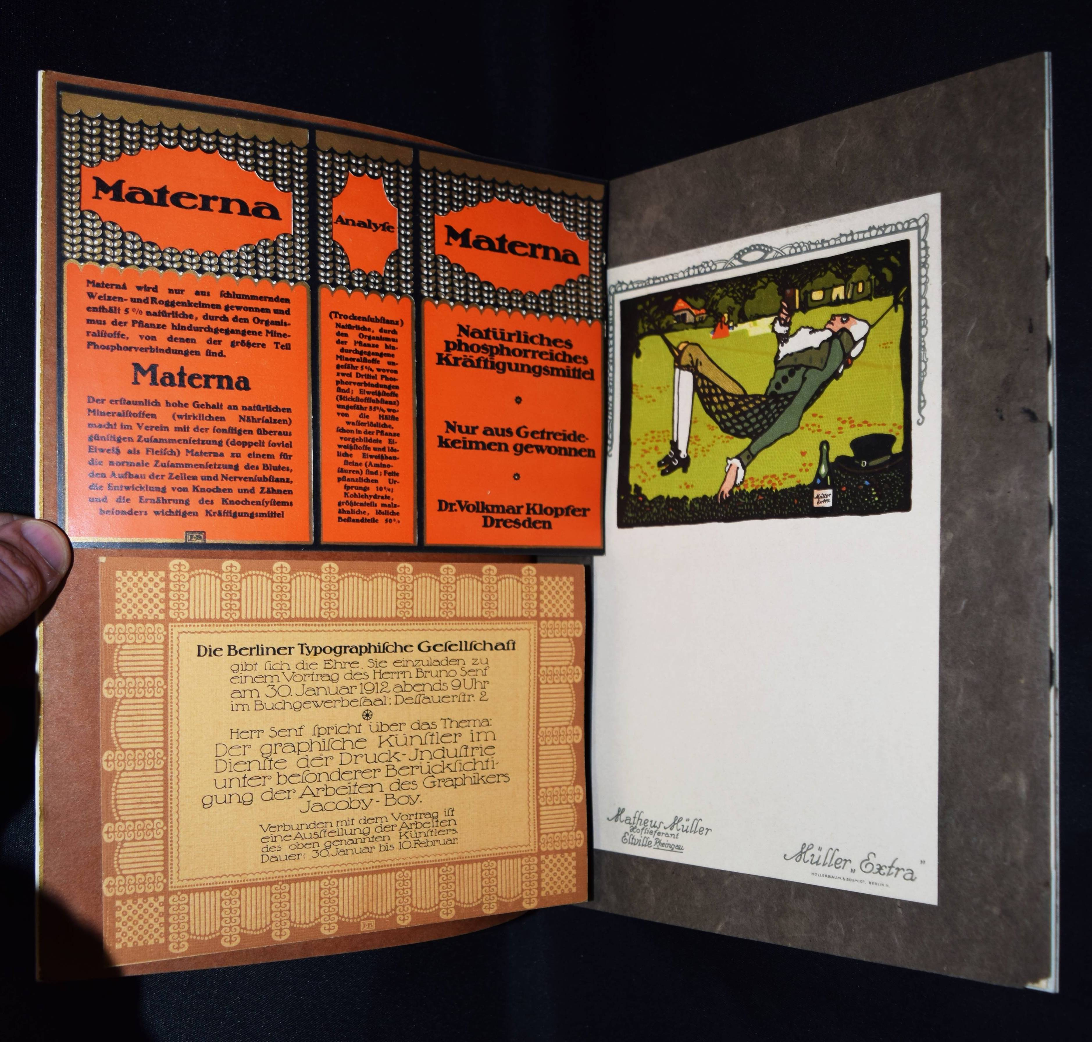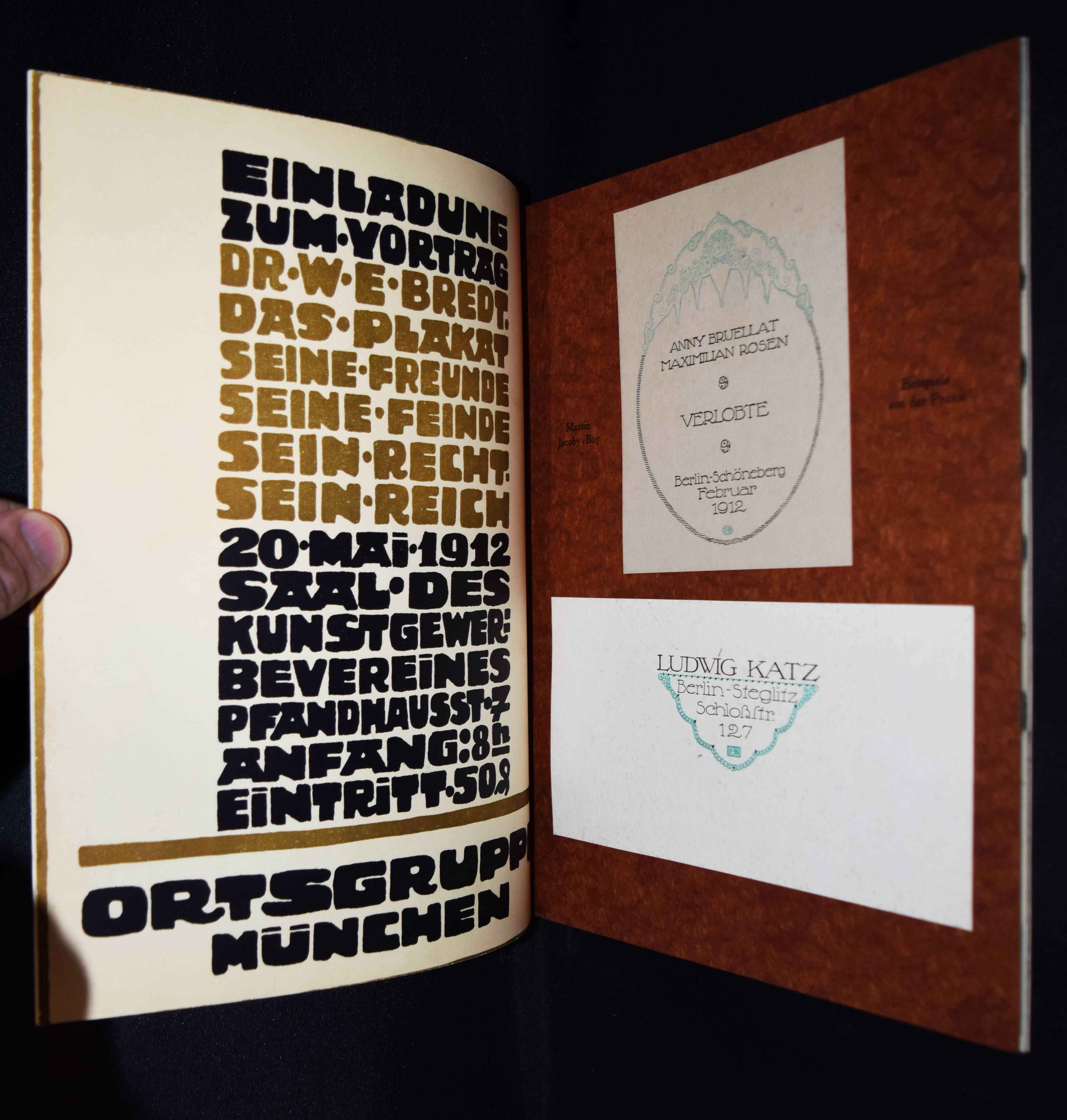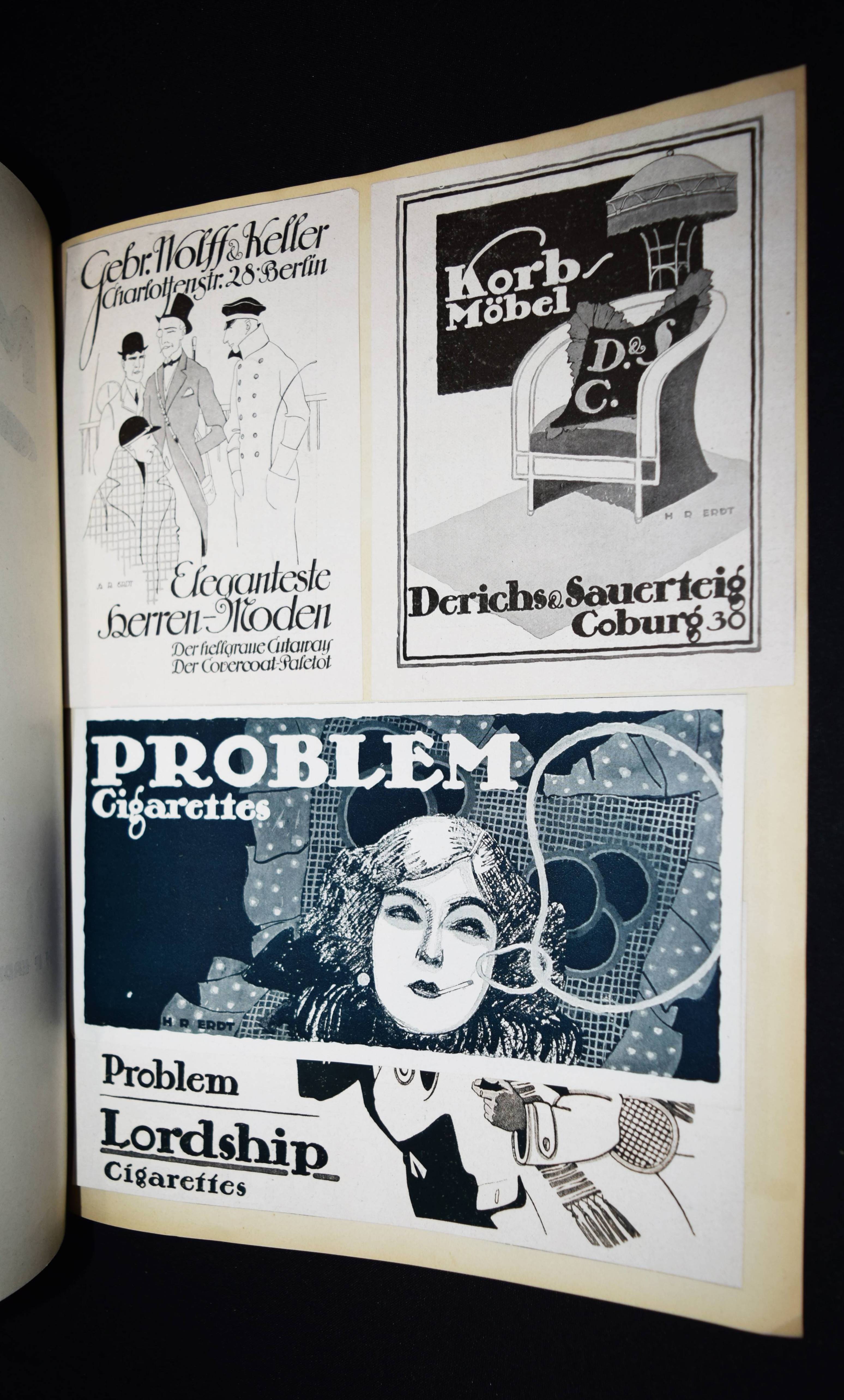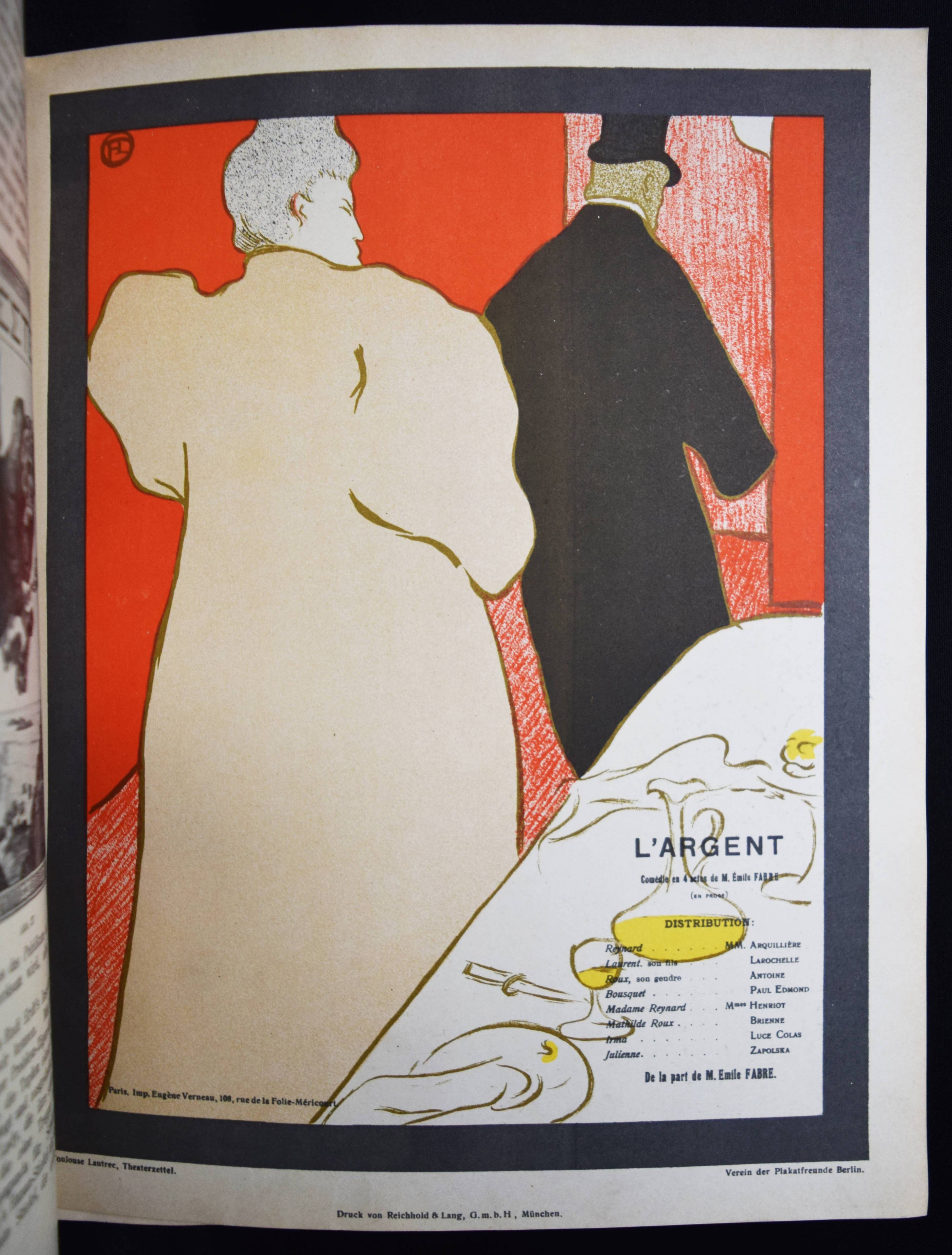 Sachs, Hans (Hrsg.). Das Plakat. Mitteilung des Vereins der Plakatfreunde e. V. für Kunst in der Reklame. Jahrgang III. Heft 1-4 (und) 2 Beilagen-Hefte. 6 Hefte. Berlin, Verein der Plakatfreunde 1912. 4°. Mit zahlr., teils ganzseitigen und meist farbigen Abbildungen sowie montierten Kunstbeilagen, Papier- und Buntpapierproben. Farbig illustr. Orig.-Kartonumschläge. Vollständiger Jahrgang mit den Beilagenheften „Beilagen zu dem Aufsatze: „Gasthaus Graphik“.“ und „H(ans) R(udi) Erdts Inserate“. – Mit ihrer exzellenten Ausstattung und den zahllosen farbigen und montierten Beispielen herausragender Werbegraphik die bis heute unerreichte Publikation zum Thema Plakatkunst. Eine der wohl aufwendigsten und hervorragendsten Zeitschriften des 20. Jahrhunderts. – „Die ersten Nummern erschienen im März und April 1906, als rein internes Mitteilungsblatt und nach einer handschriftlichen Vorlage vervielfältigt in nur 200 Exemplaren, bei einer Mitgliederzahl von nur 80. In dieser Form war das Blatt nicht im Handel erhältlich. Trotzdem zeigt sich schon daran die Zielrichtung: für den Verein zu Werben und neue Mitglieder zu gewinnen. In wie starkem Maße dies gelang, hätte sich keiner der Beteiligten träumen lassen. 1919 etwa hatte der Verein knapp 5000 Mitglieder und alleine im letzten Jahr seines Bestehens gewann er 2200 dazu, so daß die Mitgliederzahl auf deutlich über 7000 stieg … Es gab farbige und montierte Beilagen als Beispiele herausragender Werbegrafik, wie sie sich sonst in keiner Konkurrenzzeitschrift fanden. Verkleinerte Ausführungen von Plakaten, teils auf starken Karton gedruckt, wurden ebenso beigelegt wie Werbemarken, Postkarten u. ä. Alleine ein kurzes Durchblättern konnte den Leser oder Sammler vom Wert jedes einzelnen Heftes überzeugen. Wer einzelne Exemplare oder gar ganze Jahrgänge von Das Plakat besaß, der gab sie nicht wieder her“ (J. Müller-Daehn). – Rücken von Heft I fehlt, Rücken der Beilagenhefte mit Papierstreifen überklebt, Umschläge teils etwas angestaubt, 1 Bl. (S. 63/64) im April-Heft fehlt, sonst gut erhalten.