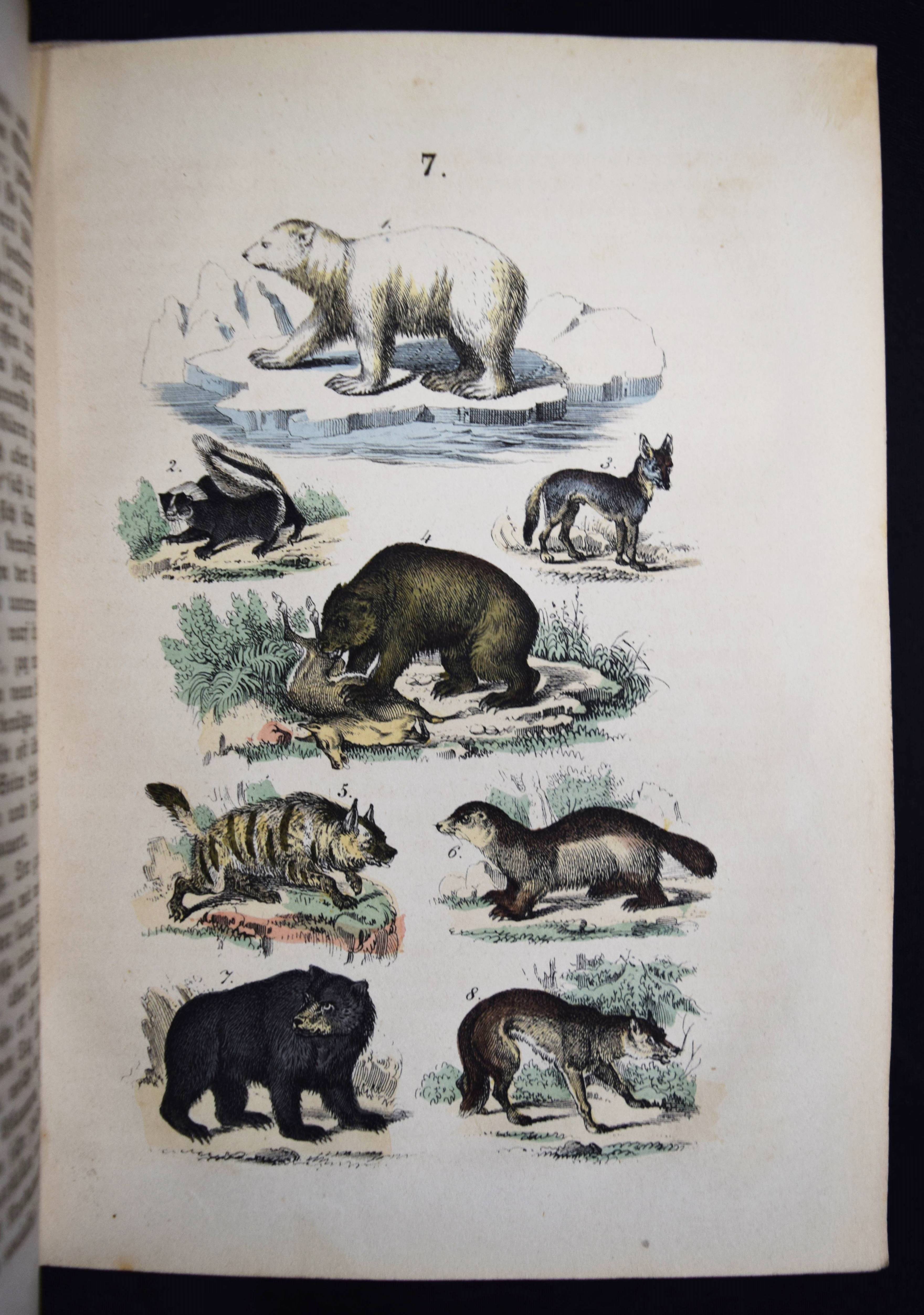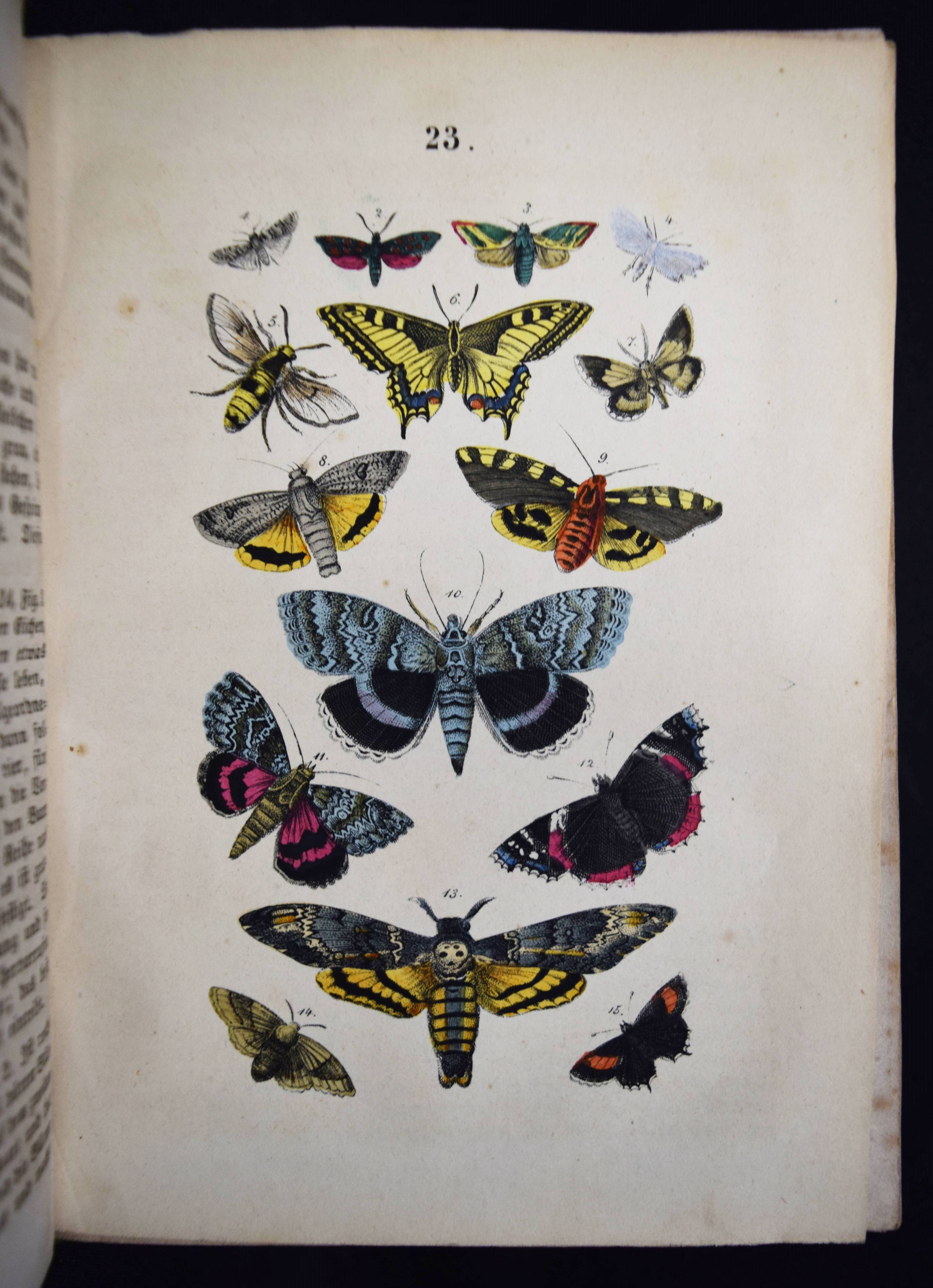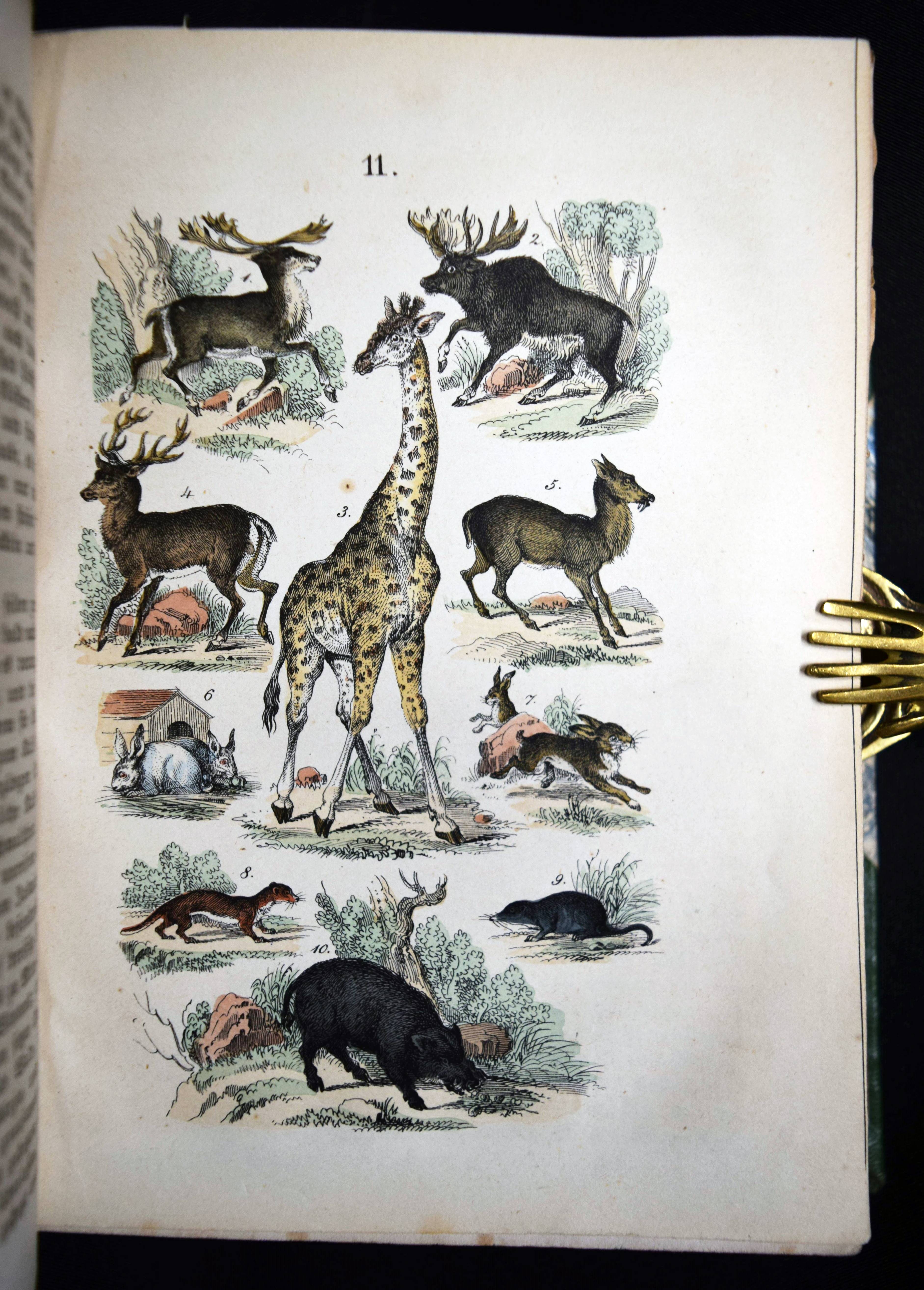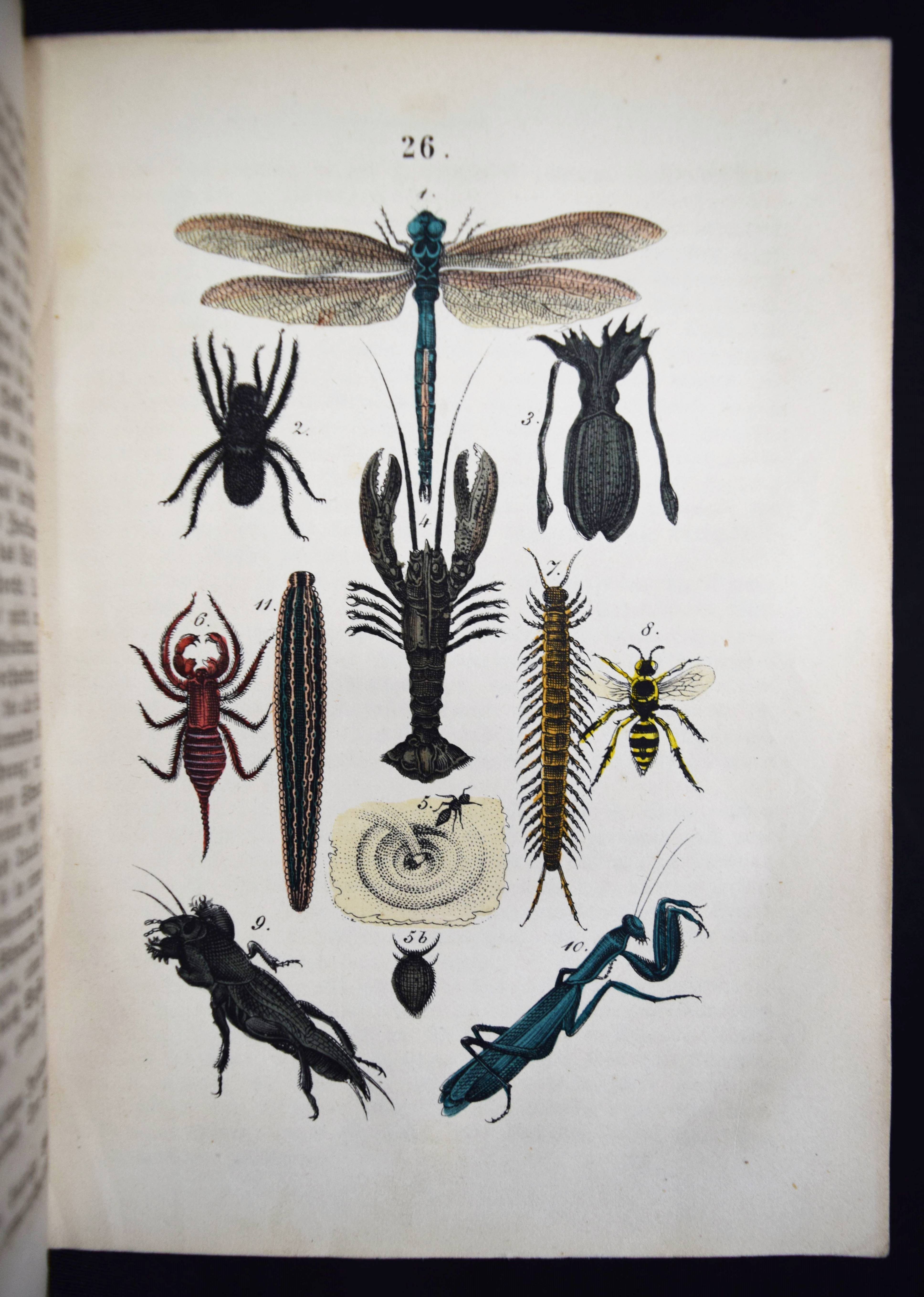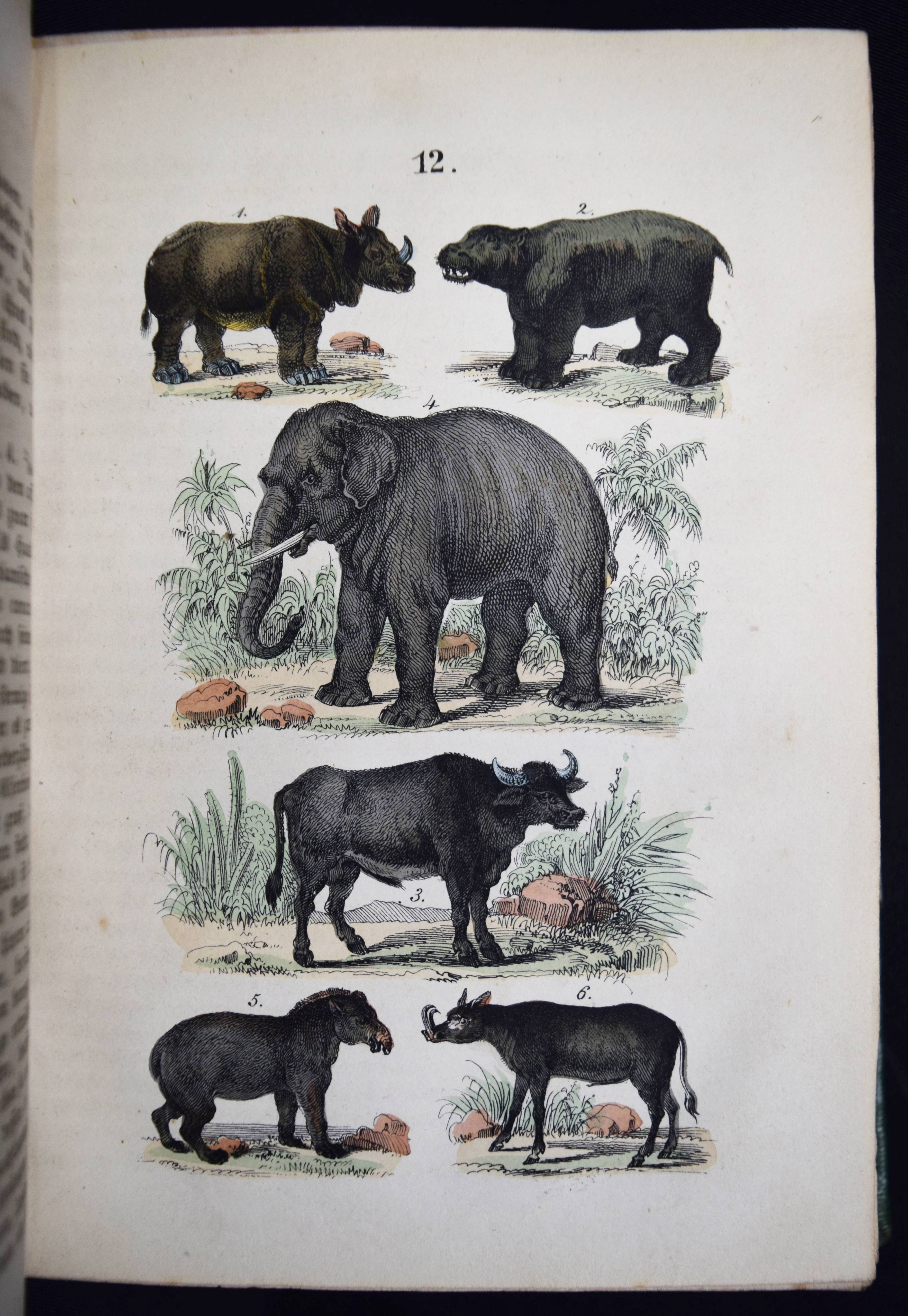 Martin, F(elix). Naturgeschichte für die Jugend beiderlei Geschlechts. 3., verm. und verb. Aufl. Stuttgart, Schmidt & Spring 1856. 8°. [2] Bl., 564 S. mit 262 meist handkol. Abbildungen auf 32 lithogr. Tafeln. Moderner Halblederband mit goldgepr. Rückentitel und Linienvergoldung. LKJ II, 541. Nissen, ZBI 2708. Seebaß II, 1245 (4. Auflage). Wegehaupt I, 1374 (erste Ausgabe von 1844). – Gegenüber der ersten Ausgabe um 8 Tafeln und ca. 100 S. erweitert. – Eine der erfolgreichsten Naturgeschichten für Kinder im 19. Jahrhundert. Die schönen sauber kolorierten Tafeln zeigen „Menschenracen“ (Frontispiz), Tiere und Pflanzen. – Einband und Vorsätze fachgerecht erneuert, Textteil teils stärker braunfleckig, die Tafeln sauber, gutes Exemplar.