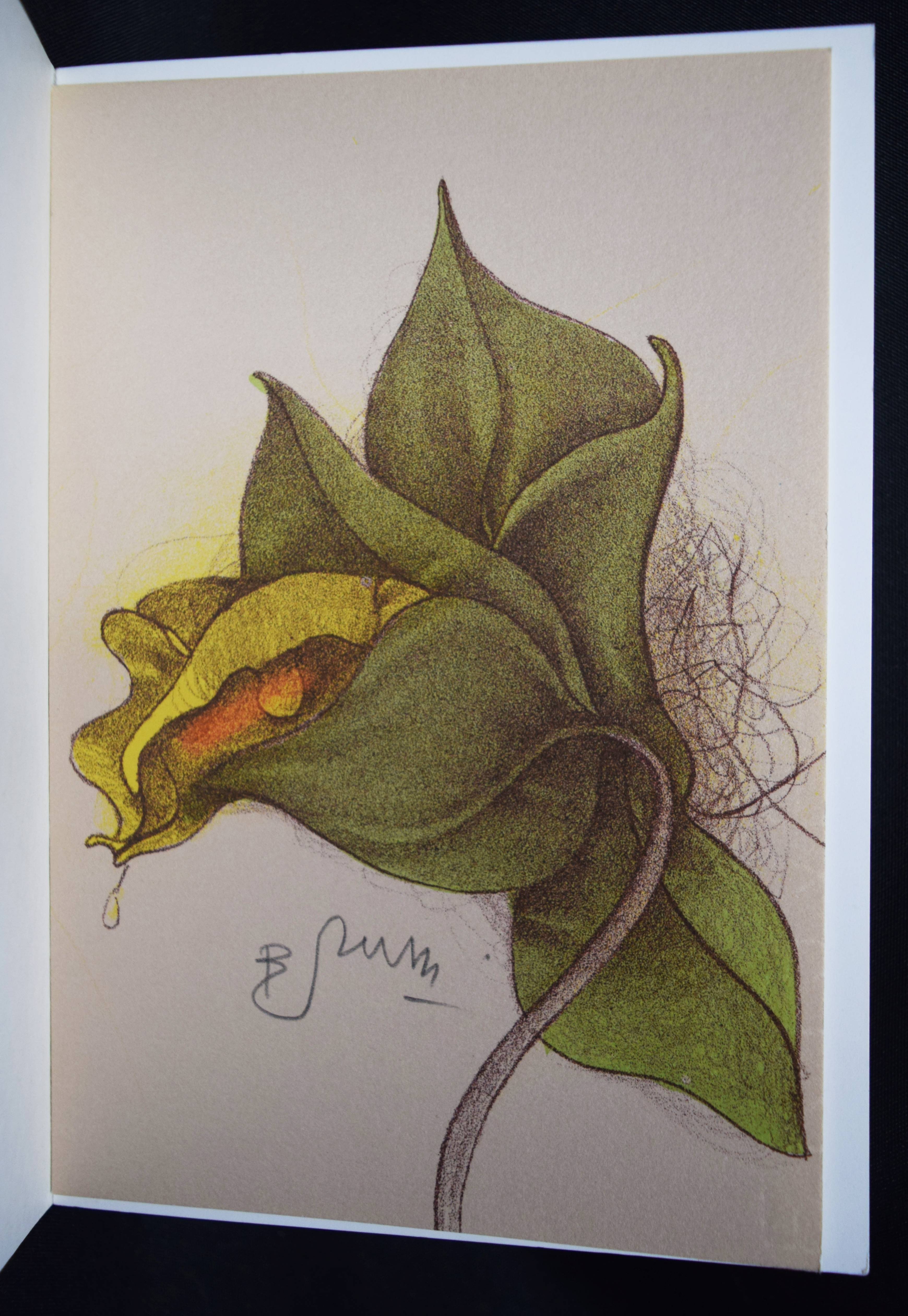 Bruni – Redeker, Hans. Bruno Bruni. Dortmund, Harenberg Kommunikation (1981). Kl.-8°. 247, (1) S. mit zahlr. Farbtafeln und 1 signierten Orig.-Farblithographie „Orchidea I“ (17 x 11,5 cm.). Orig.-Kartonumschlag mit farb. Deckelbild. (Die bibliophilen Taschenbücher, Band 271). Eines von 5000 Exemplaren mit der signierten Farblithographie. – Englische Ausgabe. – Gutes Exemplar.