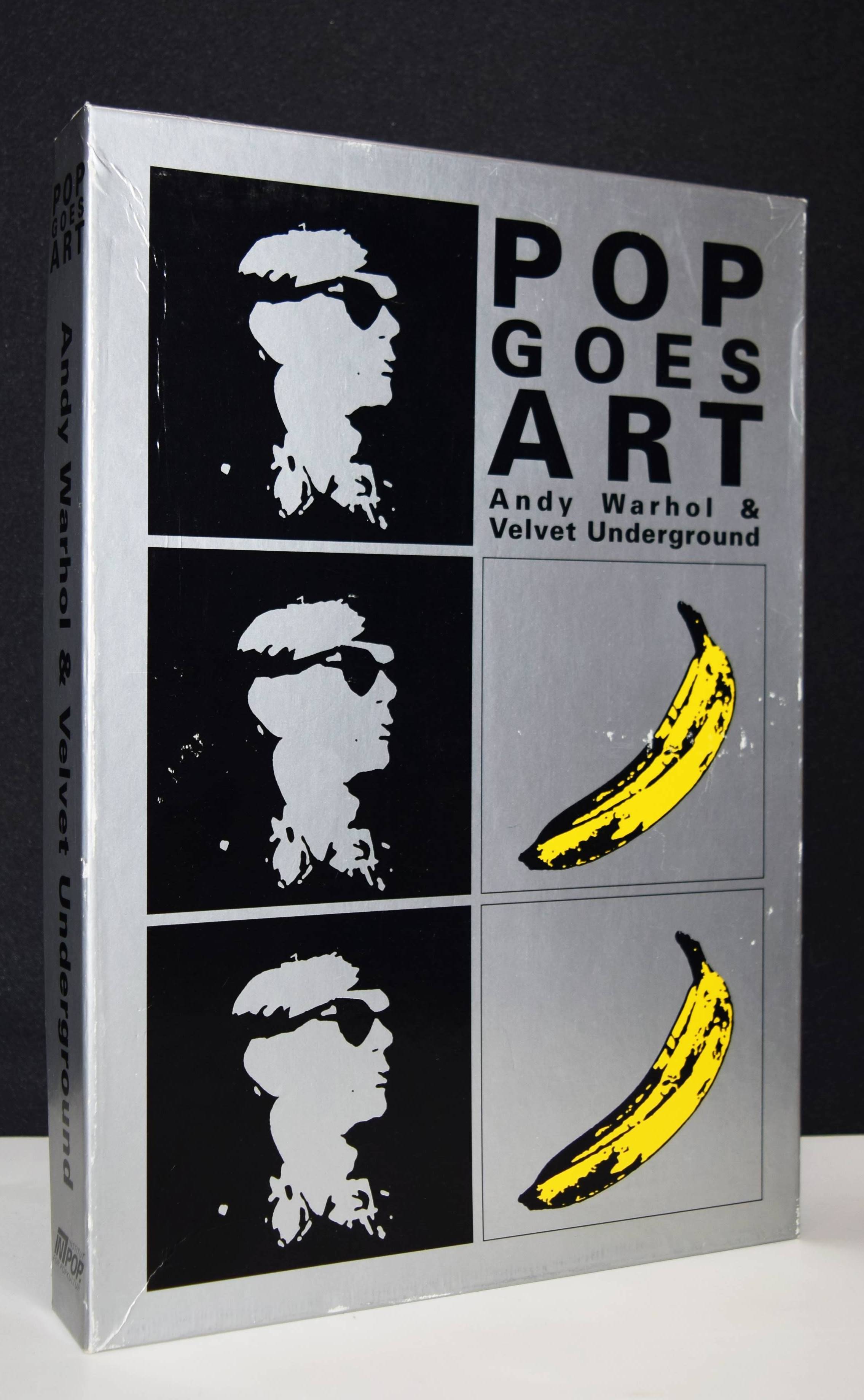 Warhol – Husslein, Uwe und Gerda Wendermann. Pop goes art. Andy Warhol & Velvet Underground. (Diese Publikation erscheint anläßlich der Ausstellung in der Hamburger Kunsthalle 30.11.1990 – 3.2. 1991). Wuppertal, INPOP Institut für Popkultur (1990). Gr.-4° (32 x 23,5 cm.). 48 S. mit zahlr. Abb., 22 Tafeln in illustr. Kartonumschlag, 1 gefalt. Plakat, 1 Mini-Compact-Disc, 1 Foto-Leporello und 1 Luft-Ballon. Farbig illustr. Orig.-Pappkassette. (Schriftenreihe des Instituts für Popkultur, Band 1). Sehr gutes Exemplar.