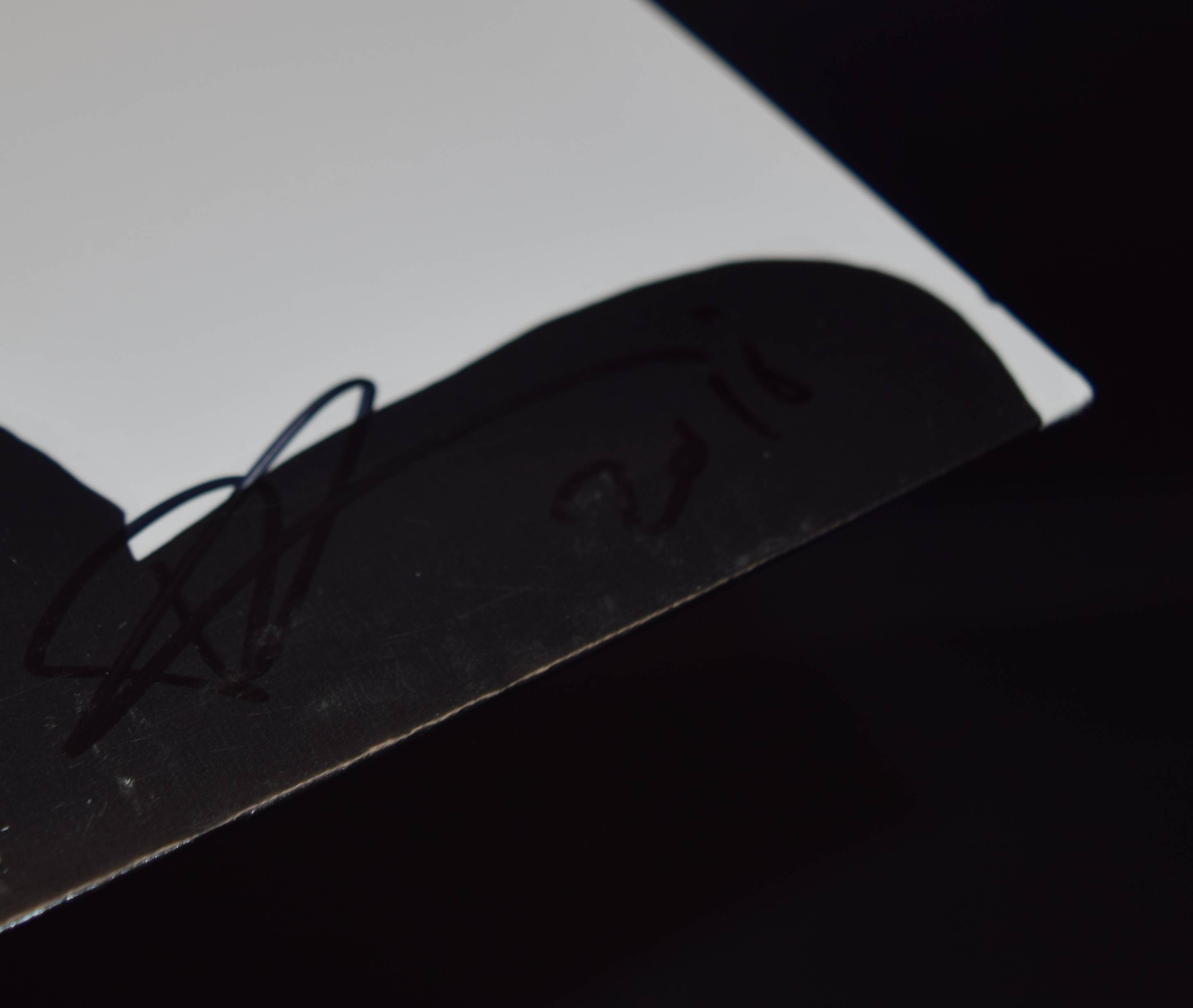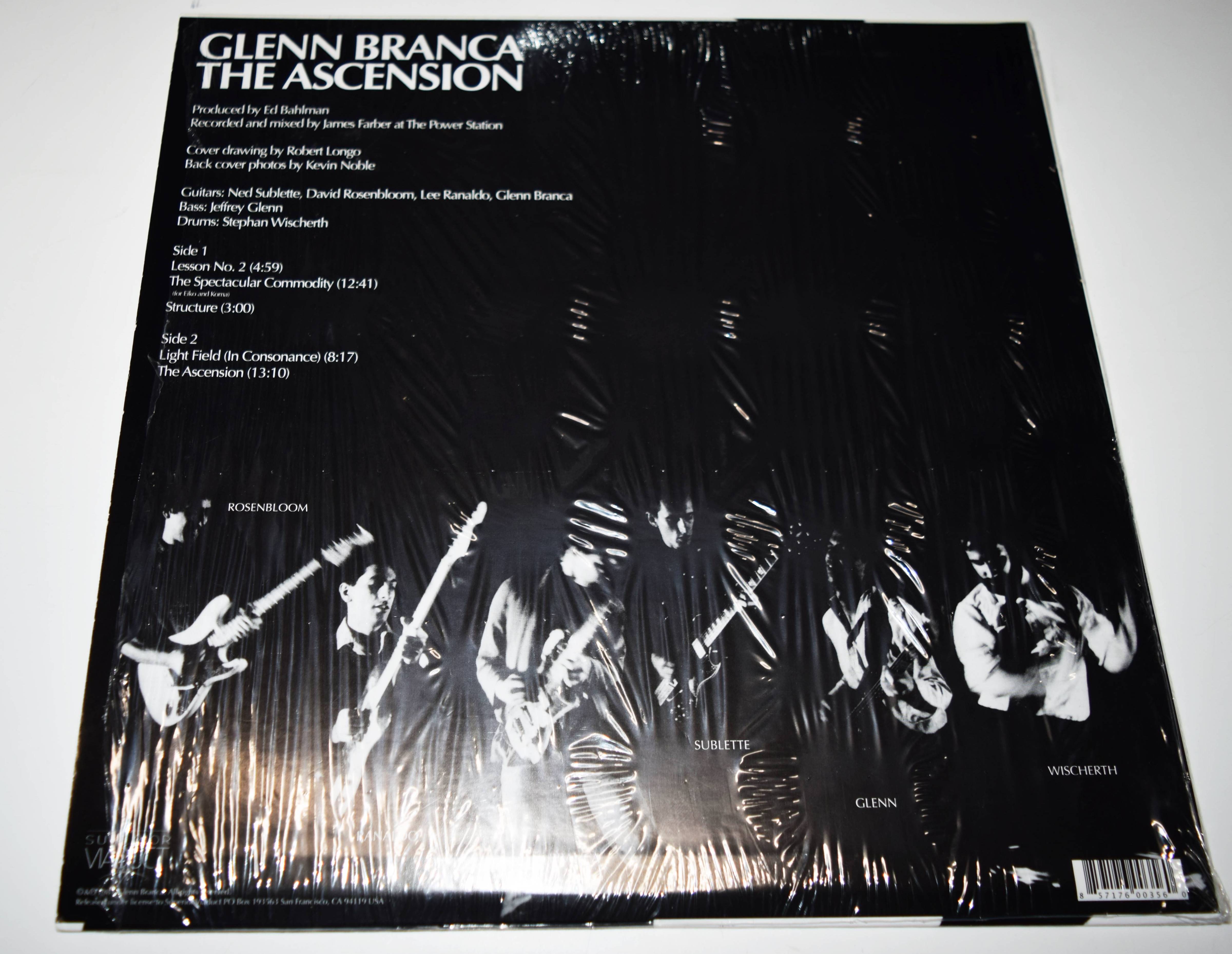 Longo – Branca, Glenn. The Ascension. Vinyl, LP, Album, Reissue. New York, Superior Viaduct 25. Nov. 2014. Cover image by Robert Longo. (SV056). Cover signed by Robert Longo. – Glenn Branca (October 6, 1948, Harrisburg, Pennsylvania, USA – d. May 13th, 2018) was an American composer who studied performing arts at Emerson College in Boston. After graduation, he formed two bands – Theoretical Girls in 1977 with Jeffrey Lohn, and later, The Static. In the eighties, his compositions for the Glenn Branca Ensemble included the several symphonies for which he was best known. Branca’s compositions centered around multiple guitars – four or more, heavily amplified – augmented by a rock-based rhythm section of drums and bass. In later works, the composer began adding other instruments, including mallet guitar, keyboards, and occasionally a second drummer. Branca’s minimalist compositions frequently required unusual guitar tunings. – “Robert Longo (*1953, Brooklyn) is known for his monumental, hyper-realistic images: powerful, dynamic charcoal drawings that captivate the viewer with their virtuoso technique and the visual power of the motif. He chooses photographs as models that capture dramatic situations at their most tense moments. The artist’s aim is to highlight power – in nature, politics and history. Longo uses visual material that has been published thousands of times and has become part of our popular culture, often our collective memory. He isolates and reduces the motifs with the aim of potentiating the pictorial effect. Thanks to the enlargement on the one hand and the lighting control, which considerably intensifies the light-dark contrasts, on the other, we are confronted with huge, never-before-seen theatrical images” (Albertina, Vienna). – „Robert Longo (*1953, Brooklyn) ist für seine monumentalen hyperrealistischen Bilder bekannt: kraftvolle, dynamische Kohlezeichnungen, die einen durch die virtuose Technik und die Bildmächtigkeit des Motivs in ihren Bann ziehen. Als Vorlagen wählt er Fotografien, die dramatische Situationen im größten Spannungsmoment festhalten. Dabei geht es dem Künstler um das Aufzeigen von Macht – in Natur, Politik und Geschichte. Longo verwendet tausendfach publiziertes Bildmaterial, das Teil unserer Populärkultur, oft unseres kollektiven Gedächtnisses geworden ist. Er isoliert und reduziert die Motive mit dem Ziel der Potenzierung der Bildwirkung. Dank der Vergrößerung einerseits und der die Hell-Dunkel-Gegensätze erheblich zuspitzenden Lichtregie andererseits stehen wir vor riesigen, nie zuvor gesehenen theatralischen Bildern“ (Albertina, Wien).