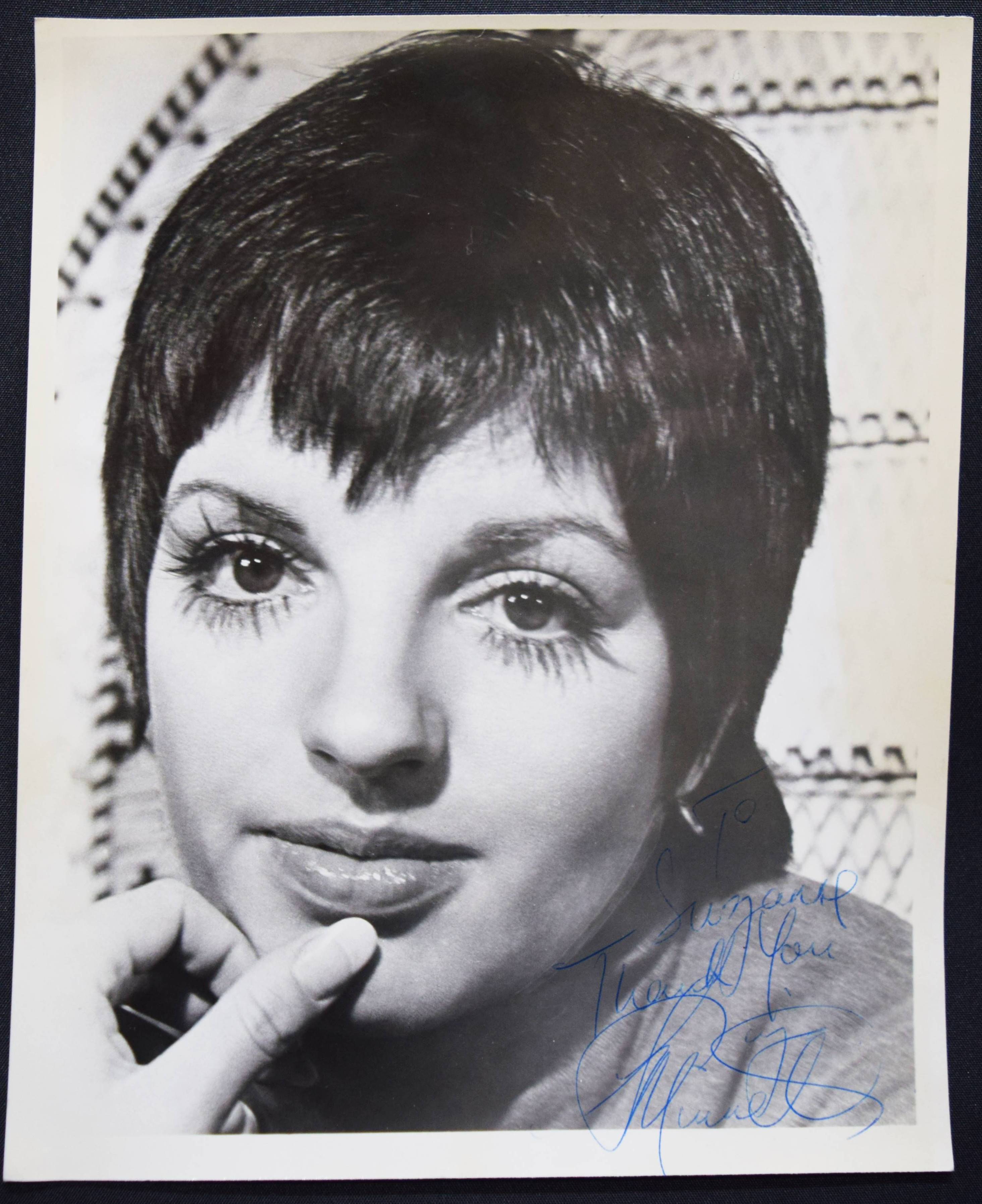 | Minnelli, Liza May (* 1946 in Los Angeles, Schauspielerin und Sängerin). Orig.-Photographie (Silbergelatine, 25,5 x 20,5) mit eigenhändiger Widmung von L. Minnelli „To S…? Thank you Liza Minnelli“. Las Vegas um 1975. Schönes Portrait der berühmten Künstlerin, die 1972 durch ihre Verkörperung der Sally Bowles in dem Filmmusical Cabaret weltbekannt wurde. Sie ist die Tochter der Schauspielerin Judy Garland und des Regisseurs Vincente Minnelli.