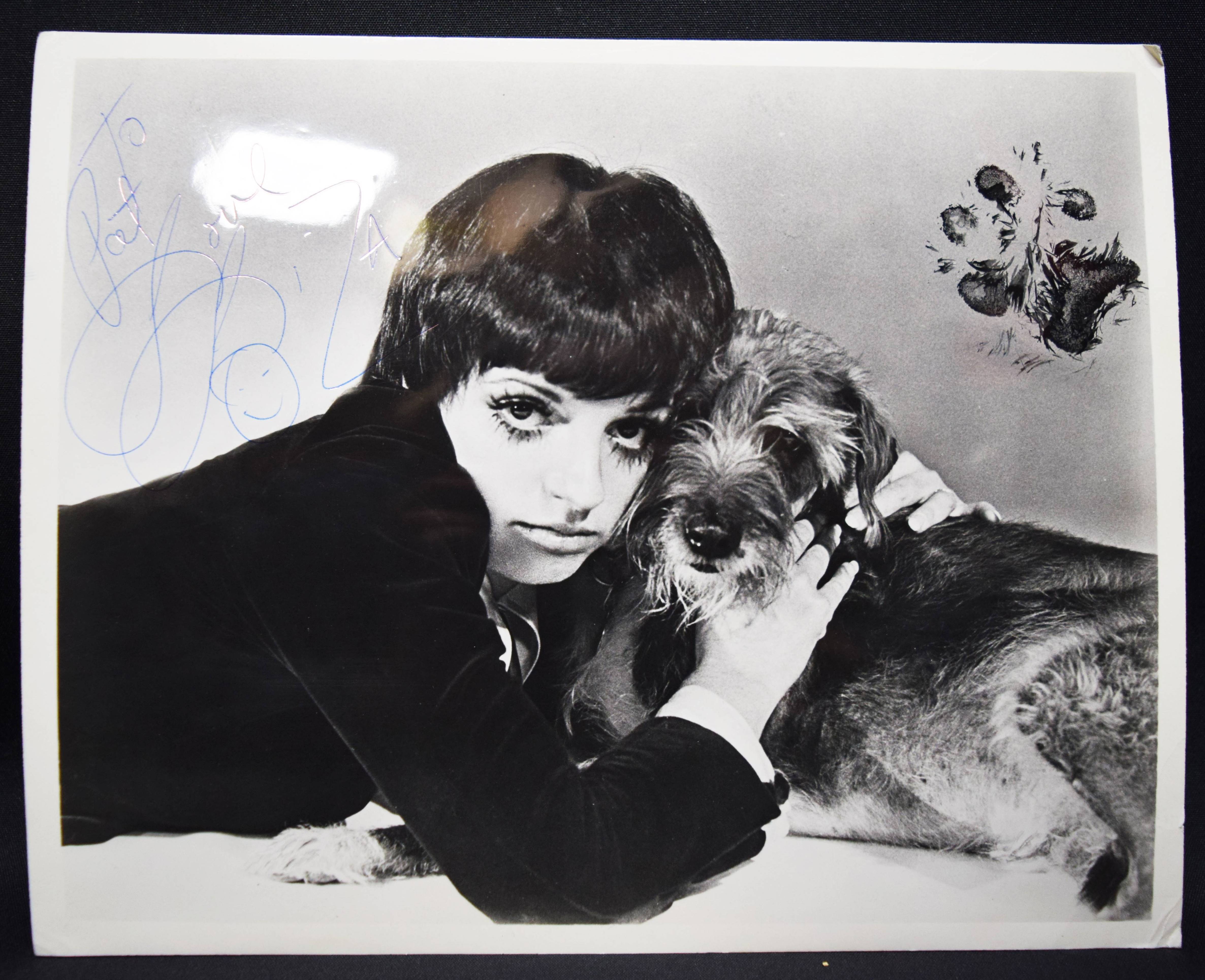 Minnelli, Liza May (* 1946 in Los Angeles, Schauspielerin und Sängerin). Orig.-Photographie (Silbergelatine, 25,5 x 20,5) mit eigenhändiger Widmung von L. Minnelli „To Pat love Liza“. Las Vegas um 1975. Schönes Portrait mit einem kleinen Hund der berühmten Künstlerin, die 1972 durch ihre Verkörperung der Sally Bowles in dem Filmmusical Cabaret weltbekannt wurde. Sie ist die Tochter der Schauspielerin Judy Garland und des Regisseurs Vincente Minnelli.