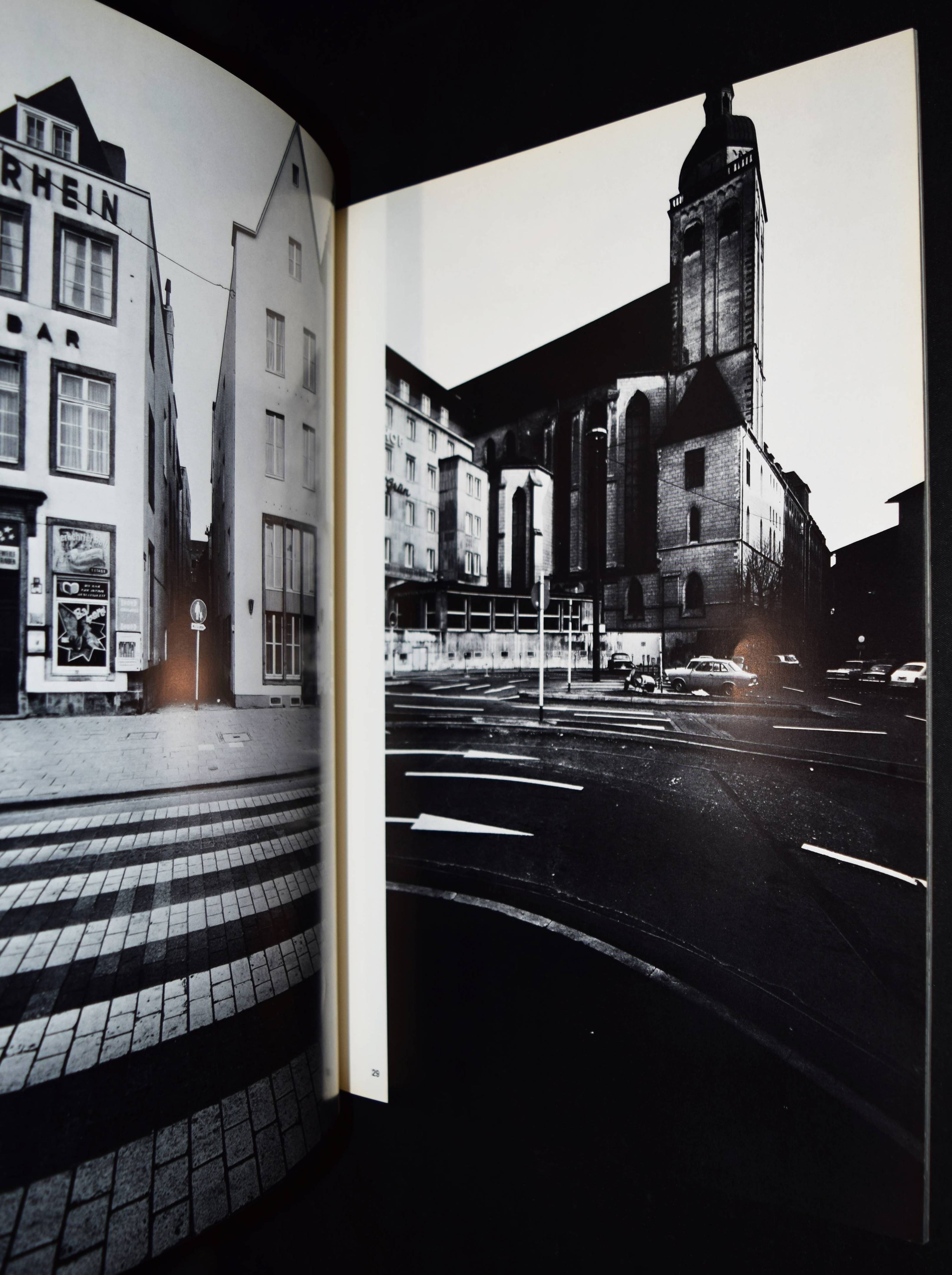 | Chargesheimer (d. i. Karl Heinz Hargesheimer) Köln 5 Uhr 30. Köln, DuMont Schauberg (1970). Folio (38 x 28 cm.). [32] Bl. mit 64 Tafeln. Illustr. Orig.-Kartonumschlag mit Pappschuber. Heidtmann 17836. Koetzle 86 (mit Abb.). Parr/Badger I, 223. – Einzige Ausgabe, selten. – „Chargesheimer was one of the most profilic German photographers of the 1950s and 60s, a portraitist and member of the Fotoform group, who also worked for the resurgent German illustrated press before the rise of television changed magazine photography irrevocably. ‚Köln 5 Uhr 30‘ (Cologne 5. 30), however, is not so much a journalistic document as a photographer’s personal project, probably generated by Chargesheimer’s fascination with the deserted early morning city, possibly also as a try-out for one of the wide-angle lenses – 21 mm or 24 mm – that had been newly introduced and were popular with photographers of the day. … The new Cologne might have been a symbol of the postwar German economic miracle, but it represented a homogenized, dehumanized technological society, a product of global corporate capitalism“ (Parr/Badger). – „Wenig schmeichelhaft erscheinen die Städte in Chargesheimers letzten beiden Büchern. Während er für ‚Köln 5 Uhr 30‘ ausschließlich extreme Weitwinkelperspektiven zeigte, die er in den frühen Morgenstunden in den menschenleeren Kölner Innenstadtstraßen aufgenommen hatte, ist das Motivspektrum in ‚Hannover‘ vielfältiger“ (T. Wiegand zu ‚Hannover‘ in Heiting/Wiegand, Deutschland im Fotobuch). – „Er war eine schillernde, widersprüchliche Künstlerpersönlichkeit, temperamentvoll im Gespräch, voller Einfälle und Unruhe in seiner schöpferischen Arbeit; im Laufe seines kurzen Lebens war er nacheinander und manchmal nebeneinander Maler, Bildhauer, Lichtgrafiker, Fotogrammer, Erfinder kinetischer Maschinen, Bühnenbildner, Regisseur und Fotograf. Das fotografische Werk in seiner Breite und in seiner Vollendung bleibt seine höchste künstlerische Tat. Und dies nicht nur innerhalb seines eigenen OEuvres: Chargesheimer schrieb als Fotograf eines der wichtigsten Kapitel der Fotografie in Deutschland nach 1945“ (E. Weiss in Koetzle). – Schuber wie immer mit Alters- und Gebrauchsspuren und etwas gebräunt, sehr gutes Exemplar.